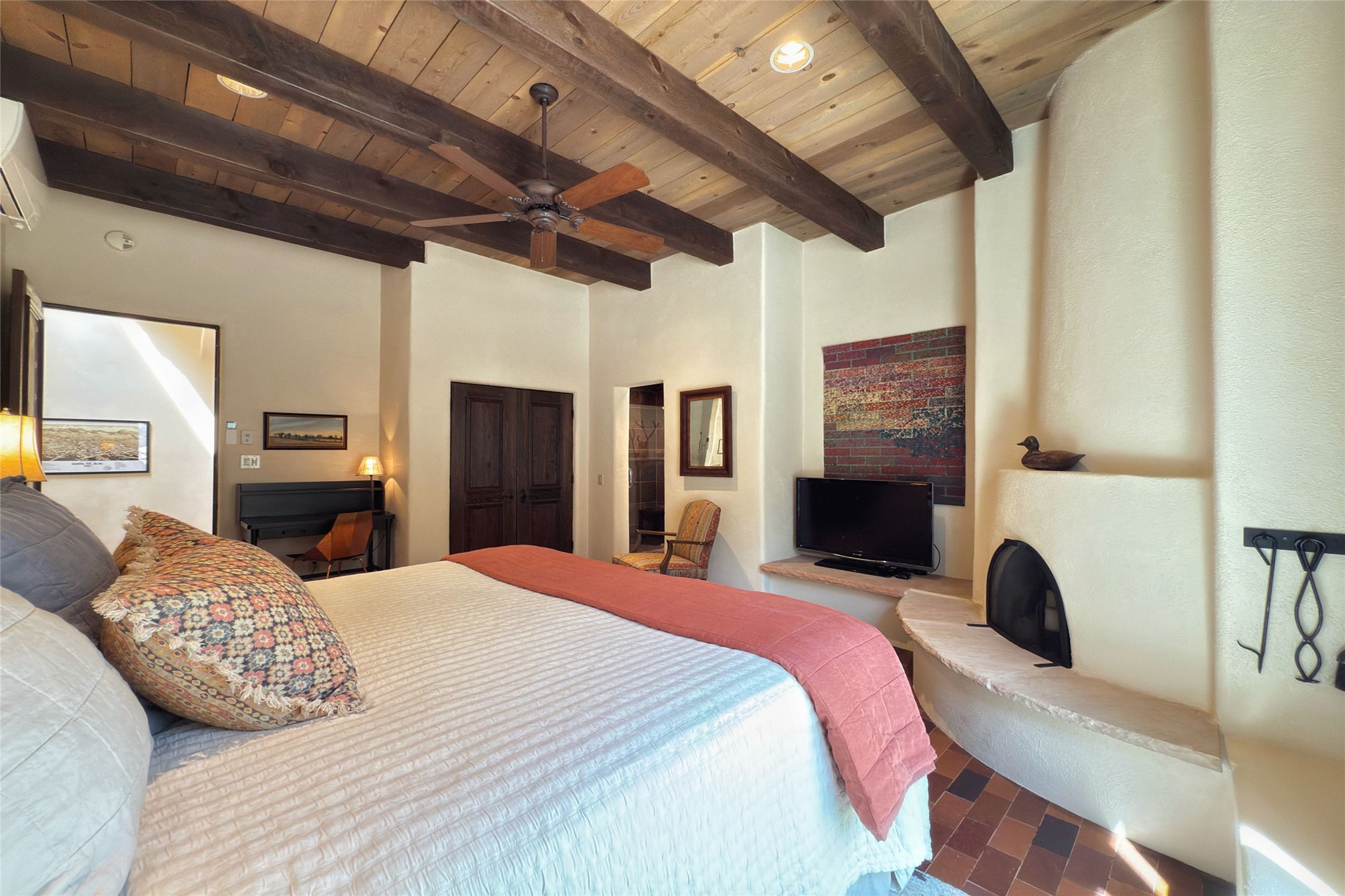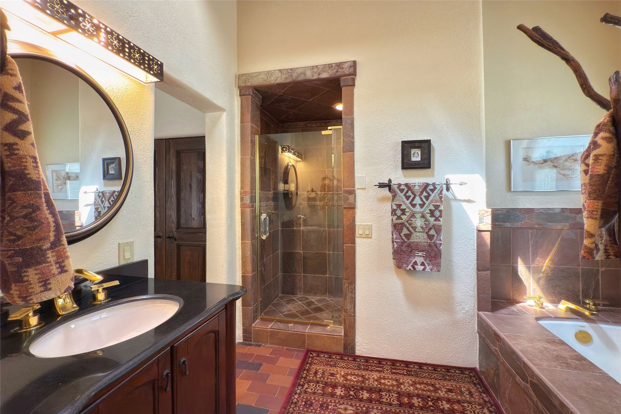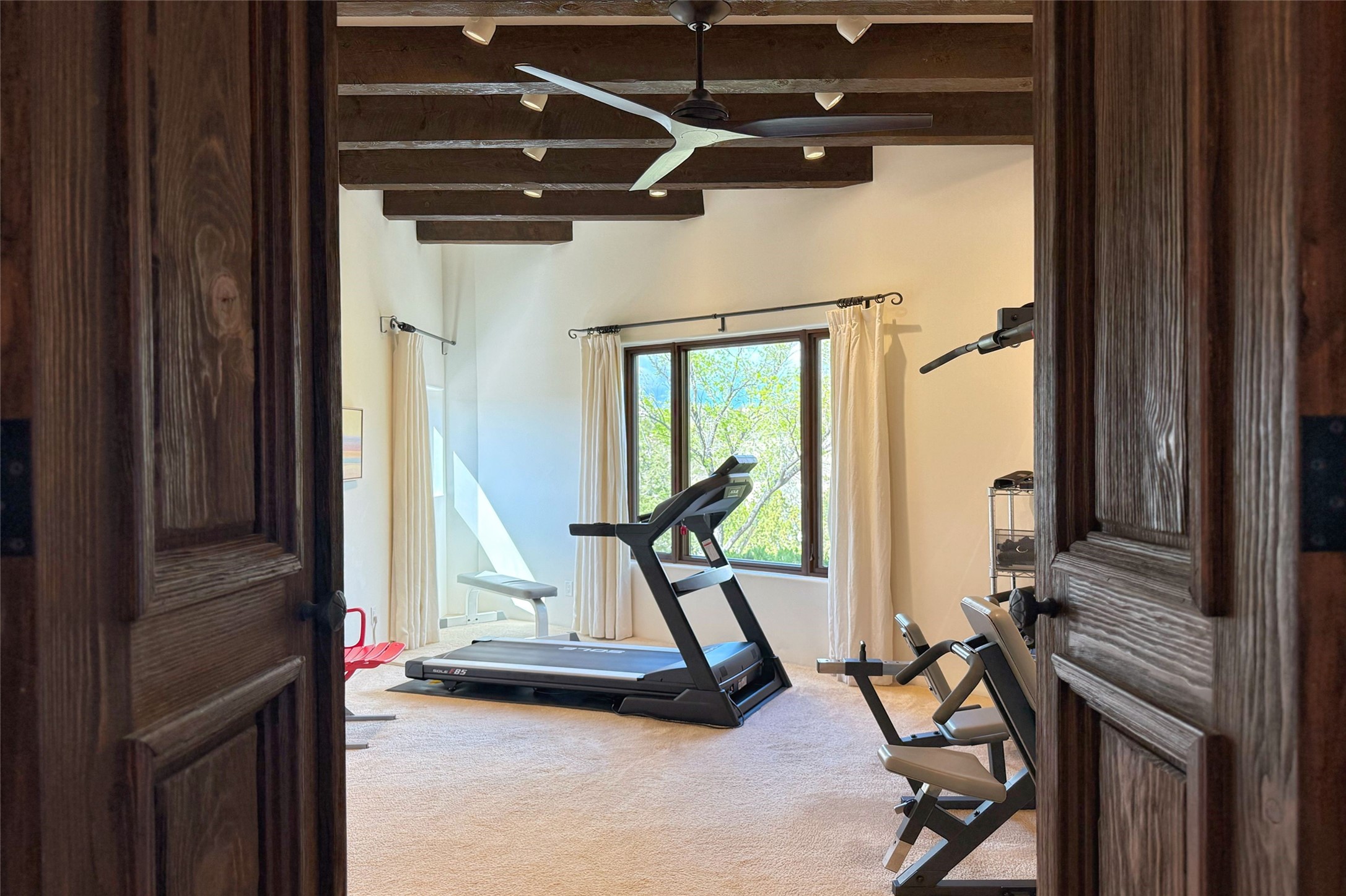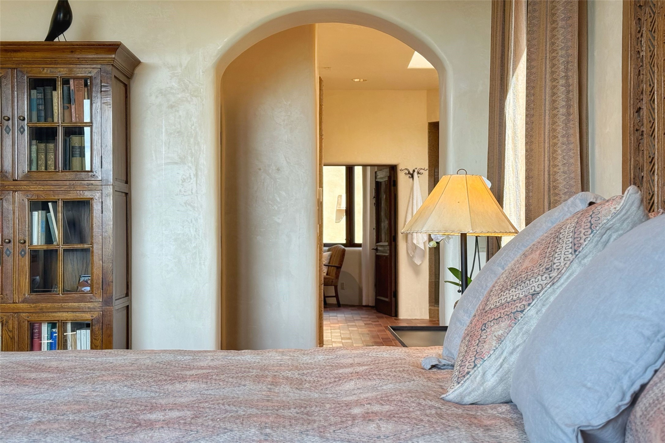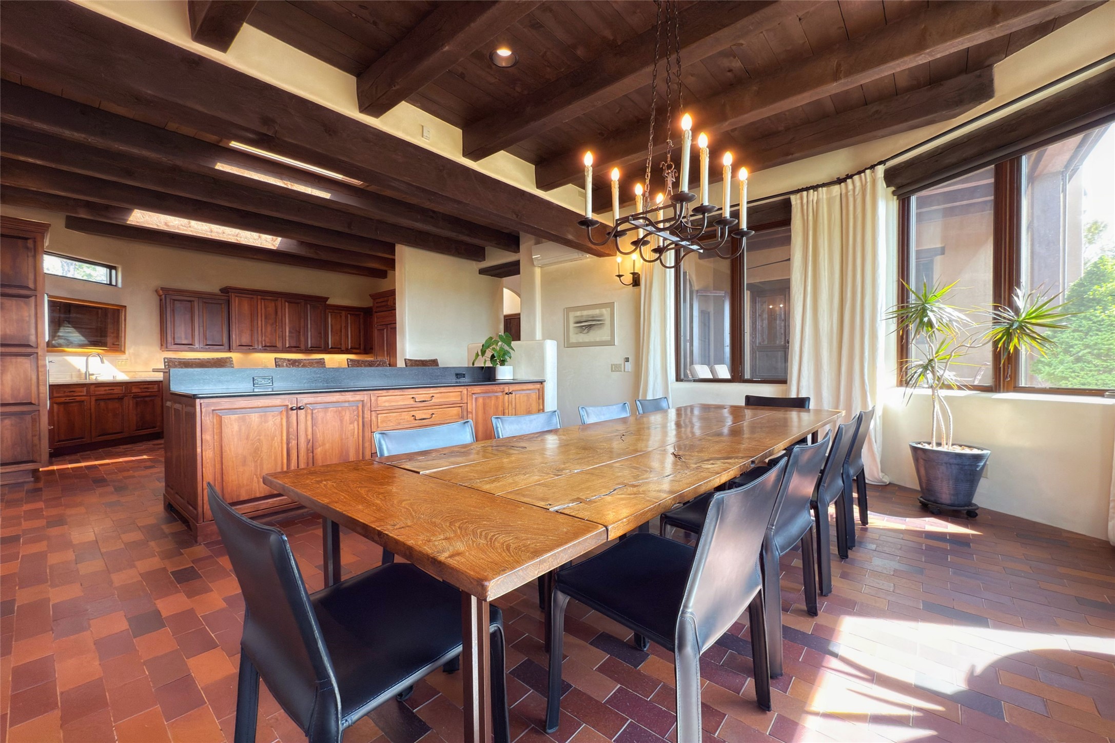 Elegant Foothills Estate with Sangre and Jemez Mountain Views in La CanteraThis exceptional residence is nestled within the prestigious, gated enclave of La Cantera--just moments from the world-class galleries and dining of Canyon Road and the Plaza. Designed for refined living and grand-scale entertaining, the home blends traditional Santa Fe architecture with timeless luxury and sweeping mountain vistas.Enter into a gated courtyard with mature landscaping. A gracious reception and a dramatic gallery hallway lead to an expansive great room with soaring beamed ceilings, one of five fireplaces, and panoramic views. The heart of the home is a spacious open-concept kitchen and dining area, offering breathtaking landscape views. Multiple outdoor living spaces, including a portal with fireplace are ideal for alfresco dining or sunset gatherings. The generous primary suite features a cozy fireplace, walk-in closet, sitting room, and courtyard access. Guests are accommodated in an ensuite bedroom with fireplace and private courtyard. The large studio, currently used as a gym, is ensuite and has a north-facing picture window. There is also outside entry making this space perfect for additional guests or an office. More highlights include a versatile media/office room ensuite with an adjoining sunroom, a wet bar with adjacent wine storage space, a cozy breakfast room, and a workshop off the garage.Set on a private, beautifully landscaped lot with mature trees and tranquil outdoor spaces, this is a rare opportunity to own a remarkable residence in one of Santa Fe's most sought-after communities.