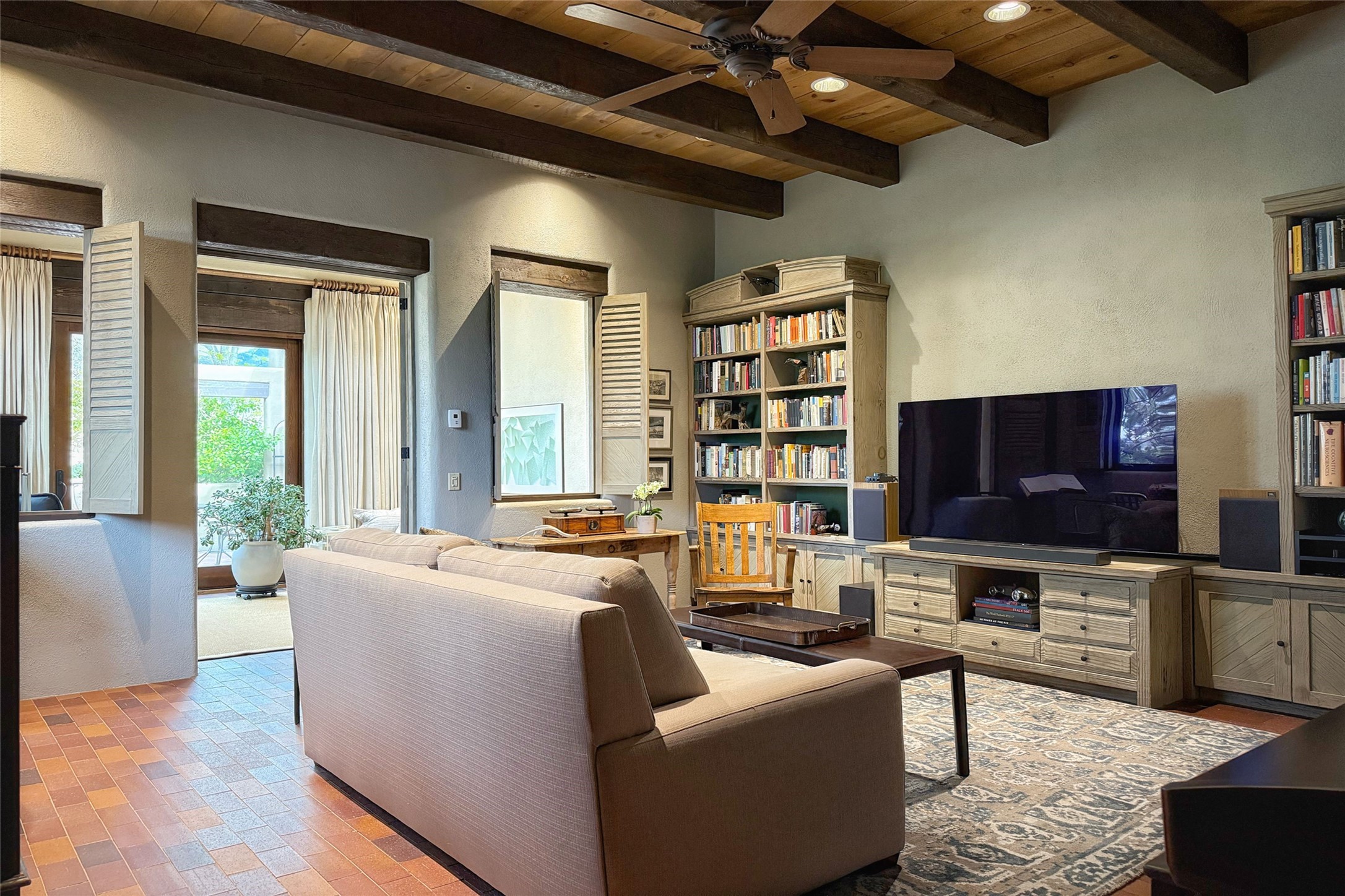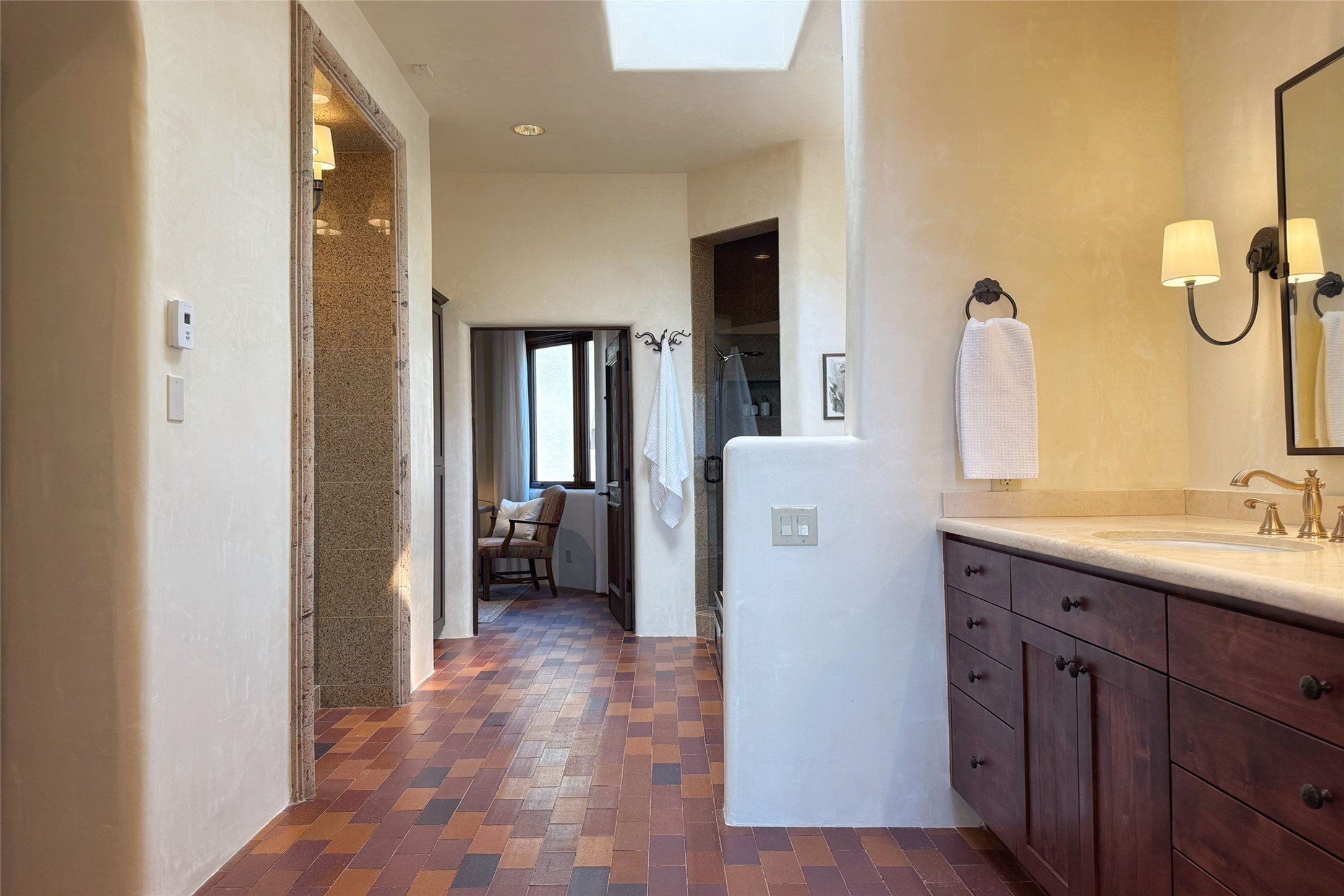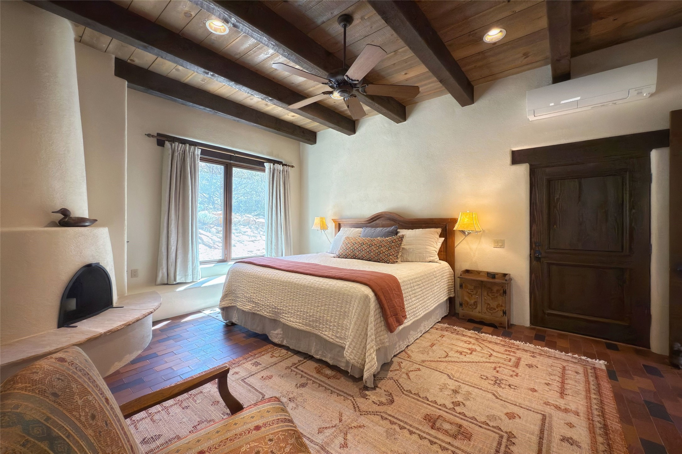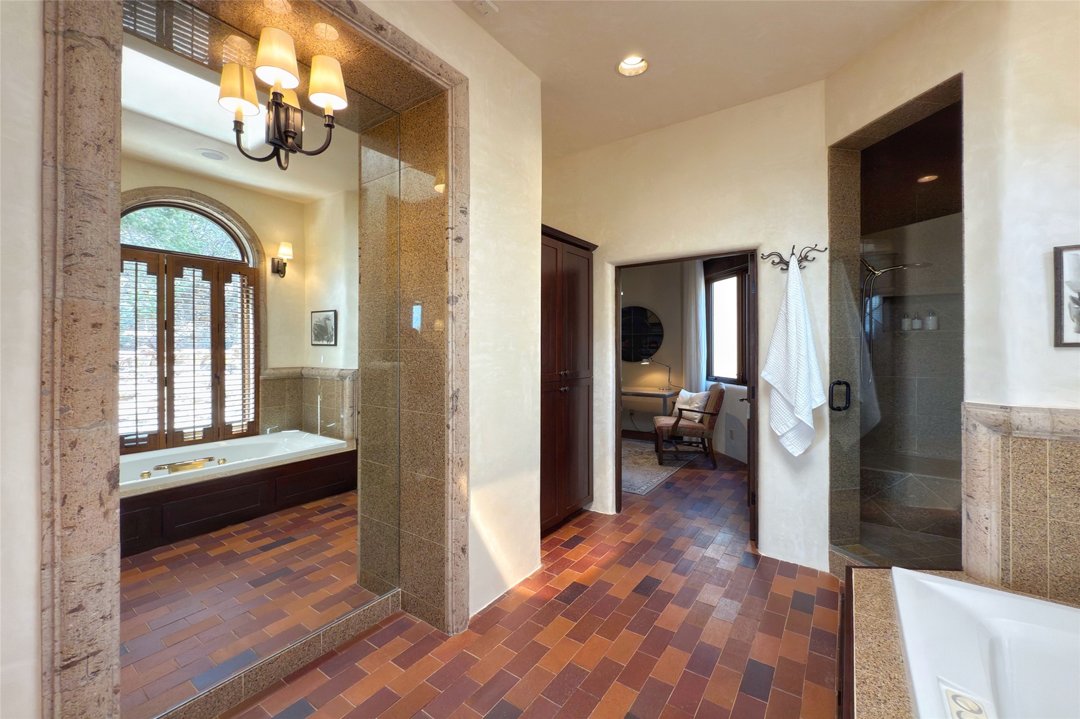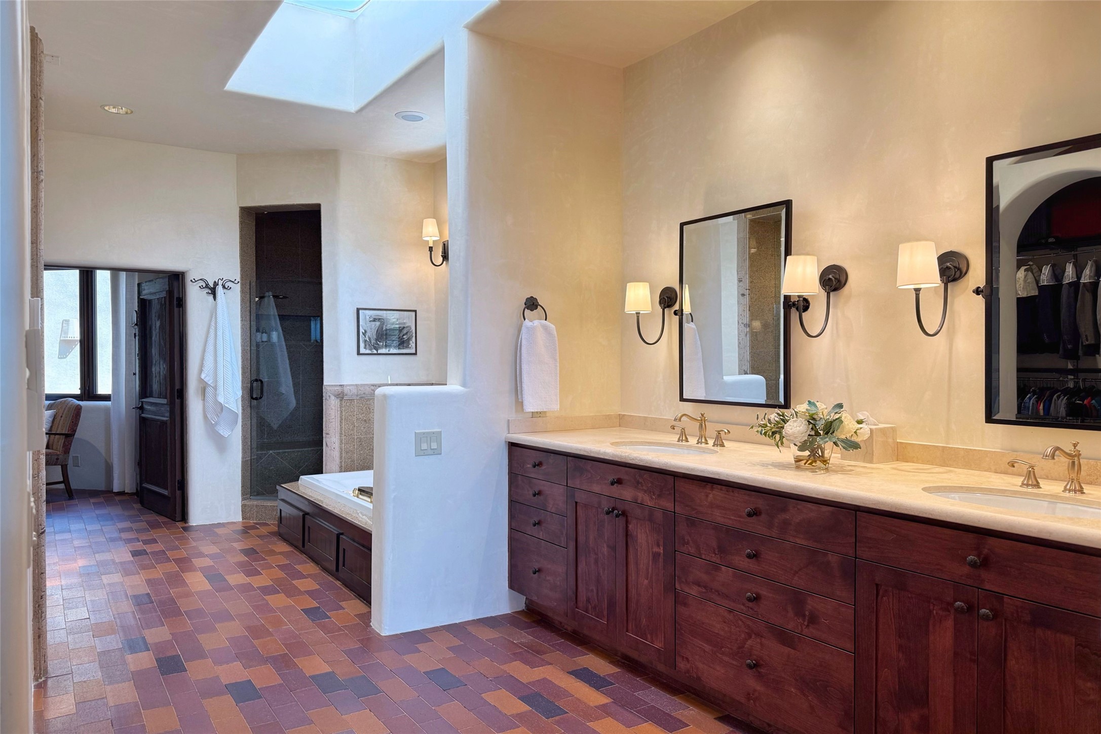 Elegant Foothills Estate with Sangre and Jemez Mountain Views in La CanteraThis exceptional residence is nestled within the prestigious, gated enclave of La Cantera--just moments from the world-class galleries and dining of Canyon Road and the Plaza. Designed for refined living and grand-scale entertaining, the home blends traditional Santa Fe architecture with timeless luxury and sweeping mountain vistas.Enter into a gated courtyard with mature landscaping. A gracious reception and a dramatic gallery hallway lead to an expansive great room with soaring beamed ceilings, one of five fireplaces, and panoramic views. The heart of the home is a spacious open-concept kitchen and dining area, offering breathtaking landscape views. Multiple outdoor living spaces, including a portal with fireplace are ideal for alfresco dining or sunset gatherings. The generous primary suite features a cozy fireplace, walk-in closet, sitting room, and courtyard access. Guests are accommodated in an ensuite bedroom with fireplace and private courtyard. The large studio, currently used as a gym, is ensuite and has a north-facing picture window. There is also outside entry making this space perfect for additional guests or an office. More highlights include a versatile media/office room ensuite with an adjoining sunroom, a wet bar with adjacent wine storage space, a cozy breakfast room, and a workshop off the garage.Set on a private, beautifully landscaped lot with mature trees and tranquil outdoor spaces, this is a rare opportunity to own a remarkable residence in one of Santa Fe's most sought-after communities.