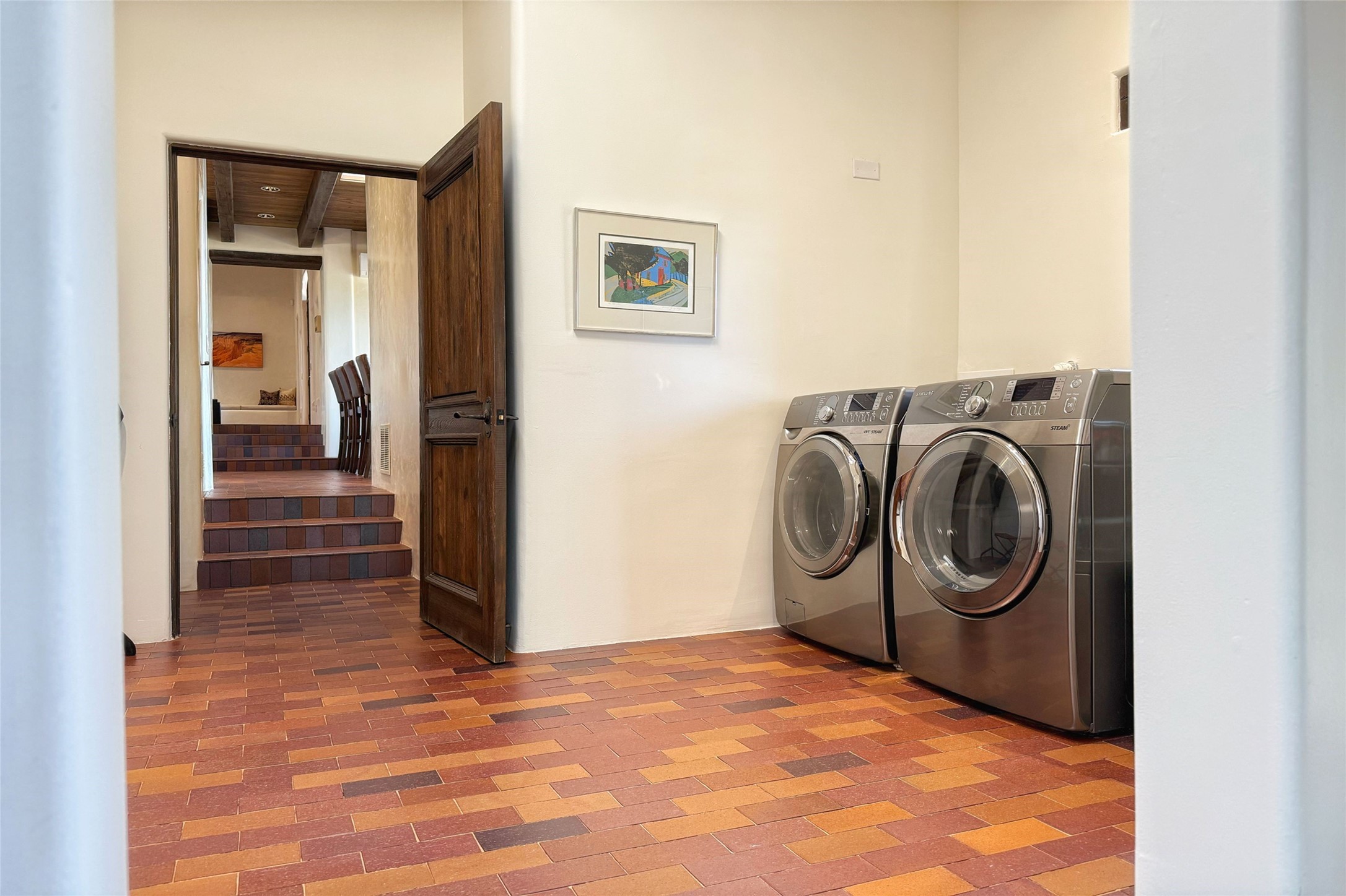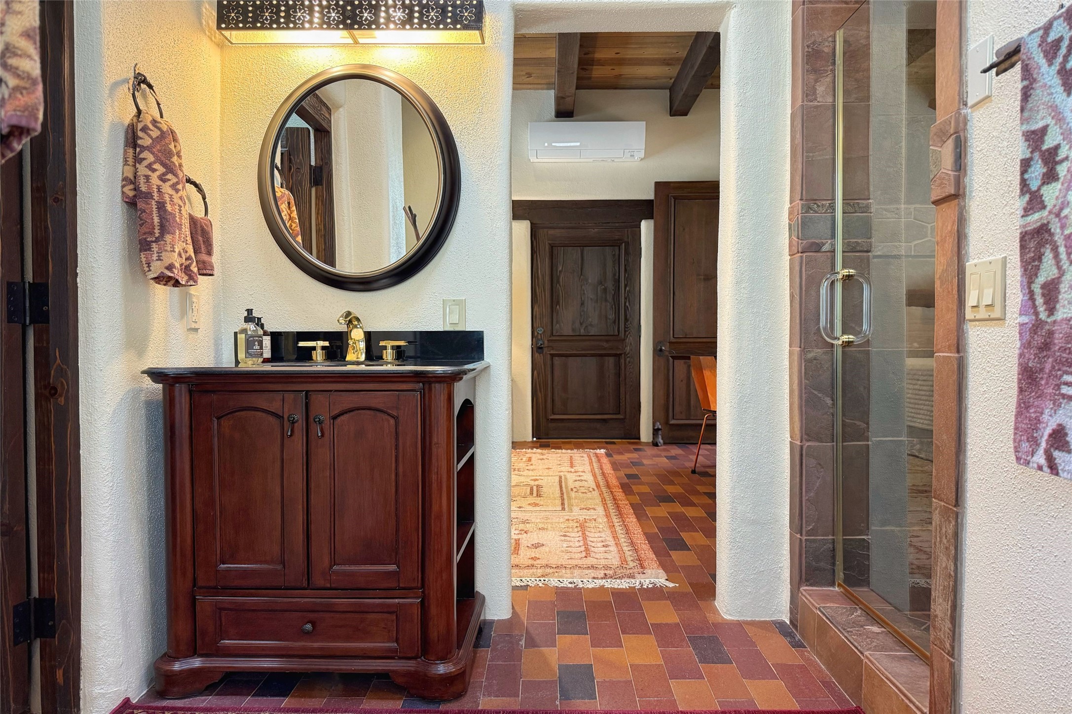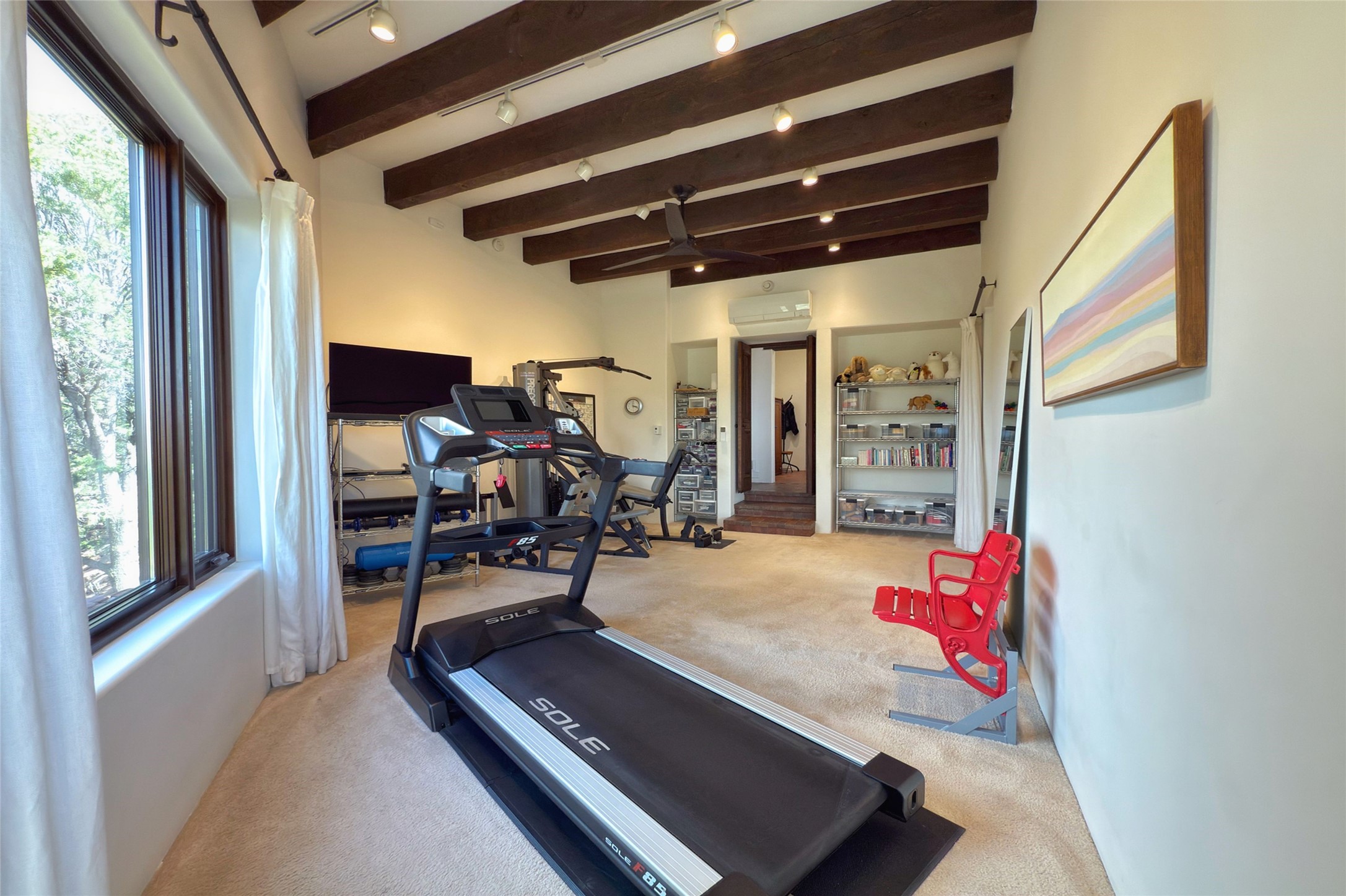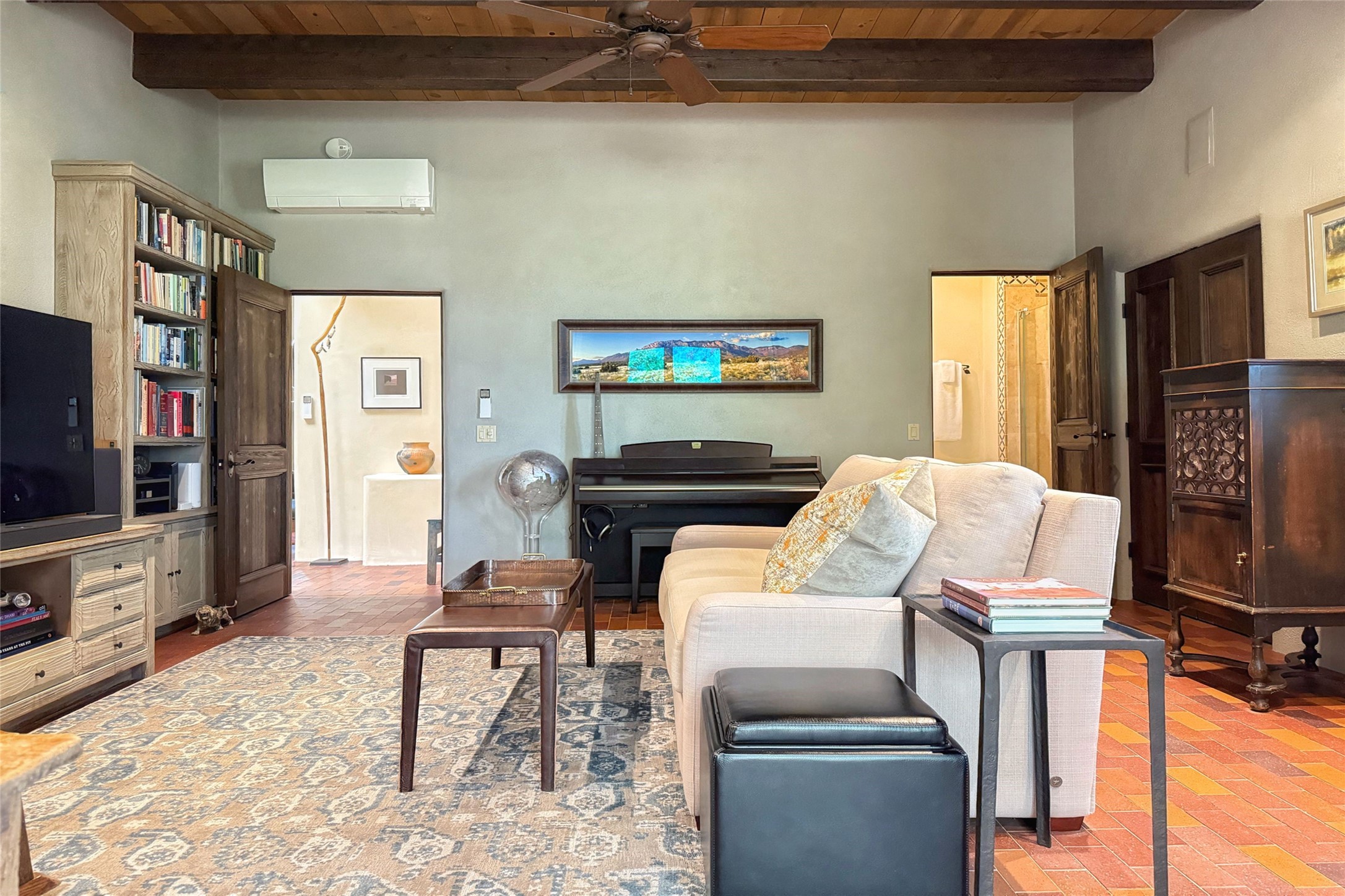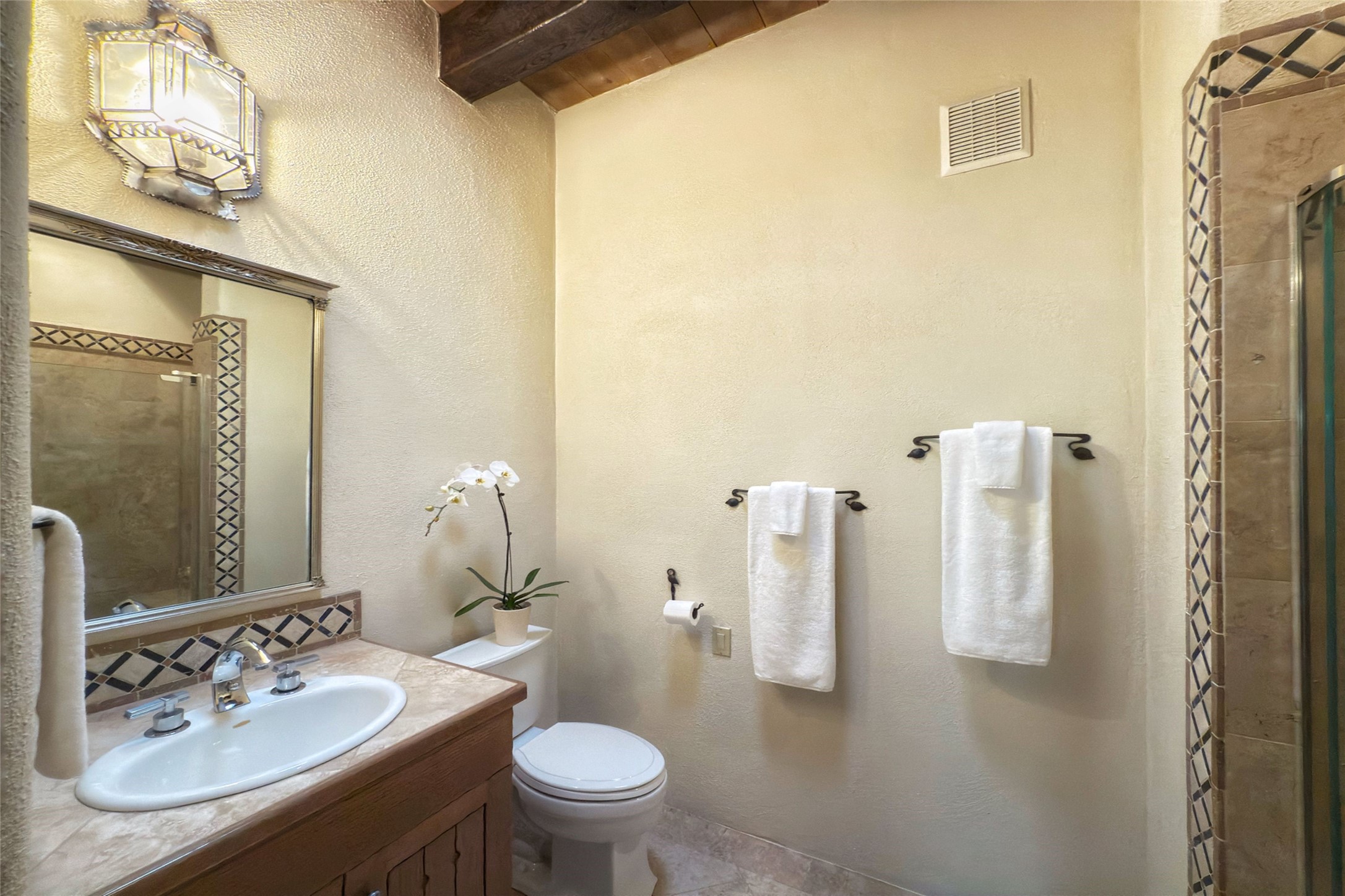 Elegant Foothills Estate with Sangre and Jemez Mountain Views in La CanteraThis exceptional residence is nestled within the prestigious, gated enclave of La Cantera--just moments from the world-class galleries and dining of Canyon Road and the Plaza. Designed for refined living and grand-scale entertaining, the home blends traditional Santa Fe architecture with timeless luxury and sweeping mountain vistas.Enter into a gated courtyard with mature landscaping. A gracious reception and a dramatic gallery hallway lead to an expansive great room with soaring beamed ceilings, one of five fireplaces, and panoramic views. The heart of the home is a spacious open-concept kitchen and dining area, offering breathtaking landscape views. Multiple outdoor living spaces, including a portal with fireplace are ideal for alfresco dining or sunset gatherings. The generous primary suite features a cozy fireplace, walk-in closet, sitting room, and courtyard access. Guests are accommodated in an ensuite bedroom with fireplace and private courtyard. The large studio, currently used as a gym, is ensuite and has a north-facing picture window. There is also outside entry making this space perfect for additional guests or an office. More highlights include a versatile media/office room ensuite with an adjoining sunroom, a wet bar with adjacent wine storage space, a cozy breakfast room, and a workshop off the garage.Set on a private, beautifully landscaped lot with mature trees and tranquil outdoor spaces, this is a rare opportunity to own a remarkable residence in one of Santa Fe's most sought-after communities.