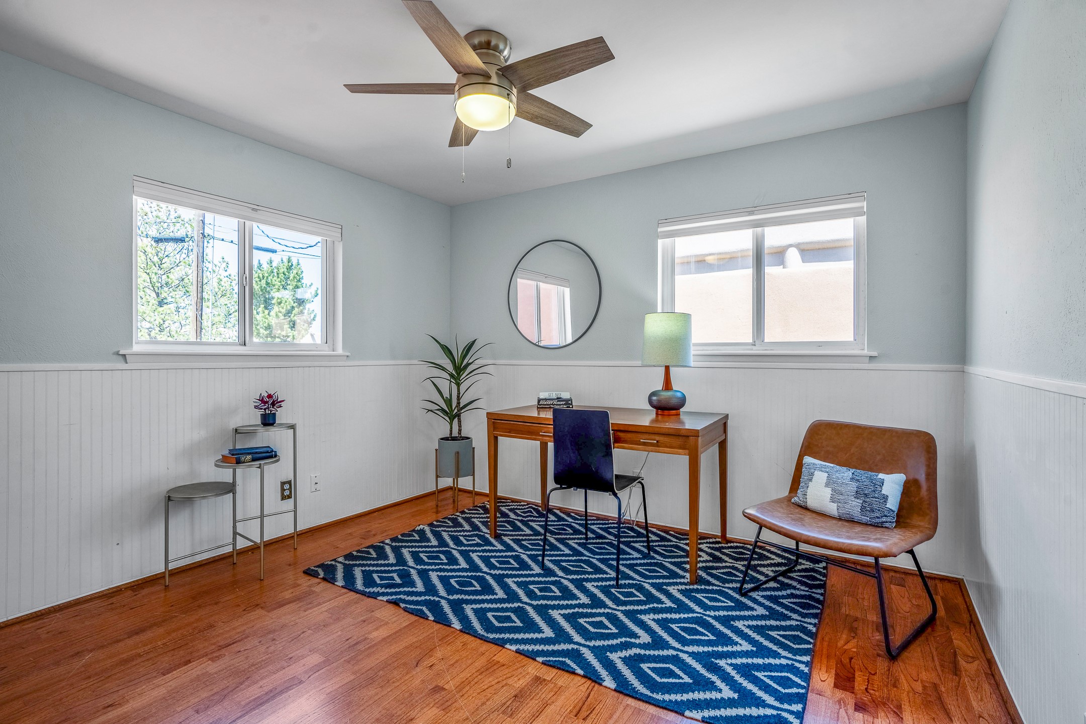 Nestled in the highly desirable South Capitol neighborhood and located within the sought-after Wood Gormley Elementary School District, 1204 Galisteo Street offers the perfect blend of location, versatility, and charm. This spacious 4-bedroom, 4-bathroom home spans approximately 2,300 square feet and is ideally situated within walking distance to both the Plaza and the Railyard. Enter through a lovely East-facing front courtyard featuring a gazebo--an ideal setting for morning coffee or al fresco dining. Inside, the colorful and welcoming kitchen boasts a large island perfect for casual meals and entertaining. The great room, with its cathedral ceiling, fills with natural light and frames expansive views of the stunning Santa Fe sky. The main level also includes two bedrooms and two bathrooms, one with an ensuite bath for added privacy. Downstairs, an interior staircase leads to two generous bedrooms, each with large walk-in closets and private ensuite bathrooms. The south bedroom opens to a screened patio with storage, currently used as a gym--an adaptable space that could serve as a studio, office, or peaceful retreat. The true surprise of this South Capitol gem is the expansive and private backyard--ideal for play, gardening, or simply unwinding. Whether you envision a greenhouse, a lush garden, or a safe space for kids to roam, this backyard offers endless potential. 1204 Galisteo represents incredible value in a prime downtown location--don't miss this opportunity to live in one of Santa Fe's most coveted neighborhoods.