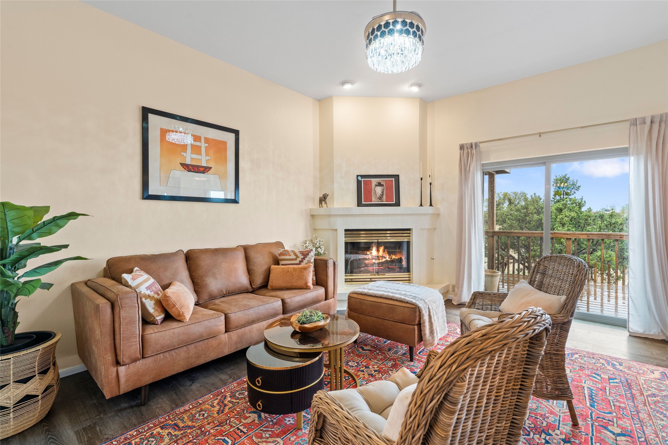 Here's a little pearl on a pretty lot with lovely views of the Sandia/Ortiz and Jemez mountains and the Sangre foothills. Updated by the current owners, this sweet home is filled with natural light, and move-in ready. Features include a six-year-old membrane roof, well-maintained stucco, new windows in 2024, new central air conditioning, new appliances, and a big finished garage with workshop area. Great location on all paved roads in the front of Eldorado, near the Agora and La Tienda shopping malls, and 15 minutes to the Plaza. Una Casa Mueca!