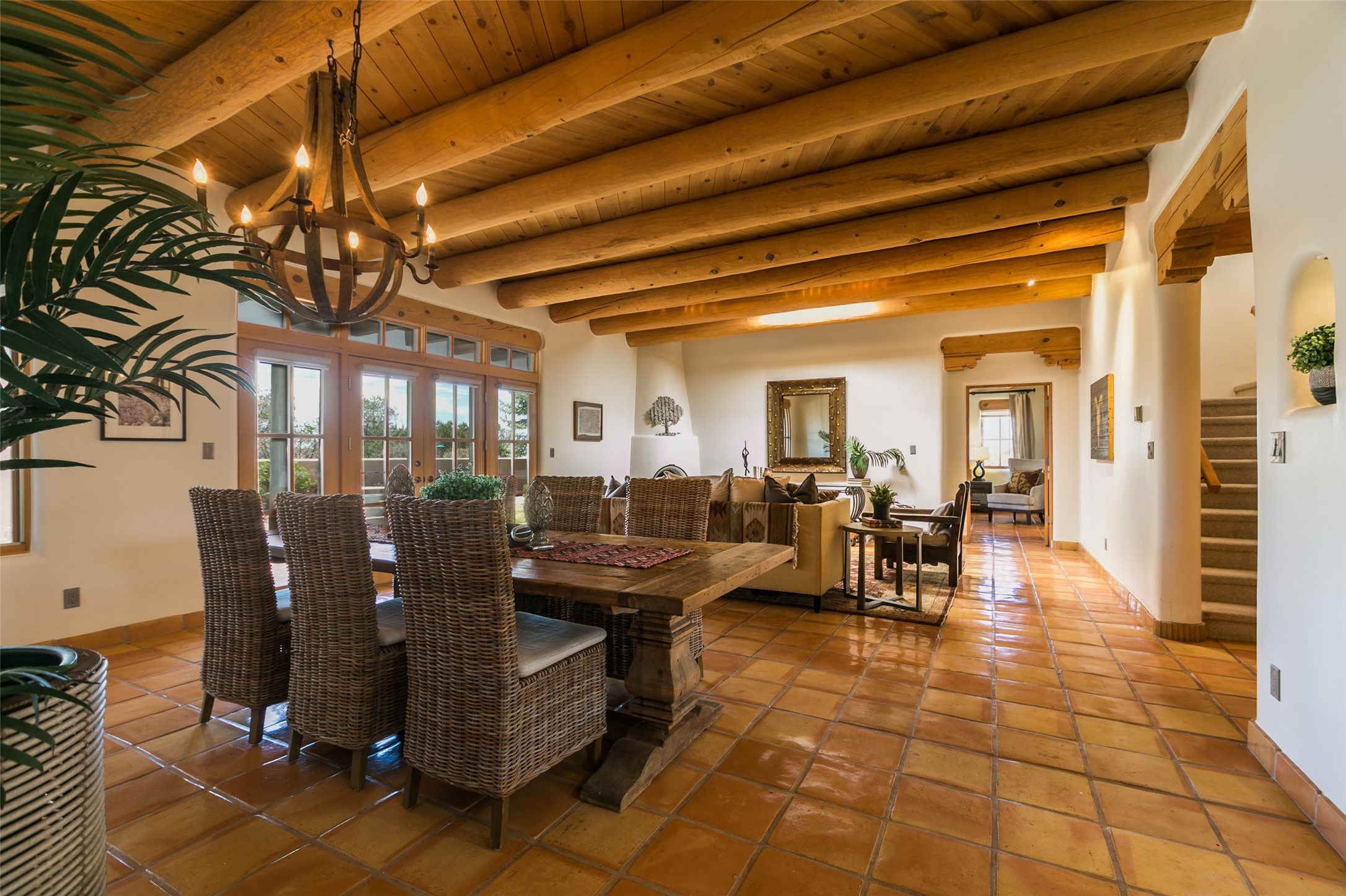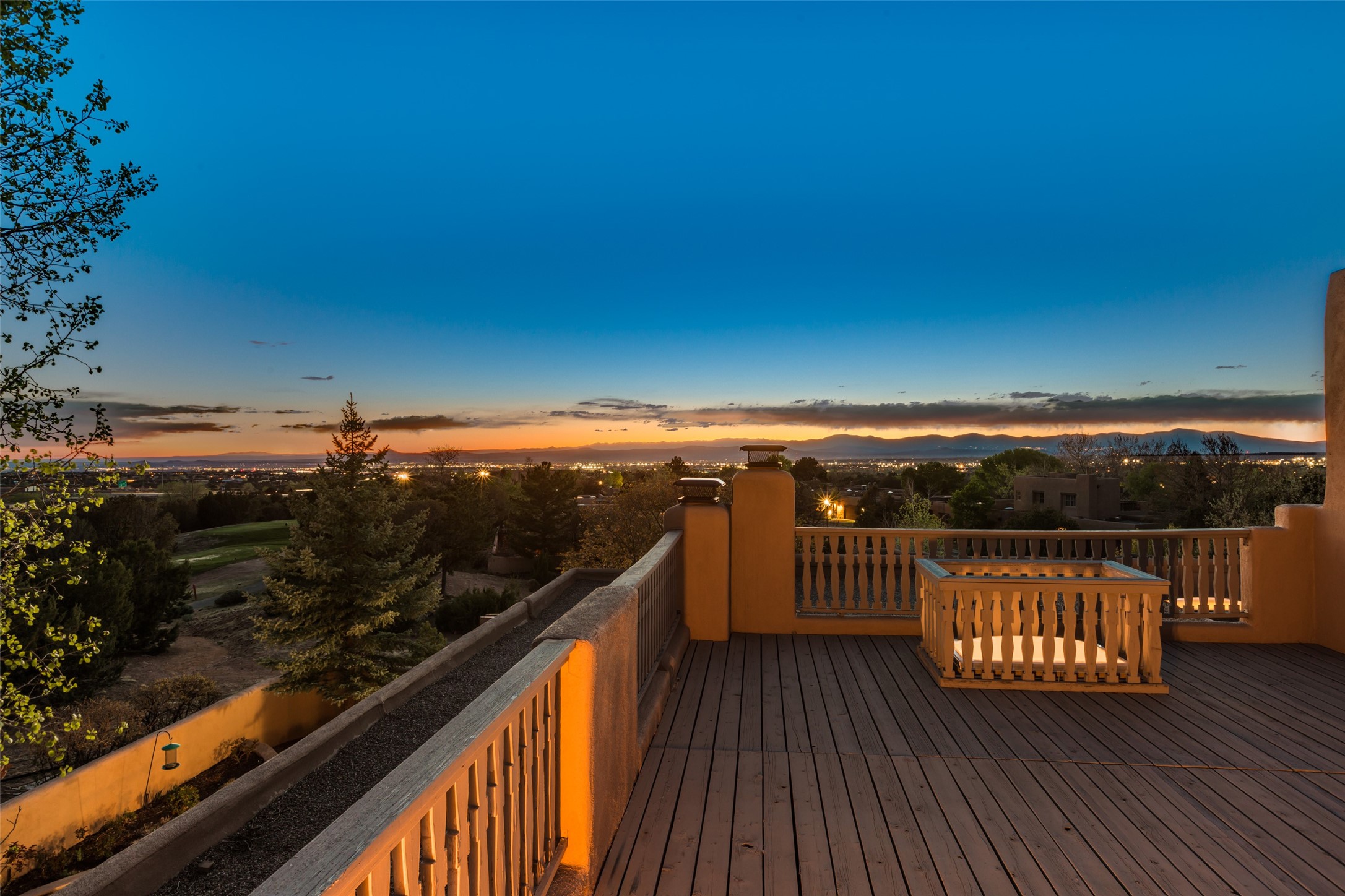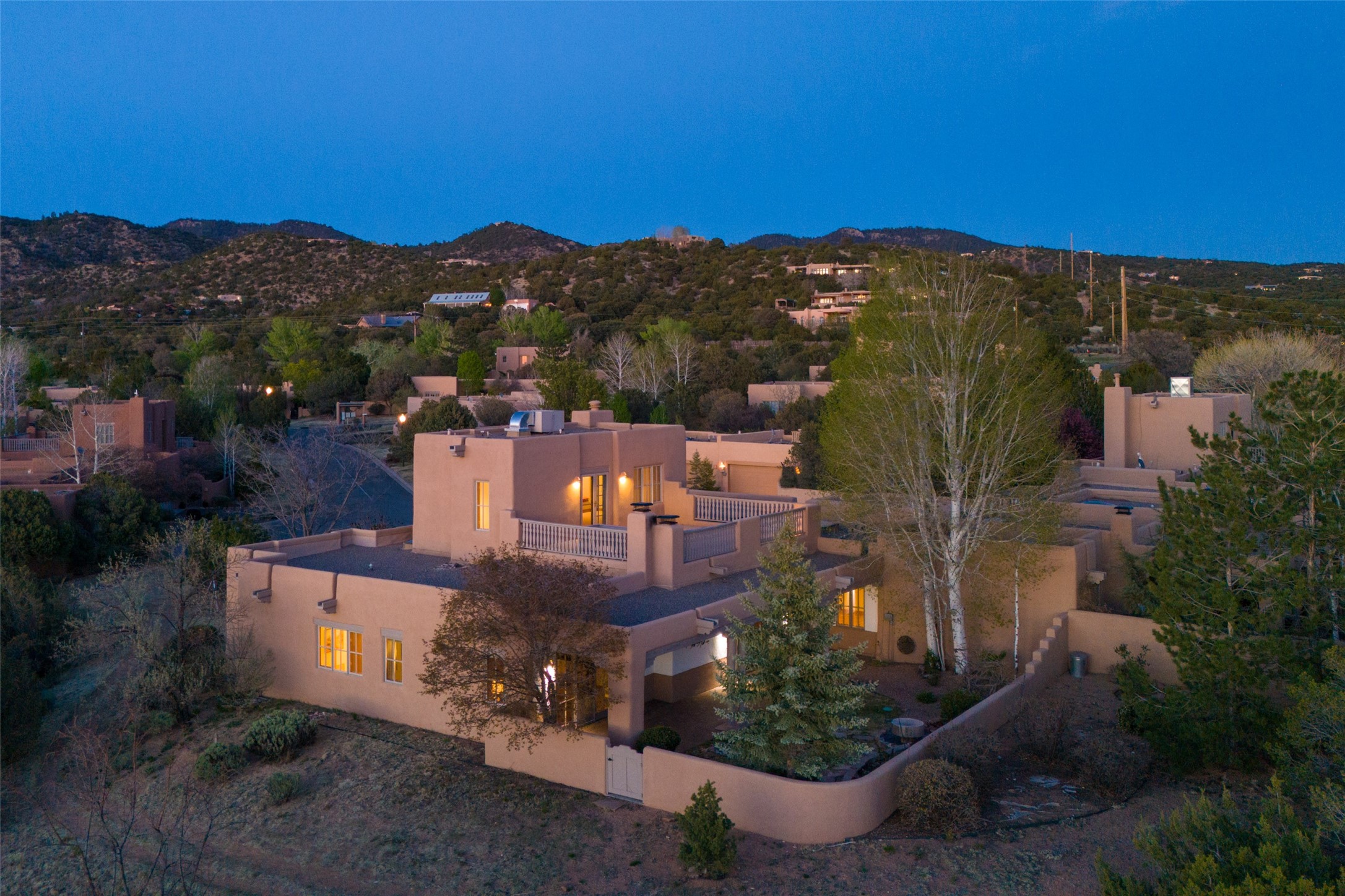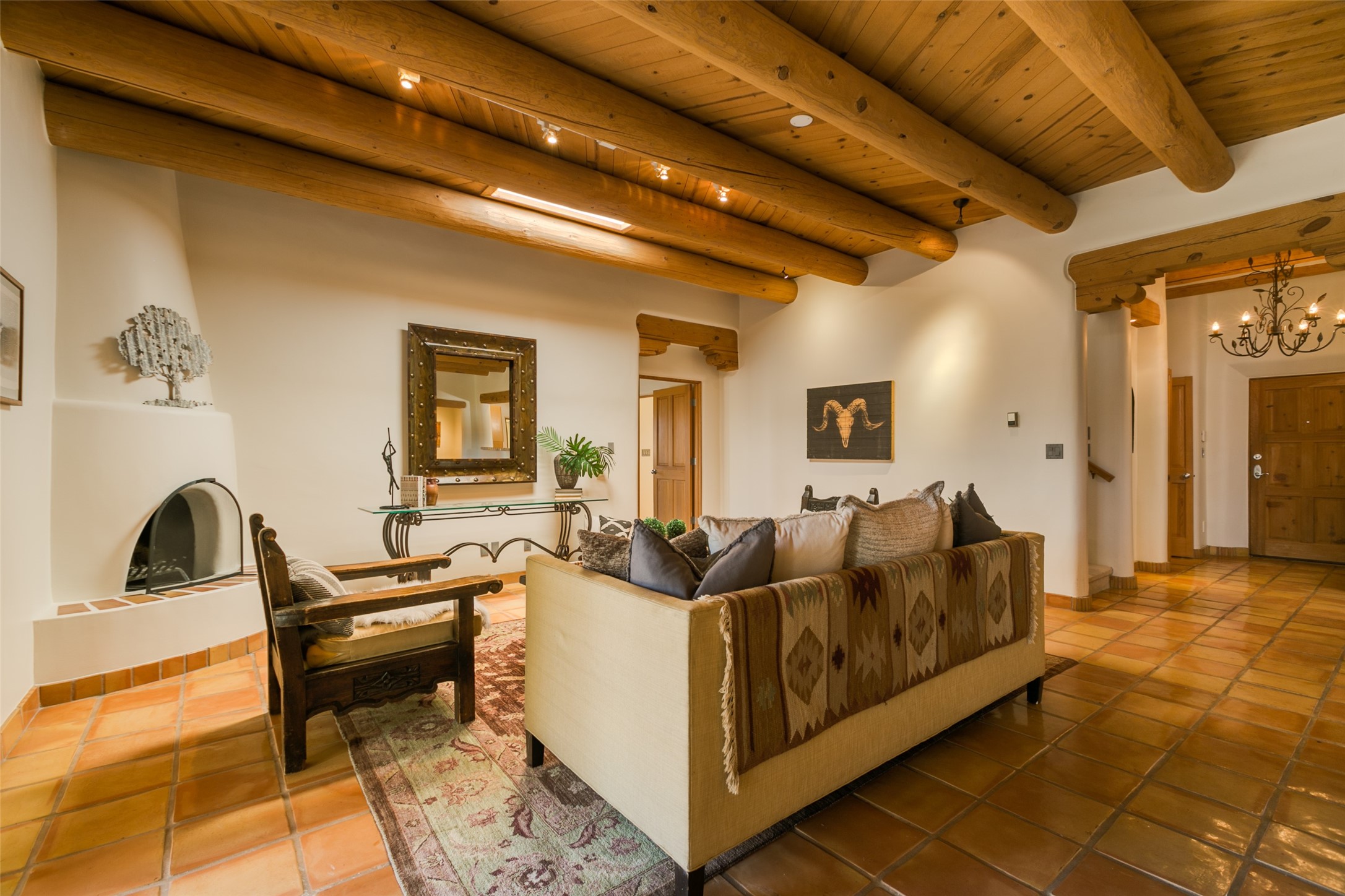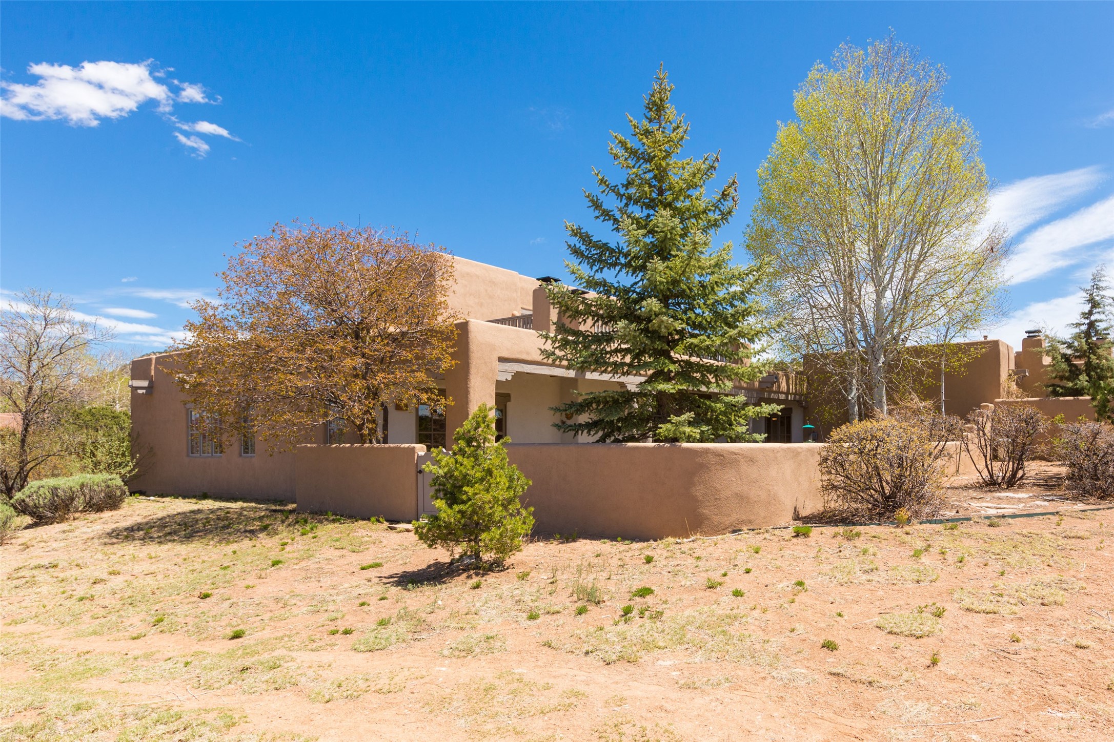 Nestled in the prestigious, 24/7 guard-gated community of Quail Run, this elegant home blends resort-style amenities with Southwestern charm. Enjoy scenic trails, tennis and pickleball courts, a fitness center with indoor lap and hydrotherapy pools, fitness classes, a 9-hole PGA-rated golf course, on-site dining, and 24-hour security. The home features Saltillo tile, vaulted ceilings with vigas, Kiva fireplaces, picture windows, and an open-concept layout flowing to a private courtyard and walled yard. The home includes 3 ensuite bedrooms, 4 baths, an office, and kitchen with stone island & ample cabinetry. Unwind on the outdoor deck while taking in spectacular sunsets and breathtaking mountain views. A rare chance to enjoy upscale living in one of Santa Fe's most sought-after communities.
