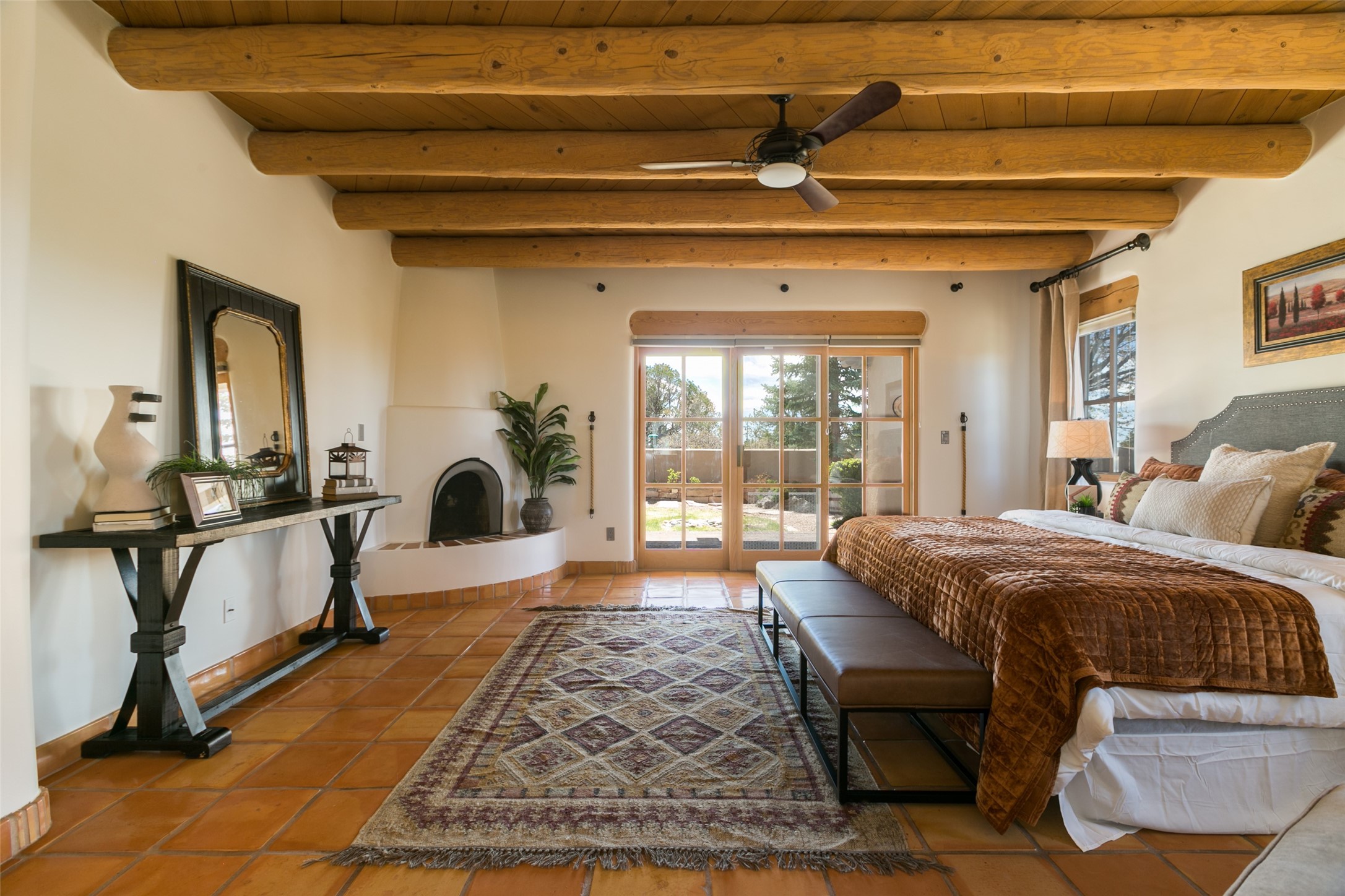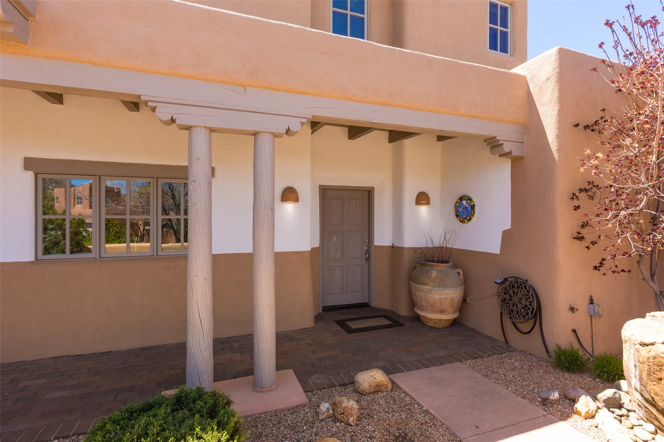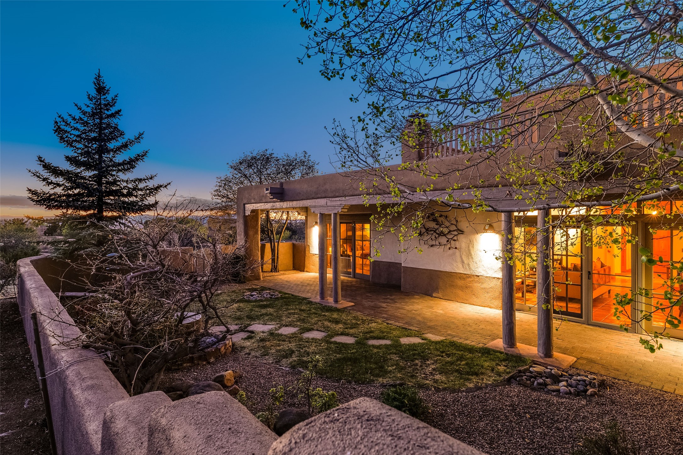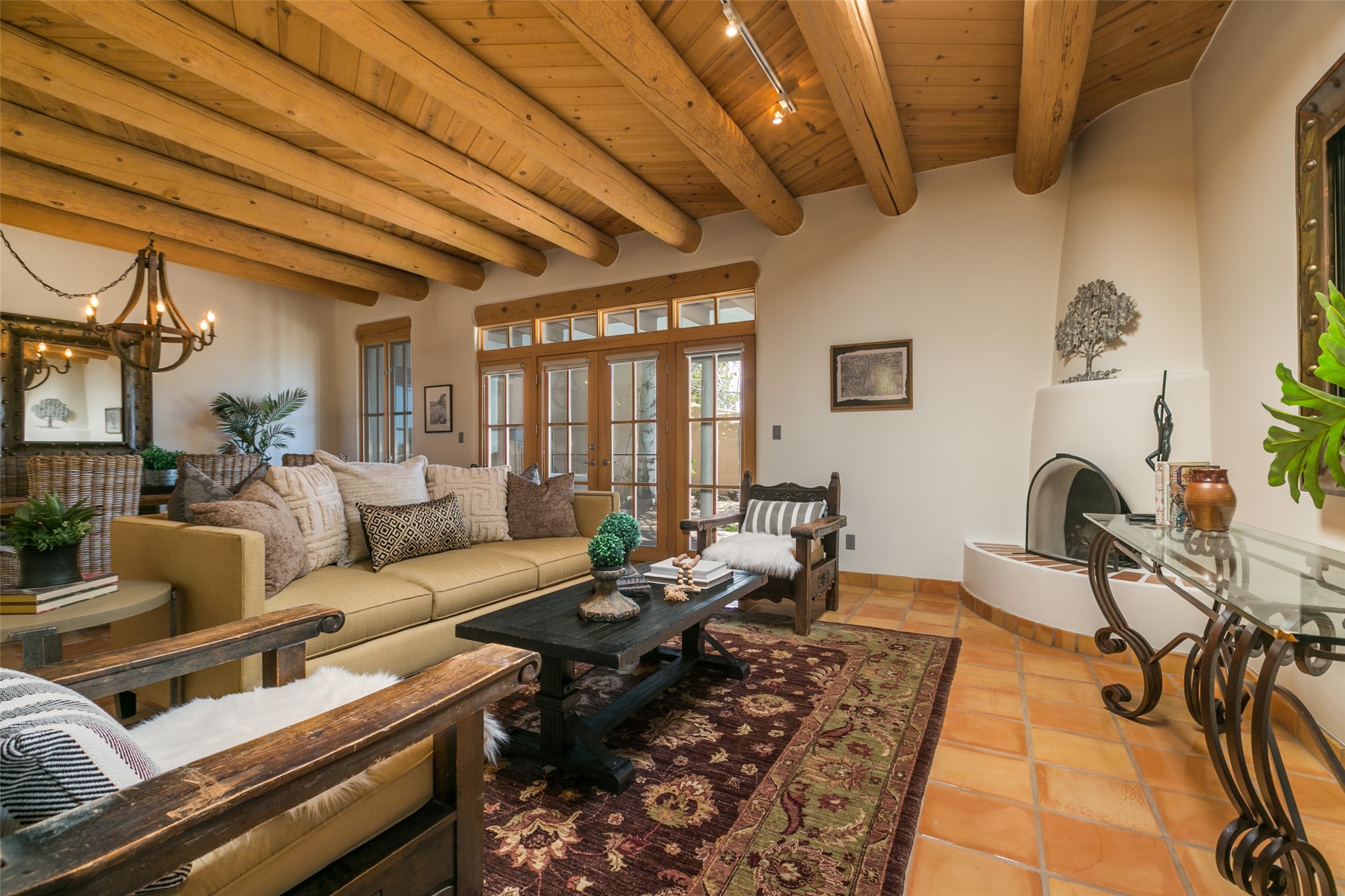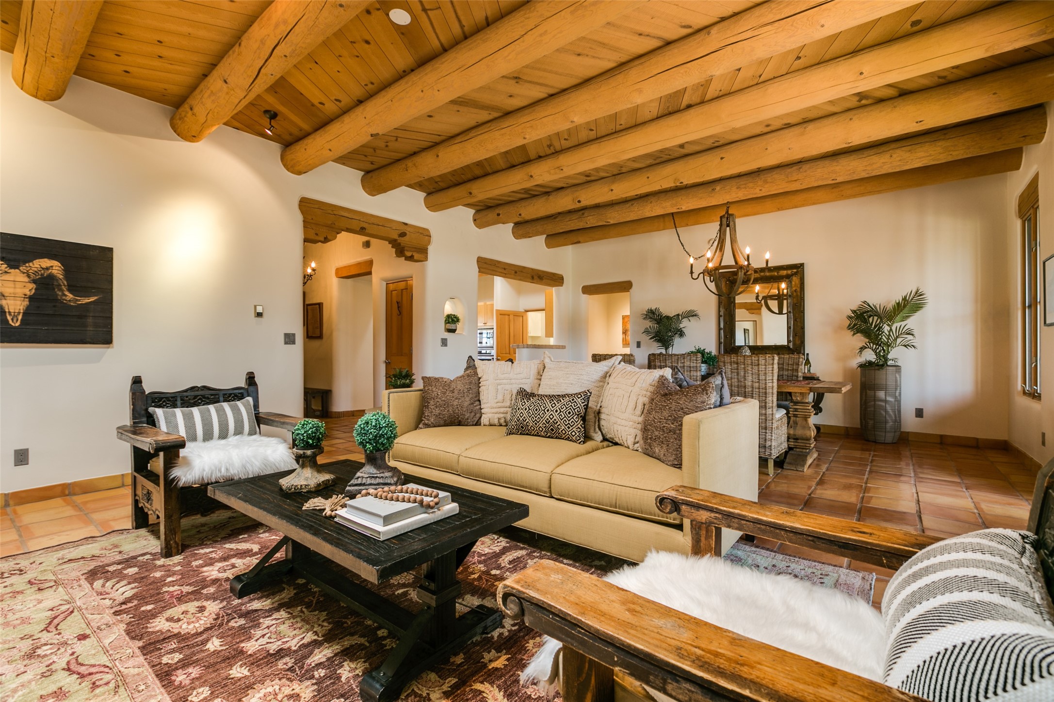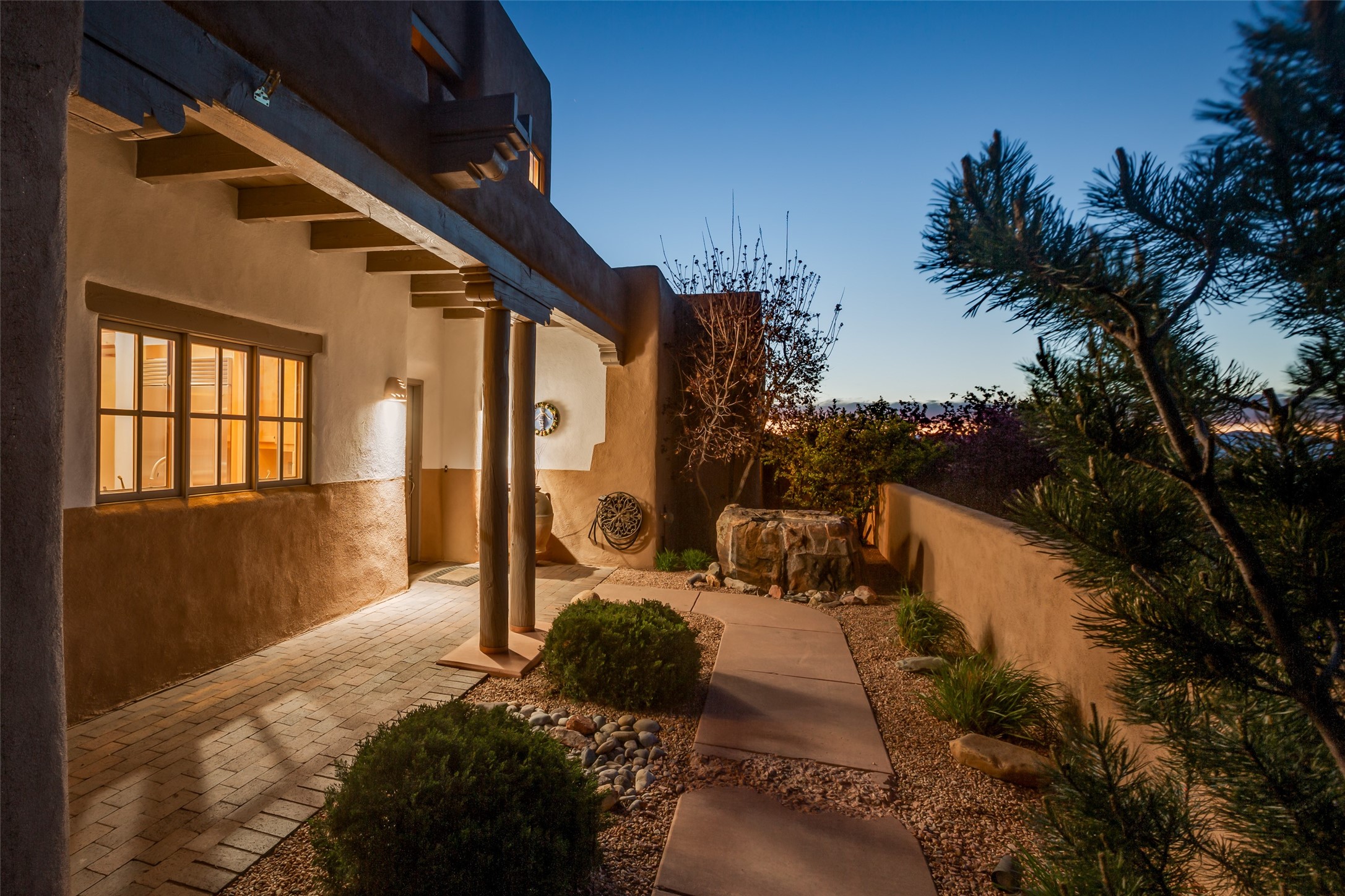 Nestled in the prestigious, 24/7 guard-gated community of Quail Run, this elegant home blends resort-style amenities with Southwestern charm. Enjoy scenic trails, tennis and pickleball courts, a fitness center with indoor lap and hydrotherapy pools, fitness classes, a 9-hole PGA-rated golf course, on-site dining, and 24-hour security. The home features Saltillo tile, vaulted ceilings with vigas, Kiva fireplaces, picture windows, and an open-concept layout flowing to a private courtyard and walled yard. The home includes 3 ensuite bedrooms, 4 baths, an office, and kitchen with stone island & ample cabinetry. Unwind on the outdoor deck while taking in spectacular sunsets and breathtaking mountain views. A rare chance to enjoy upscale living in one of Santa Fe's most sought-after communities.