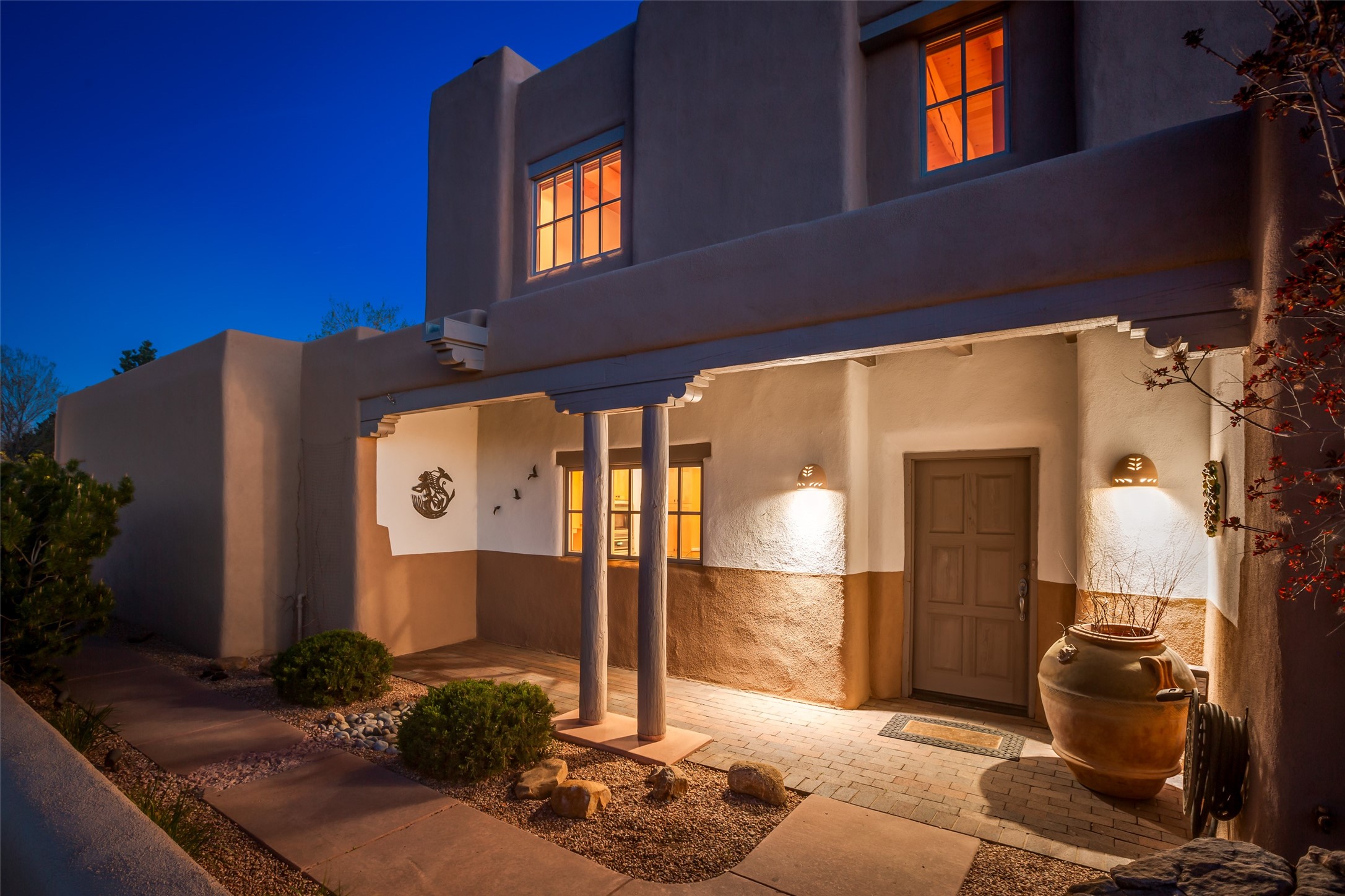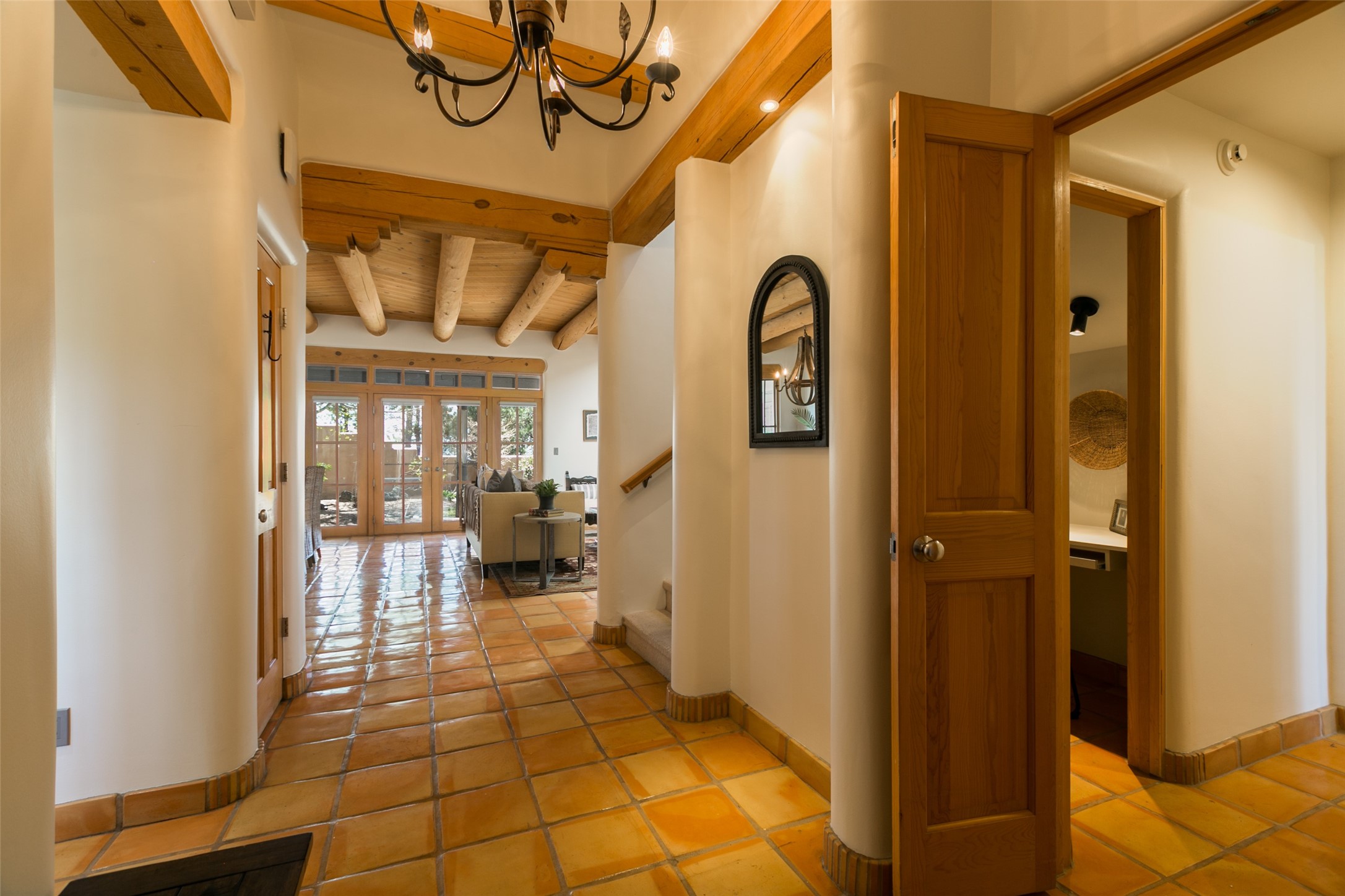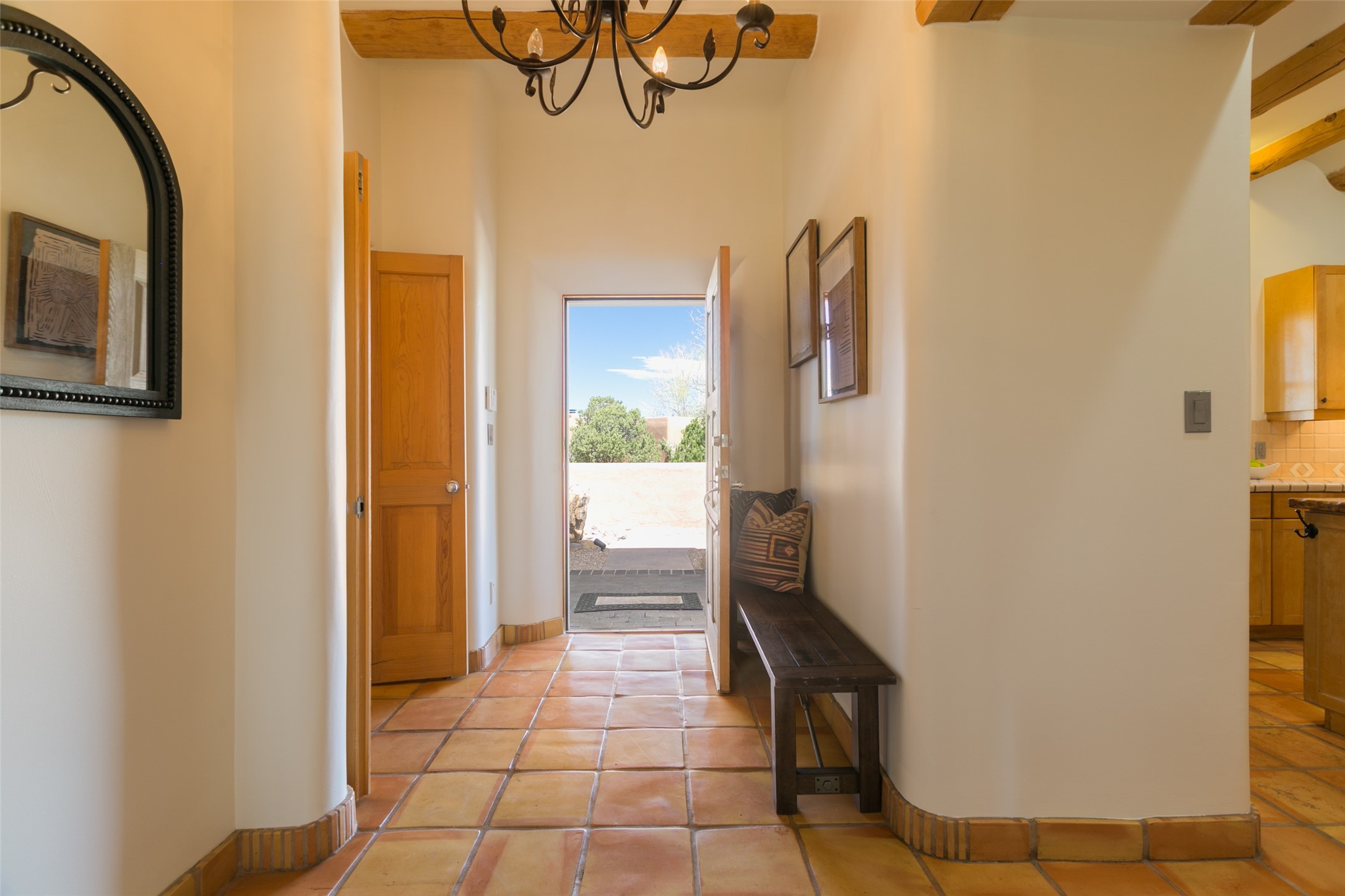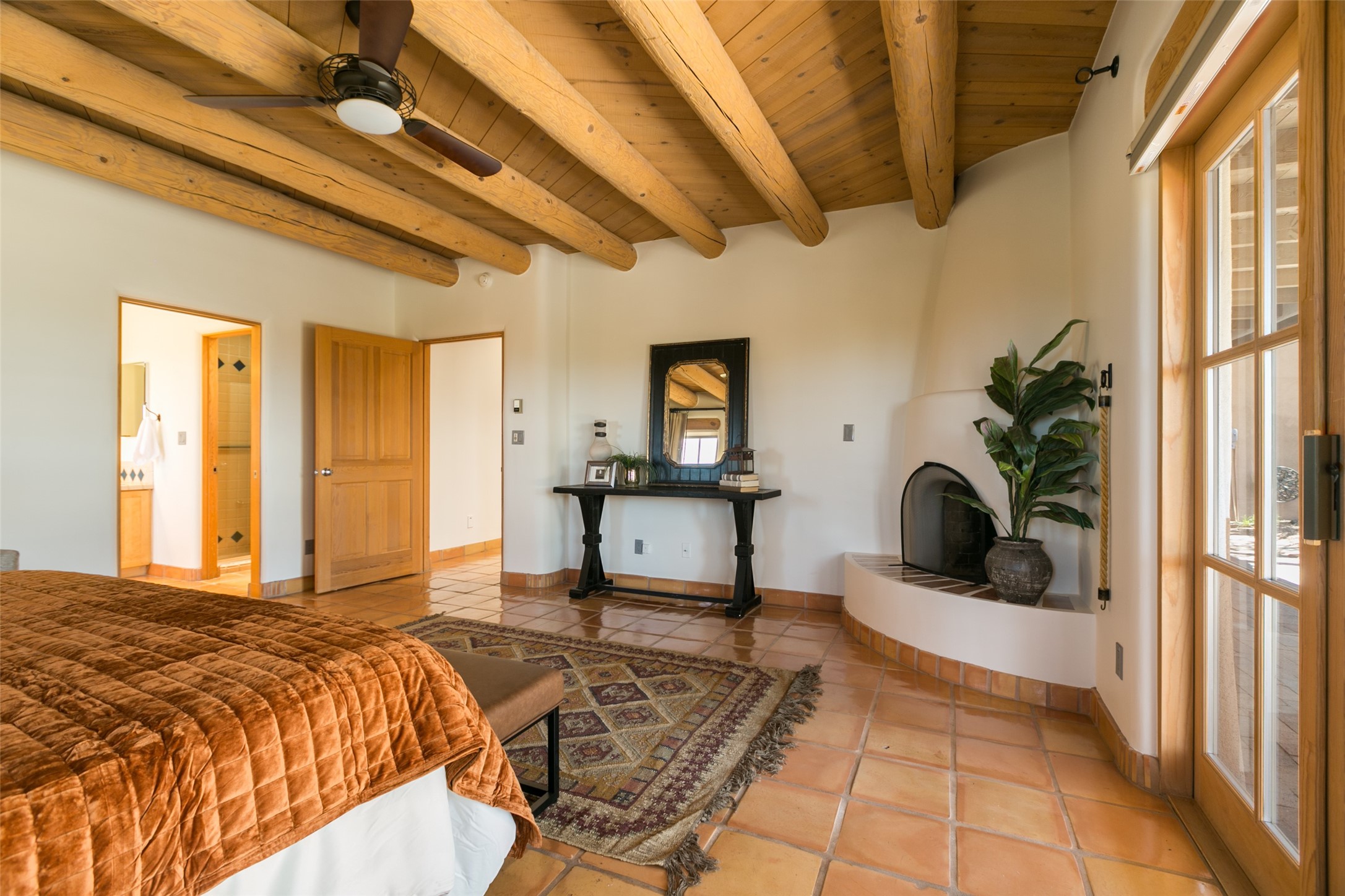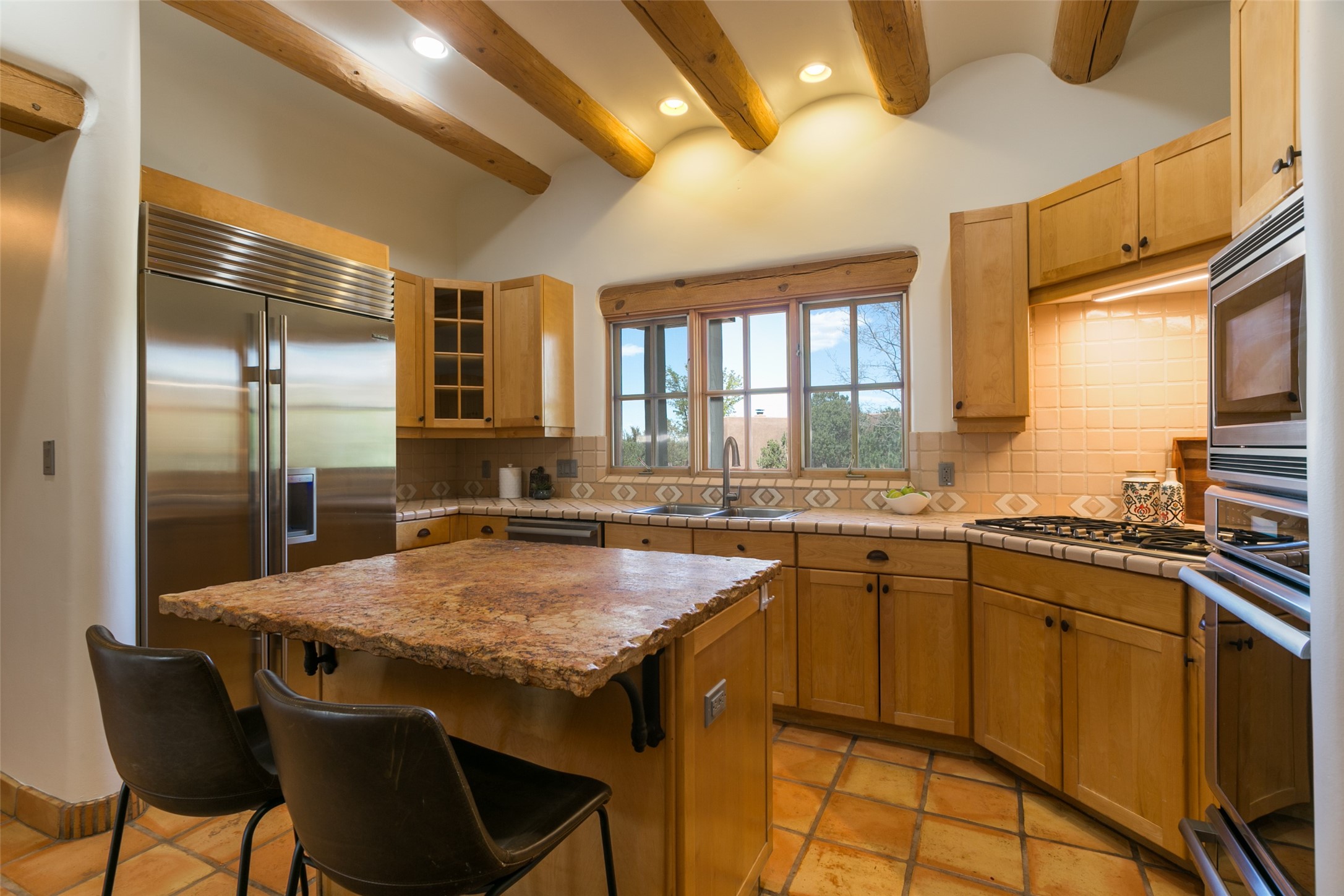 Nestled in the prestigious, 24/7 guard-gated community of Quail Run, this elegant home blends resort-style amenities with Southwestern charm. Enjoy scenic trails, tennis and pickleball courts, a fitness center with indoor lap and hydrotherapy pools, fitness classes, a 9-hole PGA-rated golf course, on-site dining, and 24-hour security. The home features Saltillo tile, vaulted ceilings with vigas, Kiva fireplaces, picture windows, and an open-concept layout flowing to a private courtyard and walled yard. The home includes 3 ensuite bedrooms, 4 baths, an office, and kitchen with stone island & ample cabinetry. Unwind on the outdoor deck while taking in spectacular sunsets and breathtaking mountain views. A rare chance to enjoy upscale living in one of Santa Fe's most sought-after communities.