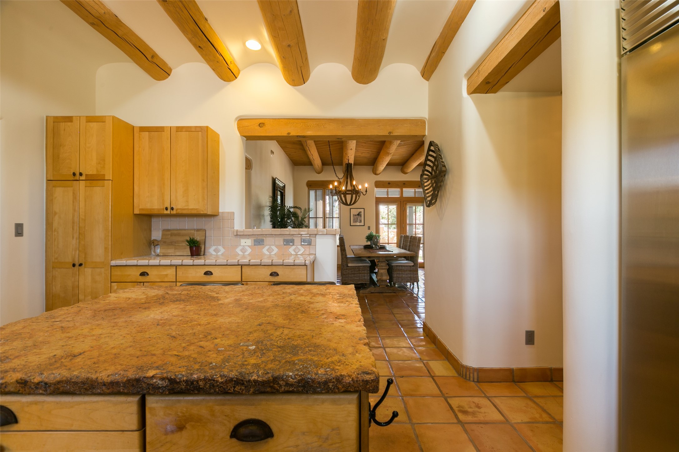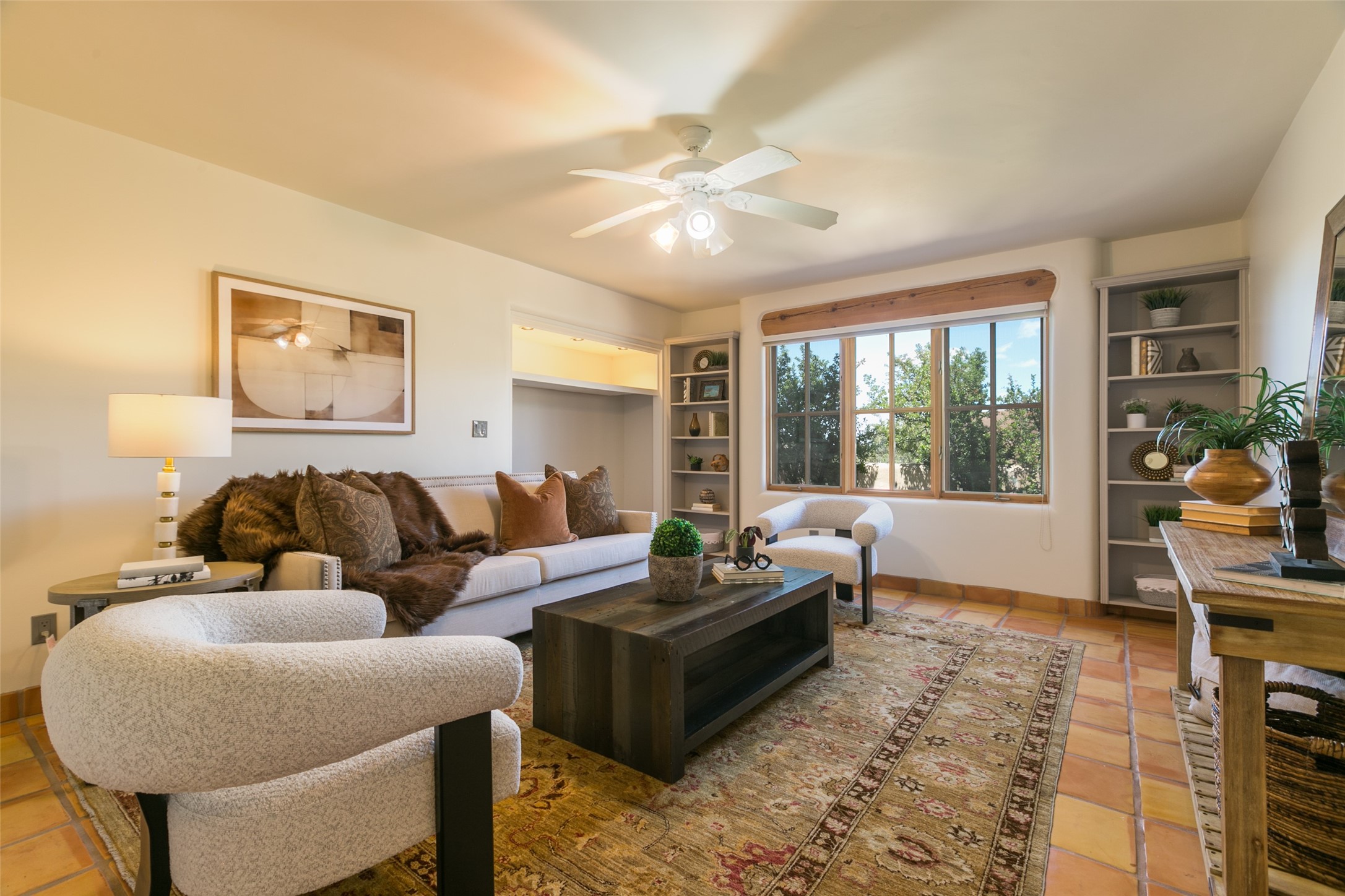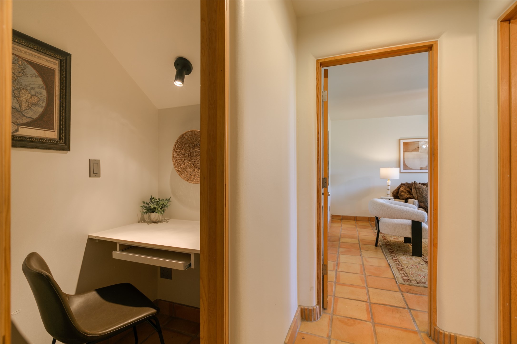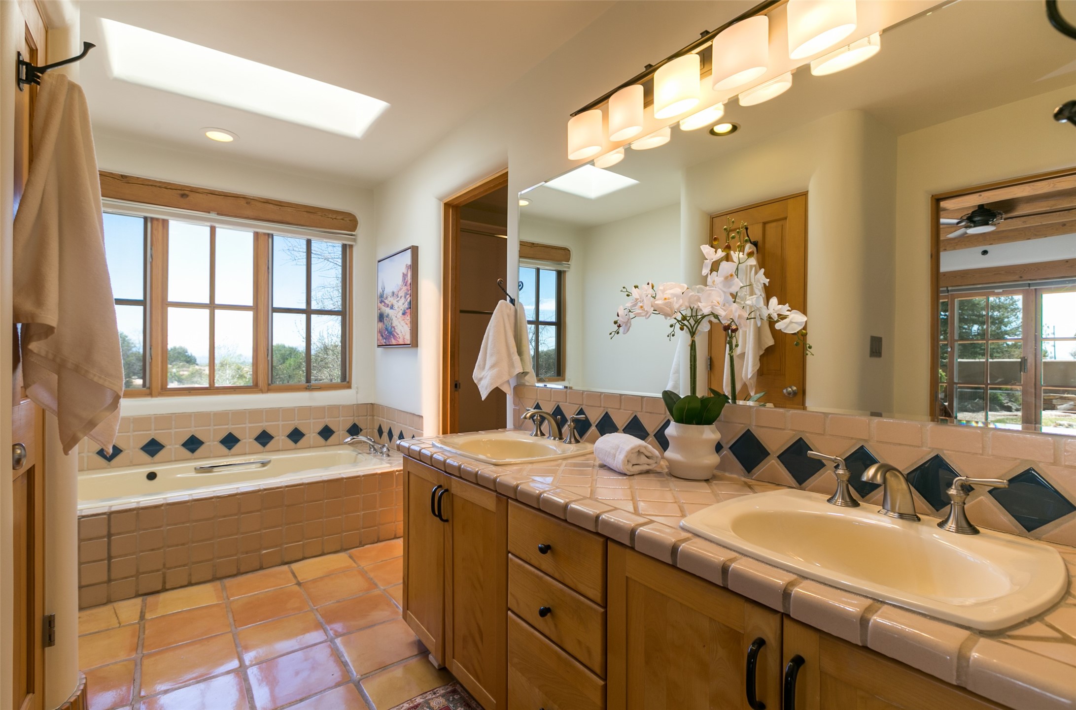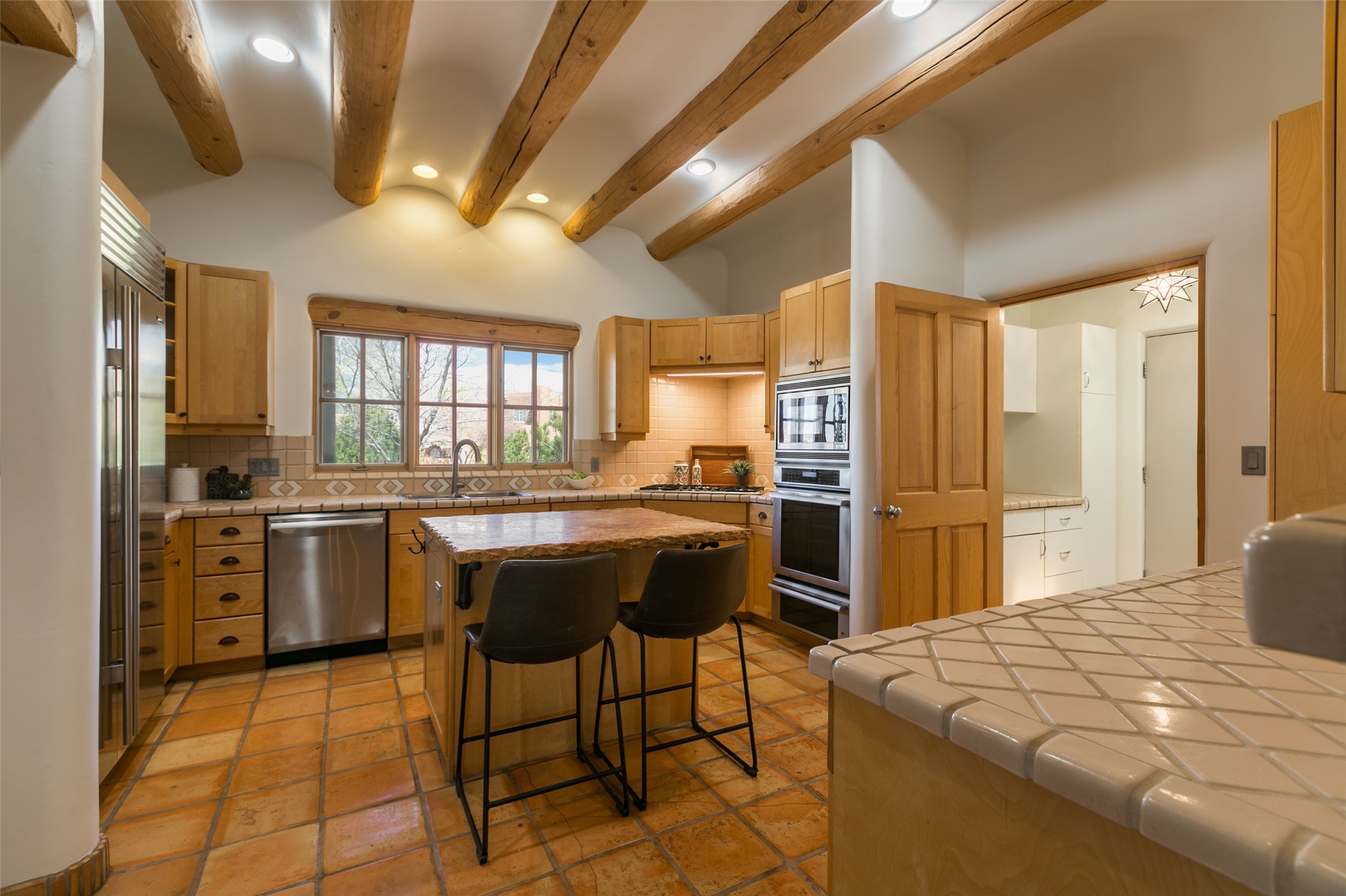 Nestled in the prestigious, 24/7 guard-gated community of Quail Run, this elegant home blends resort-style amenities with Southwestern charm. Enjoy scenic trails, tennis and pickleball courts, a fitness center with indoor lap and hydrotherapy pools, fitness classes, a 9-hole PGA-rated golf course, on-site dining, and 24-hour security. The home features Saltillo tile, vaulted ceilings with vigas, Kiva fireplaces, picture windows, and an open-concept layout flowing to a private courtyard and walled yard. The home includes 3 ensuite bedrooms, 4 baths, an office, and kitchen with stone island & ample cabinetry. Unwind on the outdoor deck while taking in spectacular sunsets and breathtaking mountain views. A rare chance to enjoy upscale living in one of Santa Fe's most sought-after communities.