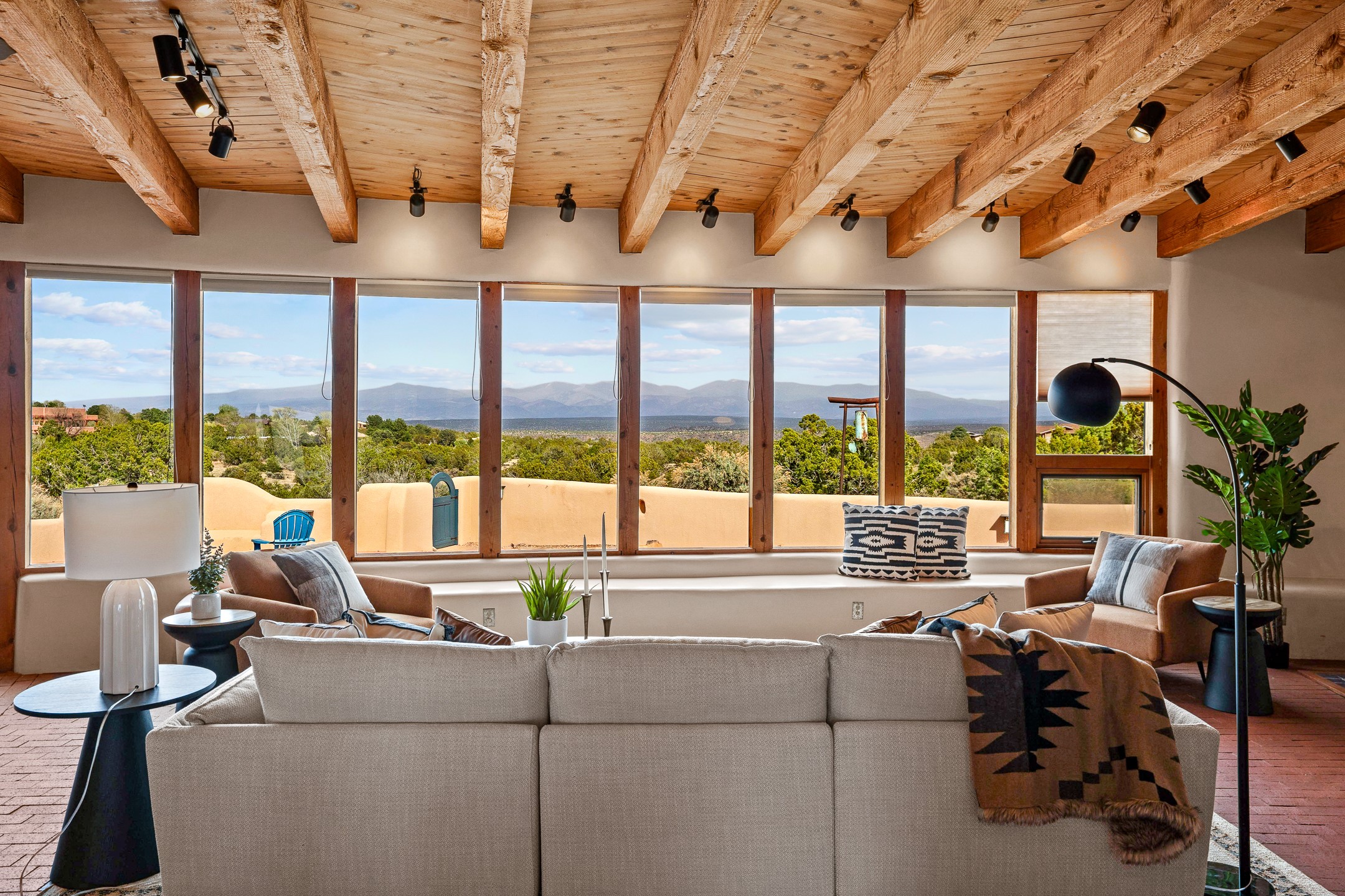 Adobe Masterpiece, Entertainer's Dream, 2.04 Acres Backing to County Land, 4917 Sq Ft, Living Room with Incredibly Stunning Views, High-End Finishes, Vigas, Beams, Kiva Fireplace, Extensive Professional Landscaping, Attached Casita, 575 Sq Ft Shop with Roll-Up, Mini-Split Cooling, Chicken Coop, Garden Beds, and More! Welcome to 155 Piedra Loop!This exquisite property caters to those with discerning taste. Situated on 2.04 acres backing to County land with White Rock Canyon just beyond, the property features 360 degree views, from the Jemez Mountains to the West, and the Sangre de Cristos to the East. The house features true adobe construction, enabling the architect to create curved walls for panoramic views while following the gentle contours of the land. The living room is the showcase room, with floor to ceiling windows providing you and your guests with expansive views over the back courtyard of the Sangre de Cristos. Brick floors, vigas, and exposed beams provide a classic Southwest ambiance, while the built-in bar with beer taps will keep your guests refreshed. The kitchen is ready to accommodate large gatherings and includes a large island with an induction cooktop and overhead vent, Wolf double ovens, a plate warmer, granite countertops, generous cabinet space, a serving window to the dining room, and a wide walkway to accommodate multiple chefs and servers. The primary suite is approximately 1200 sq ft and will serve as your private sanctuary. It includes a private office, laundry room, and sitting room, in addition to the large bedroom, cedar-finished walk-in closet, and bathroom. The primary bathroom includes dual vanities, a large tub, and a walk-in shower. A private courtyard is located off the master suite. The main courtyard leading to the home has been professionally landscaped, and features a number of trees, grass with automatic sprinklers, and the entrance to the attached casita. The casita features a bedroom and a bathroom. To the north of the main house sits a separate shop, which includes a roll-up door, space for two vehicles (in tandem), and a half bathroom. The back yard includes a dog kennel / chicken coop, established garden beds, and the back courtyard for entertaining guests outdoors while taking in views of the Sangres as the sun sets behind you. This property is truly special. The sellers plan to review offers on Tuesday, April 29, so schedule your showing today before this exquisite property is gone!