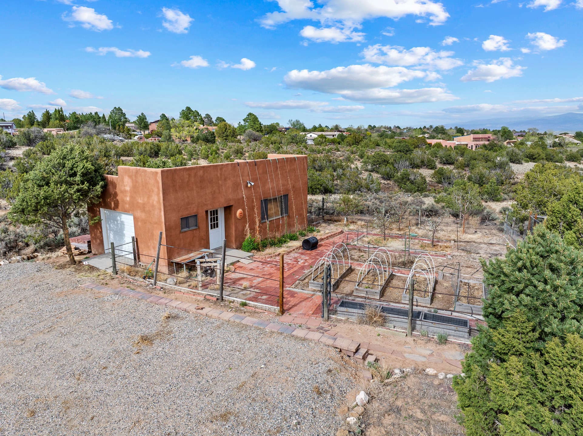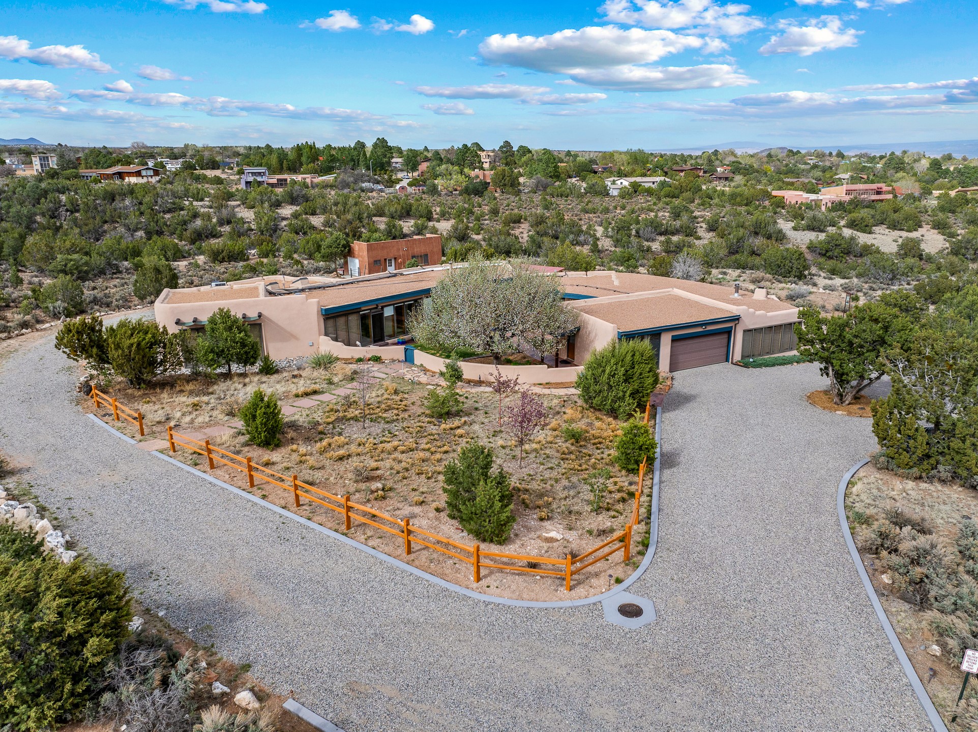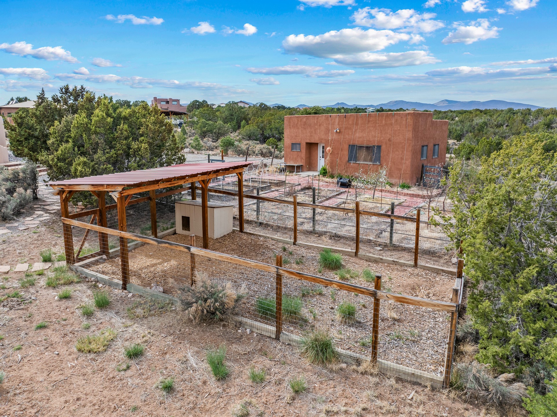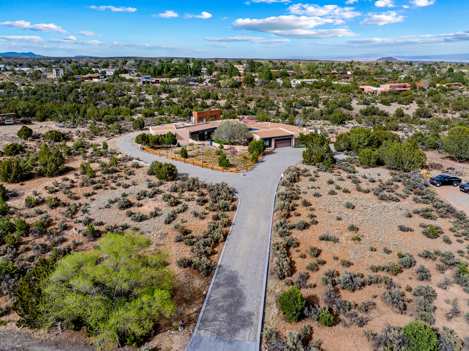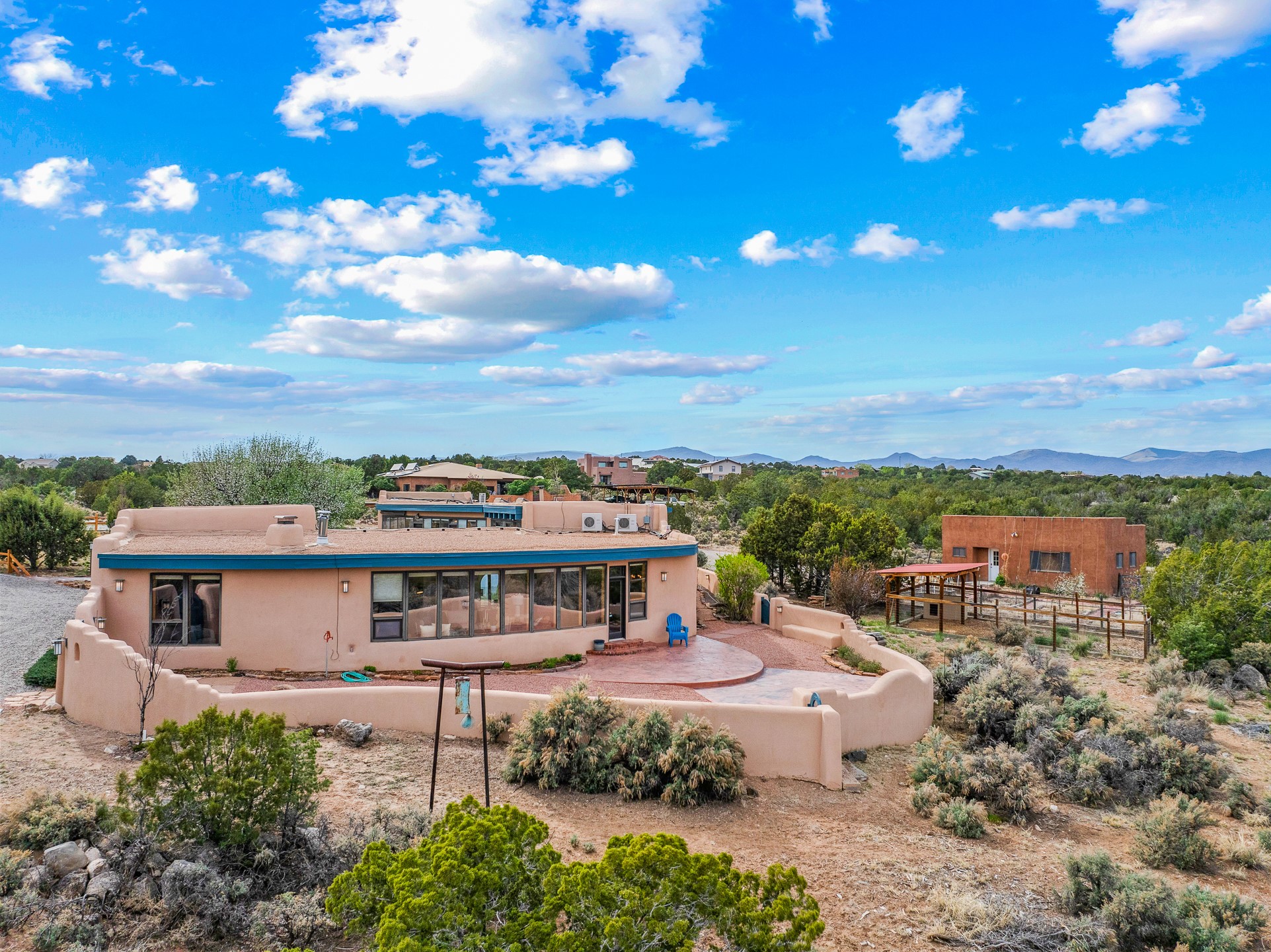 Adobe Masterpiece, Entertainer's Dream, 2.04 Acres Backing to County Land, 4917 Sq Ft, Living Room with Incredibly Stunning Views, High-End Finishes, Vigas, Beams, Kiva Fireplace, Extensive Professional Landscaping, Attached Casita, 575 Sq Ft Shop with Roll-Up, Mini-Split Cooling, Chicken Coop, Garden Beds, and More! Welcome to 155 Piedra Loop!This exquisite property caters to those with discerning taste. Situated on 2.04 acres backing to County land with White Rock Canyon just beyond, the property features 360 degree views, from the Jemez Mountains to the West, and the Sangre de Cristos to the East. The house features true adobe construction, enabling the architect to create curved walls for panoramic views while following the gentle contours of the land. The living room is the showcase room, with floor to ceiling windows providing you and your guests with expansive views over the back courtyard of the Sangre de Cristos. Brick floors, vigas, and exposed beams provide a classic Southwest ambiance, while the built-in bar with beer taps will keep your guests refreshed. The kitchen is ready to accommodate large gatherings and includes a large island with an induction cooktop and overhead vent, Wolf double ovens, a plate warmer, granite countertops, generous cabinet space, a serving window to the dining room, and a wide walkway to accommodate multiple chefs and servers. The primary suite is approximately 1200 sq ft and will serve as your private sanctuary. It includes a private office, laundry room, and sitting room, in addition to the large bedroom, cedar-finished walk-in closet, and bathroom. The primary bathroom includes dual vanities, a large tub, and a walk-in shower. A private courtyard is located off the master suite. The main courtyard leading to the home has been professionally landscaped, and features a number of trees, grass with automatic sprinklers, and the entrance to the attached casita. The casita features a bedroom and a bathroom. To the north of the main house sits a separate shop, which includes a roll-up door, space for two vehicles (in tandem), and a half bathroom. The back yard includes a dog kennel / chicken coop, established garden beds, and the back courtyard for entertaining guests outdoors while taking in views of the Sangres as the sun sets behind you. This property is truly special. The sellers plan to review offers on Tuesday, April 29, so schedule your showing today before this exquisite property is gone!