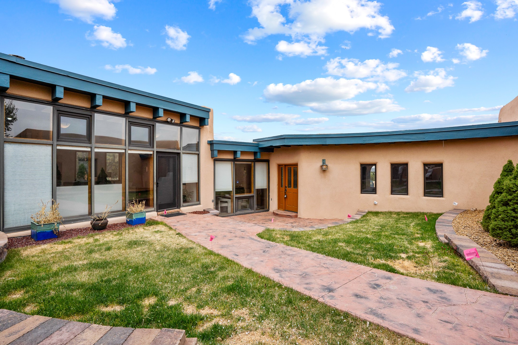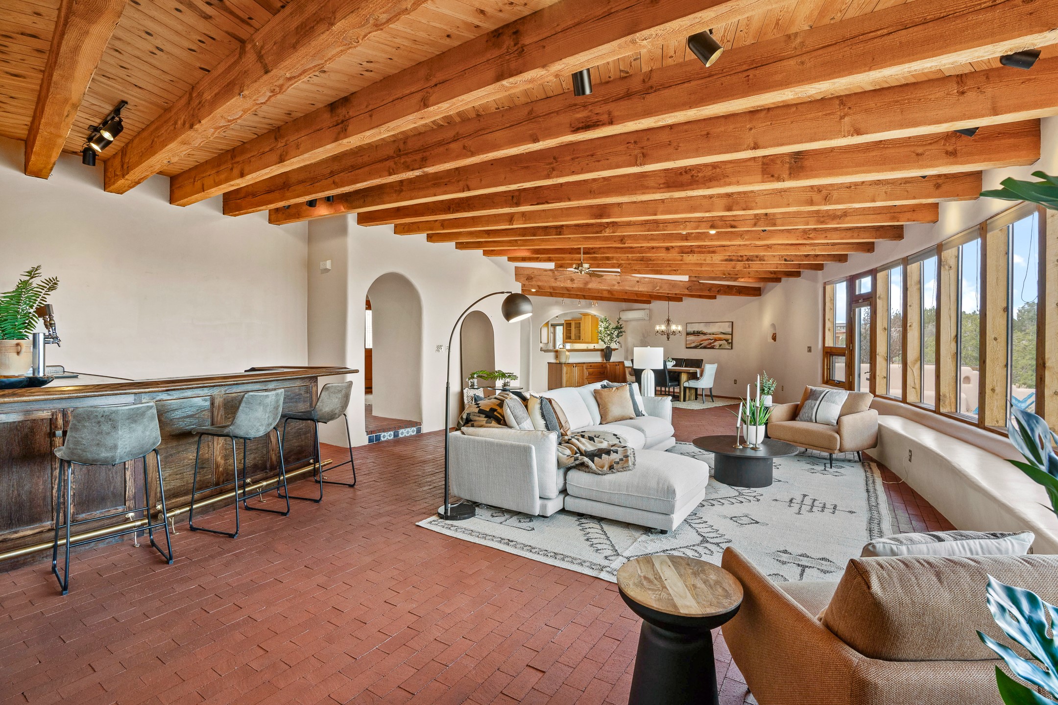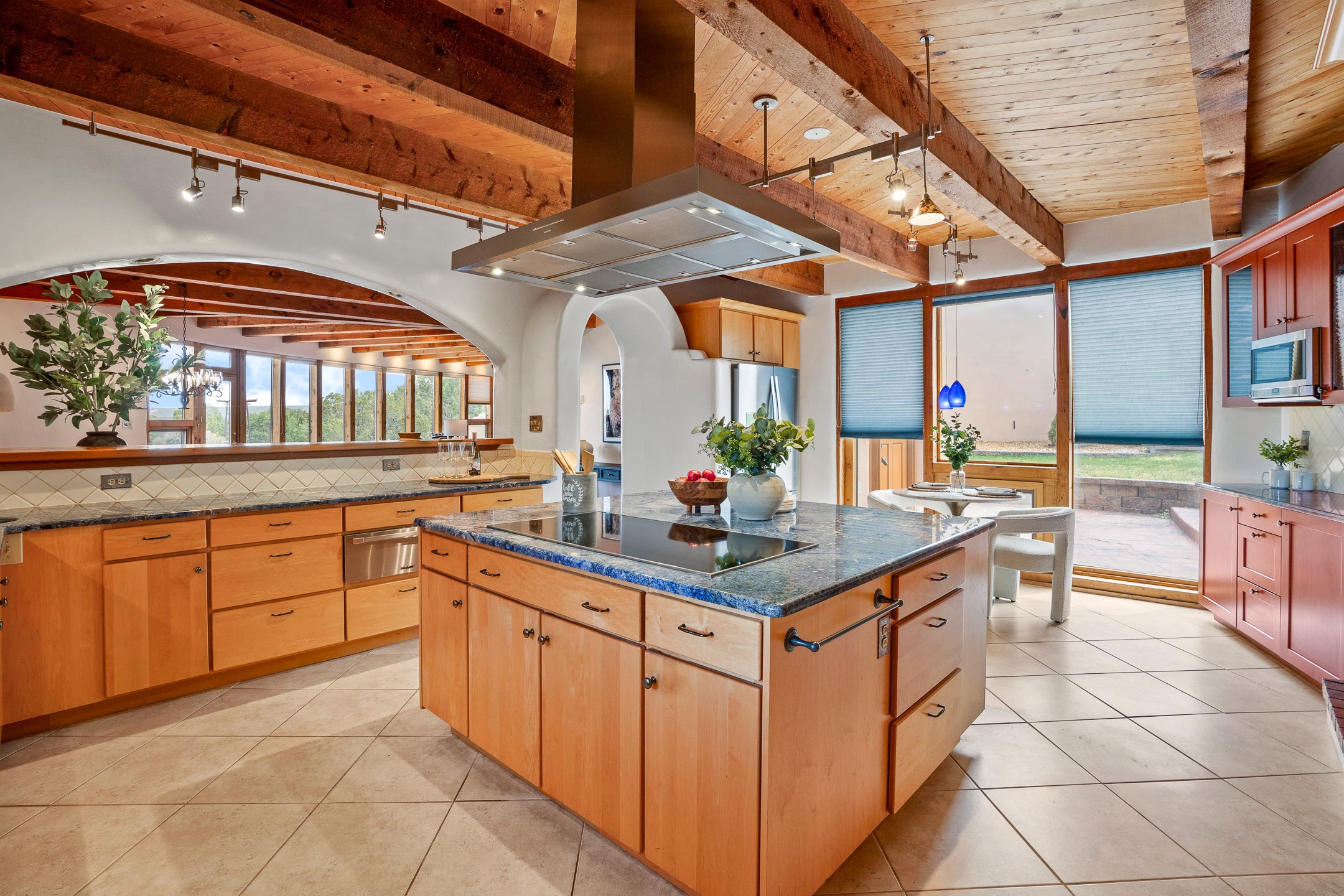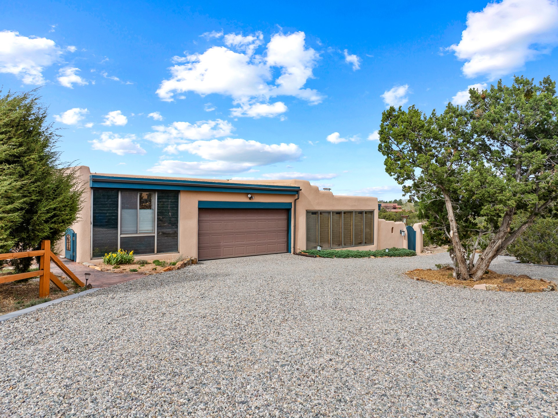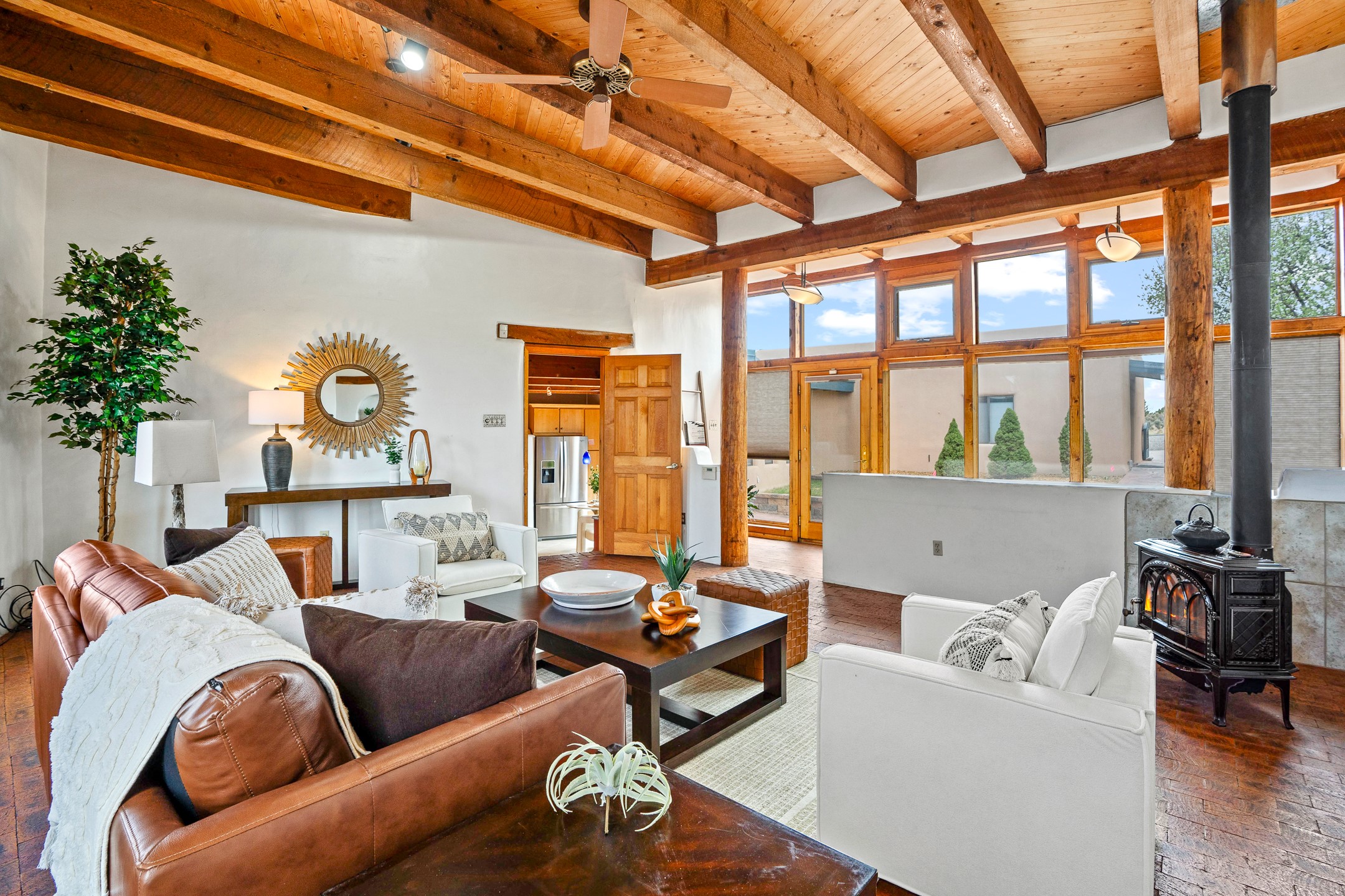 Adobe Masterpiece, Entertainer's Dream, 2.04 Acres Backing to County Land, 4917 Sq Ft, Living Room with Incredibly Stunning Views, High-End Finishes, Vigas, Beams, Kiva Fireplace, Extensive Professional Landscaping, Attached Casita, 575 Sq Ft Shop with Roll-Up, Mini-Split Cooling, Chicken Coop, Garden Beds, and More! Welcome to 155 Piedra Loop!This exquisite property caters to those with discerning taste. Situated on 2.04 acres backing to County land with White Rock Canyon just beyond, the property features 360 degree views, from the Jemez Mountains to the West, and the Sangre de Cristos to the East. The house features true adobe construction, enabling the architect to create curved walls for panoramic views while following the gentle contours of the land. The living room is the showcase room, with floor to ceiling windows providing you and your guests with expansive views over the back courtyard of the Sangre de Cristos. Brick floors, vigas, and exposed beams provide a classic Southwest ambiance, while the built-in bar with beer taps will keep your guests refreshed. The kitchen is ready to accommodate large gatherings and includes a large island with an induction cooktop and overhead vent, Wolf double ovens, a plate warmer, granite countertops, generous cabinet space, a serving window to the dining room, and a wide walkway to accommodate multiple chefs and servers. The primary suite is approximately 1200 sq ft and will serve as your private sanctuary. It includes a private office, laundry room, and sitting room, in addition to the large bedroom, cedar-finished walk-in closet, and bathroom. The primary bathroom includes dual vanities, a large tub, and a walk-in shower. A private courtyard is located off the master suite. The main courtyard leading to the home has been professionally landscaped, and features a number of trees, grass with automatic sprinklers, and the entrance to the attached casita. The casita features a bedroom and a bathroom. To the north of the main house sits a separate shop, which includes a roll-up door, space for two vehicles (in tandem), and a half bathroom. The back yard includes a dog kennel / chicken coop, established garden beds, and the back courtyard for entertaining guests outdoors while taking in views of the Sangres as the sun sets behind you. This property is truly special. The sellers plan to review offers on Tuesday, April 29, so schedule your showing today before this exquisite property is gone!