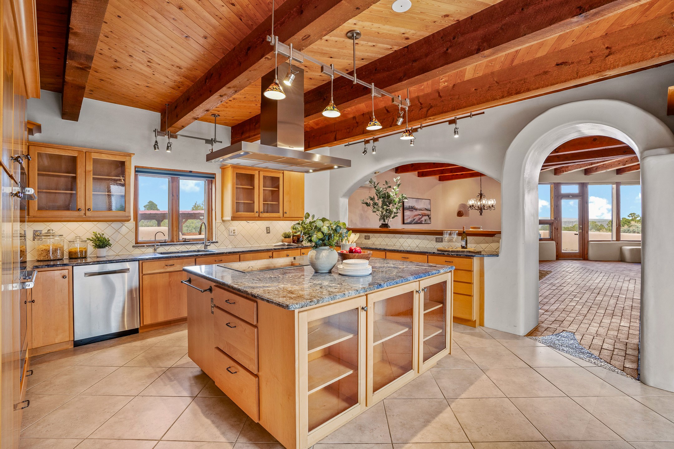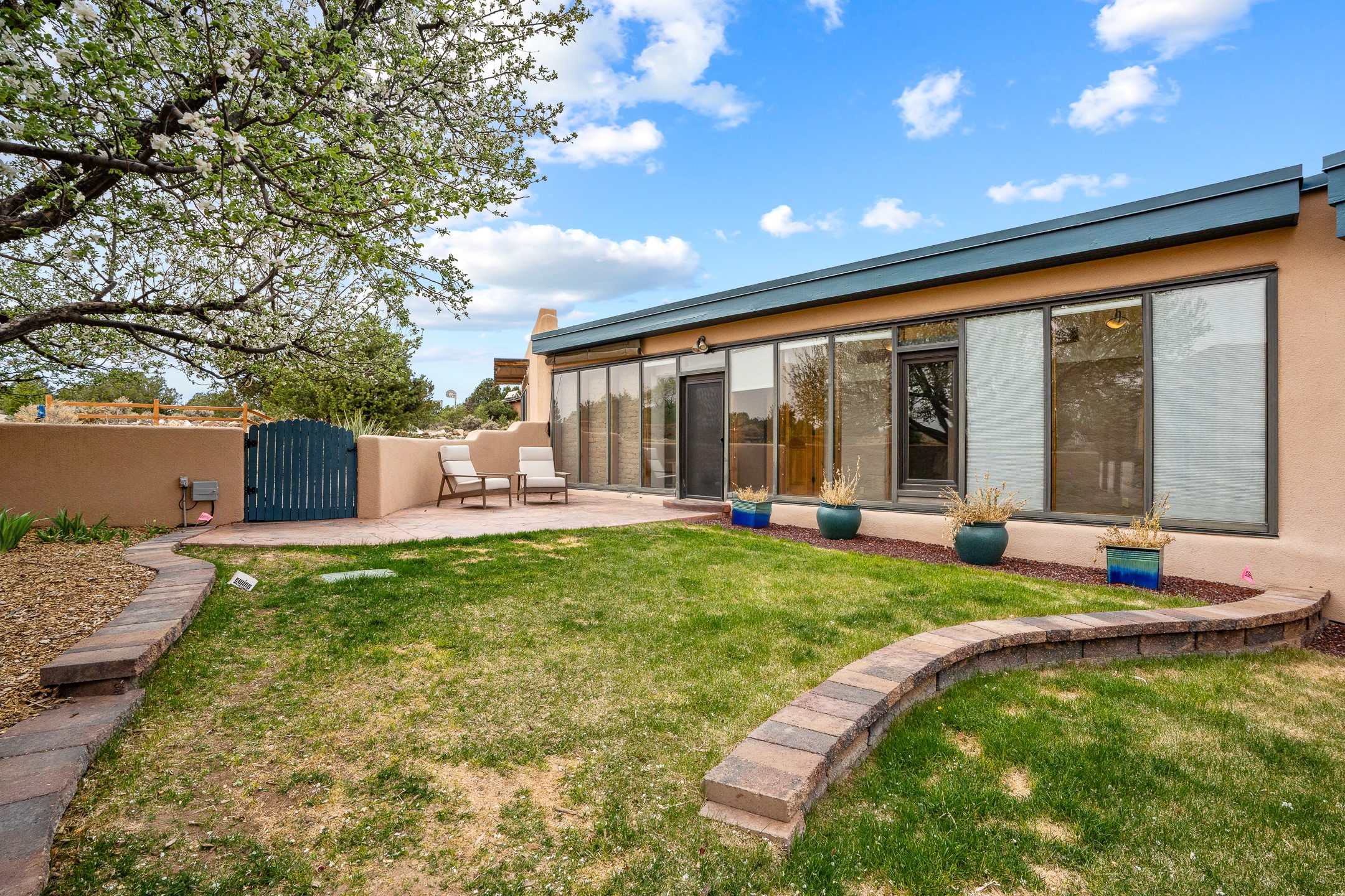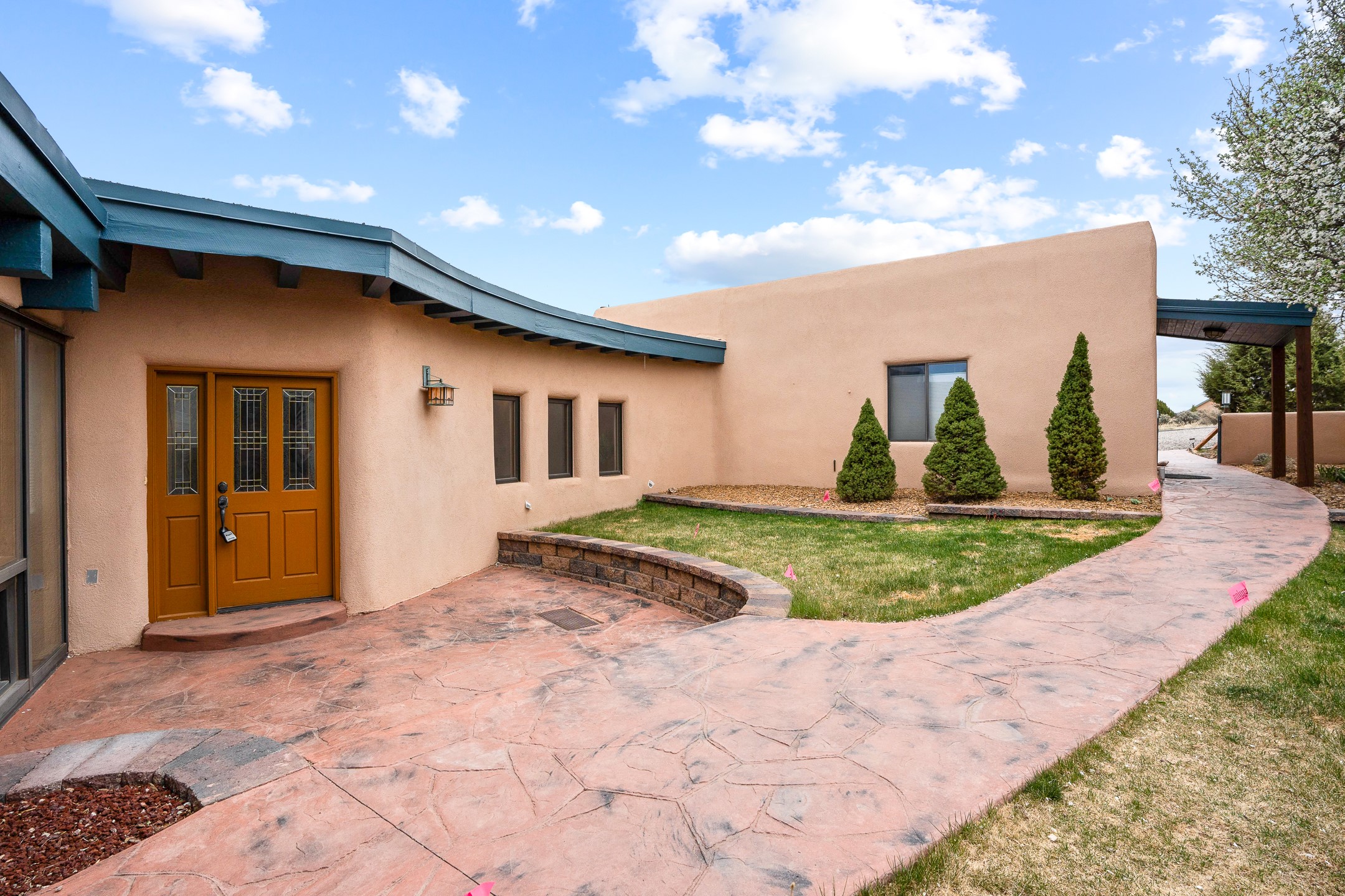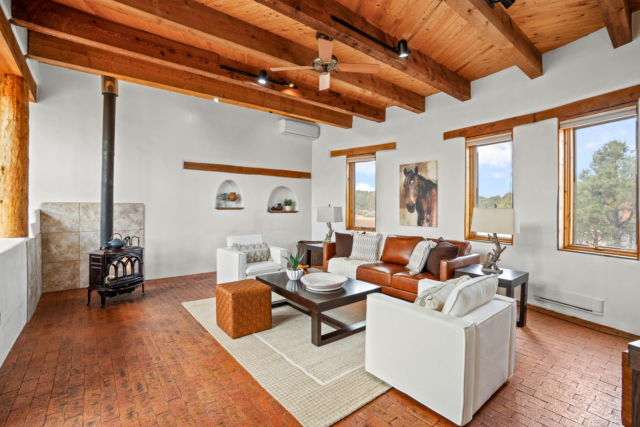 Adobe Masterpiece, Entertainer's Dream, 2.04 Acres Backing to County Land, 4917 Sq Ft, Living Room with Incredibly Stunning Views, High-End Finishes, Vigas, Beams, Kiva Fireplace, Extensive Professional Landscaping, Attached Casita, 575 Sq Ft Shop with Roll-Up, Mini-Split Cooling, Chicken Coop, Garden Beds, and More! Welcome to 155 Piedra Loop!This exquisite property caters to those with discerning taste. Situated on 2.04 acres backing to County land with White Rock Canyon just beyond, the property features 360 degree views, from the Jemez Mountains to the West, and the Sangre de Cristos to the East. The house features true adobe construction, enabling the architect to create curved walls for panoramic views while following the gentle contours of the land. The living room is the showcase room, with floor to ceiling windows providing you and your guests with expansive views over the back courtyard of the Sangre de Cristos. Brick floors, vigas, and exposed beams provide a classic Southwest ambiance, while the built-in bar with beer taps will keep your guests refreshed. The kitchen is ready to accommodate large gatherings and includes a large island with an induction cooktop and overhead vent, Wolf double ovens, a plate warmer, granite countertops, generous cabinet space, a serving window to the dining room, and a wide walkway to accommodate multiple chefs and servers. The primary suite is approximately 1200 sq ft and will serve as your private sanctuary. It includes a private office, laundry room, and sitting room, in addition to the large bedroom, cedar-finished walk-in closet, and bathroom. The primary bathroom includes dual vanities, a large tub, and a walk-in shower. A private courtyard is located off the master suite. The main courtyard leading to the home has been professionally landscaped, and features a number of trees, grass with automatic sprinklers, and the entrance to the attached casita. The casita features a bedroom and a bathroom. To the north of the main house sits a separate shop, which includes a roll-up door, space for two vehicles (in tandem), and a half bathroom. The back yard includes a dog kennel / chicken coop, established garden beds, and the back courtyard for entertaining guests outdoors while taking in views of the Sangres as the sun sets behind you. This property is truly special. The sellers plan to review offers on Tuesday, April 29, so schedule your showing today before this exquisite property is gone!