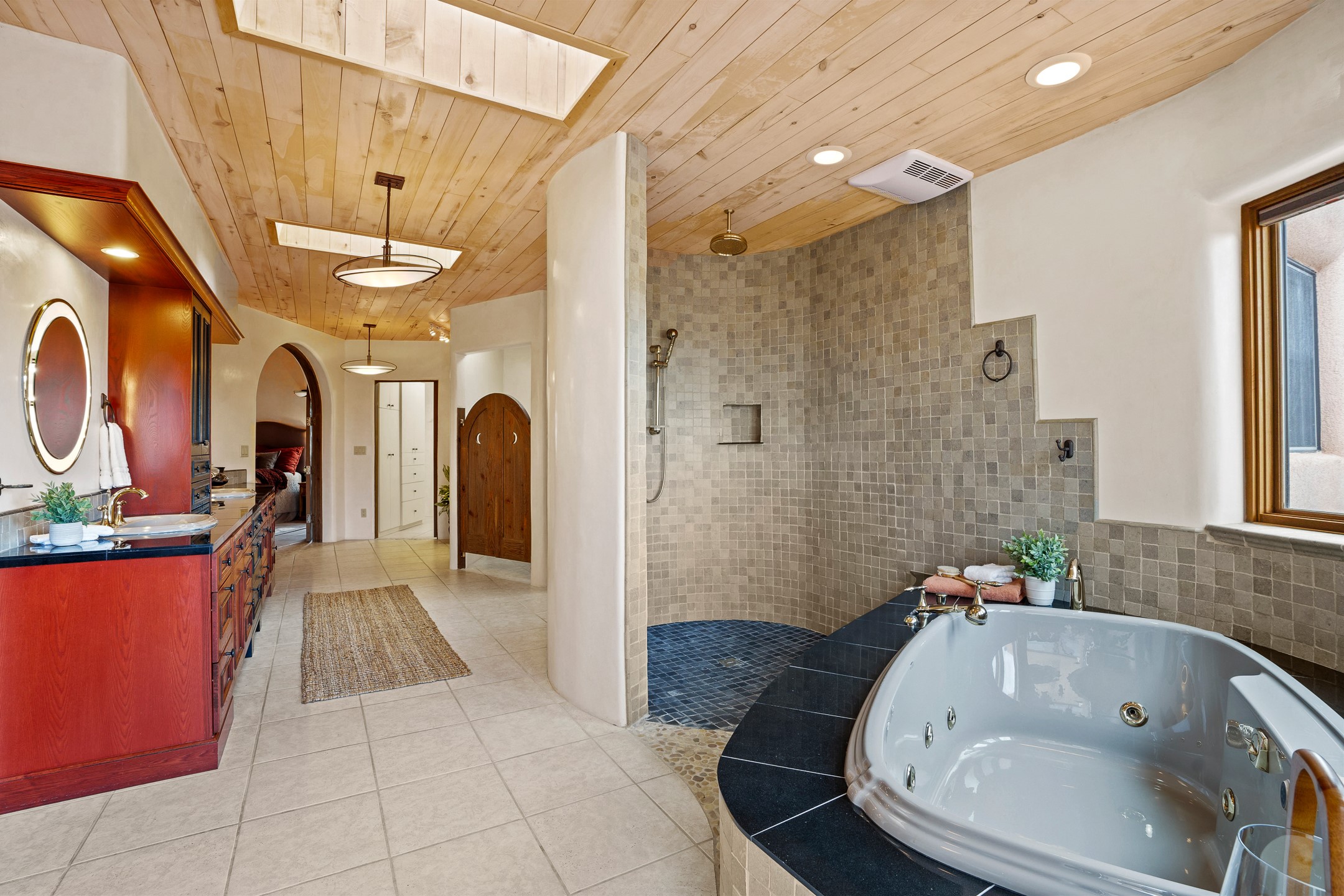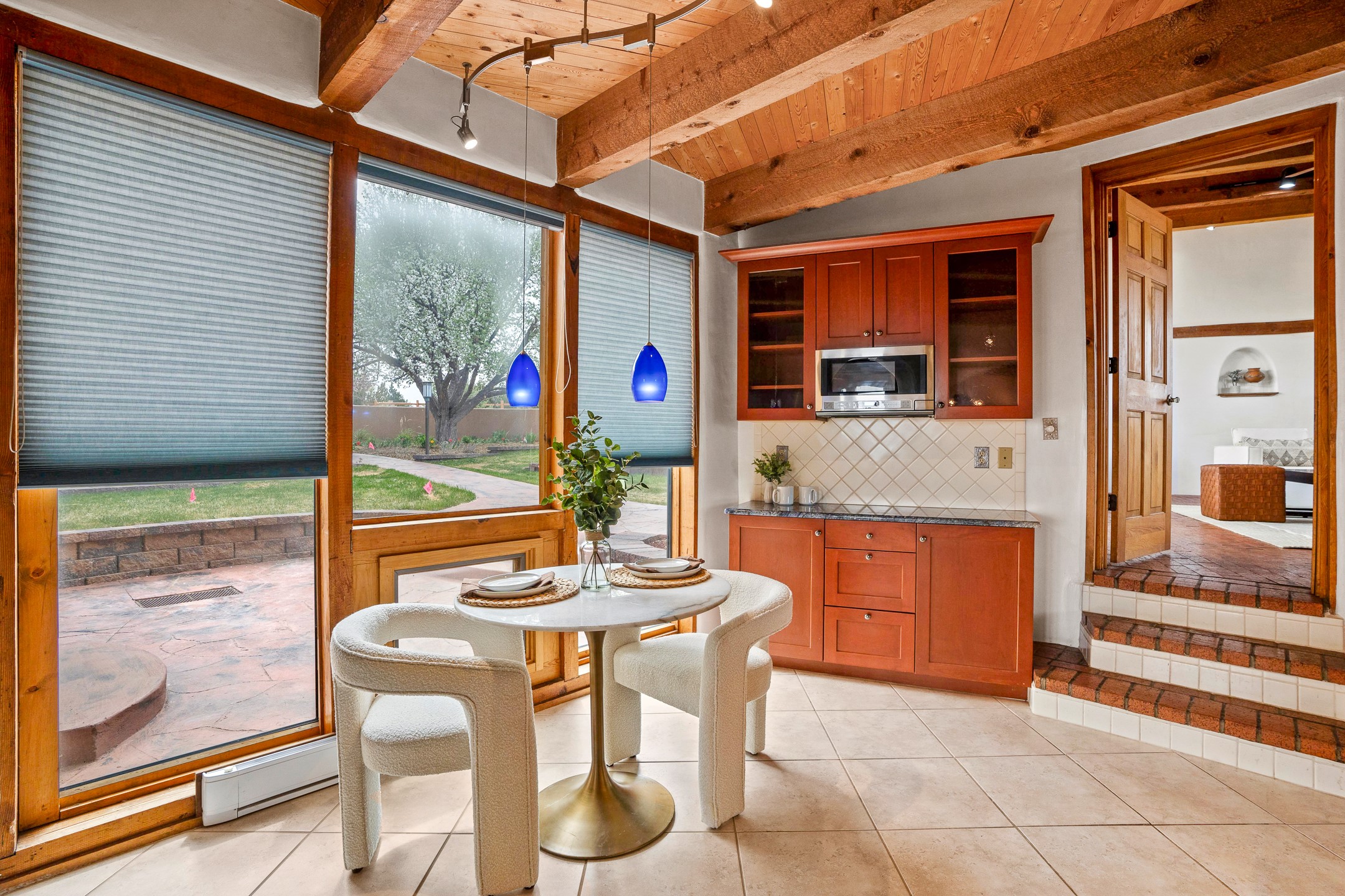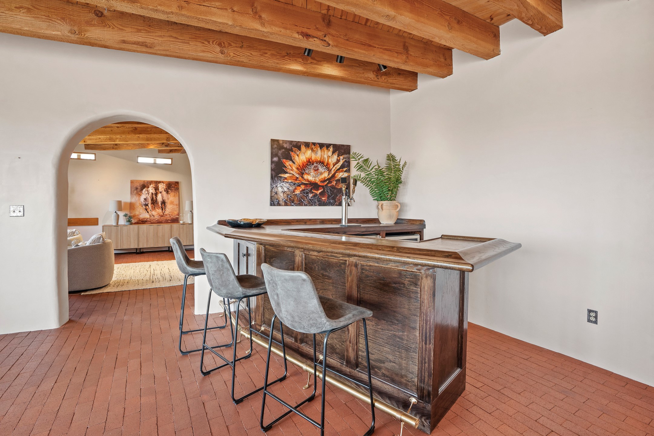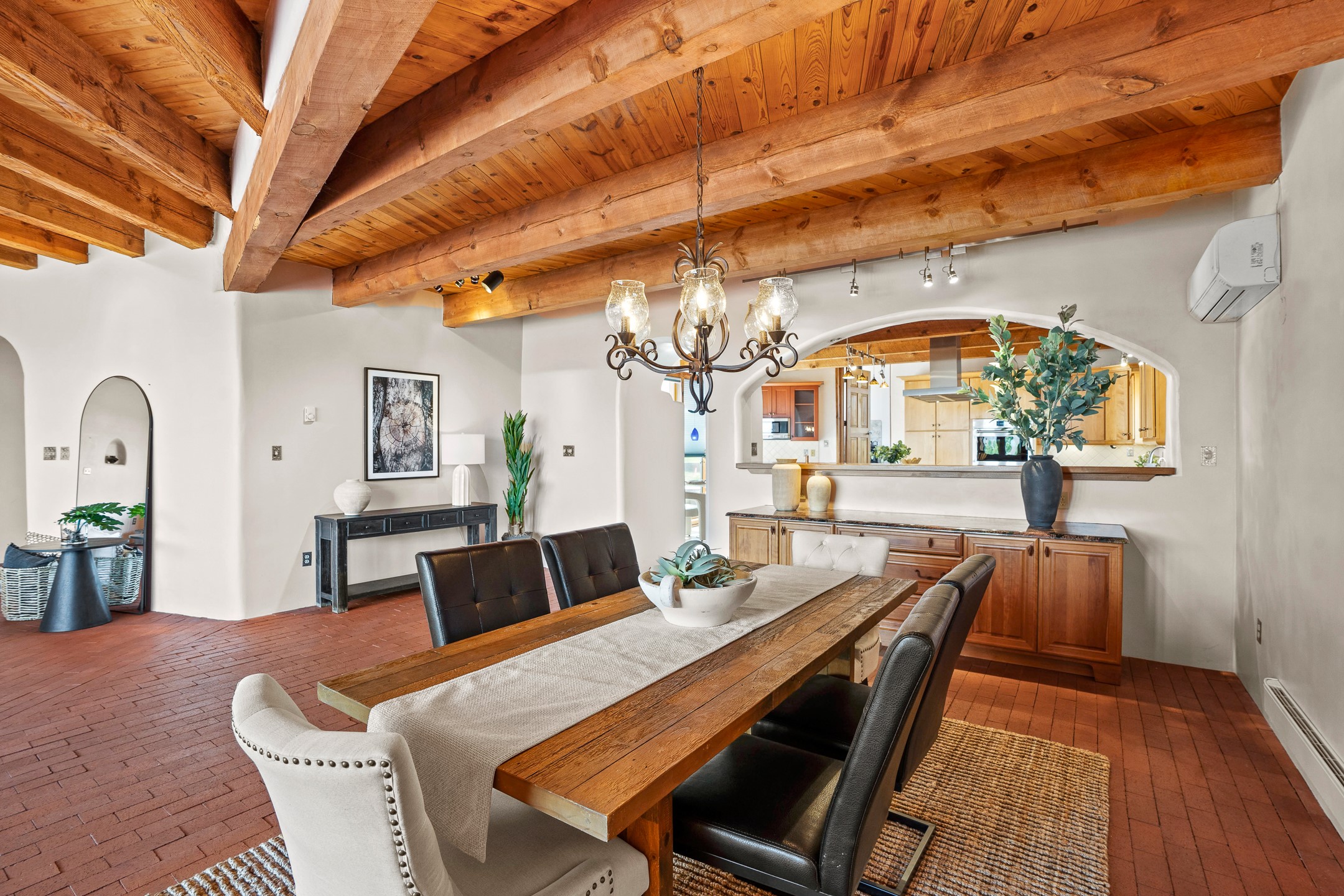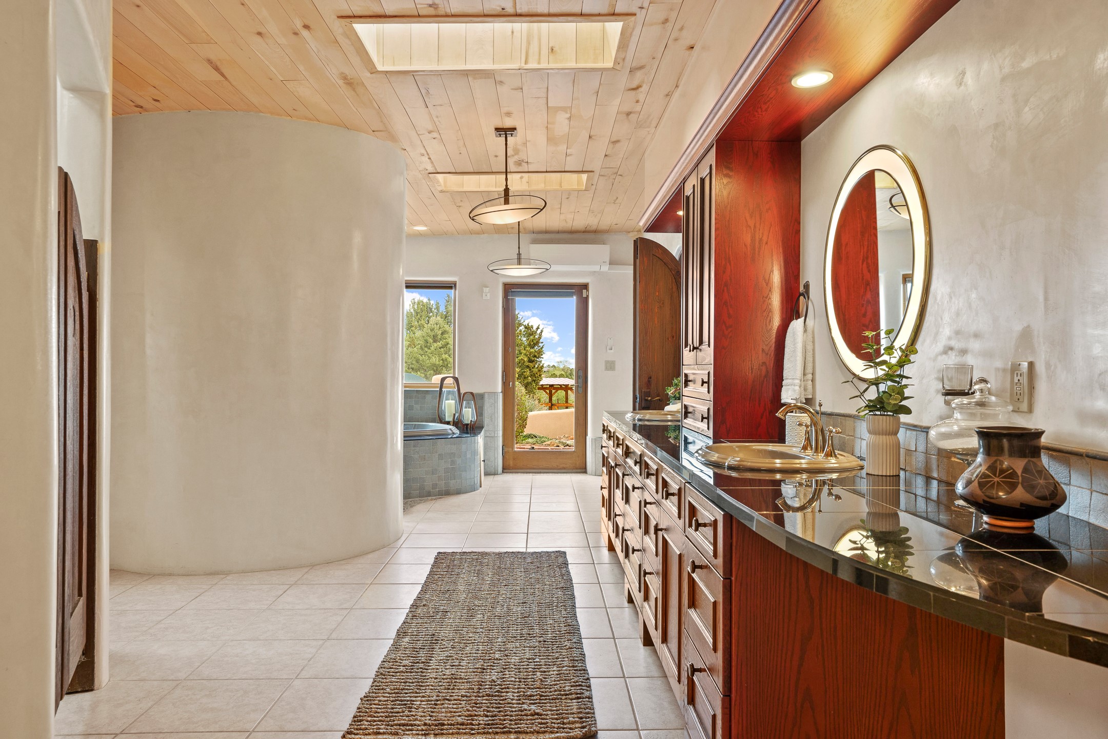 Adobe Masterpiece, Entertainer's Dream, 2.04 Acres Backing to County Land, 4917 Sq Ft, Living Room with Incredibly Stunning Views, High-End Finishes, Vigas, Beams, Kiva Fireplace, Extensive Professional Landscaping, Attached Casita, 575 Sq Ft Shop with Roll-Up, Mini-Split Cooling, Chicken Coop, Garden Beds, and More! Welcome to 155 Piedra Loop!This exquisite property caters to those with discerning taste. Situated on 2.04 acres backing to County land with White Rock Canyon just beyond, the property features 360 degree views, from the Jemez Mountains to the West, and the Sangre de Cristos to the East. The house features true adobe construction, enabling the architect to create curved walls for panoramic views while following the gentle contours of the land. The living room is the showcase room, with floor to ceiling windows providing you and your guests with expansive views over the back courtyard of the Sangre de Cristos. Brick floors, vigas, and exposed beams provide a classic Southwest ambiance, while the built-in bar with beer taps will keep your guests refreshed. The kitchen is ready to accommodate large gatherings and includes a large island with an induction cooktop and overhead vent, Wolf double ovens, a plate warmer, granite countertops, generous cabinet space, a serving window to the dining room, and a wide walkway to accommodate multiple chefs and servers. The primary suite is approximately 1200 sq ft and will serve as your private sanctuary. It includes a private office, laundry room, and sitting room, in addition to the large bedroom, cedar-finished walk-in closet, and bathroom. The primary bathroom includes dual vanities, a large tub, and a walk-in shower. A private courtyard is located off the master suite. The main courtyard leading to the home has been professionally landscaped, and features a number of trees, grass with automatic sprinklers, and the entrance to the attached casita. The casita features a bedroom and a bathroom. To the north of the main house sits a separate shop, which includes a roll-up door, space for two vehicles (in tandem), and a half bathroom. The back yard includes a dog kennel / chicken coop, established garden beds, and the back courtyard for entertaining guests outdoors while taking in views of the Sangres as the sun sets behind you. This property is truly special. The sellers plan to review offers on Tuesday, April 29, so schedule your showing today before this exquisite property is gone!
