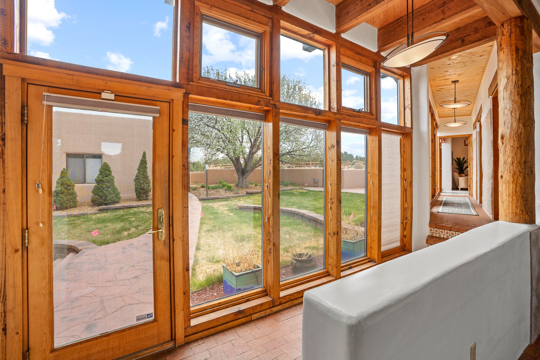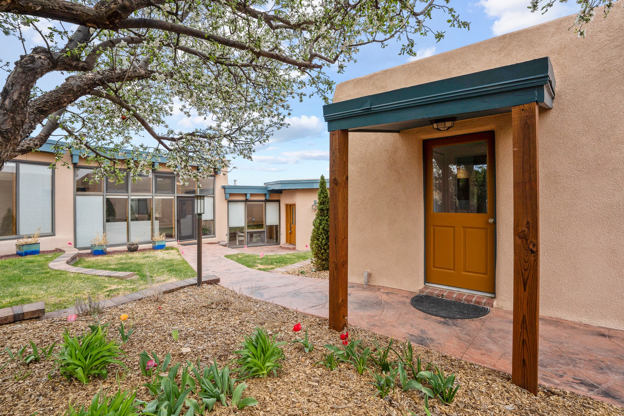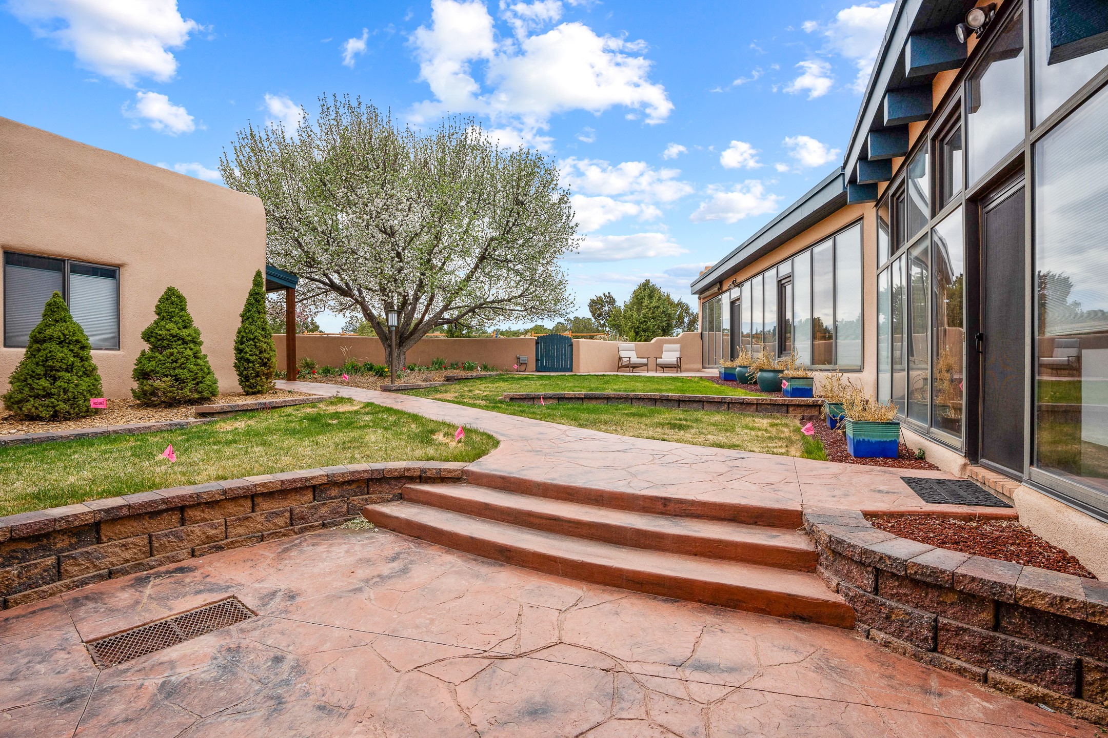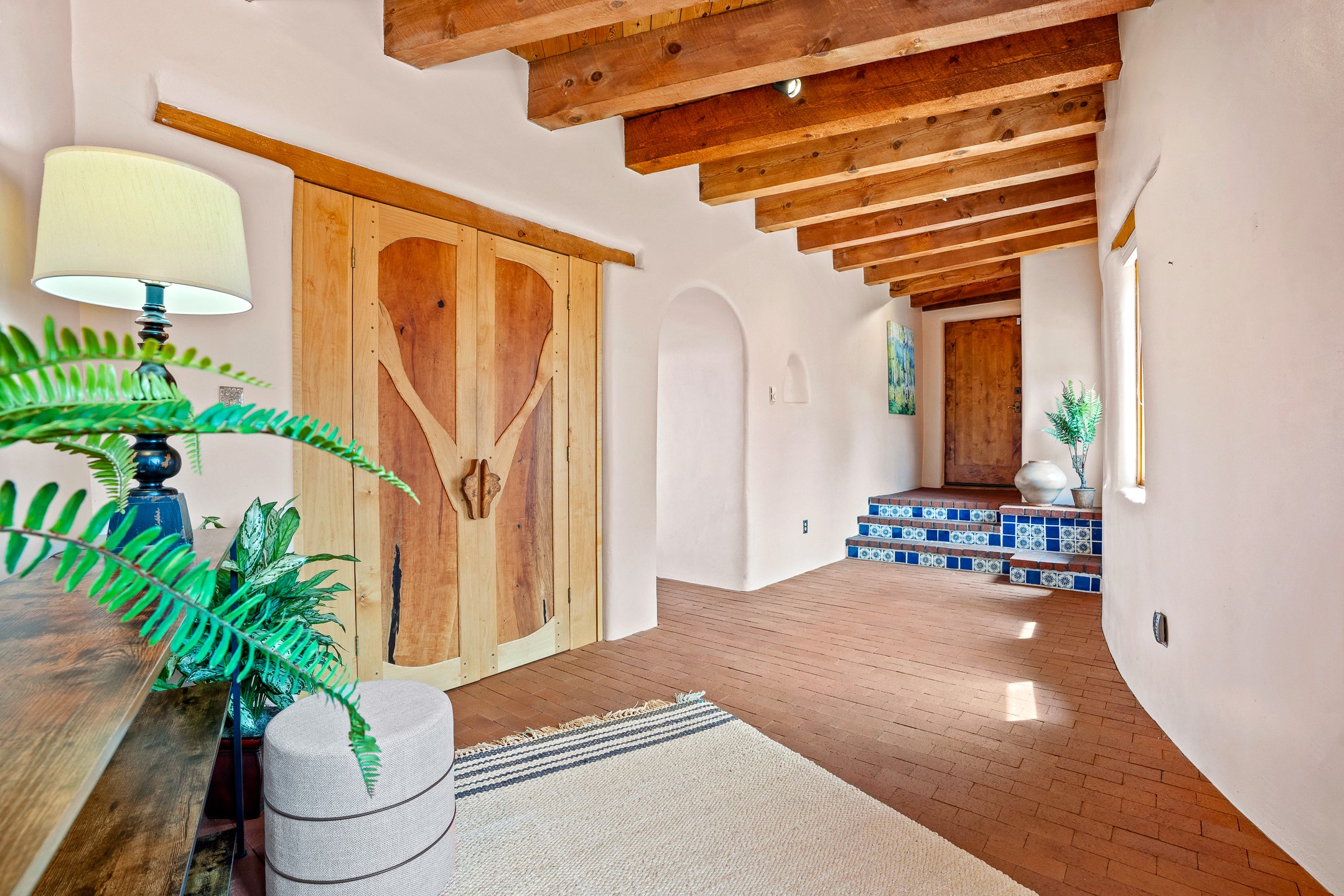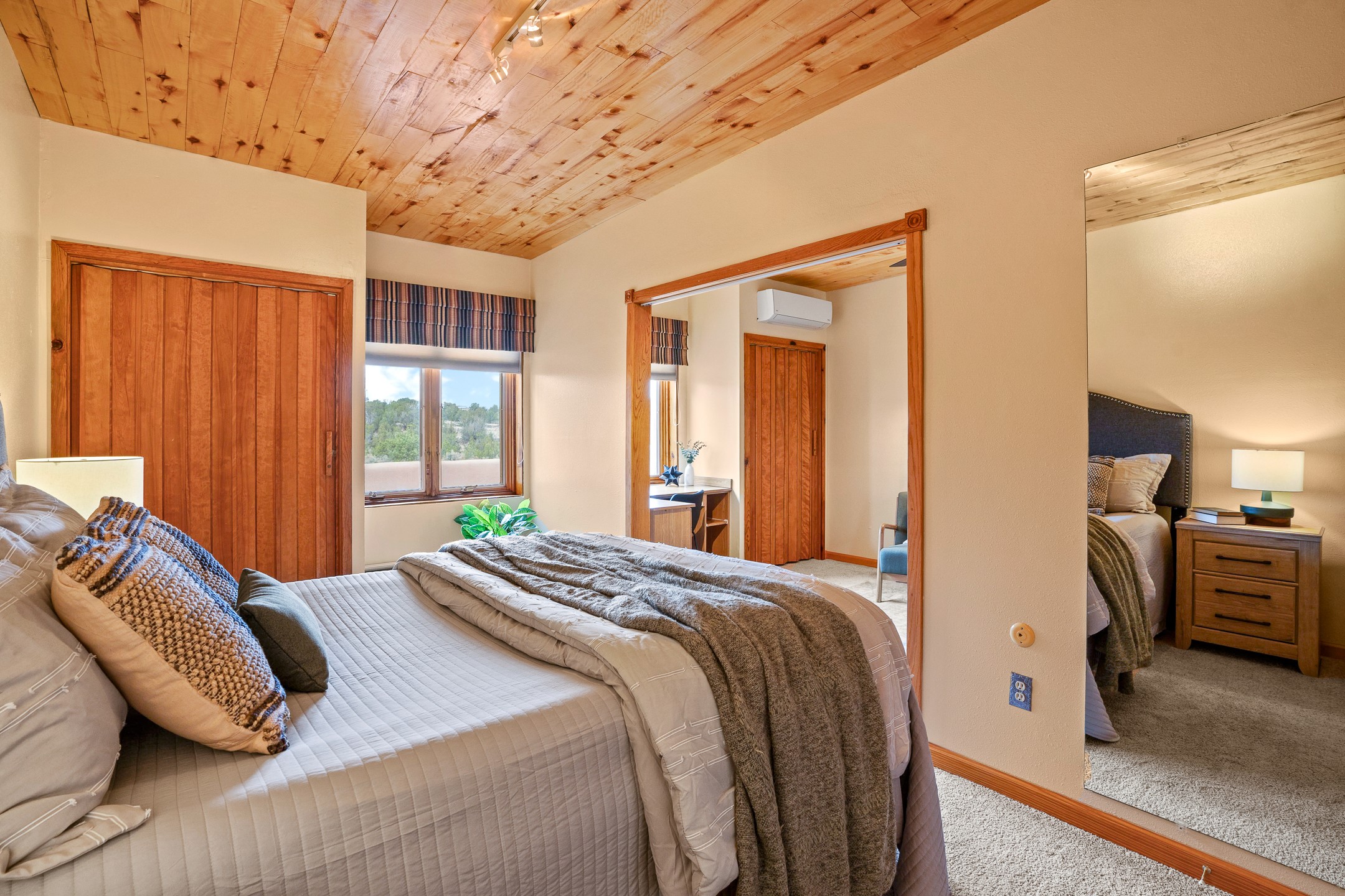 Adobe Masterpiece, Entertainer's Dream, 2.04 Acres Backing to County Land, 4917 Sq Ft, Living Room with Incredibly Stunning Views, High-End Finishes, Vigas, Beams, Kiva Fireplace, Extensive Professional Landscaping, Attached Casita, 575 Sq Ft Shop with Roll-Up, Mini-Split Cooling, Chicken Coop, Garden Beds, and More! Welcome to 155 Piedra Loop!This exquisite property caters to those with discerning taste. Situated on 2.04 acres backing to County land with White Rock Canyon just beyond, the property features 360 degree views, from the Jemez Mountains to the West, and the Sangre de Cristos to the East. The house features true adobe construction, enabling the architect to create curved walls for panoramic views while following the gentle contours of the land. The living room is the showcase room, with floor to ceiling windows providing you and your guests with expansive views over the back courtyard of the Sangre de Cristos. Brick floors, vigas, and exposed beams provide a classic Southwest ambiance, while the built-in bar with beer taps will keep your guests refreshed. The kitchen is ready to accommodate large gatherings and includes a large island with an induction cooktop and overhead vent, Wolf double ovens, a plate warmer, granite countertops, generous cabinet space, a serving window to the dining room, and a wide walkway to accommodate multiple chefs and servers. The primary suite is approximately 1200 sq ft and will serve as your private sanctuary. It includes a private office, laundry room, and sitting room, in addition to the large bedroom, cedar-finished walk-in closet, and bathroom. The primary bathroom includes dual vanities, a large tub, and a walk-in shower. A private courtyard is located off the master suite. The main courtyard leading to the home has been professionally landscaped, and features a number of trees, grass with automatic sprinklers, and the entrance to the attached casita. The casita features a bedroom and a bathroom. To the north of the main house sits a separate shop, which includes a roll-up door, space for two vehicles (in tandem), and a half bathroom. The back yard includes a dog kennel / chicken coop, established garden beds, and the back courtyard for entertaining guests outdoors while taking in views of the Sangres as the sun sets behind you. This property is truly special. The sellers plan to review offers on Tuesday, April 29, so schedule your showing today before this exquisite property is gone!