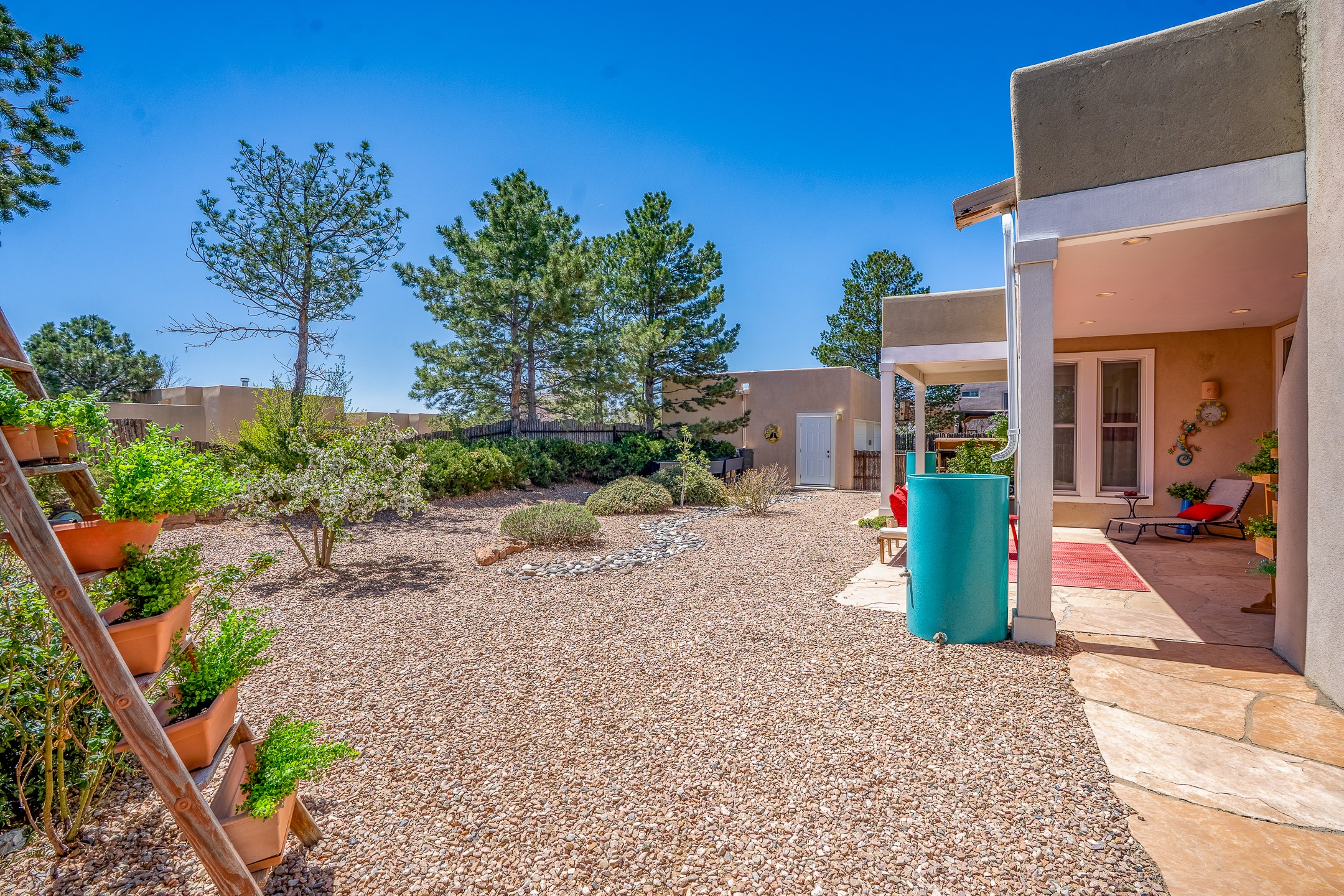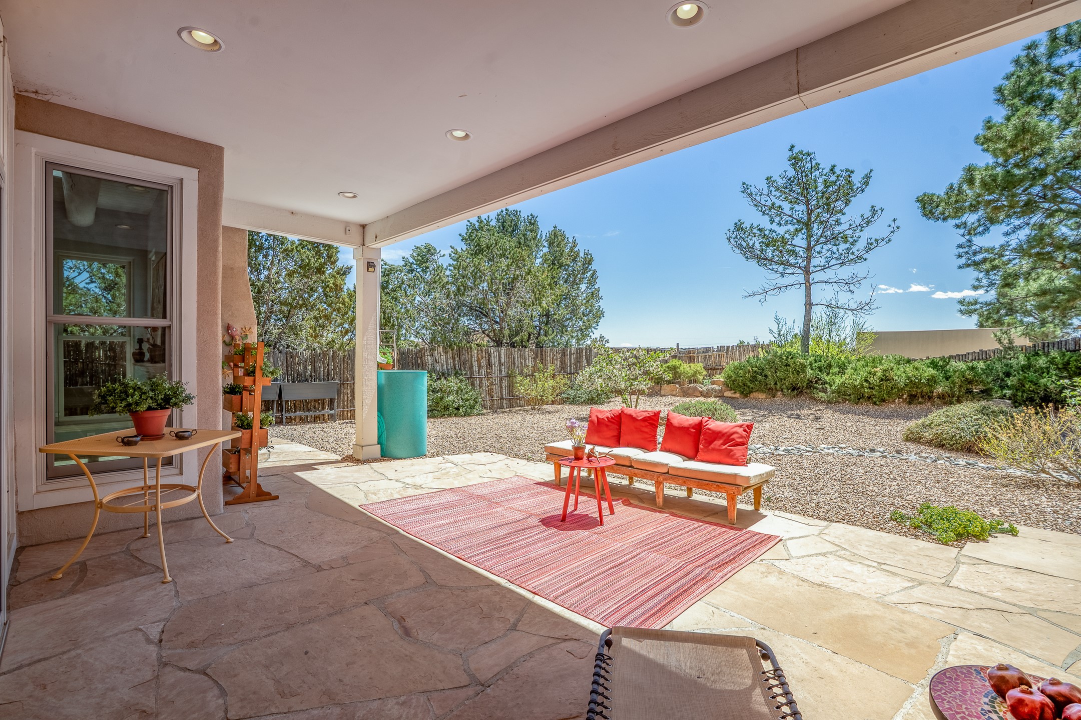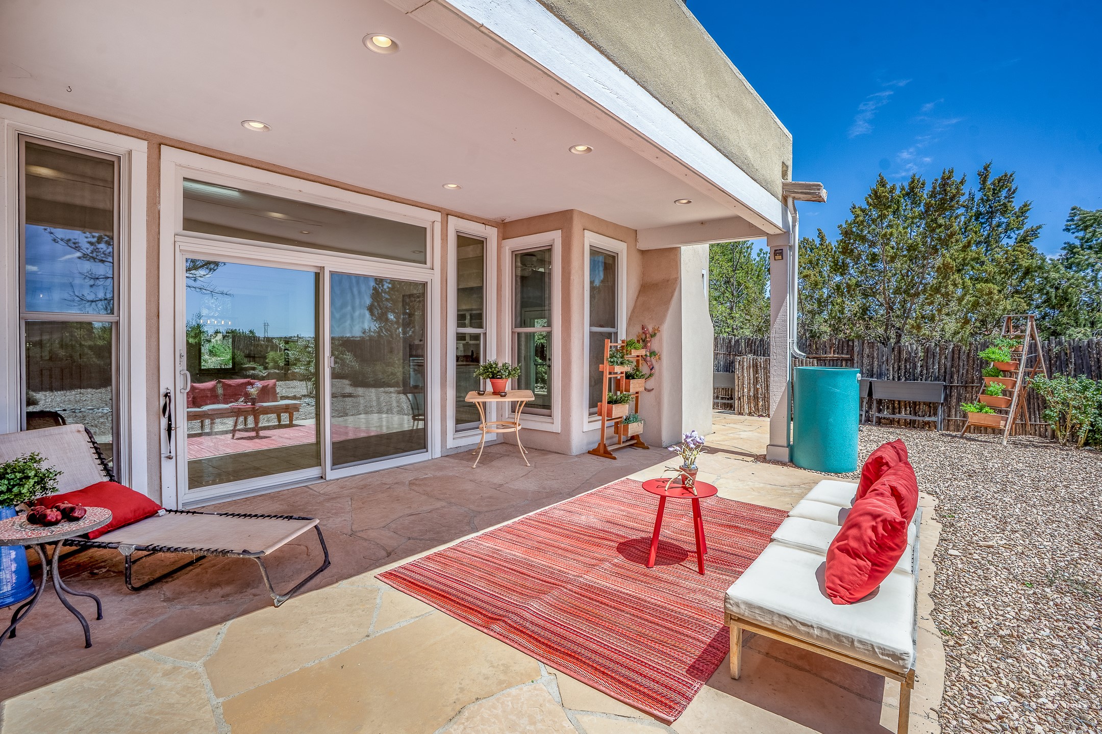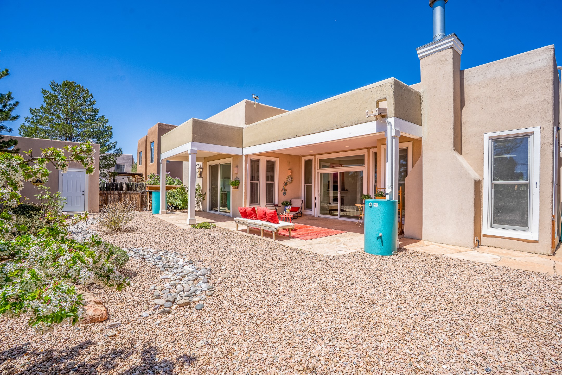 Southwestern Elegance in Nava AdeWelcome to this beautifully crafted 3-bedroom + flex room, 2.5-bath home located in the desirable Nava Ade community--known for its thoughtful design and exceptional lifestyle amenities that was once a model home. With over 2,000 square feet of living space, this Pueblo/Territorial-style residence blends timeless Southwestern character with modern updates and eco-conscious features.Inside, you'll find high ceilings with wood beams, two cozy fireplaces, and two spacious living areas that offer warmth and versatility. Elegant travertine stone and wood flooring flow throughout, adding texture and sophistication. The flex room is ideal for a home office, studio, or guest space, while the formal dining area and kitchen--with newer stainless steel appliances--make everyday living and entertaining a breeze.Situated on an extra-large lot with open spaces behind and walking paths on one side, the home is surrounded by beautifully landscaped xeriscape gardens with drip irrigation--perfectly suited to Santa Fe's climate. The freestanding two-car garage provides added convenience and flexibility. Additional upgrades include newer windows and patio doors (2018), a recently replaced roof system, and a fully owned solar energy system for enhanced energy efficiency.Nava Ade offers parks, walking paths, a community pool, and a clubhouse with fitness equipment--creating a vibrant, connected neighborhood you'll love coming home to.Experience the perfect balance of comfort, style, and sustainability in one of Santa Fe's most sought-after communities.