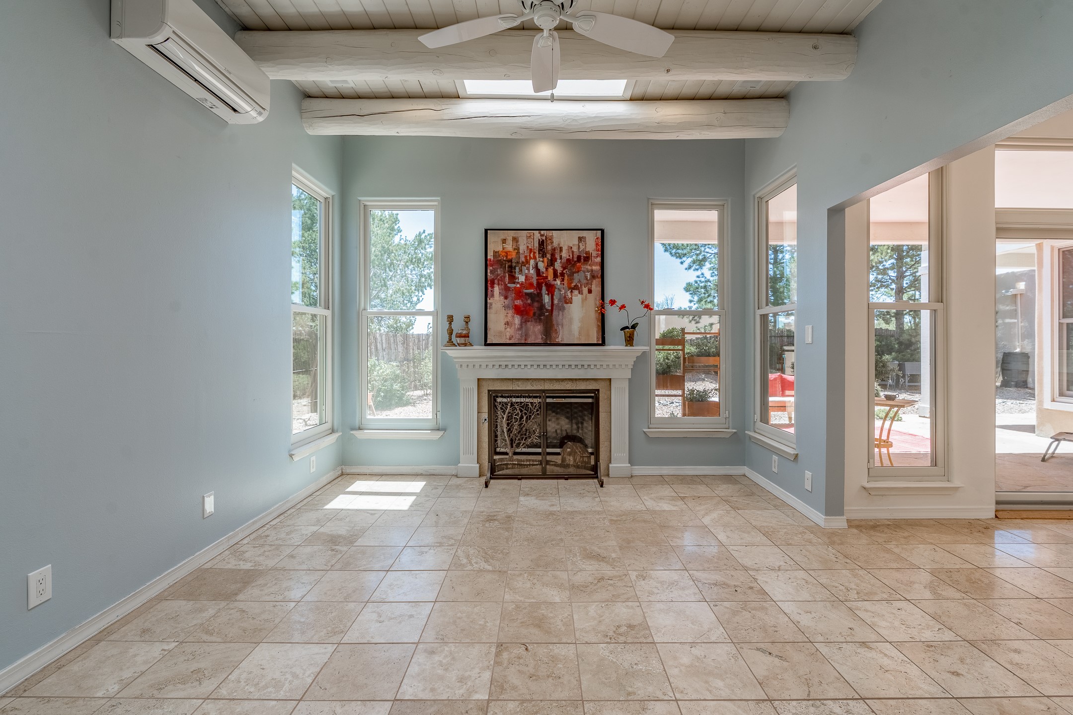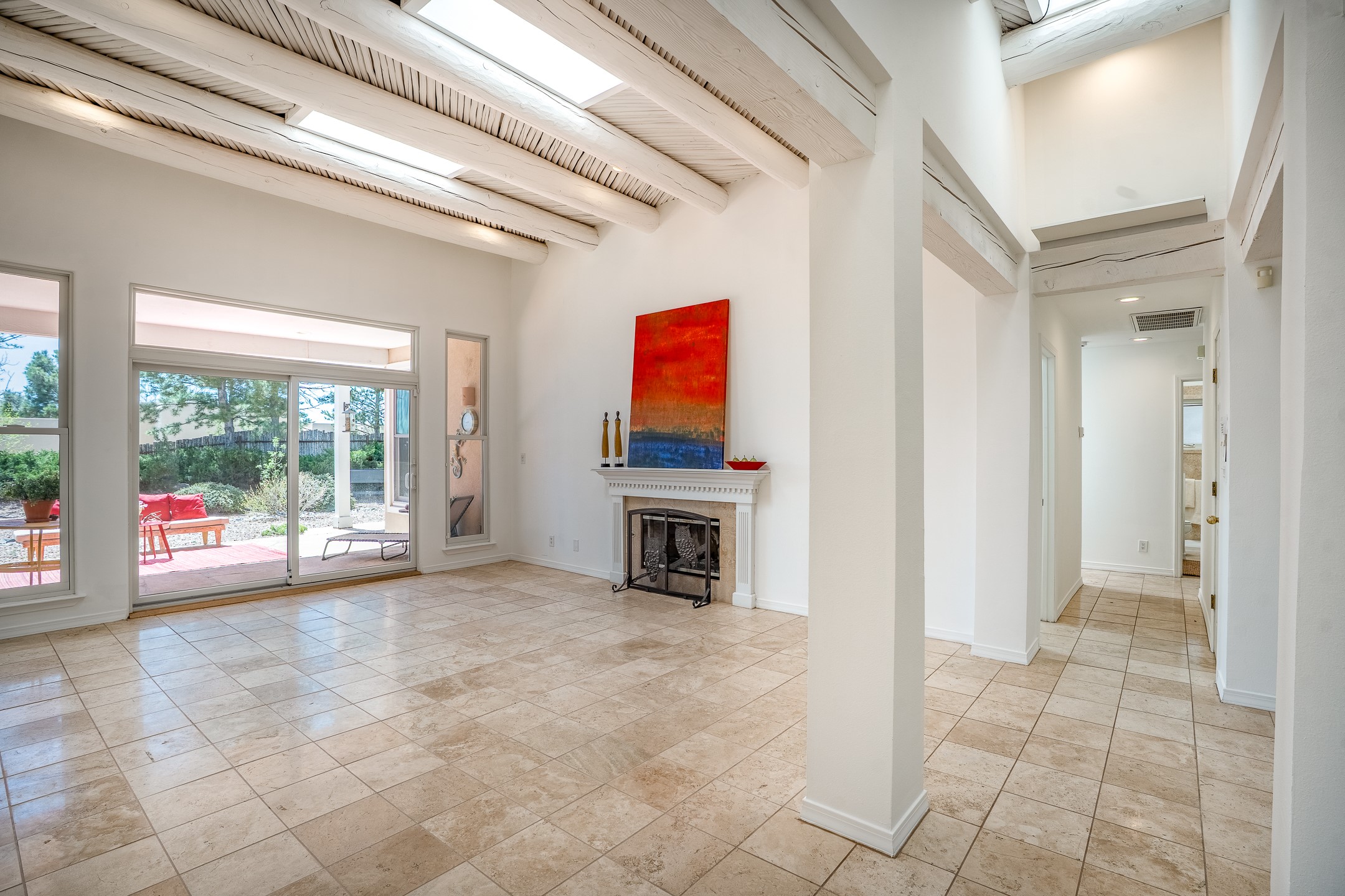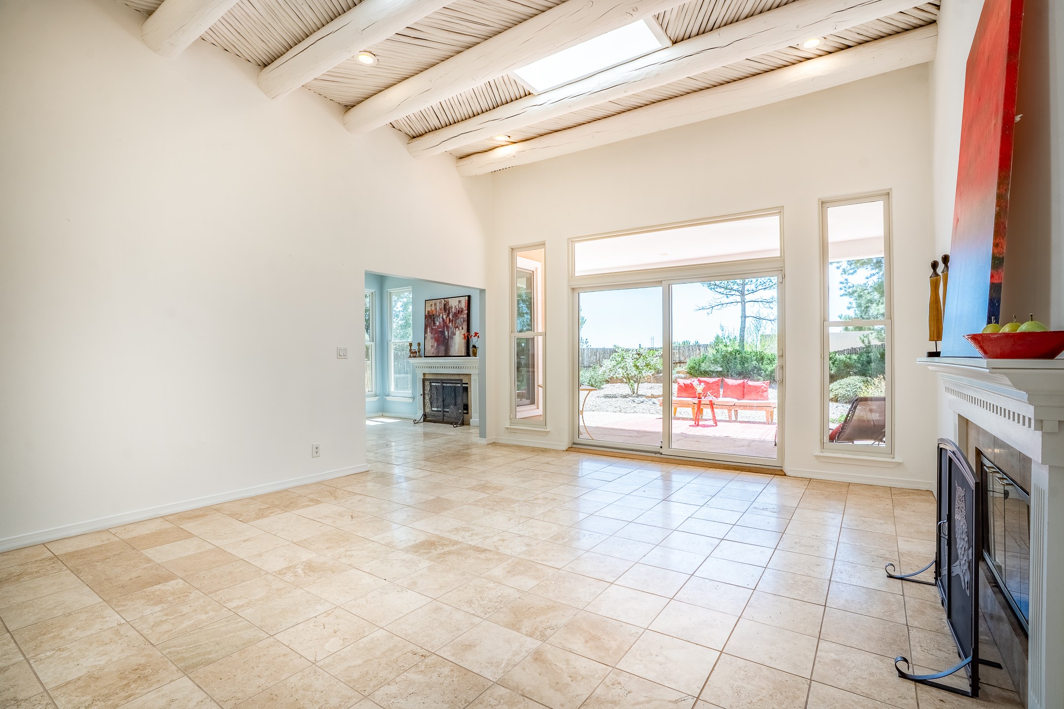 Southwestern Elegance in Nava AdeWelcome to this beautifully crafted 3-bedroom + flex room, 2.5-bath home located in the desirable Nava Ade community--known for its thoughtful design and exceptional lifestyle amenities that was once a model home. With over 2,000 square feet of living space, this Pueblo/Territorial-style residence blends timeless Southwestern character with modern updates and eco-conscious features.Inside, you'll find high ceilings with wood beams, two cozy fireplaces, and two spacious living areas that offer warmth and versatility. Elegant travertine stone and wood flooring flow throughout, adding texture and sophistication. The flex room is ideal for a home office, studio, or guest space, while the formal dining area and kitchen--with newer stainless steel appliances--make everyday living and entertaining a breeze.Situated on an extra-large lot with open spaces behind and walking paths on one side, the home is surrounded by beautifully landscaped xeriscape gardens with drip irrigation--perfectly suited to Santa Fe's climate. The freestanding two-car garage provides added convenience and flexibility. Additional upgrades include newer windows and patio doors (2018), a recently replaced roof system, and a fully owned solar energy system for enhanced energy efficiency.Nava Ade offers parks, walking paths, a community pool, and a clubhouse with fitness equipment--creating a vibrant, connected neighborhood you'll love coming home to.Experience the perfect balance of comfort, style, and sustainability in one of Santa Fe's most sought-after communities.