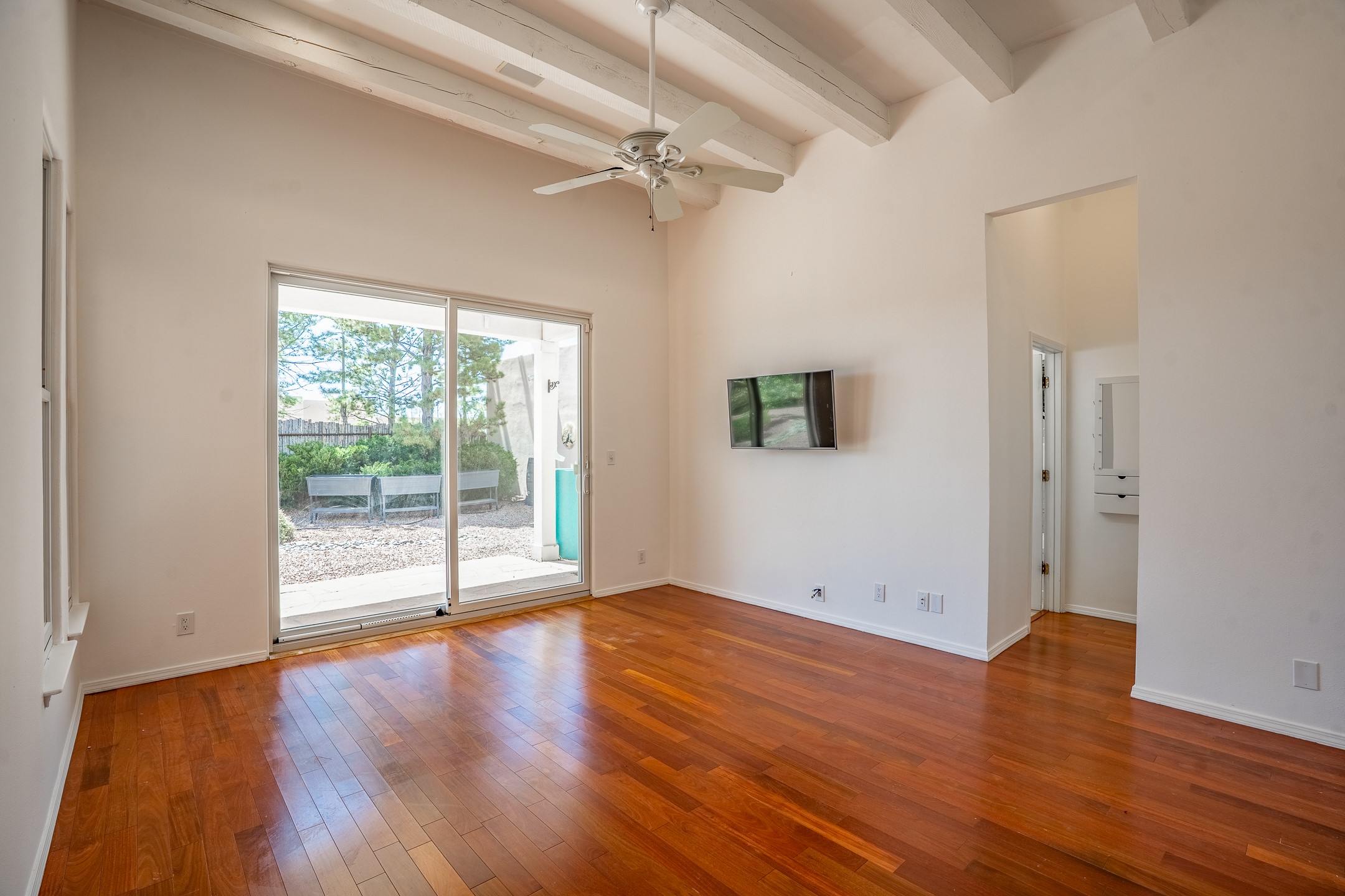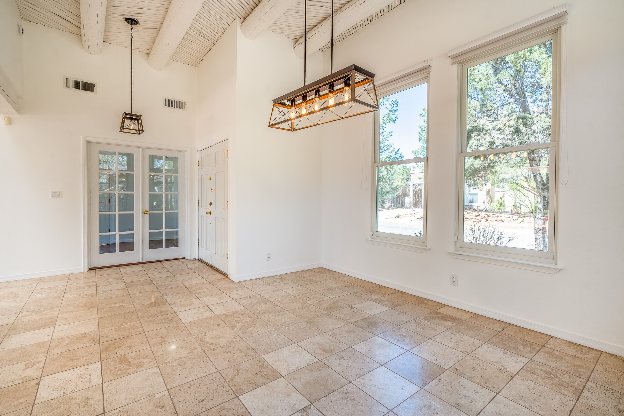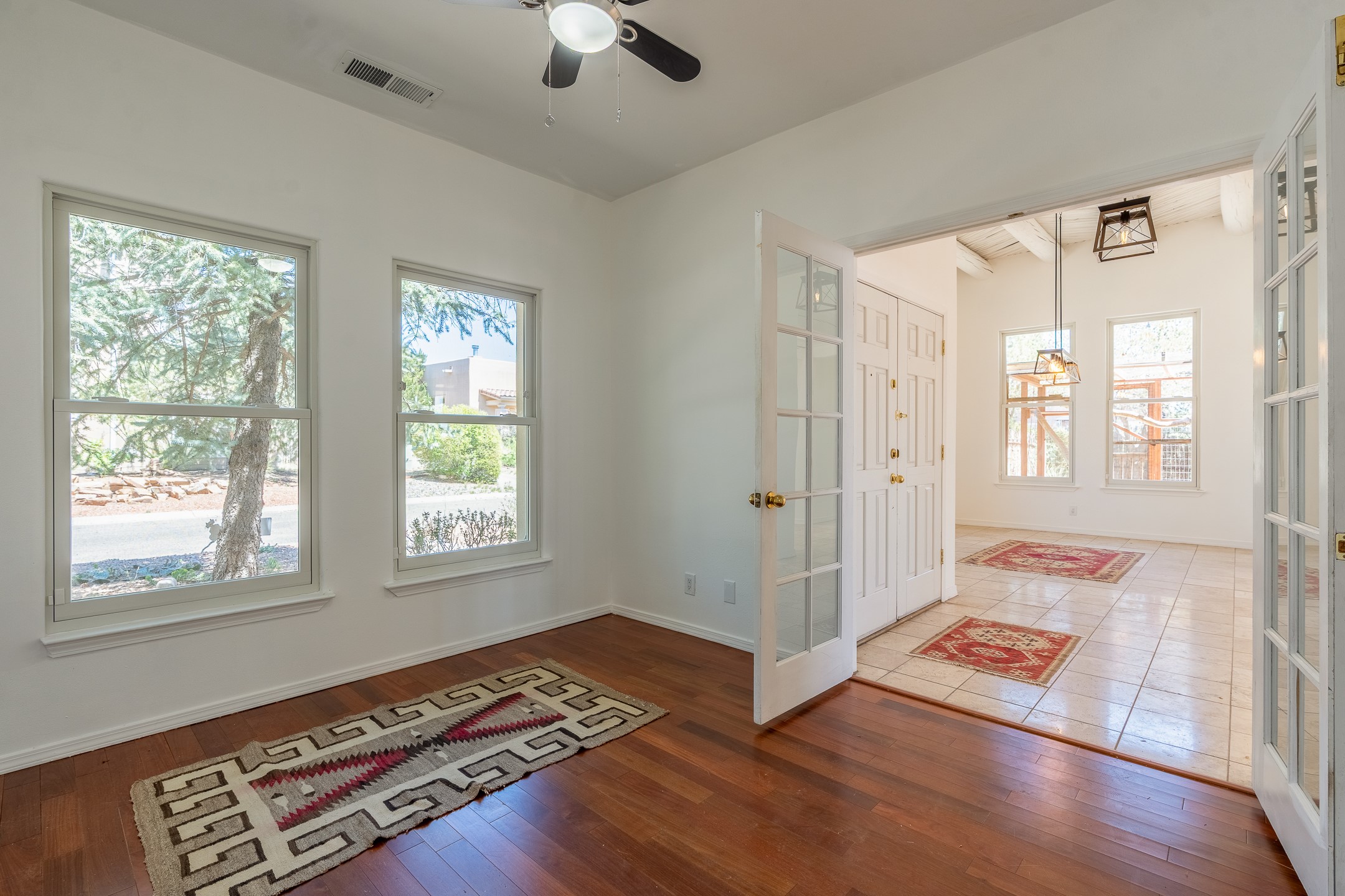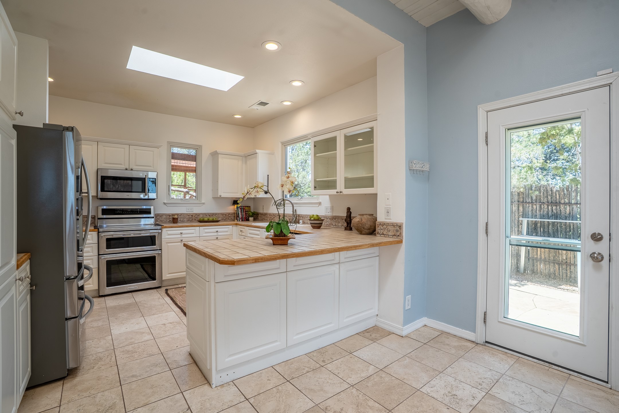 Southwestern Elegance in Nava AdeWelcome to this beautifully crafted 3-bedroom + flex room, 2.5-bath home located in the desirable Nava Ade community--known for its thoughtful design and exceptional lifestyle amenities that was once a model home. With over 2,000 square feet of living space, this Pueblo/Territorial-style residence blends timeless Southwestern character with modern updates and eco-conscious features.Inside, you'll find high ceilings with wood beams, two cozy fireplaces, and two spacious living areas that offer warmth and versatility. Elegant travertine stone and wood flooring flow throughout, adding texture and sophistication. The flex room is ideal for a home office, studio, or guest space, while the formal dining area and kitchen--with newer stainless steel appliances--make everyday living and entertaining a breeze.Situated on an extra-large lot with open spaces behind and walking paths on one side, the home is surrounded by beautifully landscaped xeriscape gardens with drip irrigation--perfectly suited to Santa Fe's climate. The freestanding two-car garage provides added convenience and flexibility. Additional upgrades include newer windows and patio doors (2018), a recently replaced roof system, and a fully owned solar energy system for enhanced energy efficiency.Nava Ade offers parks, walking paths, a community pool, and a clubhouse with fitness equipment--creating a vibrant, connected neighborhood you'll love coming home to.Experience the perfect balance of comfort, style, and sustainability in one of Santa Fe's most sought-after communities.