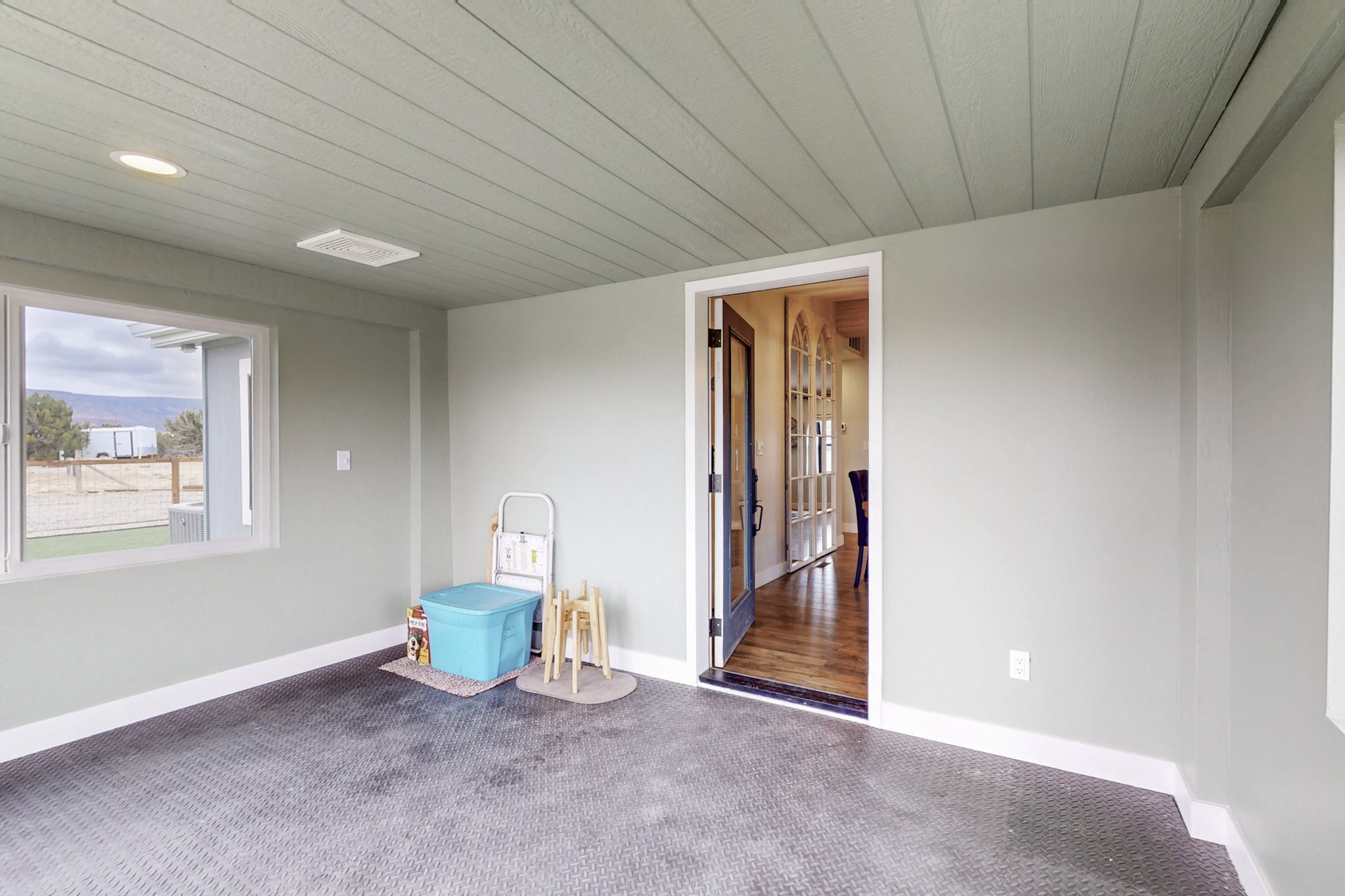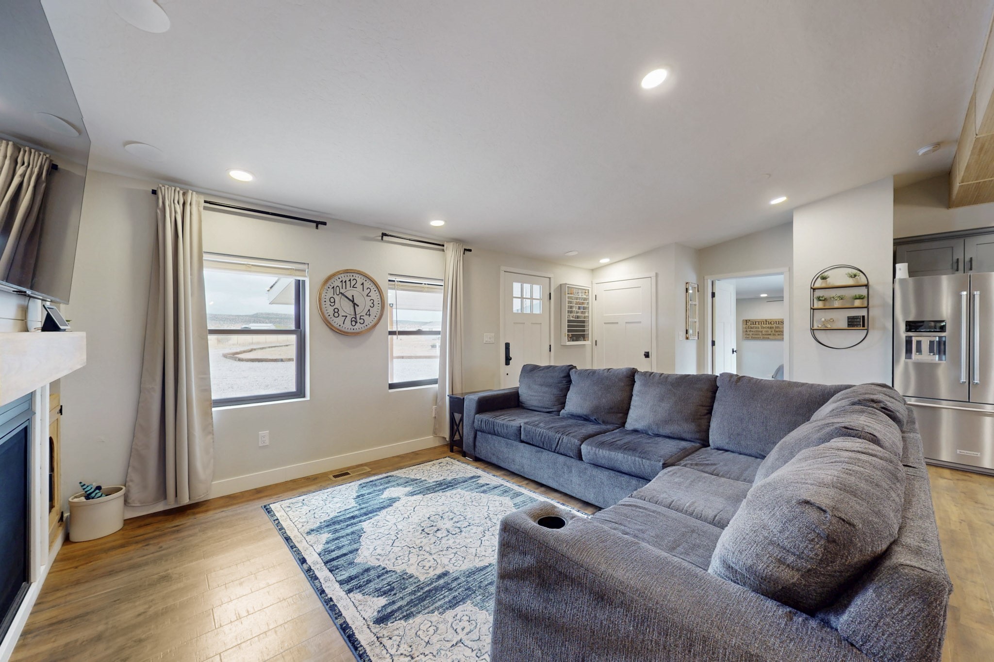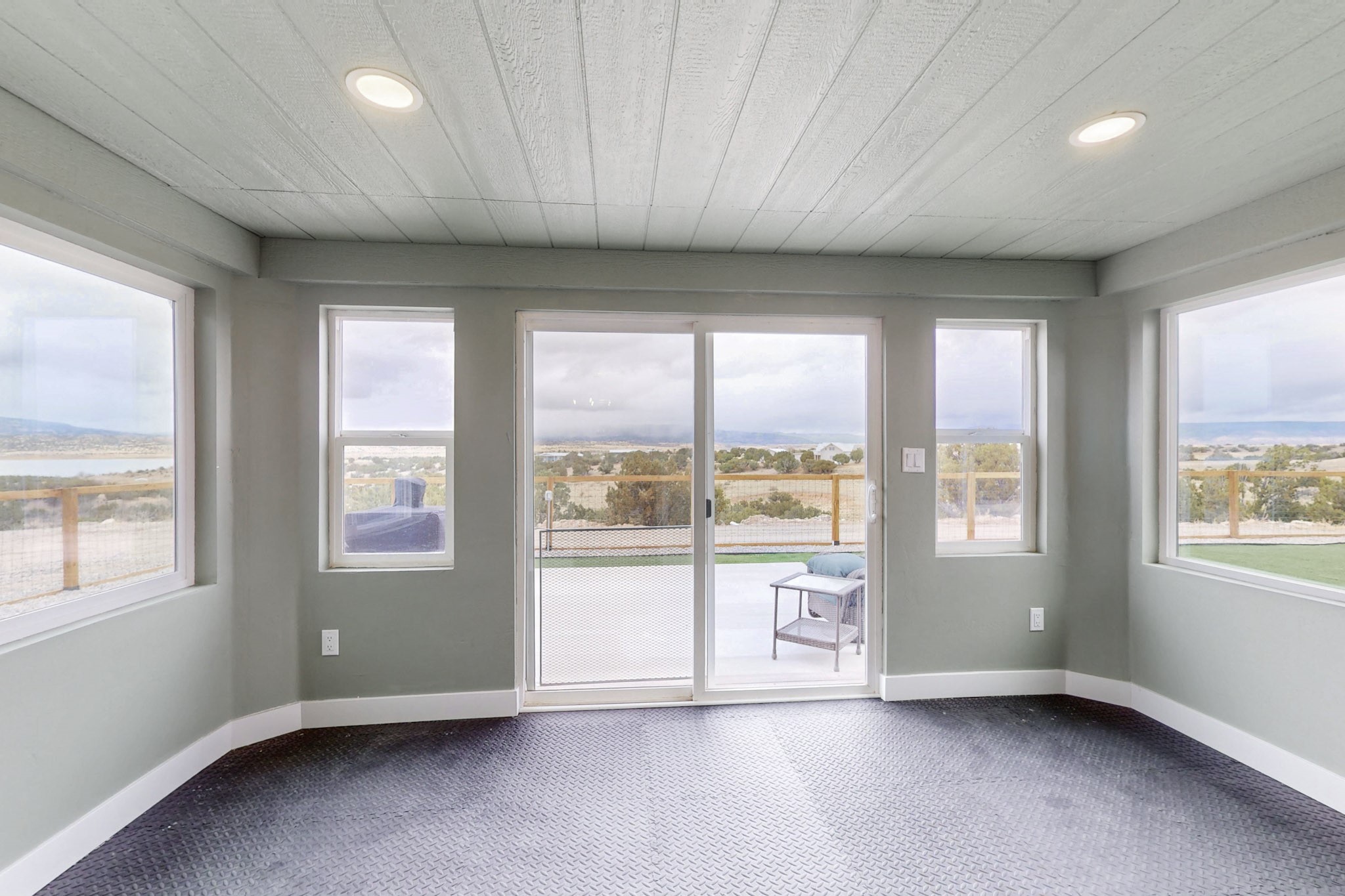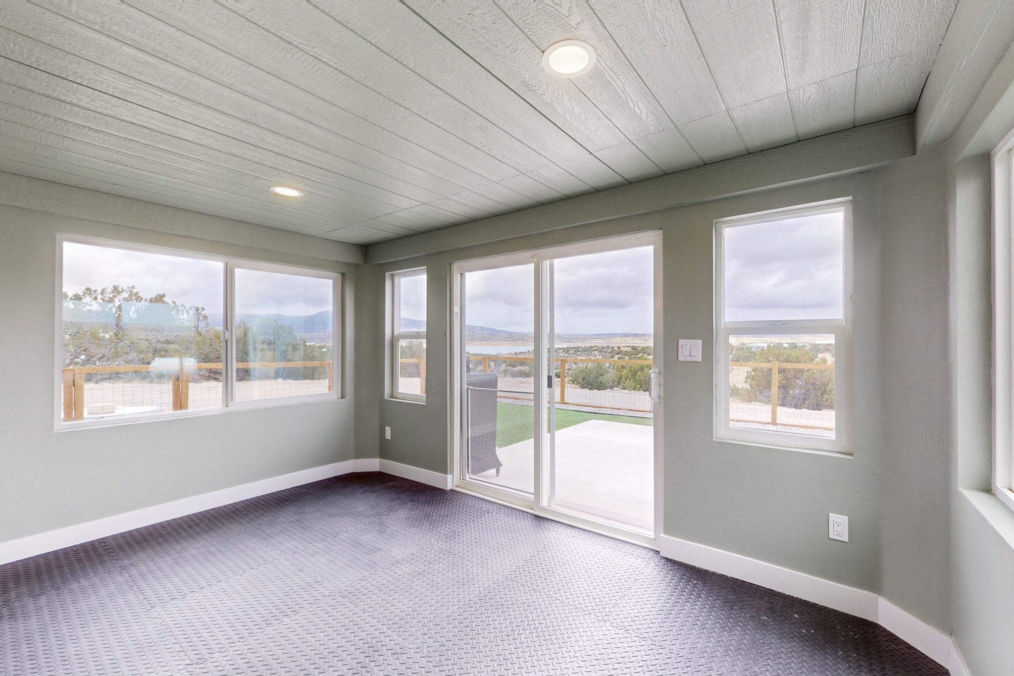 Imagine living and raising your family on Abiquiu Lake. The gated Subdivision renders easy access off HWY 84 on a paved road, and a generously graveled subdivision road. Never have to worry about access to the lake or your home. This home, that was once a part of a family compound, has all the bells and whistles one would want in a home. An incredible open concept chef's kitchen, with spectacular appliances. Quartz countertops and lighting add to the luxury. The owner suite is private and sensational, one would have to see it for oneself. Included in this suite is a home office space but could easily be converted into a personal place to read, write, sing, or watch television. The new owner can decide the use of this space. Then there are the ever changing views, regardless of the time day, there is always a new view. Whether it is early morning, midday, or evening, regardless of the time, the outside views are always stunning. The outside living space has a clear view of Abiquiu Lake and the renowned Ghost Ranch landscapes. If it is too cold outside, this home has enclosed space that could be utilized as an indoor patio, providing the same views that are offered outside. This is a unique subdivision, with an easy access boat ramp, for subdivision owners. Homes like this, with all it has to offer, rarely come on the market. You do not want to miss this opportunity to own this home and land, and all it has available. Nearby is 94A, PVT DR 1770 offering a home that also was once part of the same, family compound. The compound consisted of two dwellings, both are being sold separately. Whether you want one home or two homes, it is important you move quickly, so you can have a choice. Make sure you look at the Video Links.