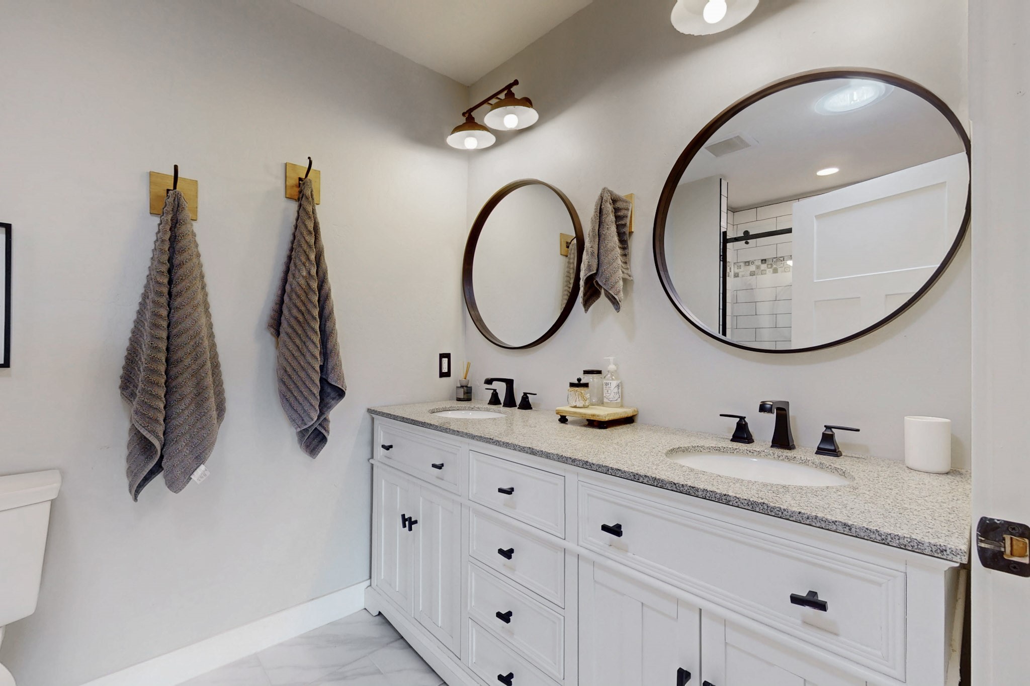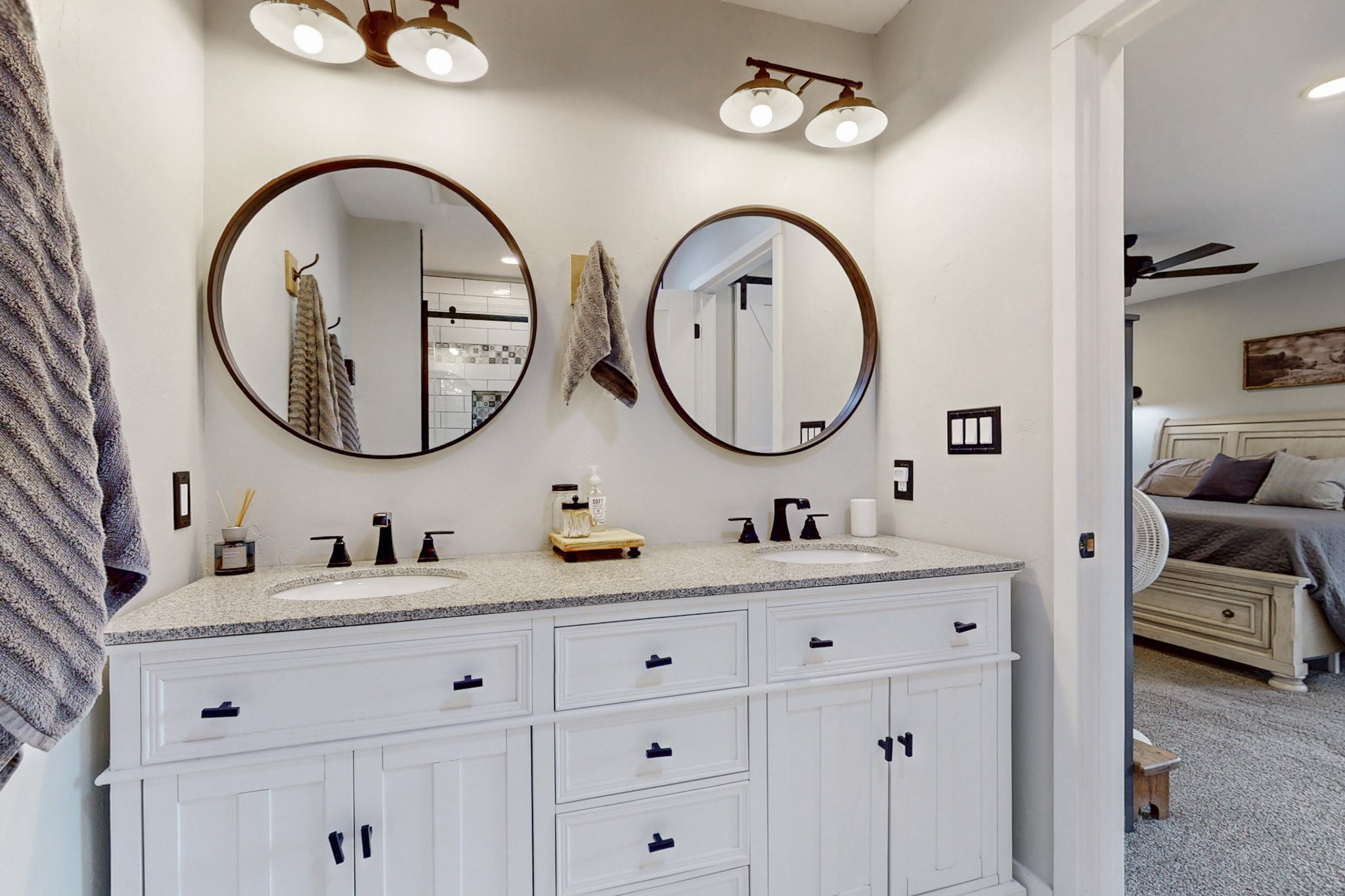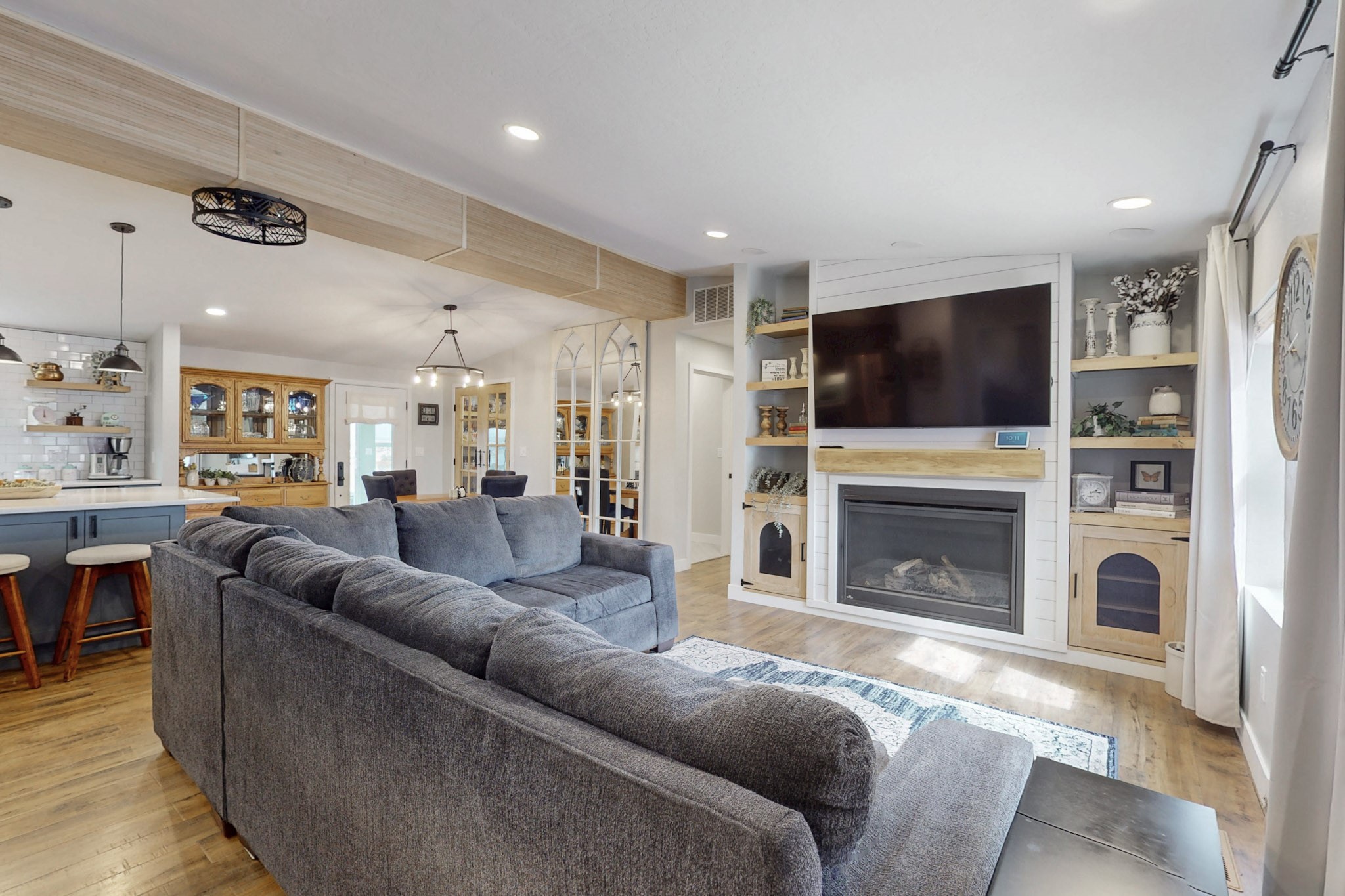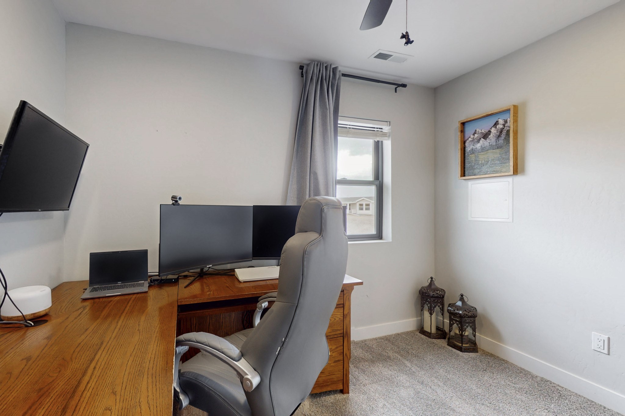 Imagine living and raising your family on Abiquiu Lake. The gated Subdivision renders easy access off HWY 84 on a paved road, and a generously graveled subdivision road. Never have to worry about access to the lake or your home. This home, that was once a part of a family compound, has all the bells and whistles one would want in a home. An incredible open concept chef's kitchen, with spectacular appliances. Quartz countertops and lighting add to the luxury. The owner suite is private and sensational, one would have to see it for oneself. Included in this suite is a home office space but could easily be converted into a personal place to read, write, sing, or watch television. The new owner can decide the use of this space. Then there are the ever changing views, regardless of the time day, there is always a new view. Whether it is early morning, midday, or evening, regardless of the time, the outside views are always stunning. The outside living space has a clear view of Abiquiu Lake and the renowned Ghost Ranch landscapes. If it is too cold outside, this home has enclosed space that could be utilized as an indoor patio, providing the same views that are offered outside. This is a unique subdivision, with an easy access boat ramp, for subdivision owners. Homes like this, with all it has to offer, rarely come on the market. You do not want to miss this opportunity to own this home and land, and all it has available. Nearby is 94A, PVT DR 1770 offering a home that also was once part of the same, family compound. The compound consisted of two dwellings, both are being sold separately. Whether you want one home or two homes, it is important you move quickly, so you can have a choice. Make sure you look at the Video Links.