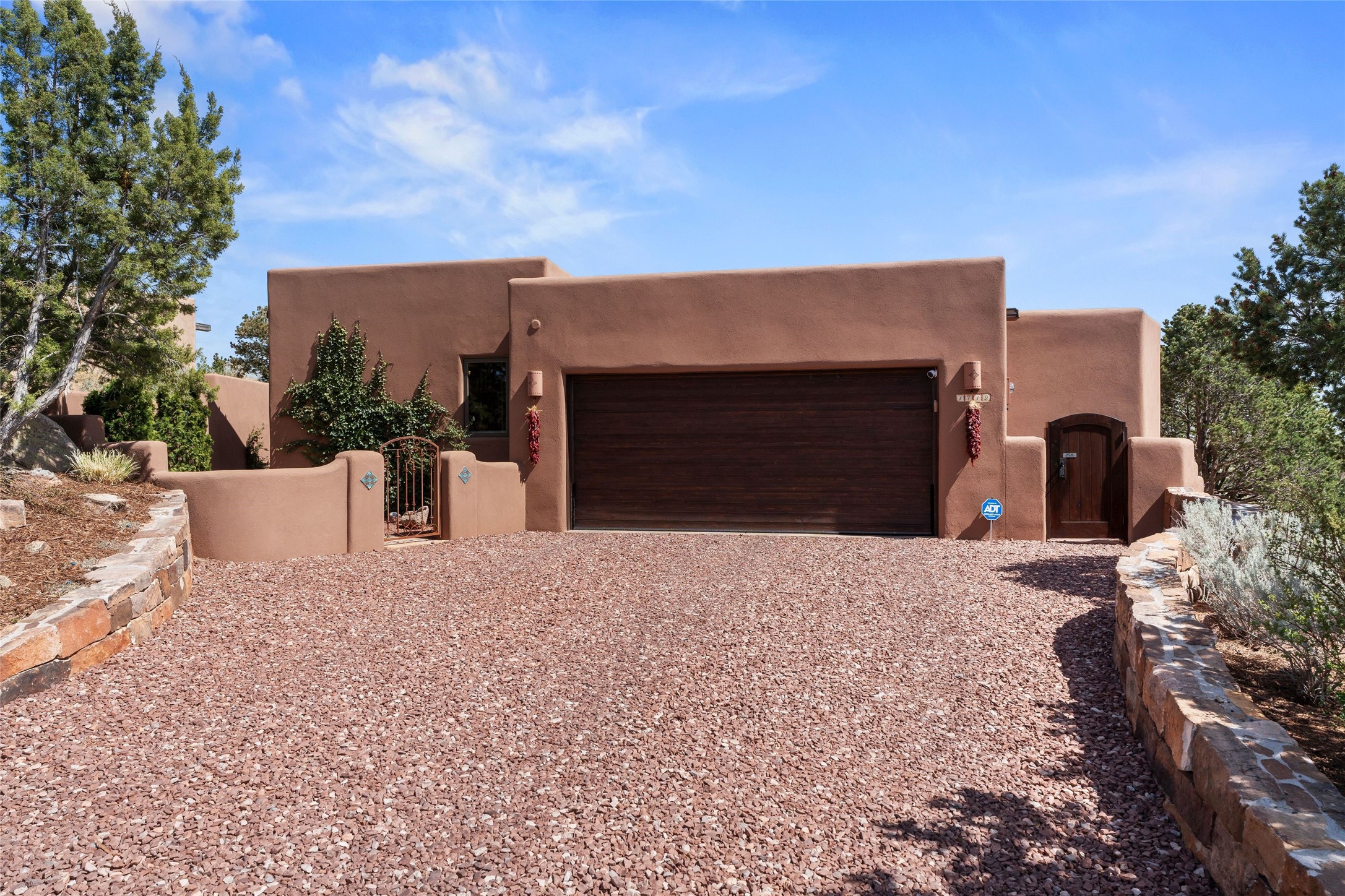 Step through the custom-designed front door and you're instantly welcomed by the charm of traditional Pueblo architecture--soaring ceilings with vigas and latillas, three cozy kiva fireplaces, and classic brick flooring. This thoughtfully updated home features fully remodeled bathrooms and kitchen, fresh paint throughout, redesigned closets, a walled courtyard, an epoxy-coated garage floor, and a modern alarm system. New windows frame breathtaking mountain and sky views from three sides of the home, offering daily front-row seats to spectacular sunrises and sunsets. Enjoy three distinct outdoor living spaces, perfect for relaxing or entertaining in style. Nestled in a serene natural landscape at the end of a quiet cul-de-sac, this home provides exceptional privacy while still being part of a welcoming neighborhood--just 12 minutes from the historic Plaza.