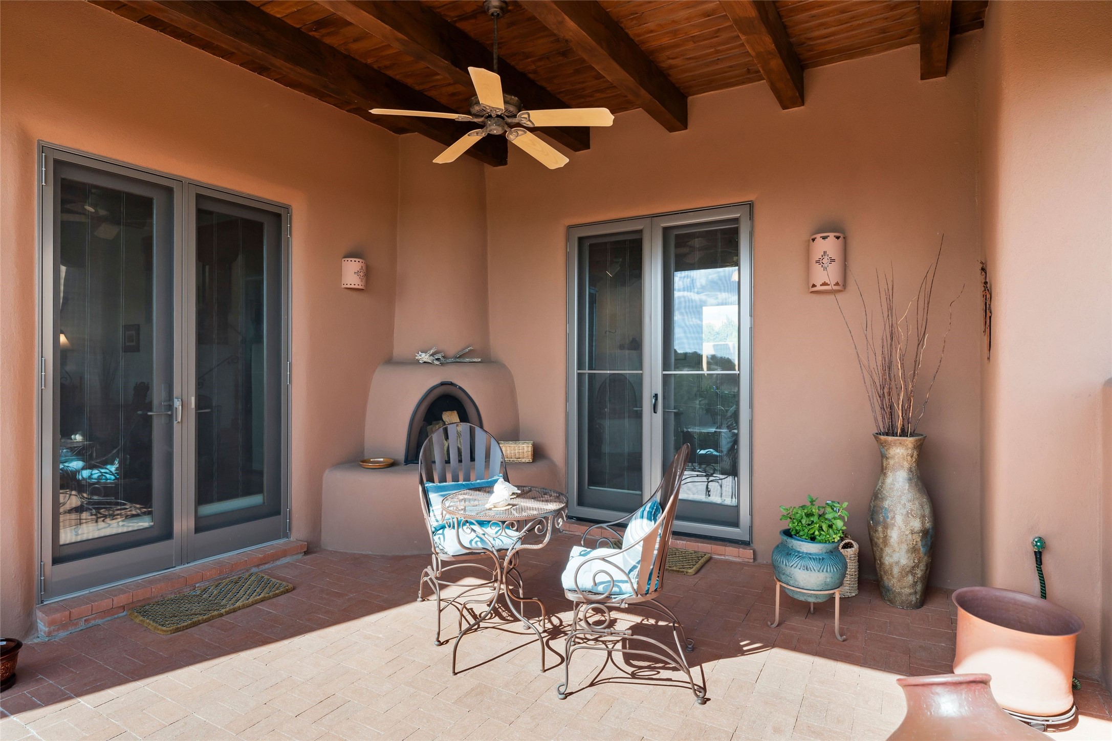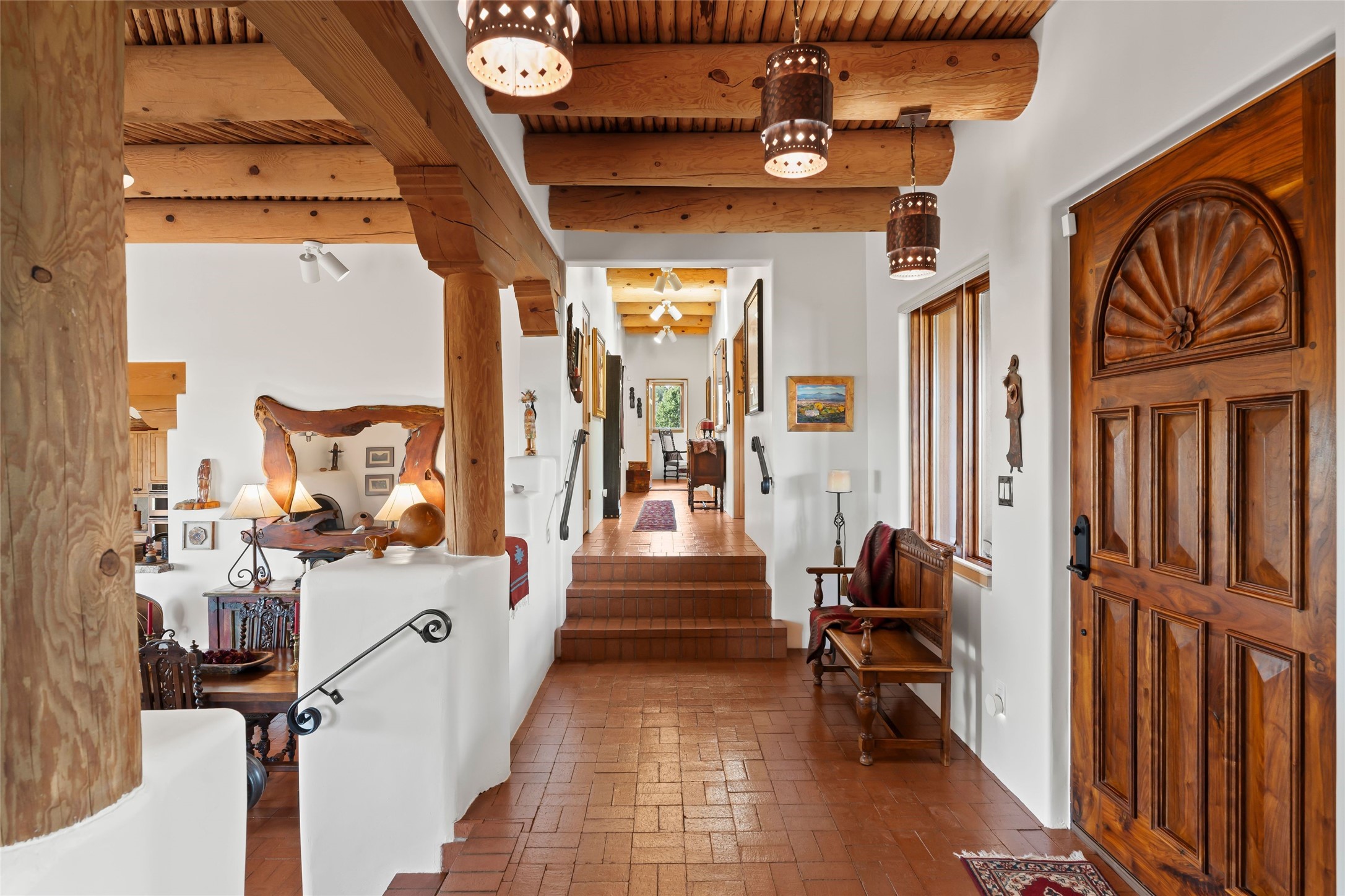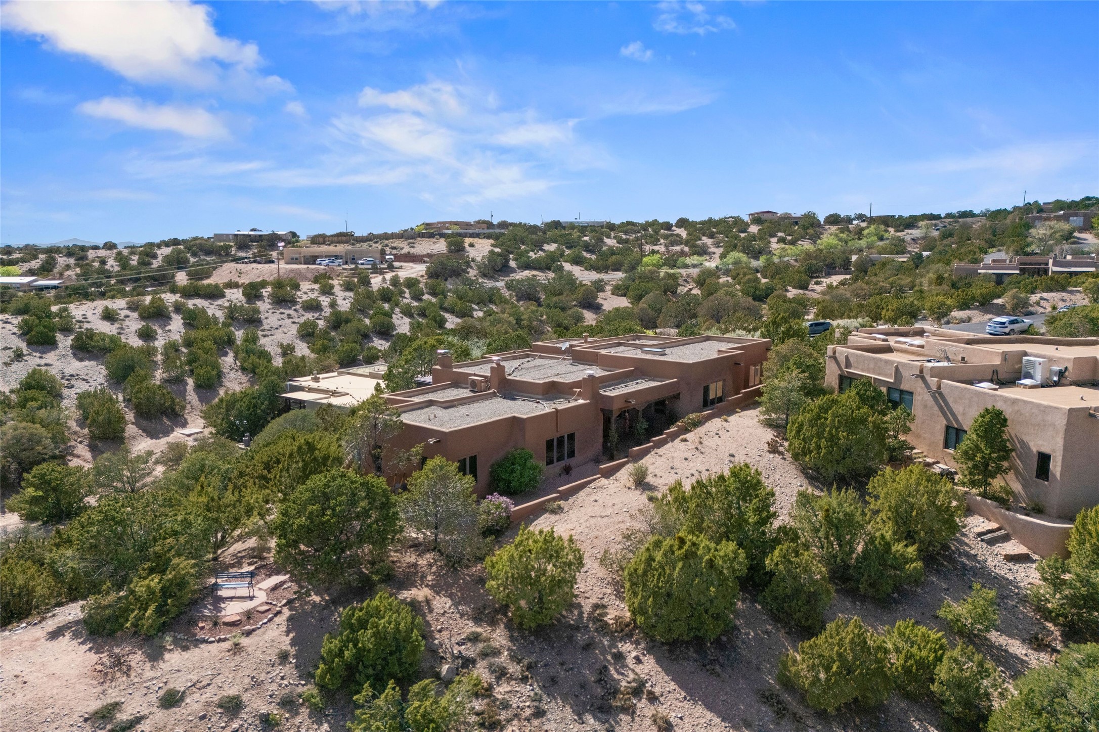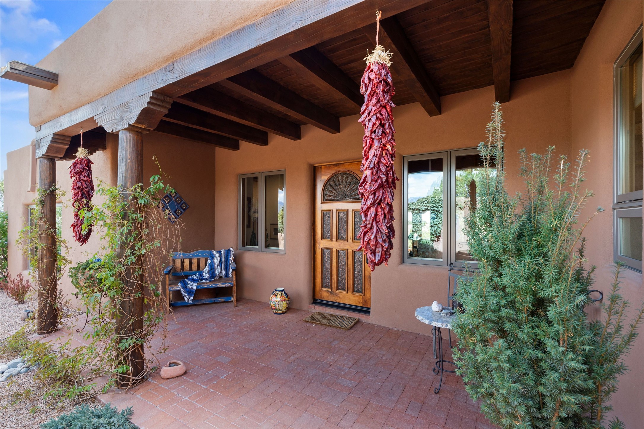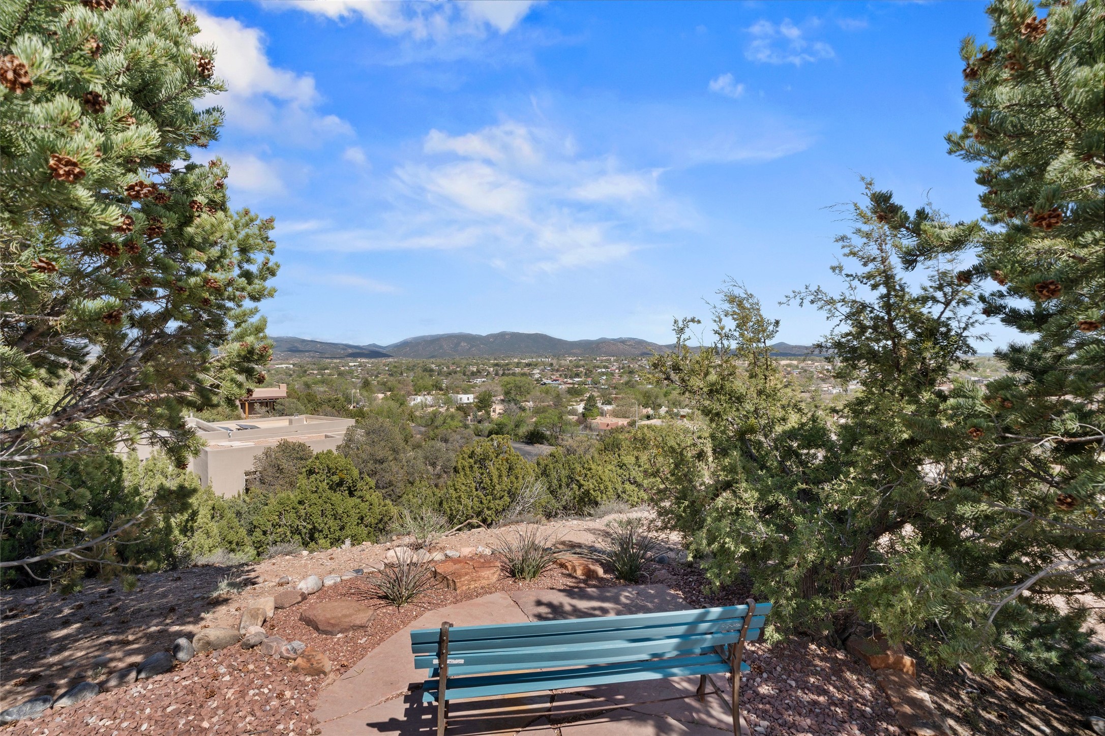 Step through the custom-designed front door and you're instantly welcomed by the charm of traditional Pueblo architecture--soaring ceilings with vigas and latillas, three cozy kiva fireplaces, and classic brick flooring. This thoughtfully updated home features fully remodeled bathrooms and kitchen, fresh paint throughout, redesigned closets, a walled courtyard, an epoxy-coated garage floor, and a modern alarm system. New windows frame breathtaking mountain and sky views from three sides of the home, offering daily front-row seats to spectacular sunrises and sunsets. Enjoy three distinct outdoor living spaces, perfect for relaxing or entertaining in style. Nestled in a serene natural landscape at the end of a quiet cul-de-sac, this home provides exceptional privacy while still being part of a welcoming neighborhood--just 12 minutes from the historic Plaza.