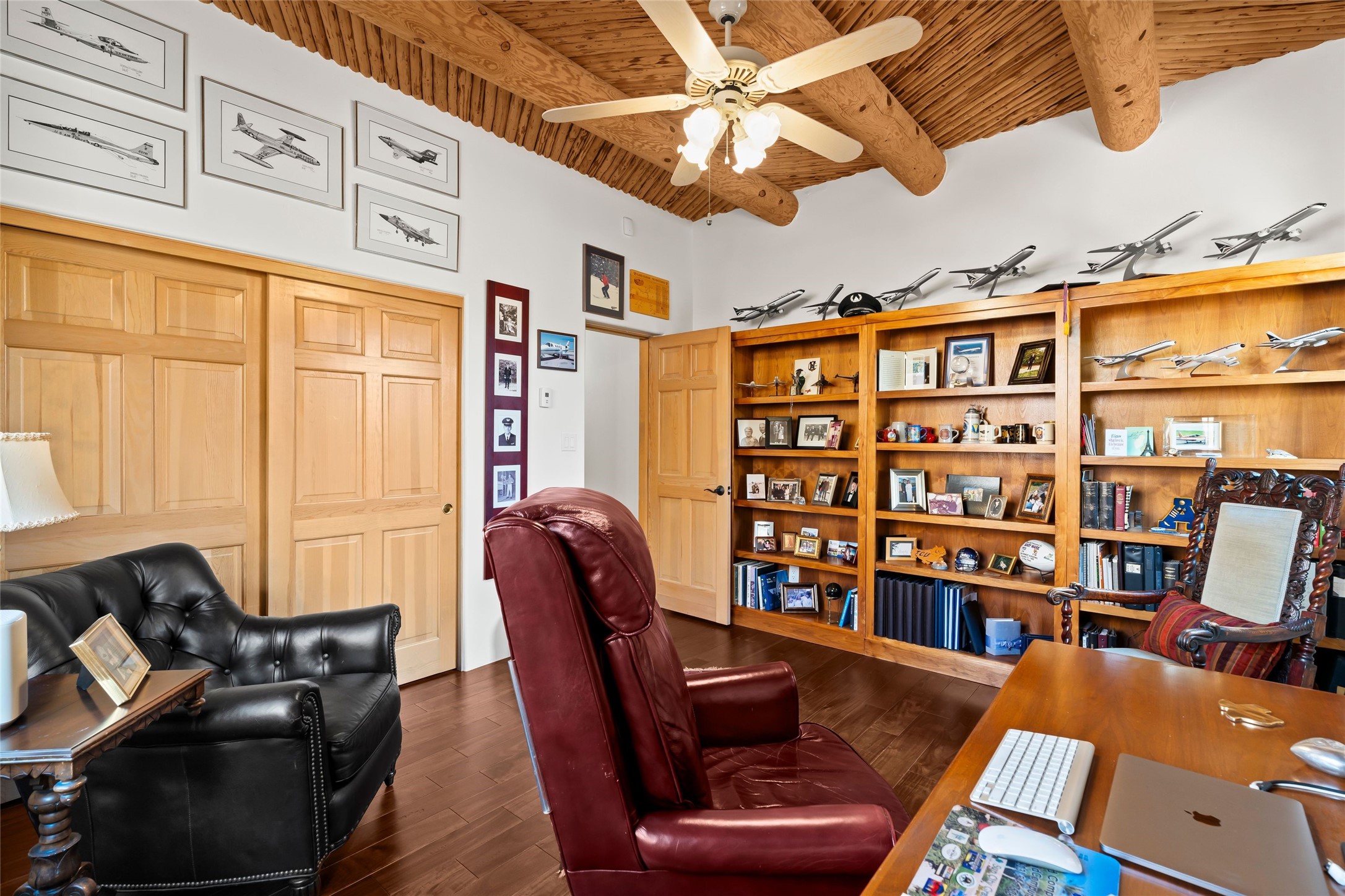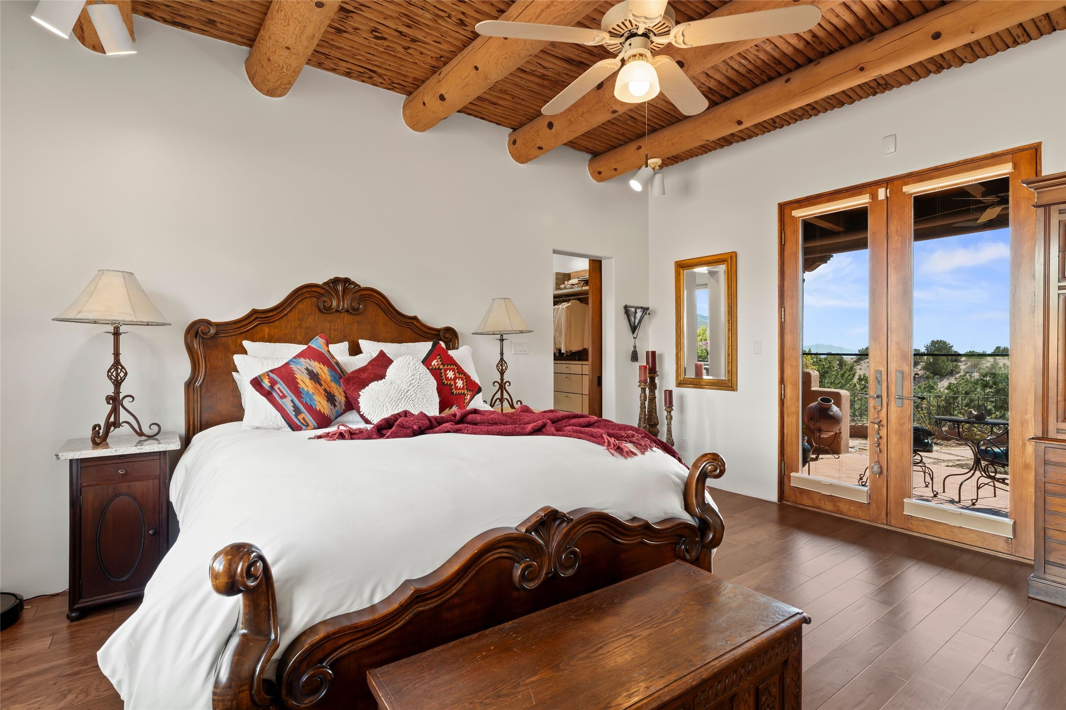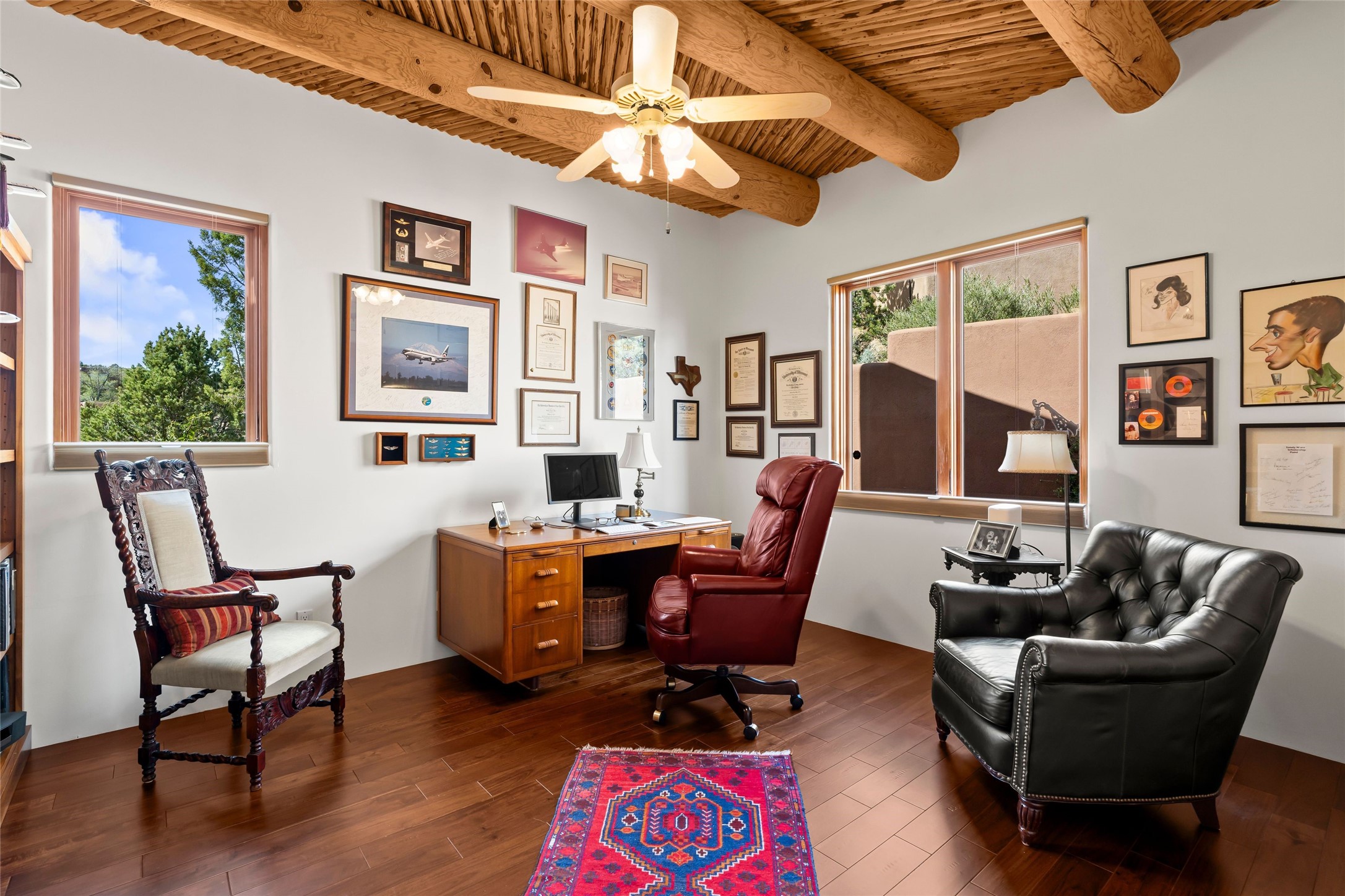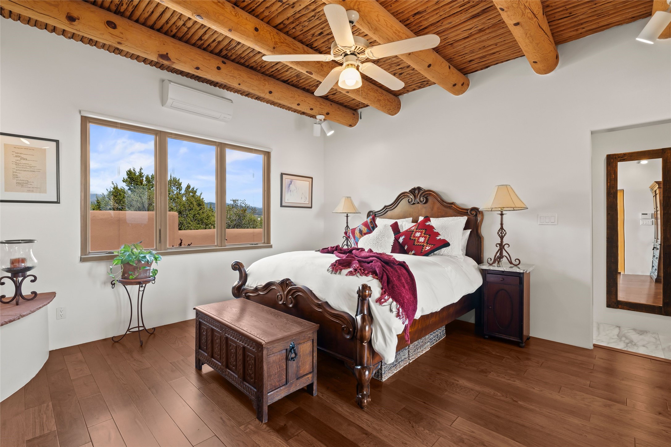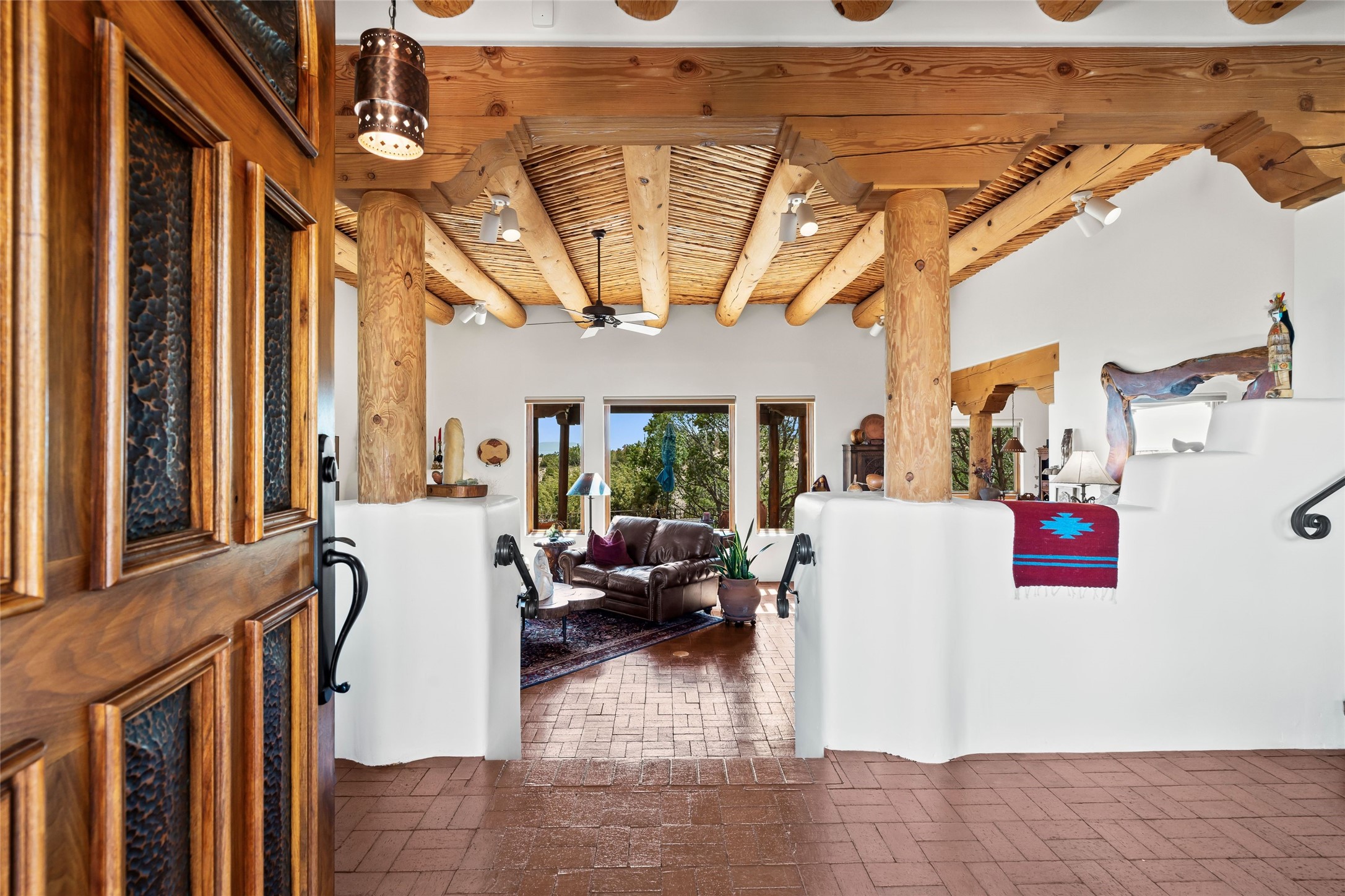Step through the custom-designed front door and you're instantly welcomed by the charm of traditional Pueblo architecture--soaring ceilings with vigas and latillas, three cozy kiva fireplaces, and classic brick flooring. This thoughtfully updated home features fully remodeled bathrooms and kitchen, fresh paint throughout, redesigned closets, a walled courtyard, an epoxy-coated garage floor, and a modern alarm system. New windows frame breathtaking mountain and sky views from three sides of the home, offering daily front-row seats to spectacular sunrises and sunsets. Enjoy three distinct outdoor living spaces, perfect for relaxing or entertaining in style. Nestled in a serene natural landscape at the end of a quiet cul-de-sac, this home provides exceptional privacy while still being part of a welcoming neighborhood--just 12 minutes from the historic Plaza.