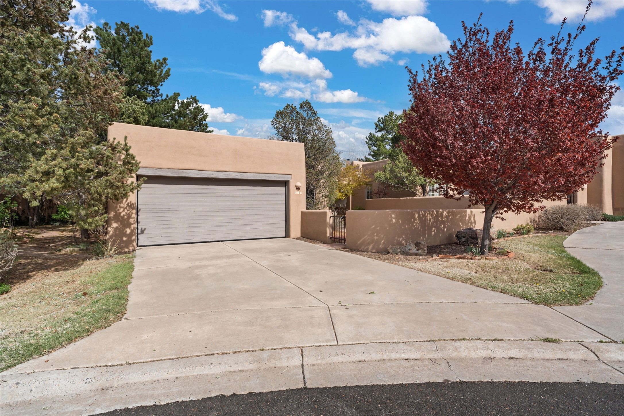 Classic Quail Run Pinon B with delightful outdoor spaces, charming Santa Fe style and an ideal floorplan. Enter through the spacious front courtyard which showcases views of the first green and those fabulous sunsets. The home will greet you with Saltillo floors, open living and optimal separation of bedrooms. Light filled kitchen nook compliments a spacious kitchen which extends to an alluring dining and living area. Sizable primary bedroom features a wood burning Kiva and opens to an ample back portal with lovely high desert landscape. Located on a quiet cul de sac in the midst of Santa Fe's premier condominium resort. Ownership at Quail Run includes 24 hour hosted security, beautiful grounds, state of the art gym and pool, multiple fitness classes, engaging 9 hole golf course, pickleball, tennis and much more. Come and experience!