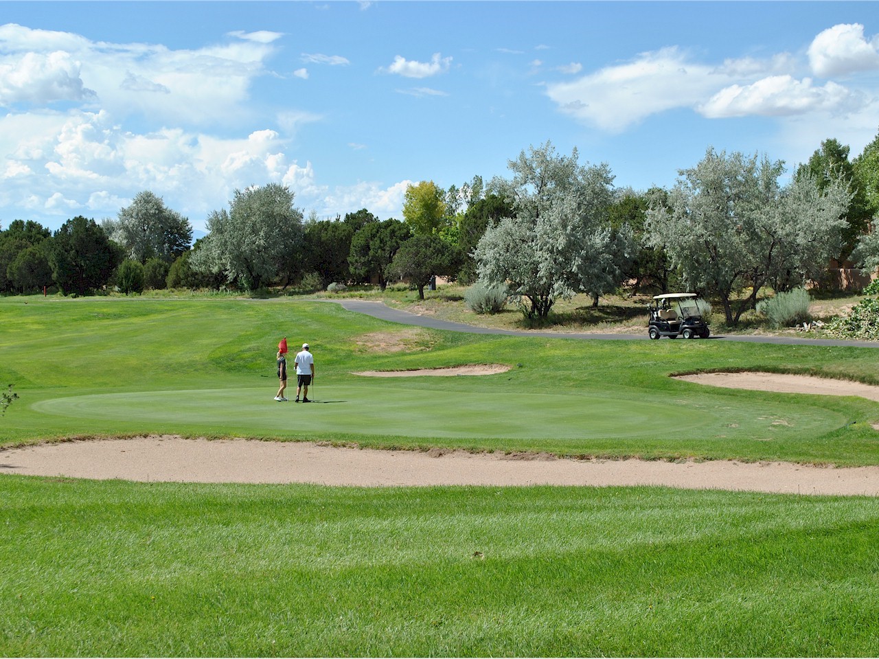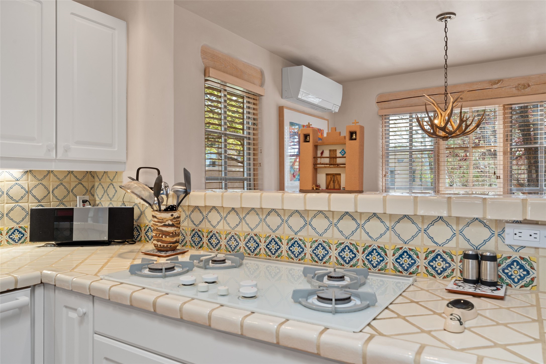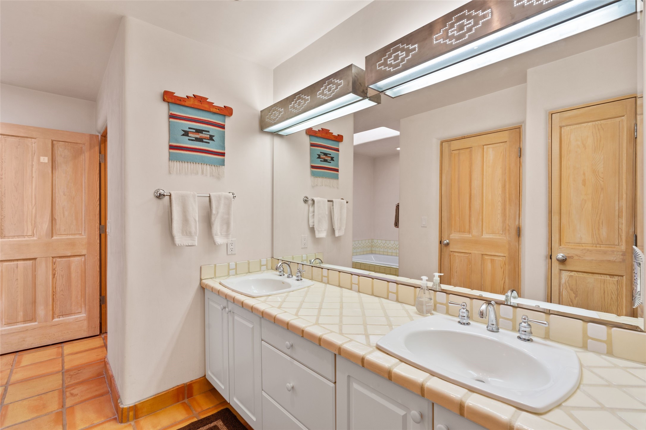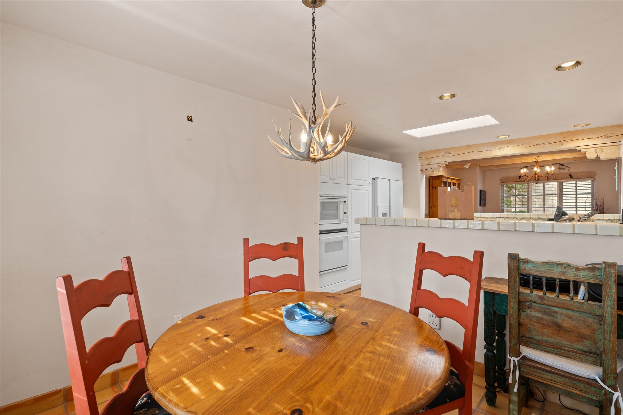 Classic Quail Run Pinon B with delightful outdoor spaces, charming Santa Fe style and an ideal floorplan. Enter through the spacious front courtyard which showcases views of the first green and those fabulous sunsets. The home will greet you with Saltillo floors, open living and optimal separation of bedrooms. Light filled kitchen nook compliments a spacious kitchen which extends to an alluring dining and living area. Sizable primary bedroom features a wood burning Kiva and opens to an ample back portal with lovely high desert landscape. Located on a quiet cul de sac in the midst of Santa Fe's premier condominium resort. Ownership at Quail Run includes 24 hour hosted security, beautiful grounds, state of the art gym and pool, multiple fitness classes, engaging 9 hole golf course, pickleball, tennis and much more. Come and experience!