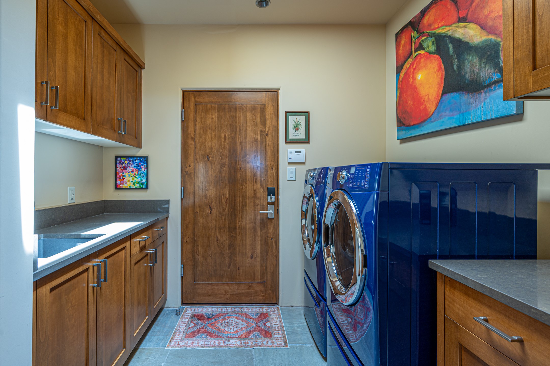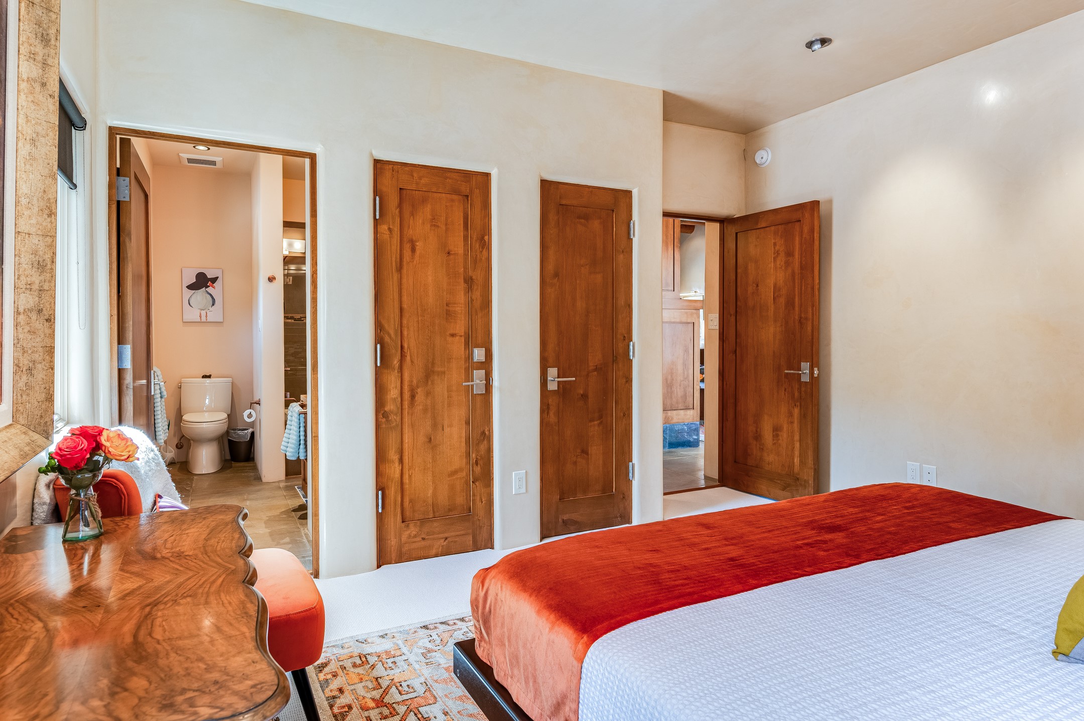 Located in the exclusive, gated High Summit community above Santa Fe, this stunning residence offers a rare blend of privacy, convenience, and breathtaking natural beauty and views. Located just minutes from Ten Thousand Waves, the Santa Fe Ski Basin, and the renowned Dale Ball Trail system--with direct access from your own backyard--this home is a true sanctuary for those who cherish the outdoors and Santa Fe's iconic landscape. Set against the serene backdrop of the Santa Fe National Forest, with sweeping views of the Sandia and Jemez Mountains, sunsets, and city lights, this thoughtfully designed home exemplifies the best of Santa Fe style. Inside, rich architectural details abound--vigas and beams, smooth plaster walls, custom cabinetry and doors, and natural stone flooring create a warm, refined atmosphere. This home is appointed with high-end finishes throughout. The gourmet kitchen is equipped with premium appliances, a generous island, and breakfast bar--ideal for everyday living or effortless entertaining. A gas log fireplace anchors the living room, while a cozy kiva fireplace adds charm to the bedroom suite. Comfort meets efficiency with central cooling, as well as radiant in-floor heating. The beautifully landscaped grounds are complemented by an outdoor view portal with automatic sunshades, seamlessly blending indoor and outdoor living. Built in 2013, the home has 2 bedrooms, 2 baths, private office/study/den plus an additional room currently the perfect home gym. Also included is a large storage room with built-in shelving and 2 car garage. All of this, with paved, maintained roads and city utilities--just five miles from the heart of downtown Santa Fe, Canyon Road's galleries, and world-class dining. A unique opportunity to own an elegant mountain escape in one of Santa Fe's most desirable enclaves.