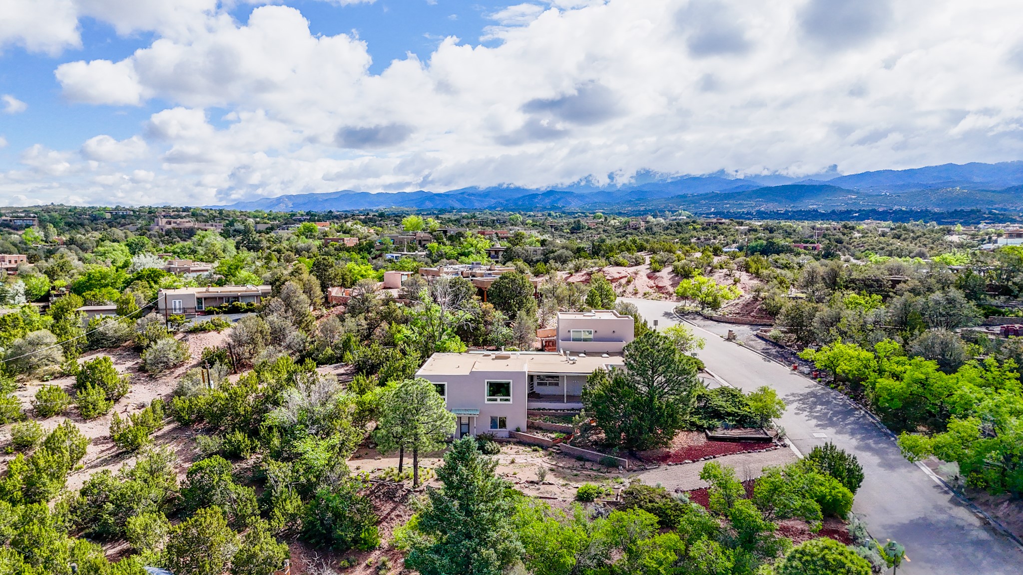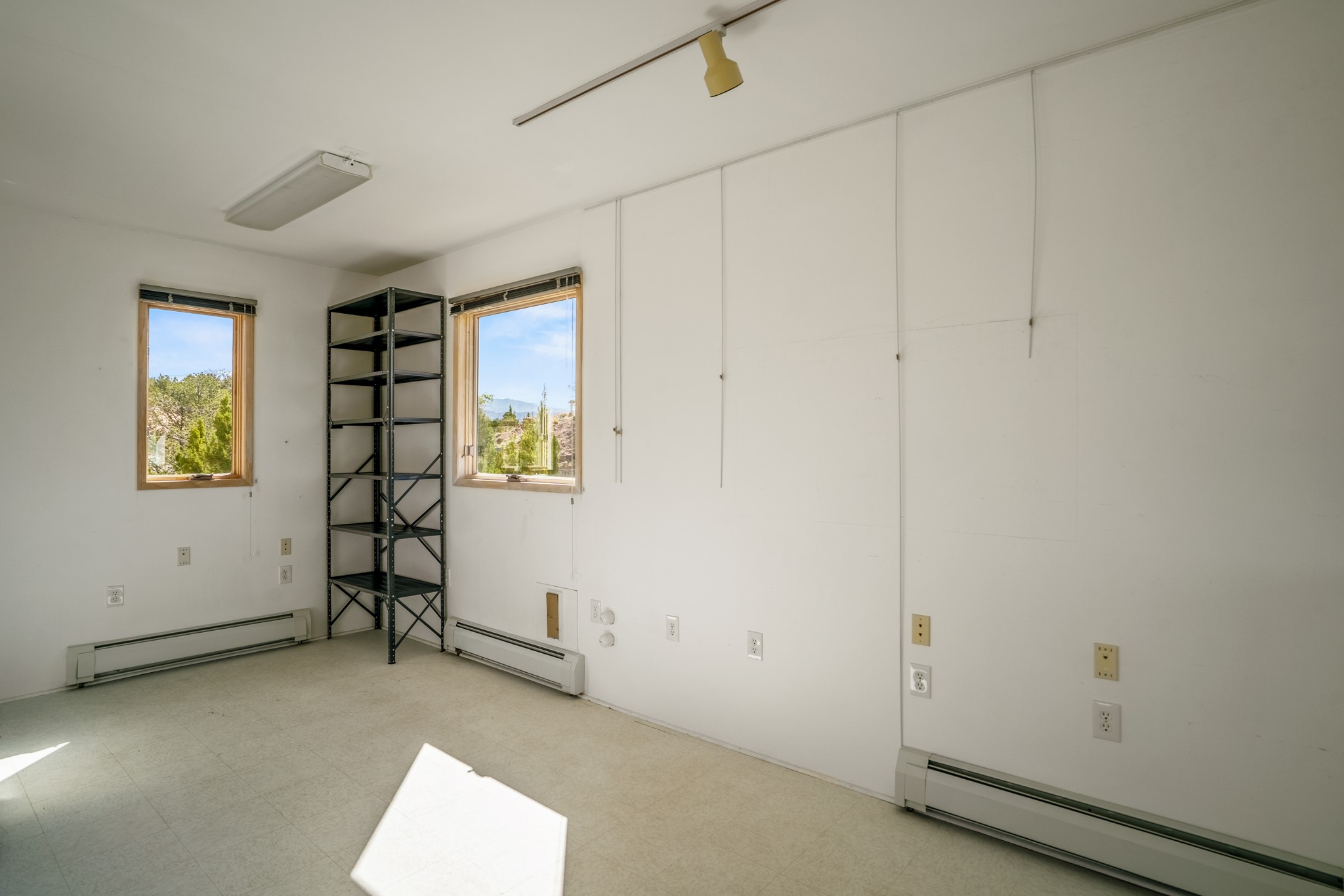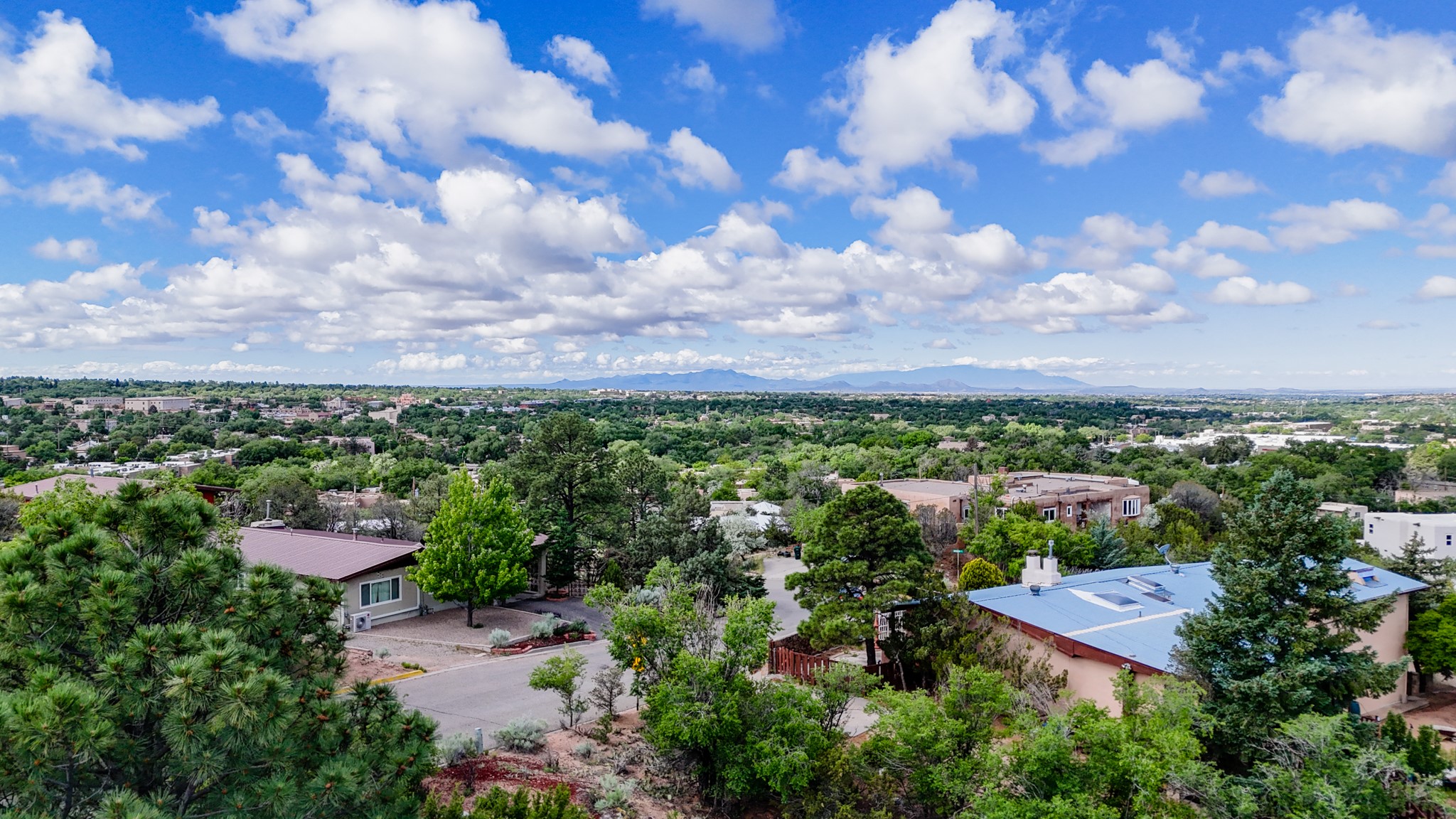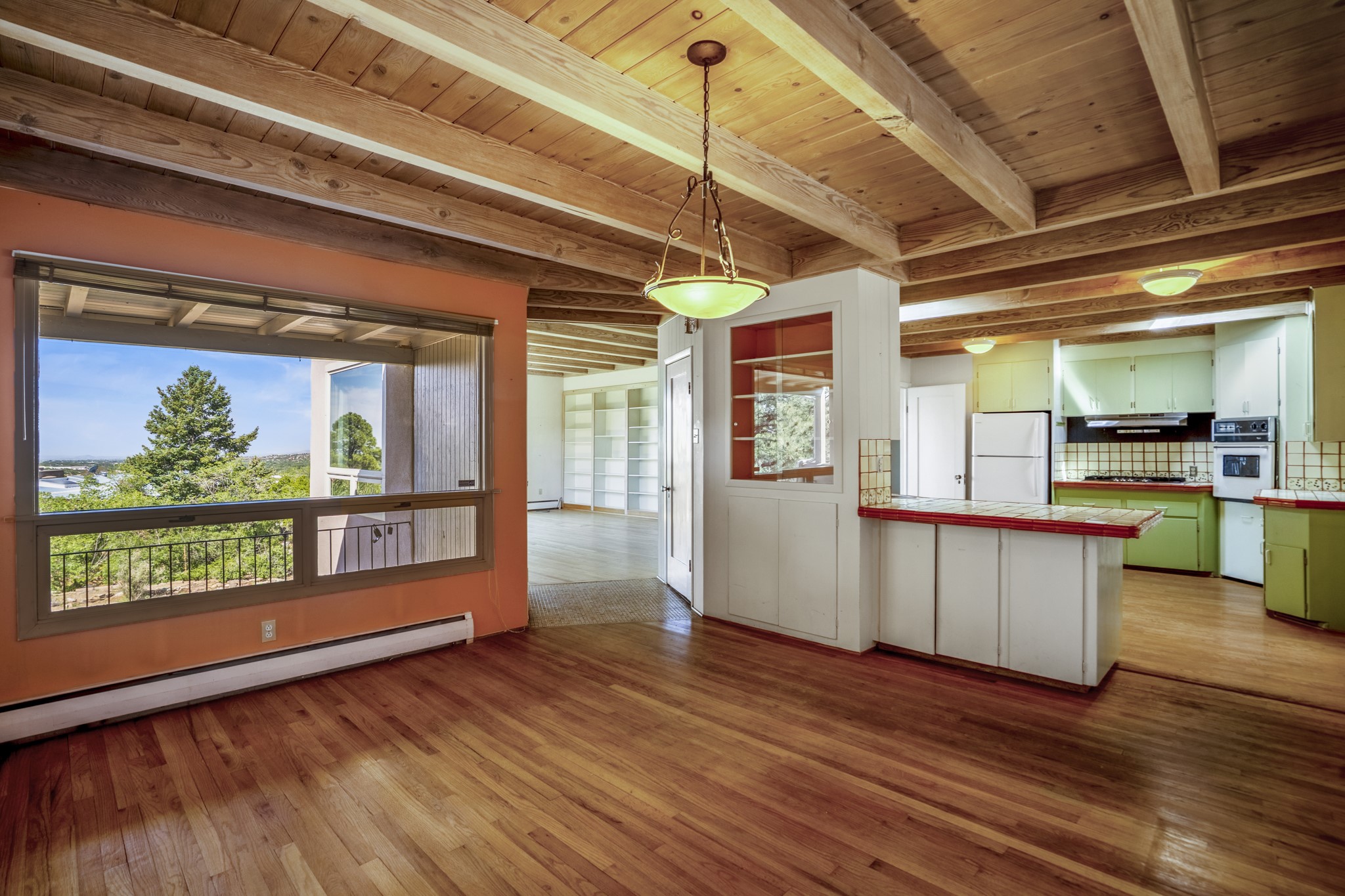 Discover the potential of this mid-century home paired with a contemporary studio, perched at the peak of the desirable Rosario Hill neighborhood and offering sweeping western views. The main house features potential mid-century charm, ready for a visionary owner to restore and personalize. The upper level includes a spacious living room with a cozy fireplace and expansive views, a formal dining area, a functional kitchen, two bedrooms, and a full bath. The lower level offers incredible versatility with two additional bedrooms, a full bath, a large family/living area with a fireplace, a private entrance, and dedicated parking--ideal for use as a rental unit or guest suite. Adding even more value is a separate studio building, offering two distinct studio spaces (approximately 600 sq. ft. each). The upper studio is bright and airy, with lovely views, while the lower studio includes a bath--perfect as an artist's retreat or as rental income from creative tenants.This unique property offers multiple income streams, artistic flexibility, and the opportunity to craft a dream home in one of the area's scenic neighborhoods 5 minutes from the Santa Fe Plaza.