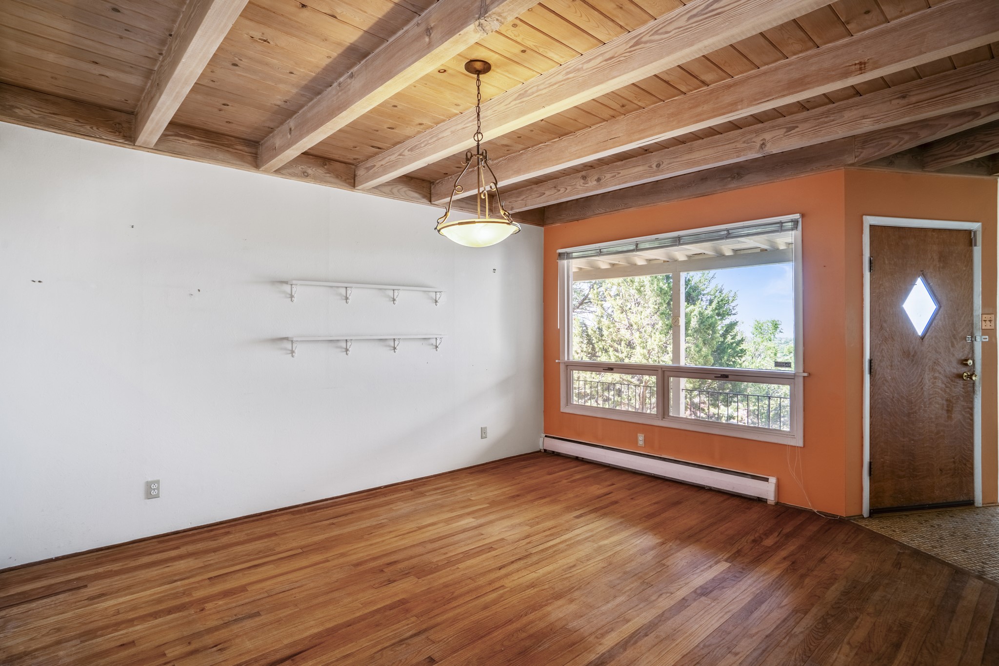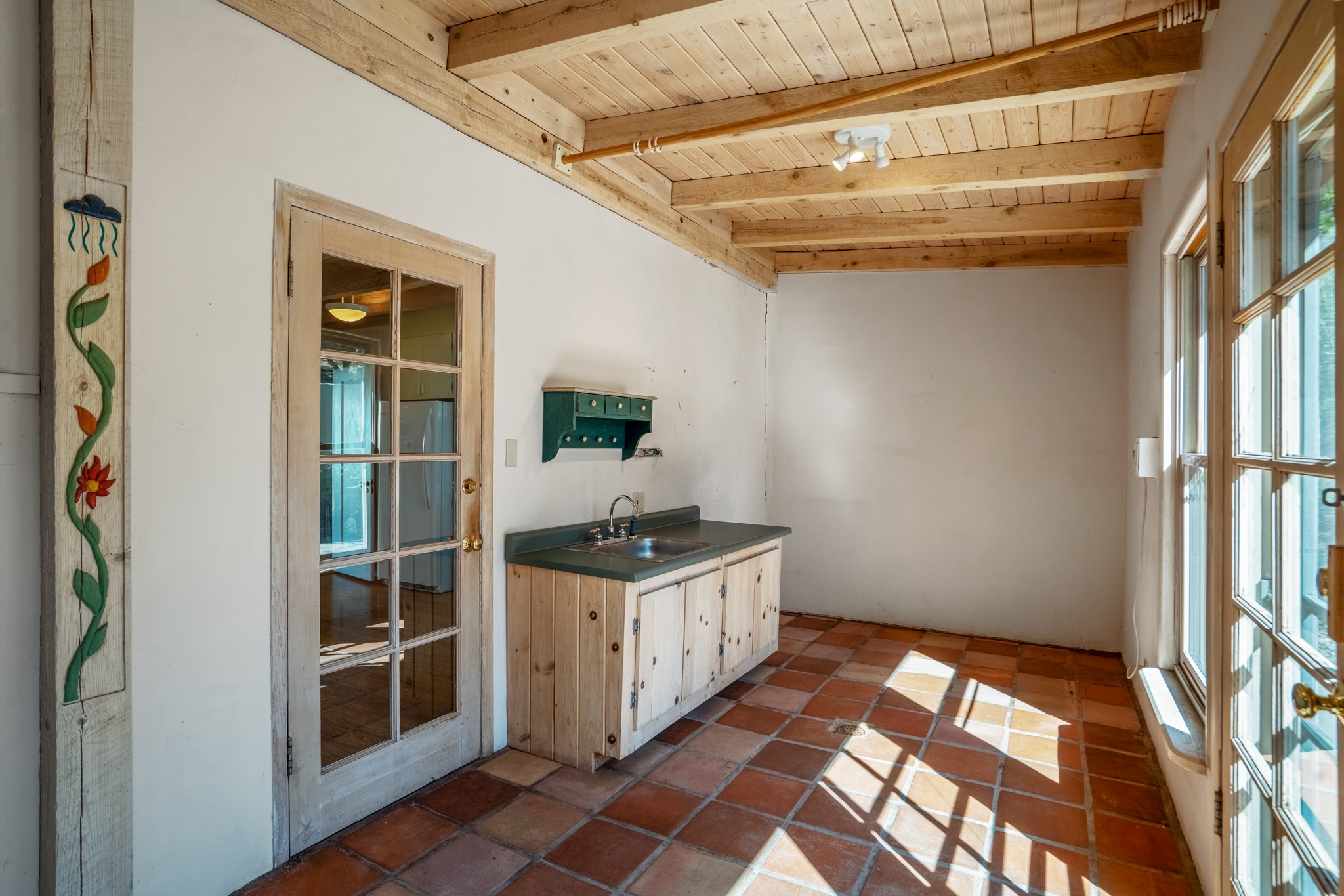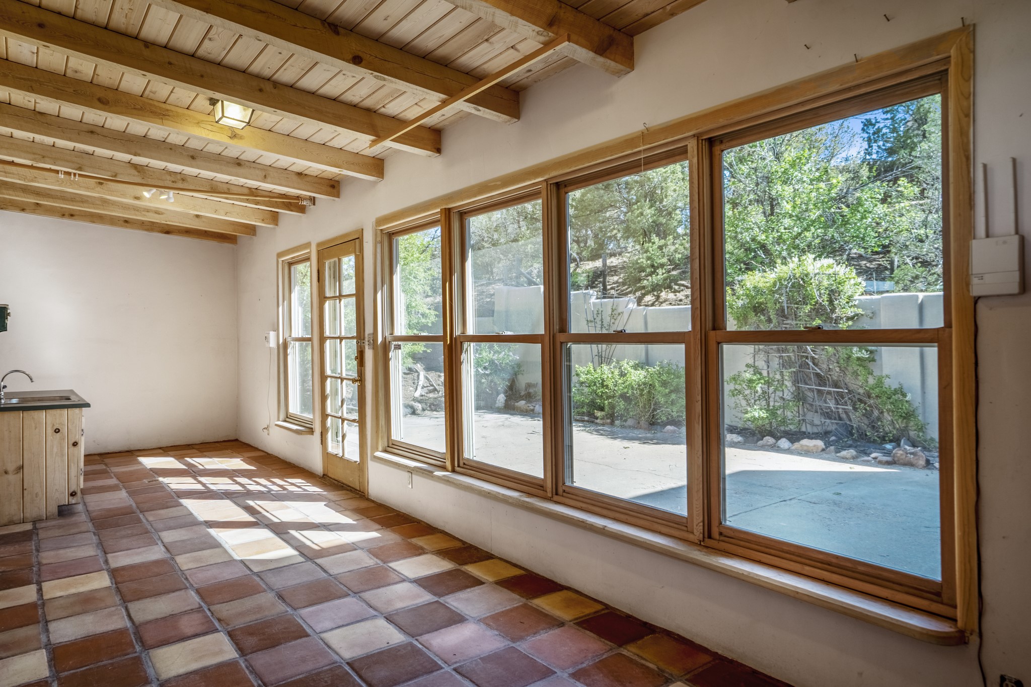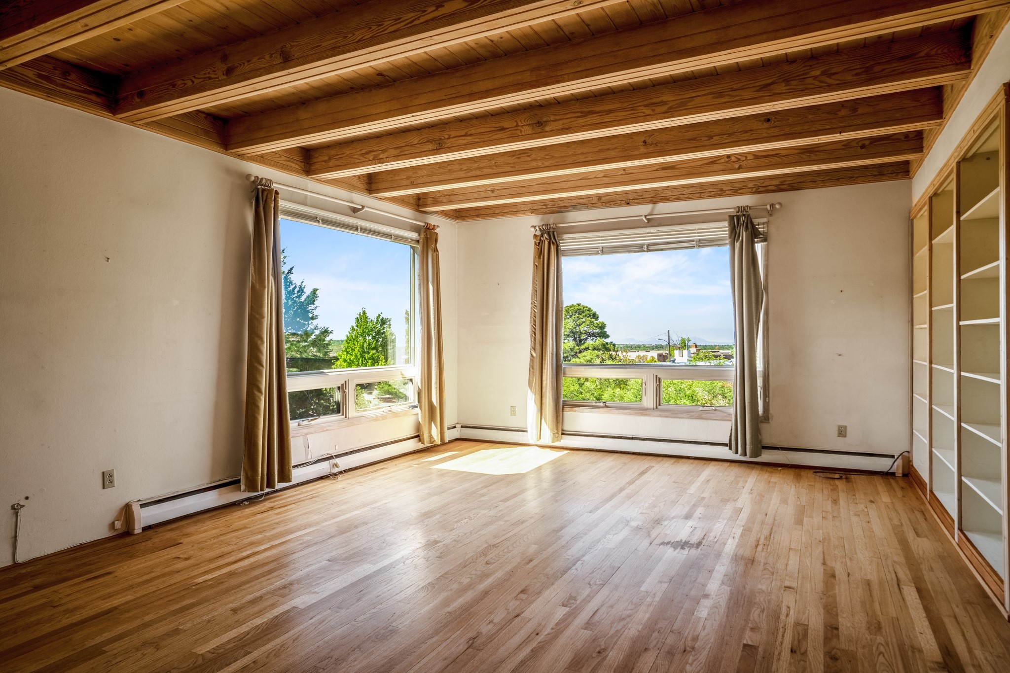 Discover the potential of this mid-century home paired with a contemporary studio, perched at the peak of the desirable Rosario Hill neighborhood and offering sweeping western views. The main house features potential mid-century charm, ready for a visionary owner to restore and personalize. The upper level includes a spacious living room with a cozy fireplace and expansive views, a formal dining area, a functional kitchen, two bedrooms, and a full bath. The lower level offers incredible versatility with two additional bedrooms, a full bath, a large family/living area with a fireplace, a private entrance, and dedicated parking--ideal for use as a rental unit or guest suite. Adding even more value is a separate studio building, offering two distinct studio spaces (approximately 600 sq. ft. each). The upper studio is bright and airy, with lovely views, while the lower studio includes a bath--perfect as an artist's retreat or as rental income from creative tenants.This unique property offers multiple income streams, artistic flexibility, and the opportunity to craft a dream home in one of the area's scenic neighborhoods 5 minutes from the Santa Fe Plaza.