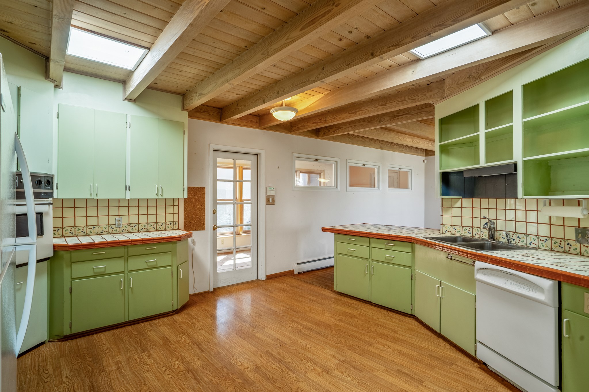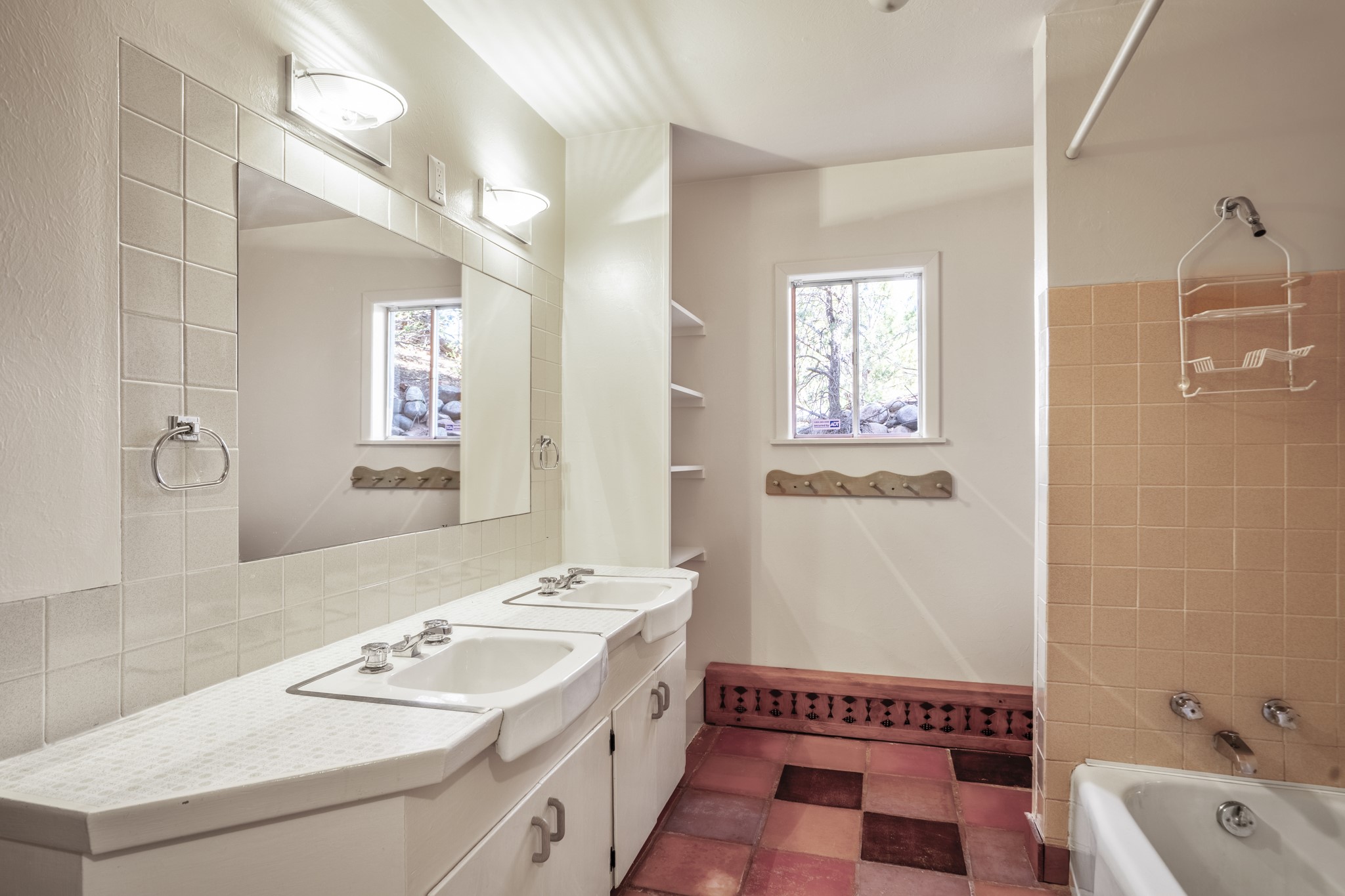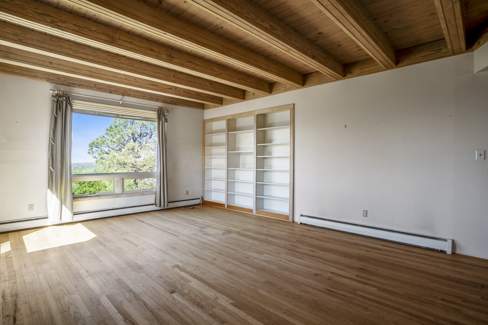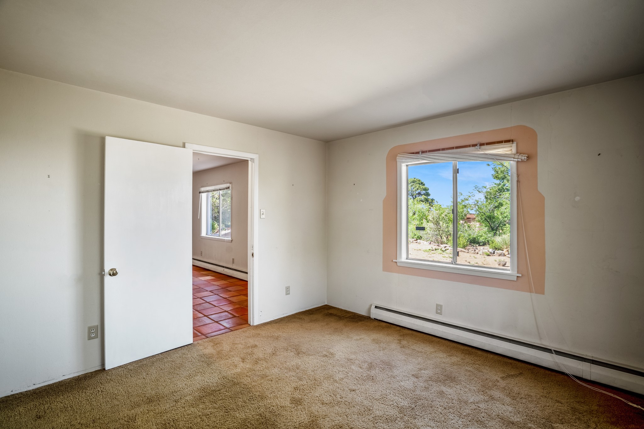 Discover the potential of this mid-century home paired with a contemporary studio, perched at the peak of the desirable Rosario Hill neighborhood and offering sweeping western views. The main house features potential mid-century charm, ready for a visionary owner to restore and personalize. The upper level includes a spacious living room with a cozy fireplace and expansive views, a formal dining area, a functional kitchen, two bedrooms, and a full bath. The lower level offers incredible versatility with two additional bedrooms, a full bath, a large family/living area with a fireplace, a private entrance, and dedicated parking--ideal for use as a rental unit or guest suite. Adding even more value is a separate studio building, offering two distinct studio spaces (approximately 600 sq. ft. each). The upper studio is bright and airy, with lovely views, while the lower studio includes a bath--perfect as an artist's retreat or as rental income from creative tenants.This unique property offers multiple income streams, artistic flexibility, and the opportunity to craft a dream home in one of the area's scenic neighborhoods 5 minutes from the Santa Fe Plaza.