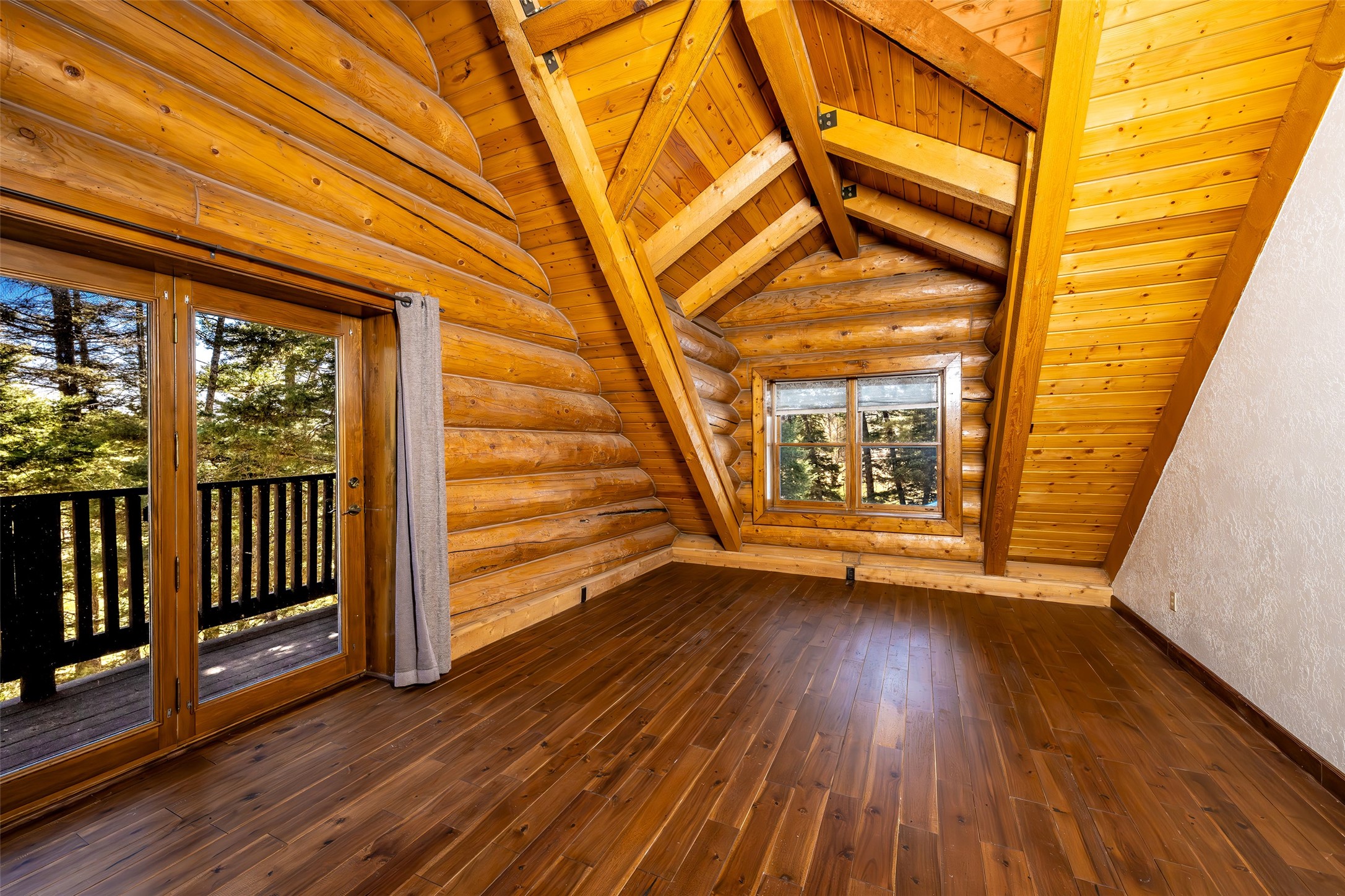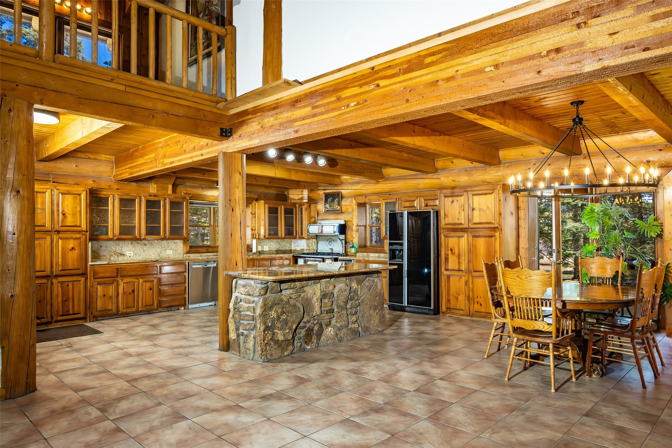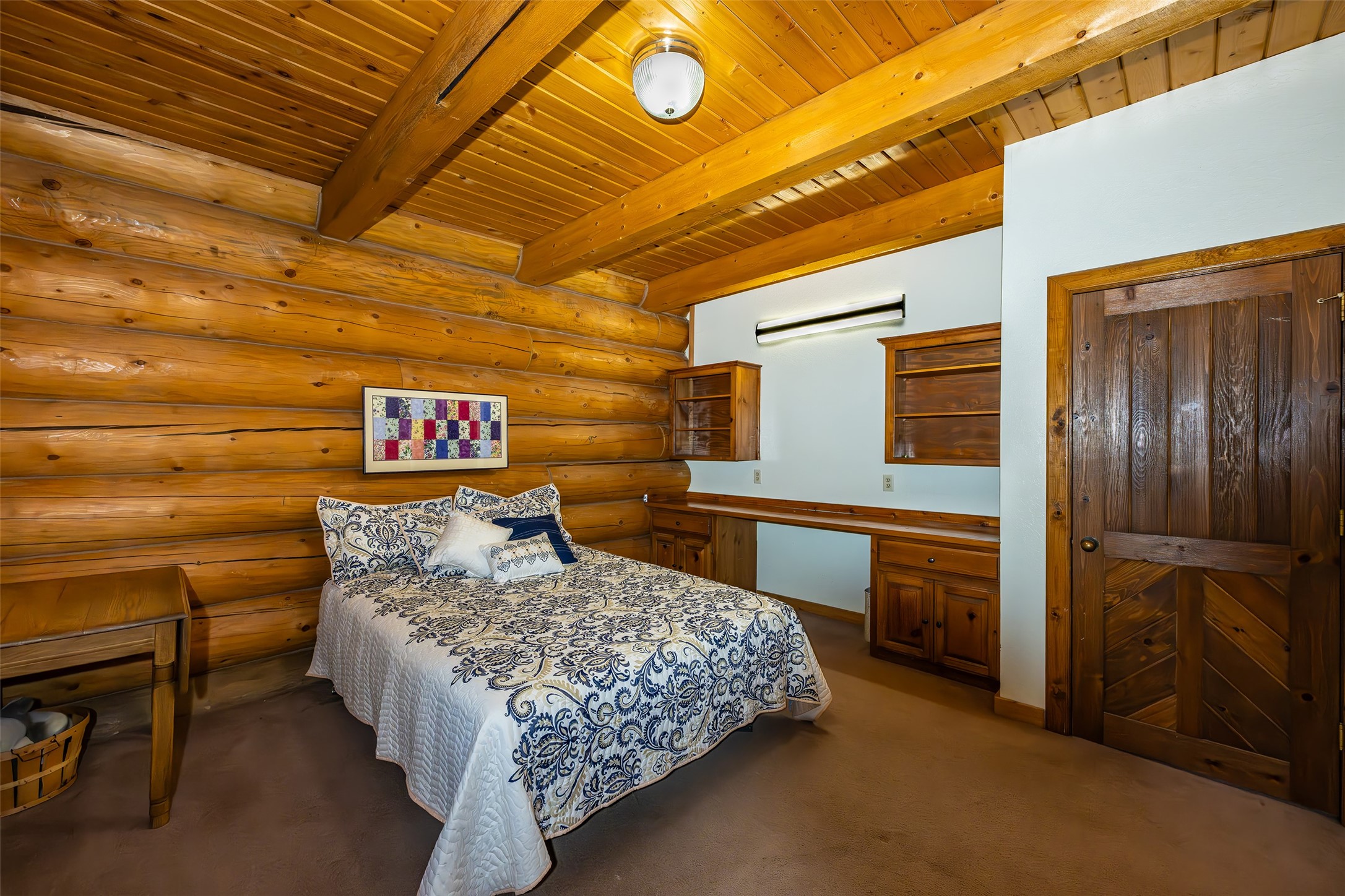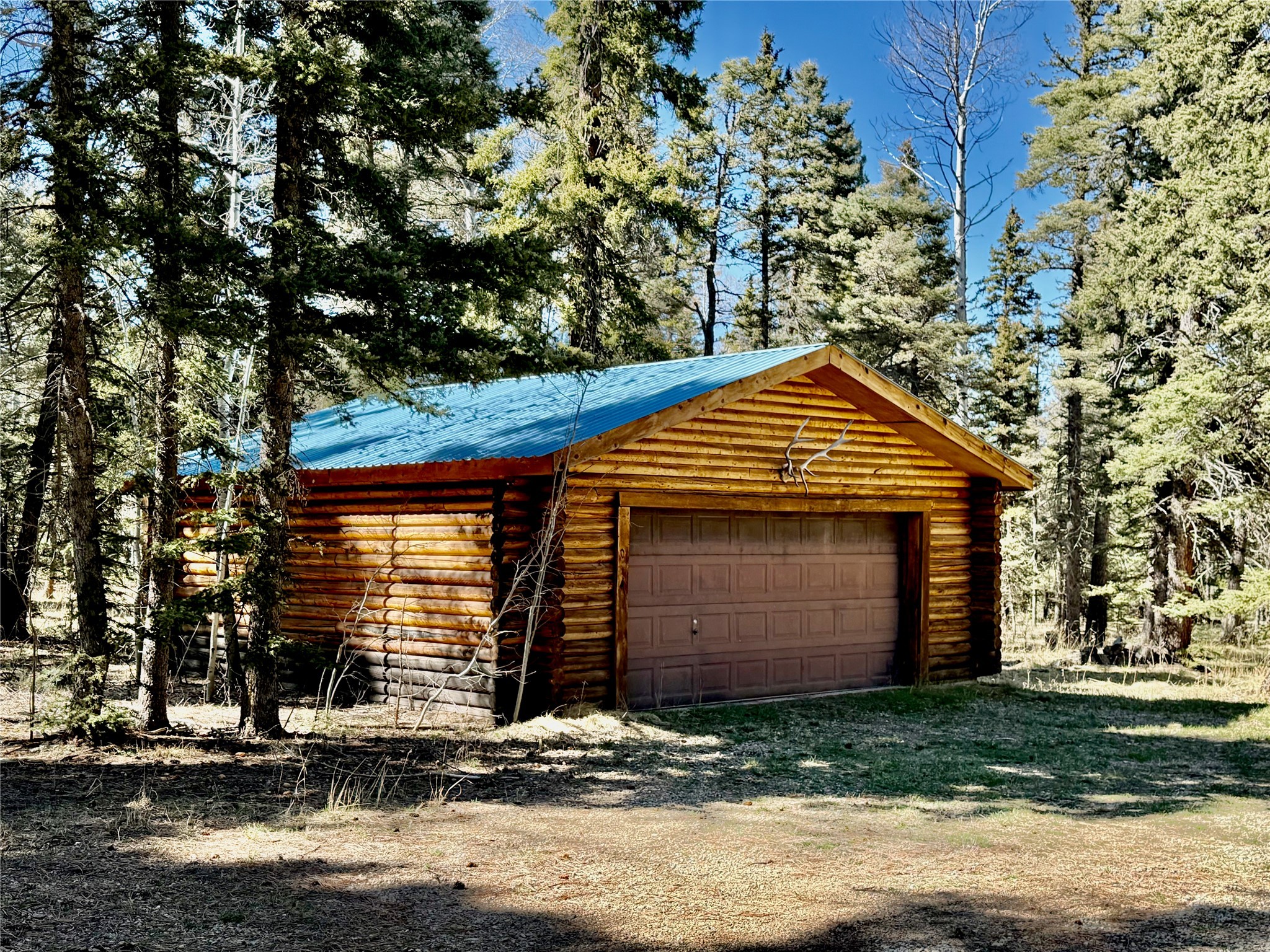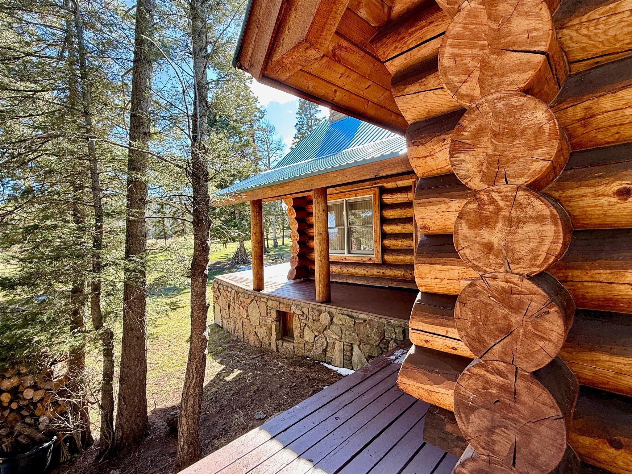 A rare opportunity to own a legacy estate steps from Carson National Forest, this exceptional property spans up to 80 acres of private alpine woods and open meadows-a true retreat in Northern New Mexico. The handcrafted log home is ideally positioned to capture sweeping views, total serenity, and the adventurous spirit of the region.Inside, rustic elegance shines with soaring tongue-and-groove ceilings, a striking rock fireplace, and open living spaces designed for comfort. The country-style kitchen features custom cabinetry, rich countertops, and ample storage. Outside, covered porches and wraparound decks offer year-round enjoyment of the mountain setting. Wildlife is part of daily life-watch elk and deer from your porch. Whether riding side-by-sides in summer, snowmobiling in winter, or enjoying the seasons, this property invites full immersion in nature. The lower level includes a large family room for guests or recreation. Amenities: game-processing room, 50x100 barn with horse stalls, pond, RV hook-up, oversized 1-car garage, and an owned vendor-flexible propane tank. The 80 acres have qualified for NM Game & Fish elk tags (Secondary Management Zone) for the past eight years. Forest Rd 76 lies in GMU 48, on the boundary of GMUs 48 and 49. Located on a quiet Forest Service road, the estate is a gateway to Carson National Forest-perfect for hiking, horseback riding, and exploring. Despite the seclusion, it's only 7 minutes to Angel Fire Resort and 10 minutes to the jet-capable Angel Fire Airport. Flexible acreage options available. More than a home-it's a generational sanctuary and smart investment in Northern New Mexico living.