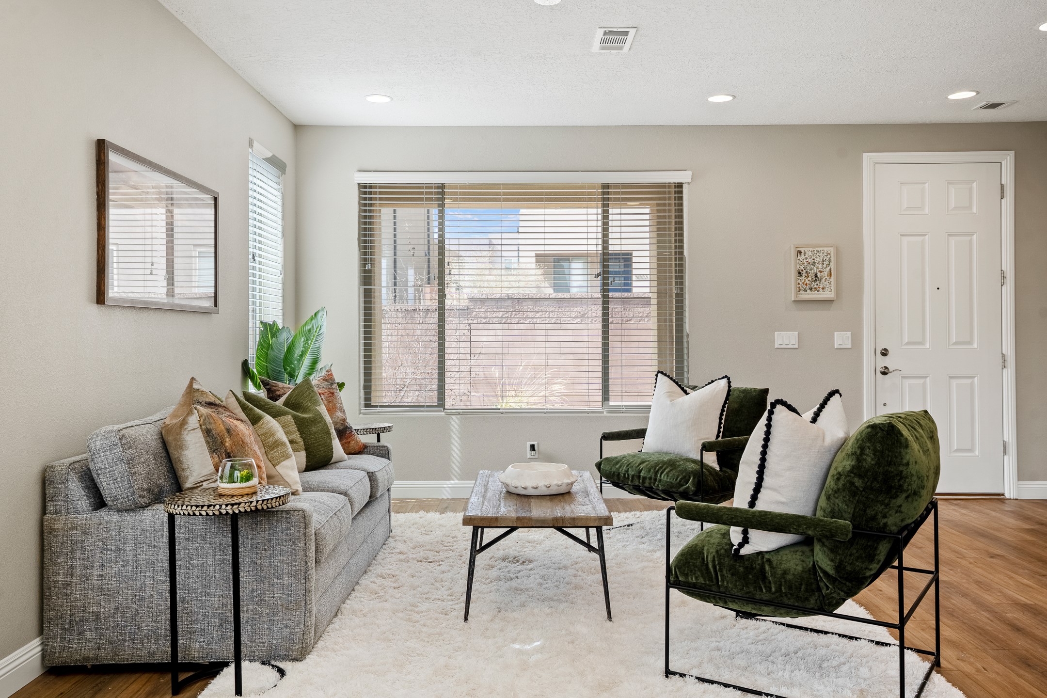 Experience Elevated Living in this Upgraded Pulte Senita Townhome. Step into effortless luxury and everyday convenience in this beautifully upgraded Pulte Senita model townhome. Designed with both comfort and style in mind, this spacious residence offers the perfect blend of modern elegance and functional living across two thoughtfully designed levels. The heart of the home is a chef's dream kitchen--equipped with premium KitchenAid appliances, including a six-burner cooktop, drawer microwave, and sleek quartz countertops. An oversized island and walk-in pantry add to the appeal, making this space perfect for entertaining or daily culinary adventures. A full-sized laundry room features newer LG washer and dryer units for your convenience, and a two-car garage provides ample storage and easy access. Upstairs, three generously sized bedrooms offer privacy and comfort for the whole family. The primary suite is a true retreat, boasting a spacious layout with a private sitting room or office area that opens to a serene balcony with city views. The en-suite bath is a spa-inspired oasis featuring a jetted soaking tub, double vanities, a separate glass-enclosed shower, and a private water closet, all connected to a large walk-in closet. From top to bottom, this townhome is crafted for those who appreciate luxury, space, and smart design--all just minutes from the best of city living: parks, shopping, dining, and even the new Presbyterian hospital.