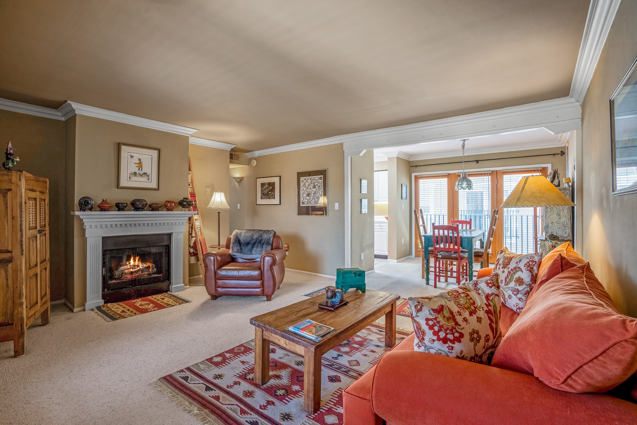 This second-floor condo has a warm and bright interior and offers a very spacious feel. The front patio is generously sized and can be accessed from the living room and the bedroom through 2 sets of French doors. This gated community is ideally located just a few blocks north of the downtown plaza, and across the street from the Fort Marcy Sports Complex, which offers a large park, pickle ball courts, a workout facility and indoor pool. The El Matador Condominiums feature a gated entrance and a beautiful and lush interior courtyard. There is one reserved space in the carport, and several guest parking spots. The condo has refrigerated central air-conditioning and forced-air heat, and a gas fireplace. Ideal for investors, and as a part-time home. Some furnishings included with sale at no additional cost. Washer/dryer in condo. Storage locker located off front patio area.