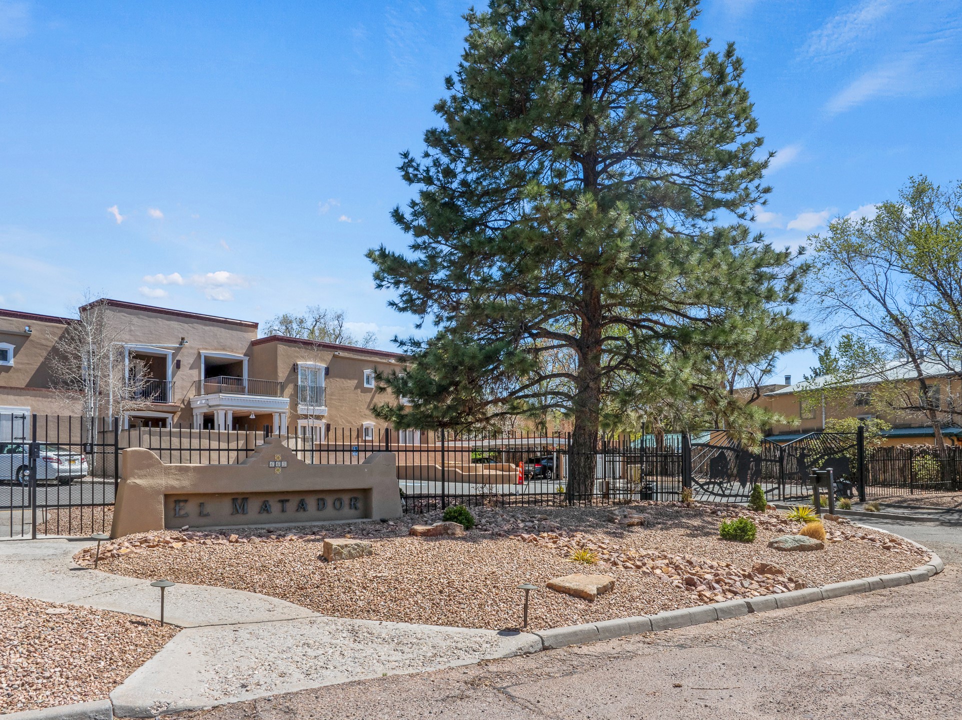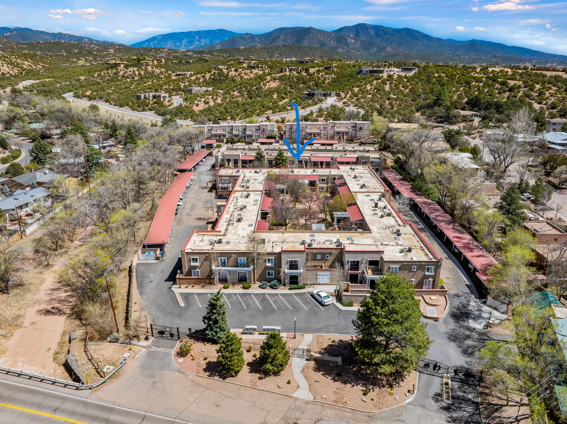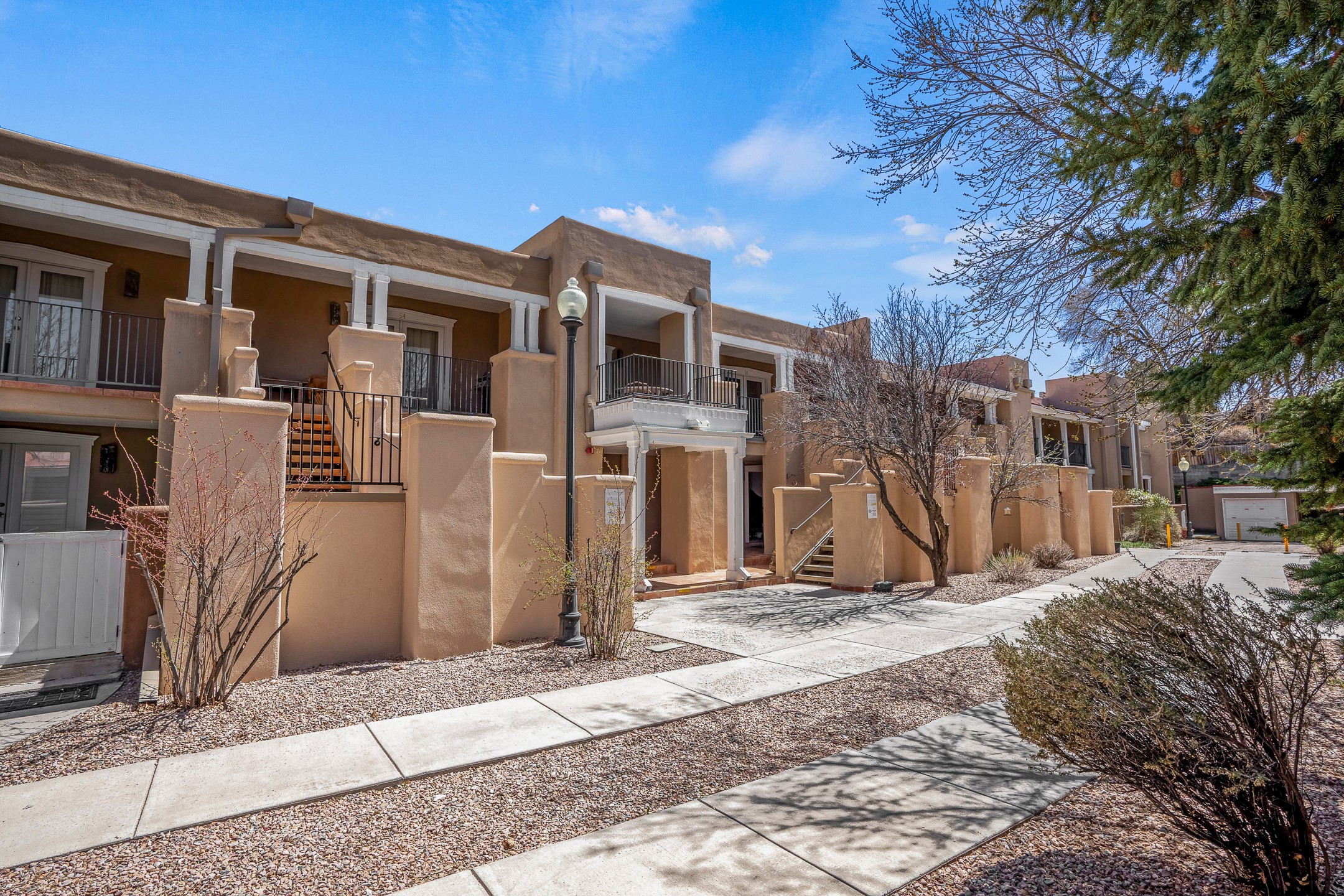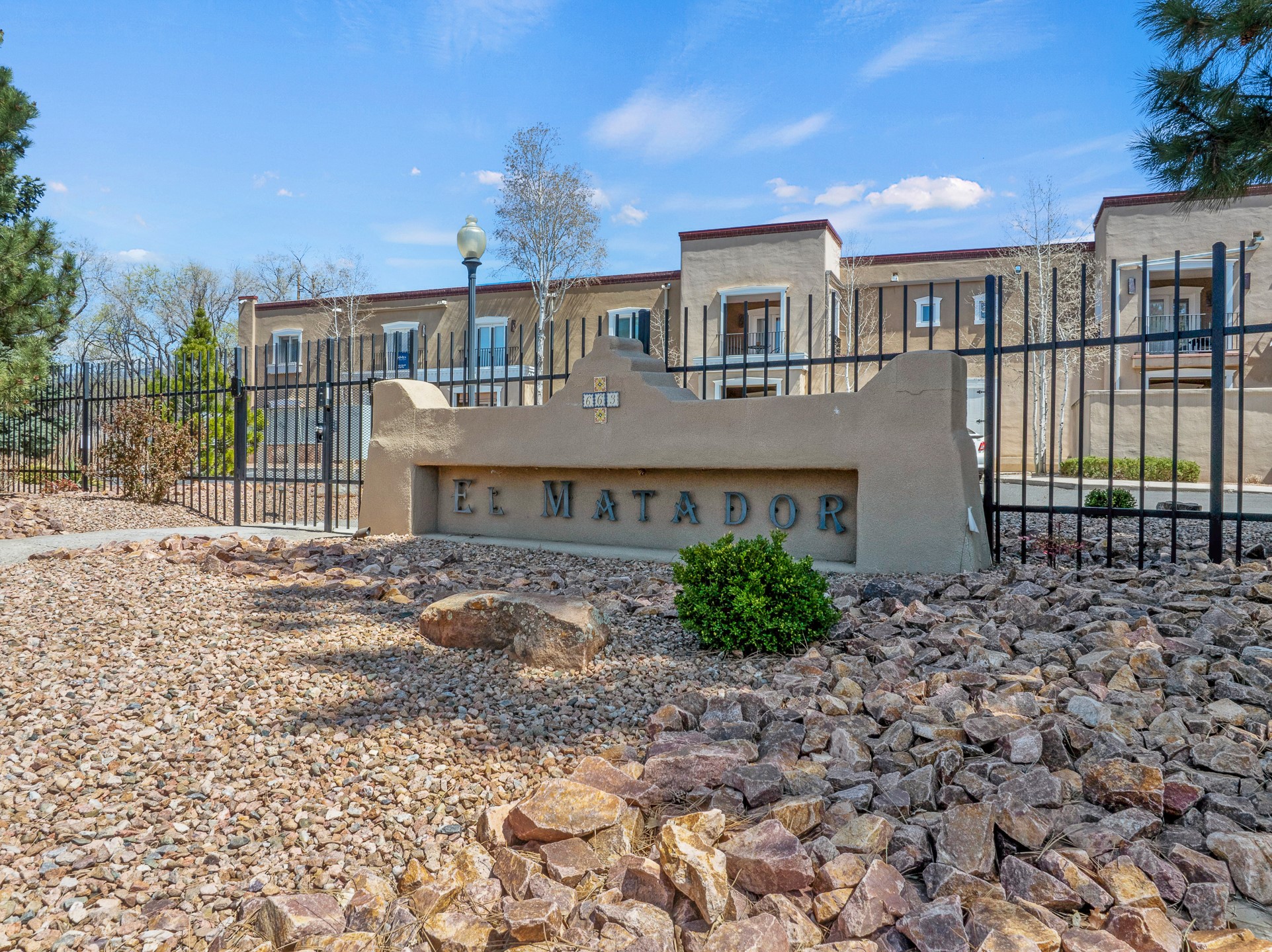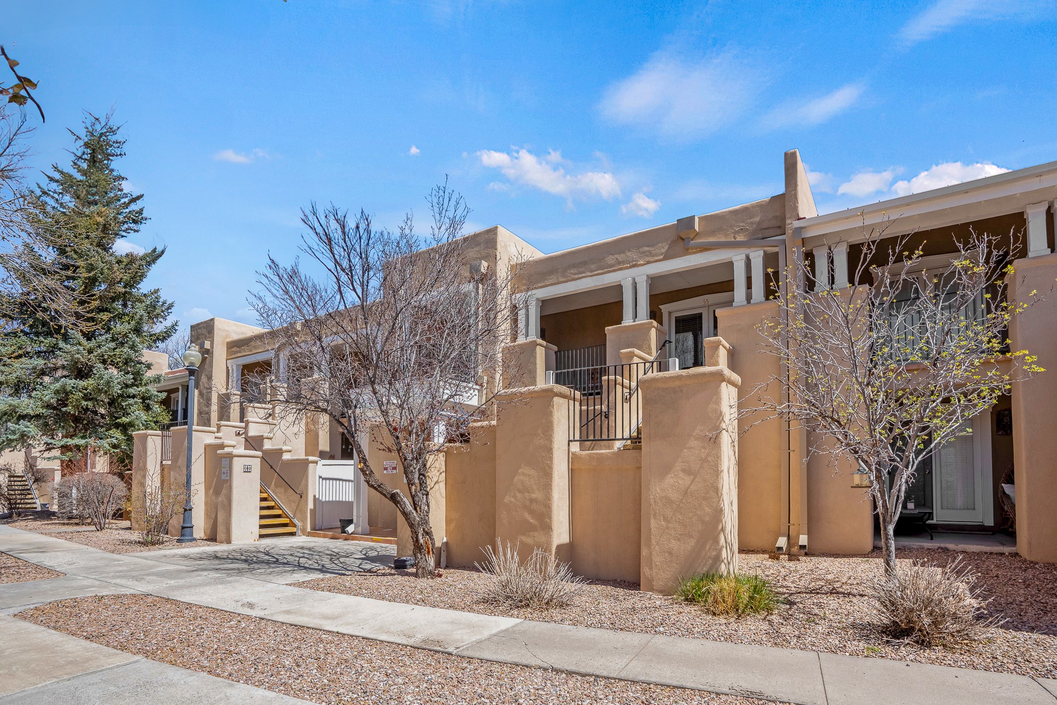This second-floor condo has a warm and bright interior and offers a very spacious feel. The front patio is generously sized and can be accessed from the living room and the bedroom through 2 sets of French doors. This gated community is ideally located just a few blocks north of the downtown plaza, and across the street from the Fort Marcy Sports Complex, which offers a large park, pickle ball courts, a workout facility and indoor pool. The El Matador Condominiums feature a gated entrance and a beautiful and lush interior courtyard. There is one reserved space in the carport, and several guest parking spots. The condo has refrigerated central air-conditioning and forced-air heat, and a gas fireplace. Ideal for investors, and as a part-time home. Some furnishings included with sale at no additional cost. Washer/dryer in condo. Storage locker located off front patio area.