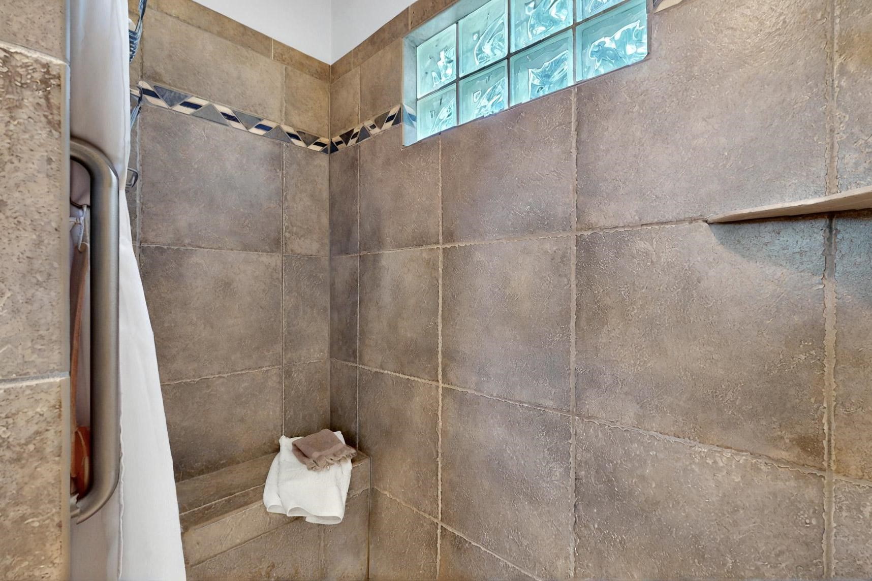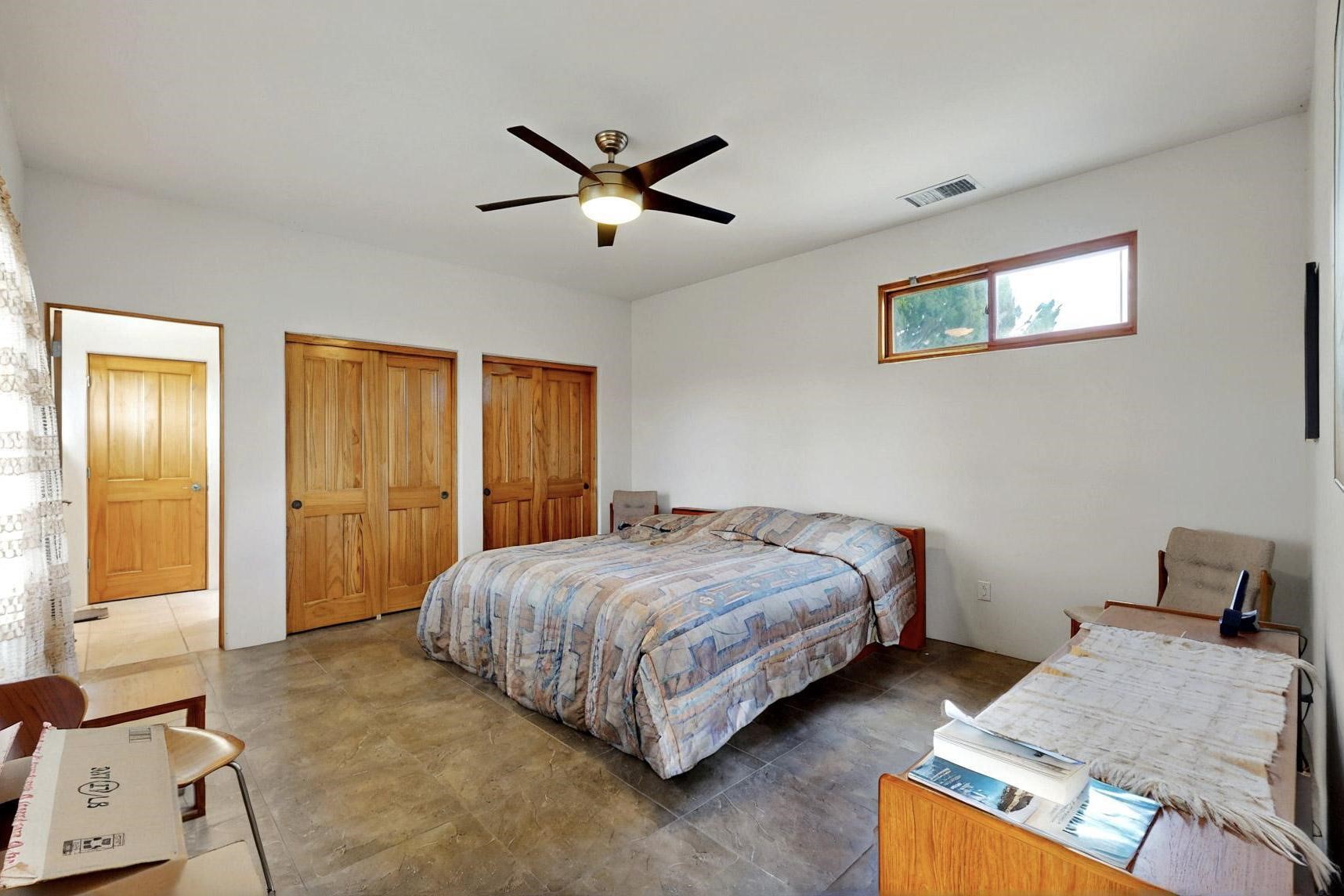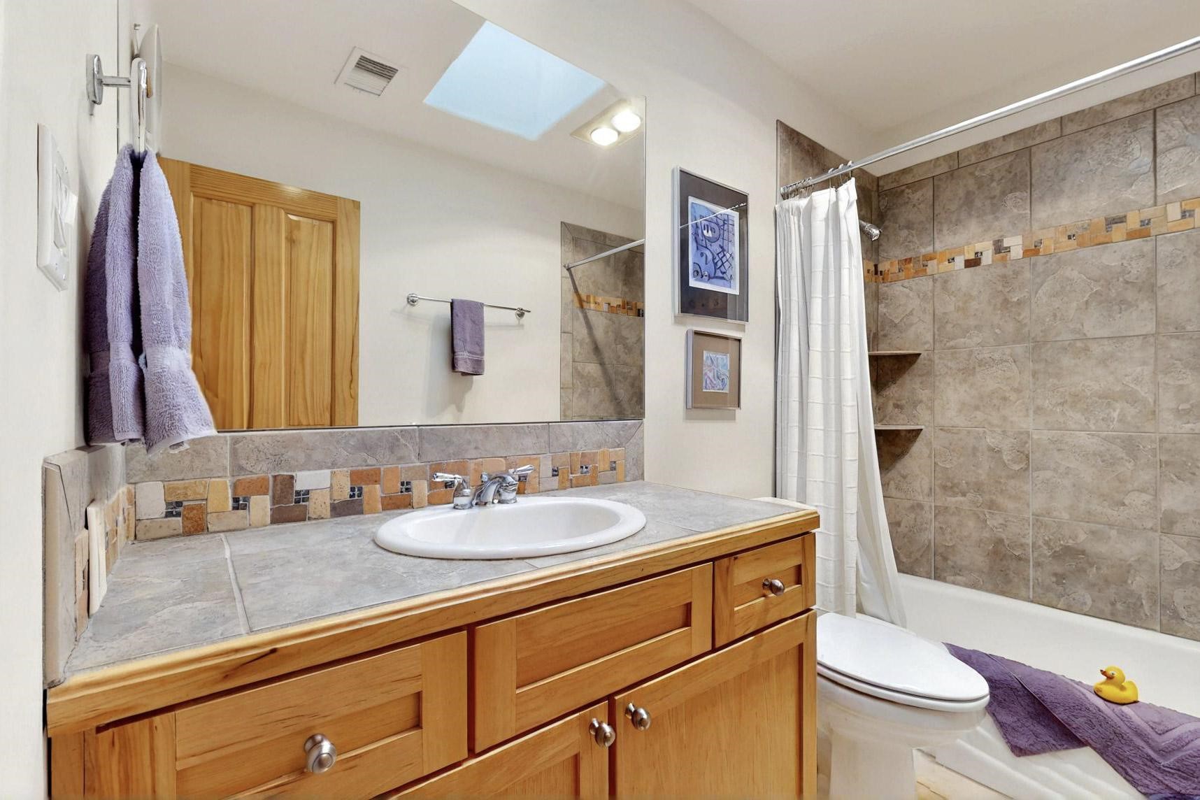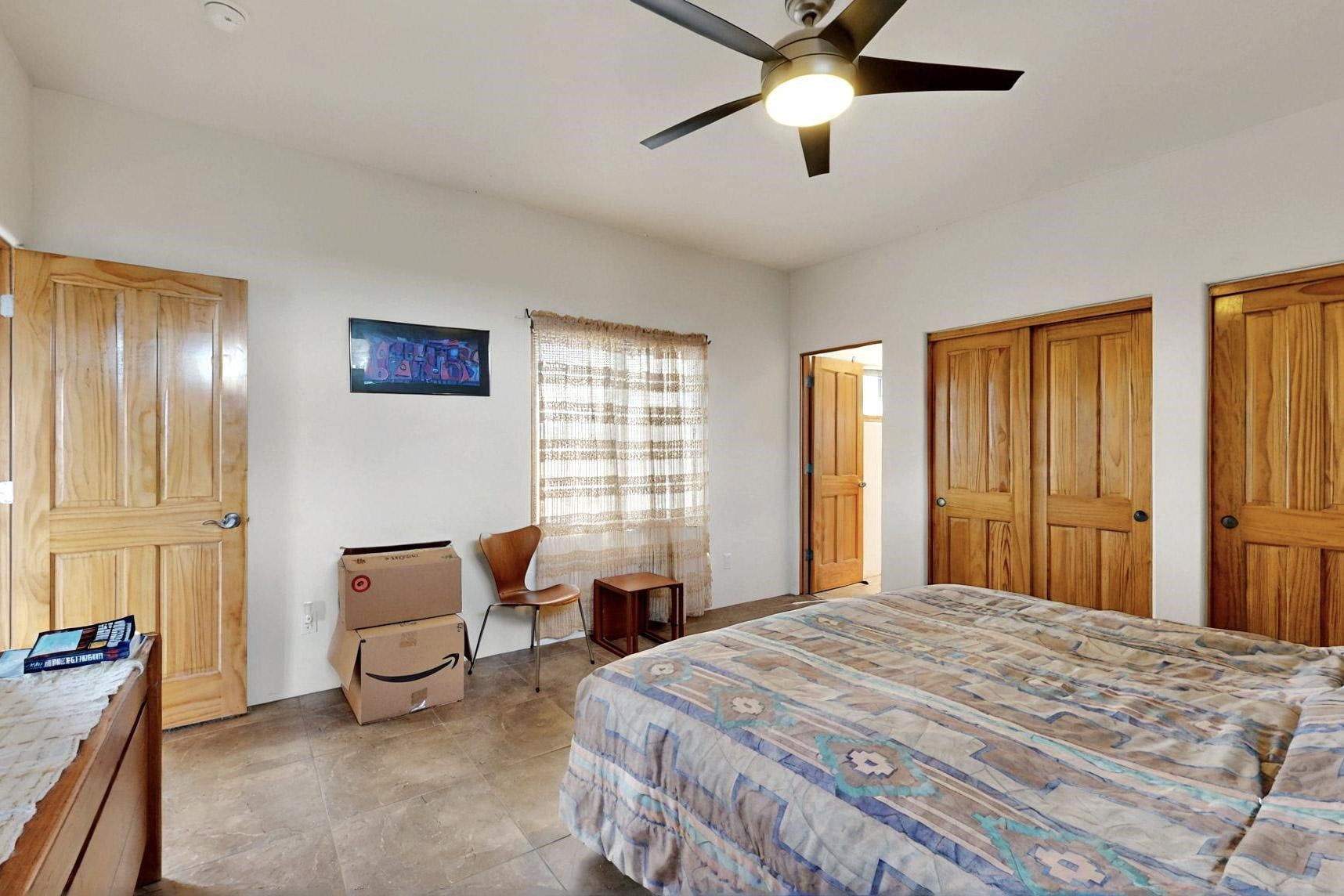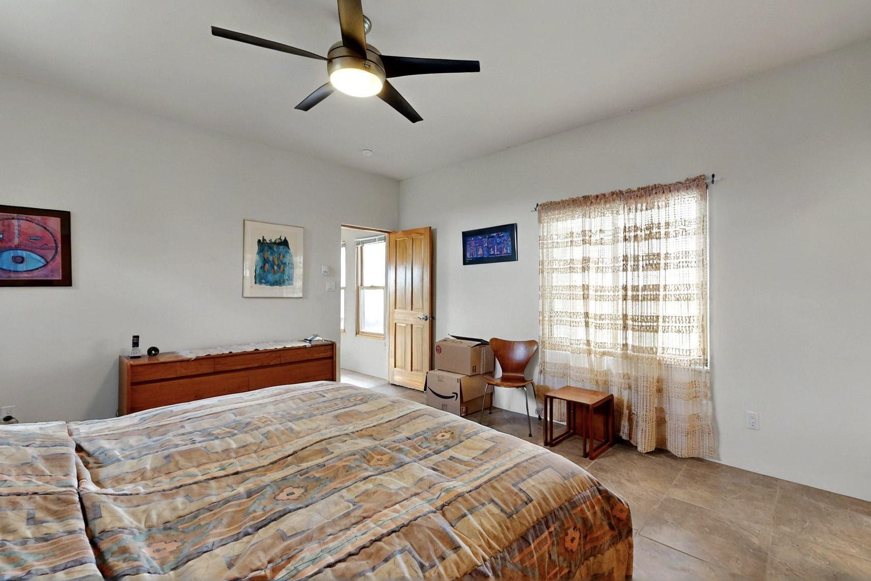 Charming custom designed and built home for the owner in 2004 by Casas de Suenos Construction on a premium lot in the Island at Eldorado. This 1510 sq ft is a split 3bedroom, 2 baths with a central open plan living concept ideal for family or guest separation. The kitchen is a good size with plenty of cabinetry and flows to the dining area and great room. A corner kiva fireplace and viga beams add that lovely Santa Fe touch. There is a 4 zone Radiant infloor heating system plus central air conditioning newly installed this year for all year round comfort. A new roof was installed also this year with a 10 year warranty. Colby double hung windows, operable skylights, annual maintenance on the natural gas boiler and hot water heater replaced in 2012. The garage is a full 2 car but has just one garage door opener installed currently. This home sits back privately from the road and enjoys south and west views from the back through the trees plus a wonderful vista of the north hills from the walled front garden. Within easy reach of Eldorado amenities, it is close to 2 local shopping centers, schools, library, senior center, playgrounds and trails, and only minutes into Santa Fe.