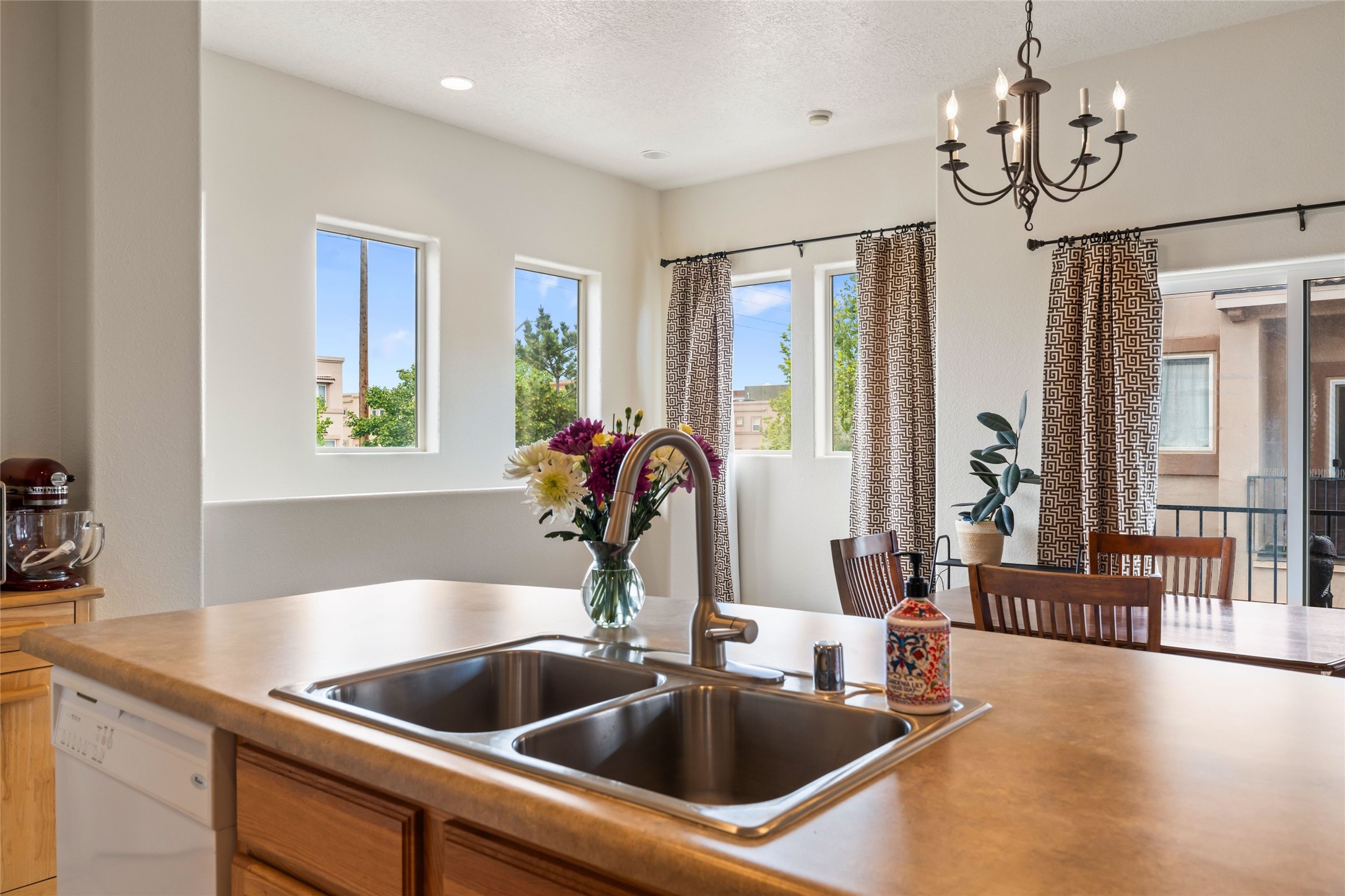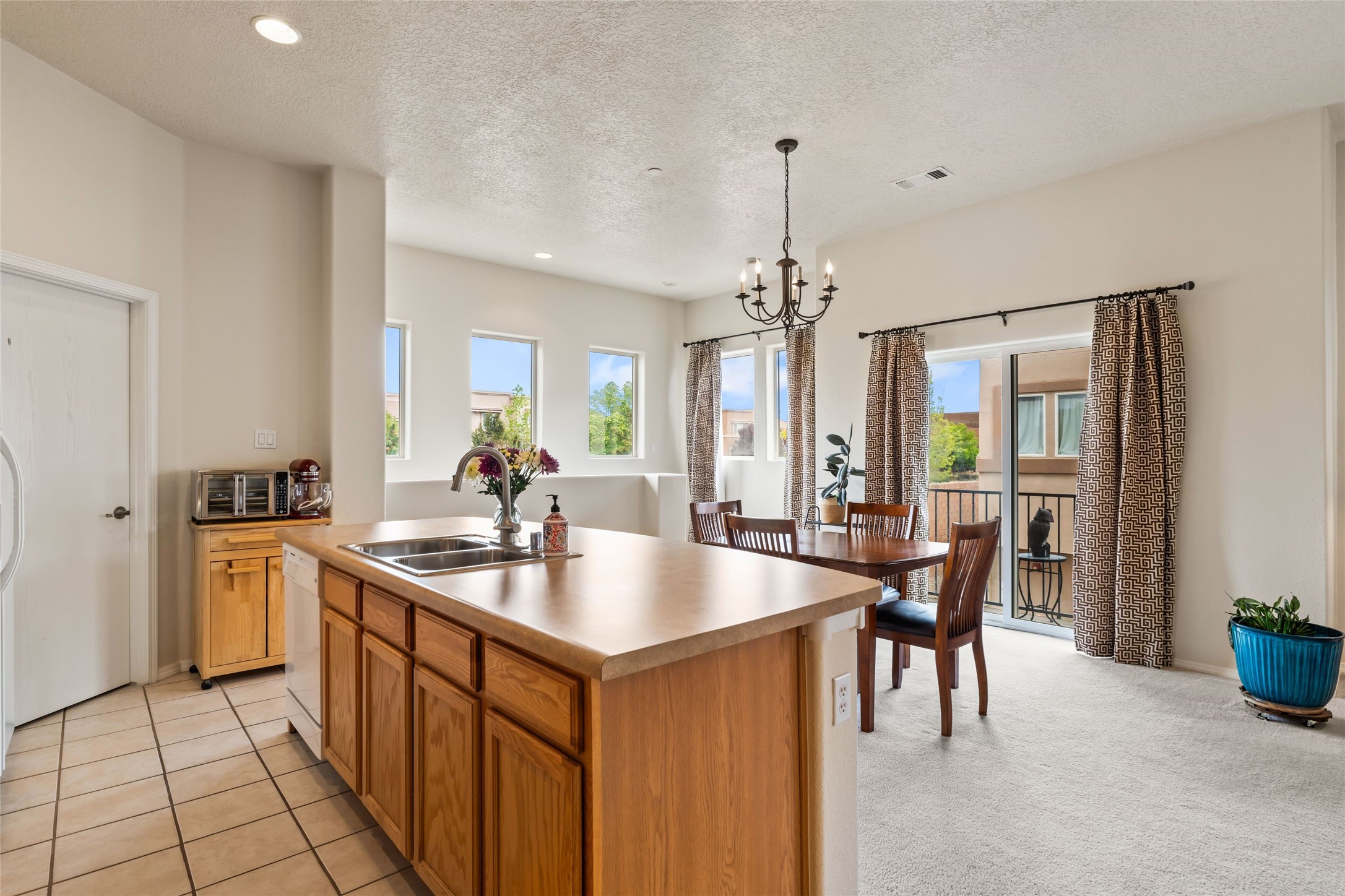 You are going to love this executive-style top-floor condo in Santa Fe's desirable Ranchos Santos community! Whether you're seeking the perfect starter home or a stylish lock-and-leave retreat, this home offers comfort, convenience, and modern flair. Built in 2008, this sun-drenched 2-bedroom, 2-bath sanctuary crowns the building with the premium advantages of top-floor living--soaring ceilings and abundant natural light flooding through well-placed windows.The thoughtfully designed open-concept living space flows seamlessly to a charming Juliet balcony, perfect for enjoying morning coffee in the abundant Santa Fe sunshine. The well-appointed kitchen features a spacious layout with a large pantry--ideal for any home chef. The generous primary suite pampers with spa-inspired amenities, including a full ensuite bath and walk-in closet.Additional highlights include carpet and tile flooring throughout, forced air heating with central refrigerated air, and the convenience of a finished one-car garage with interior stair access. All appliances convey, including dishwasher, range/oven, refrigerator, washer and dryer, making this a truly turnkey retreat.Tucked away on a quiet cul-de-sac yet conveniently positioned, this home offers a serene retreat while remaining ideally located for modern living. Easy access to Highway 599 makes commuting effortless, while nearby San Isidro Village Park provides the perfect spot for children and pets with its playground and open grass areas. You're also close to great Southside shopping.