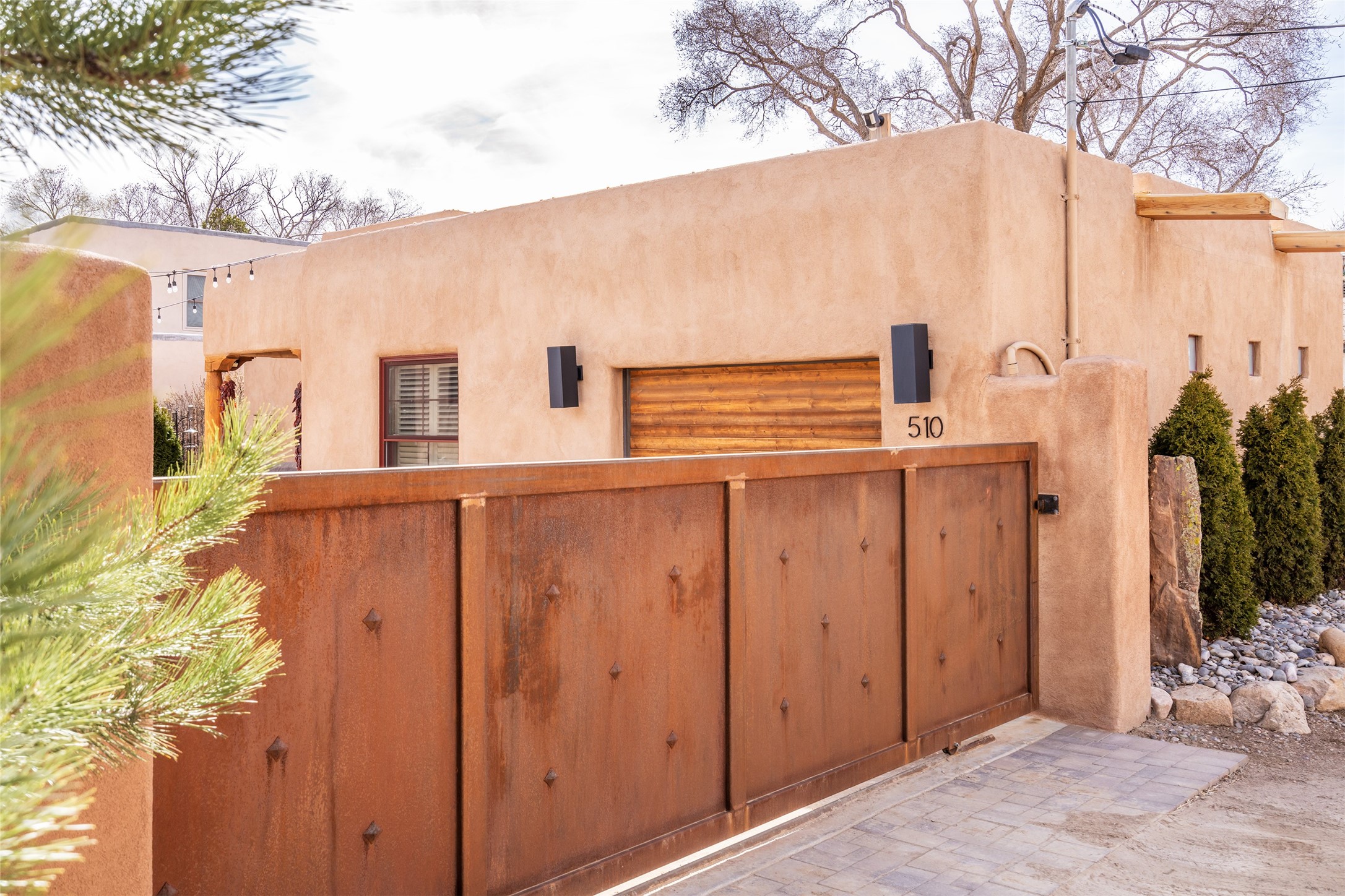 Welcome to your oasis in the heart of SantaFe. Convenient downtown location that is steps from Canyon Road and Plaza. Gated compound with main house and casita, beautifully designed landscaping and grounds. Diamond plaster walls, high ceiling and skylights help to fill the home with bright lofty light. Custom windows and door shutters throughout both homes, radiant in floor heating, mini splits for AC, and a 1 car garage. Grand entertaining courtyard and portals for enjoying the beautiful Santa Fe weather. Both units currently are permitted as short term rentals with long term proven rental income. Plenty of off street parking and the city has also designated 2 additional spaces for this property. Raised garden bed and multiple lock off gates for dogs runs and privacy! Owners have meticulously maintained the space with a team of housekeepers and gardeners for year round maintenance. Proven rental income with 5 star reviews. Extensive landscaping and upgrades over the years. Sold fully furnished (exception of some art and select decor). TURN KEY INVESTMENT OPPORTUNITY!