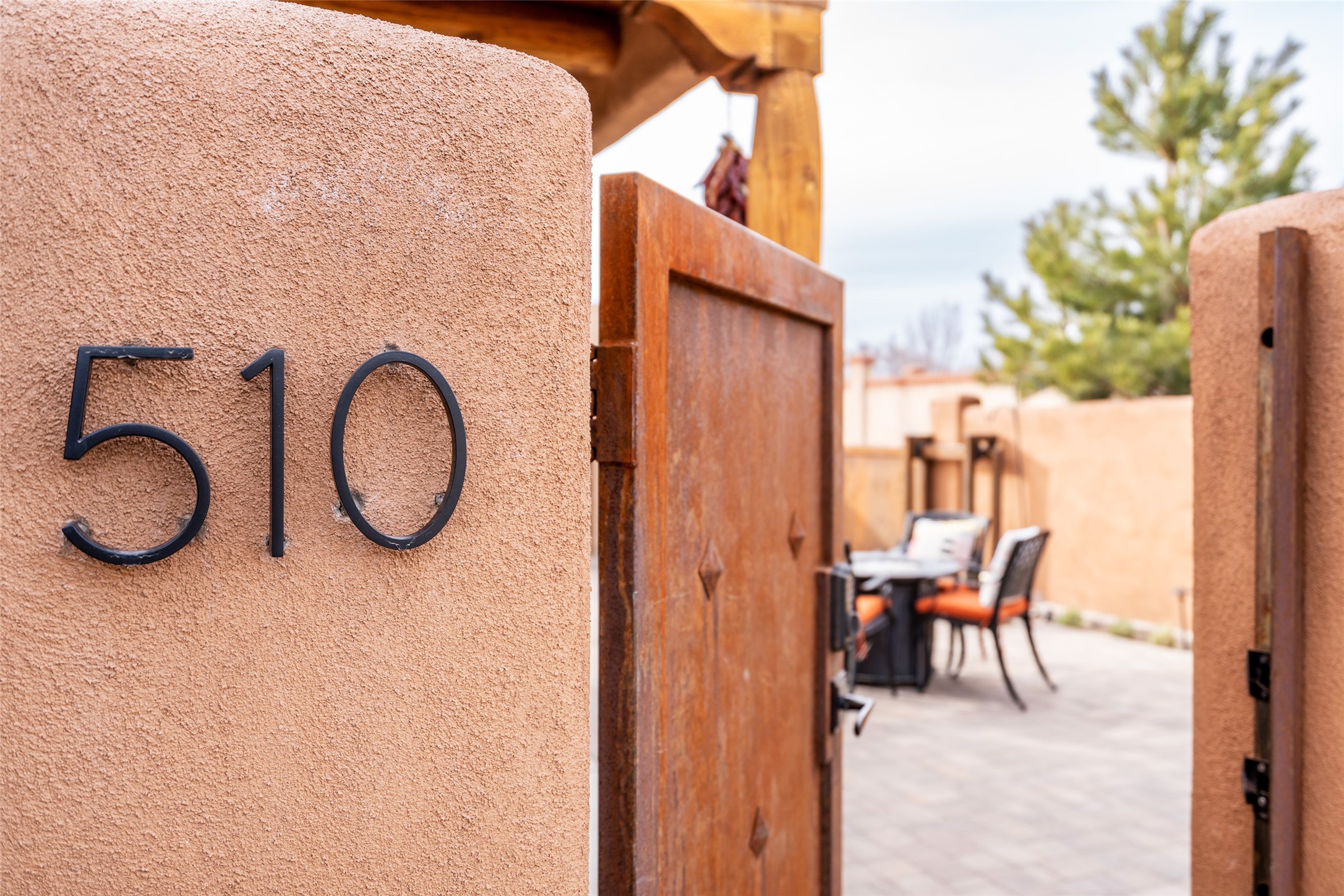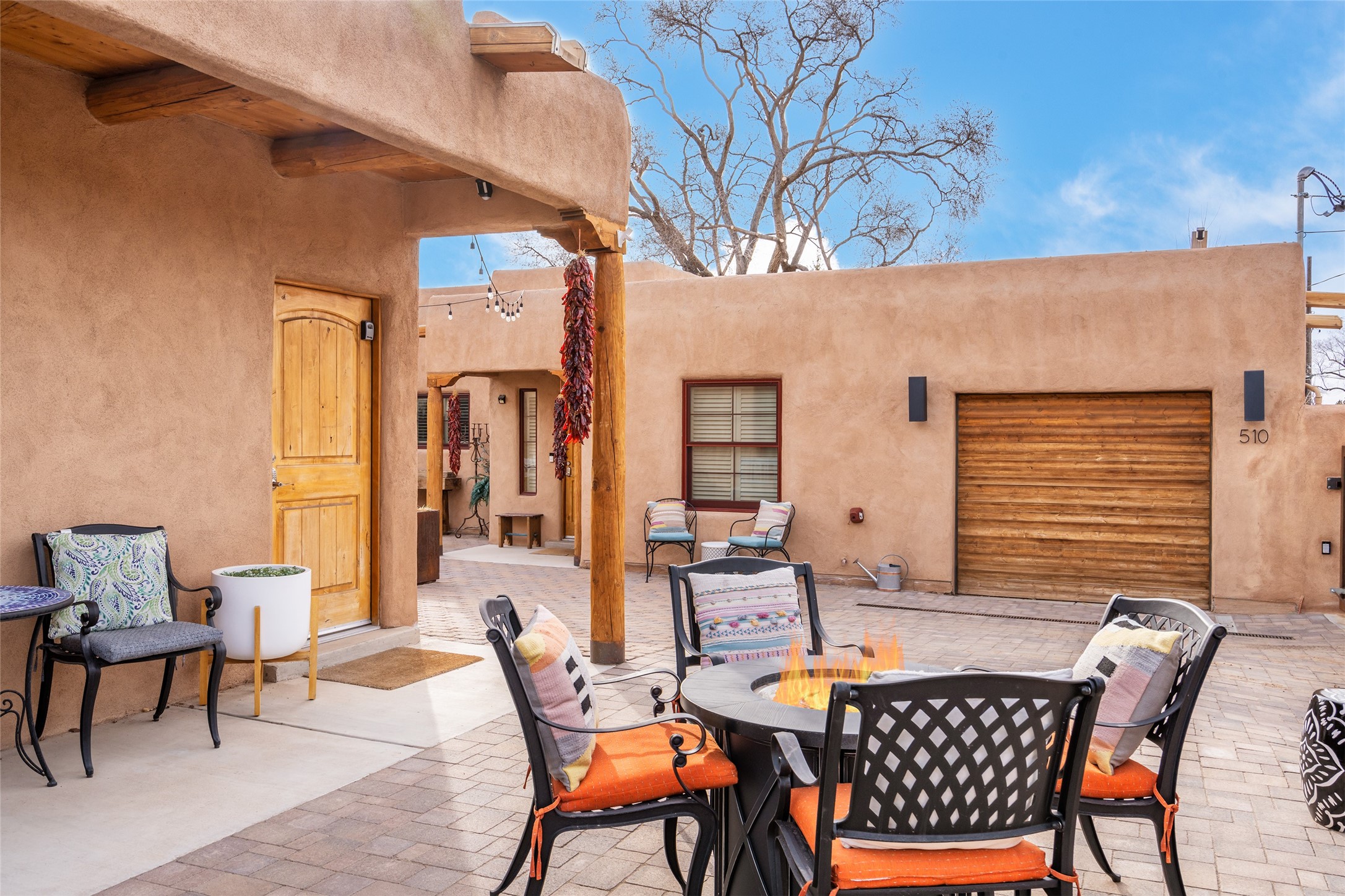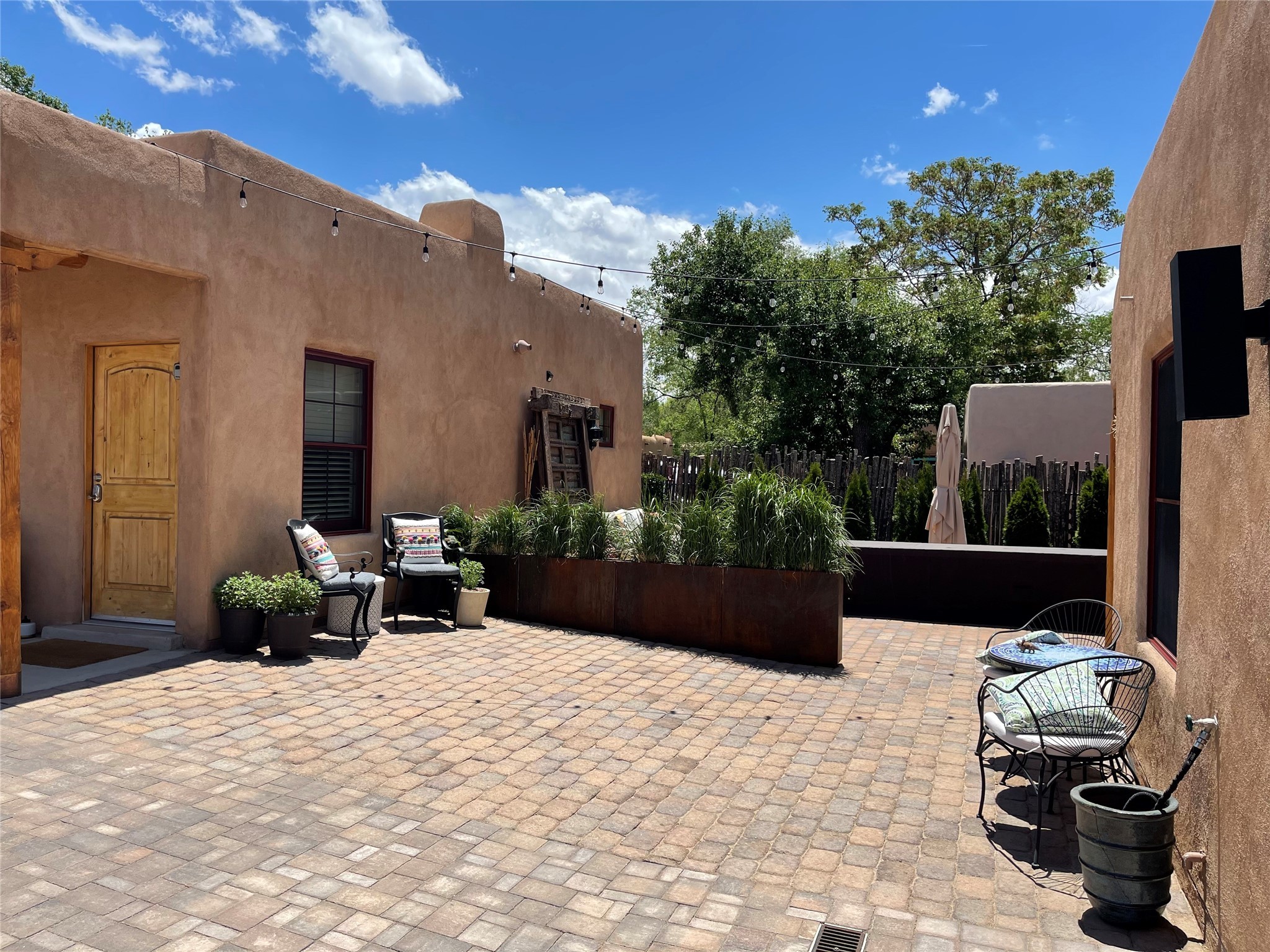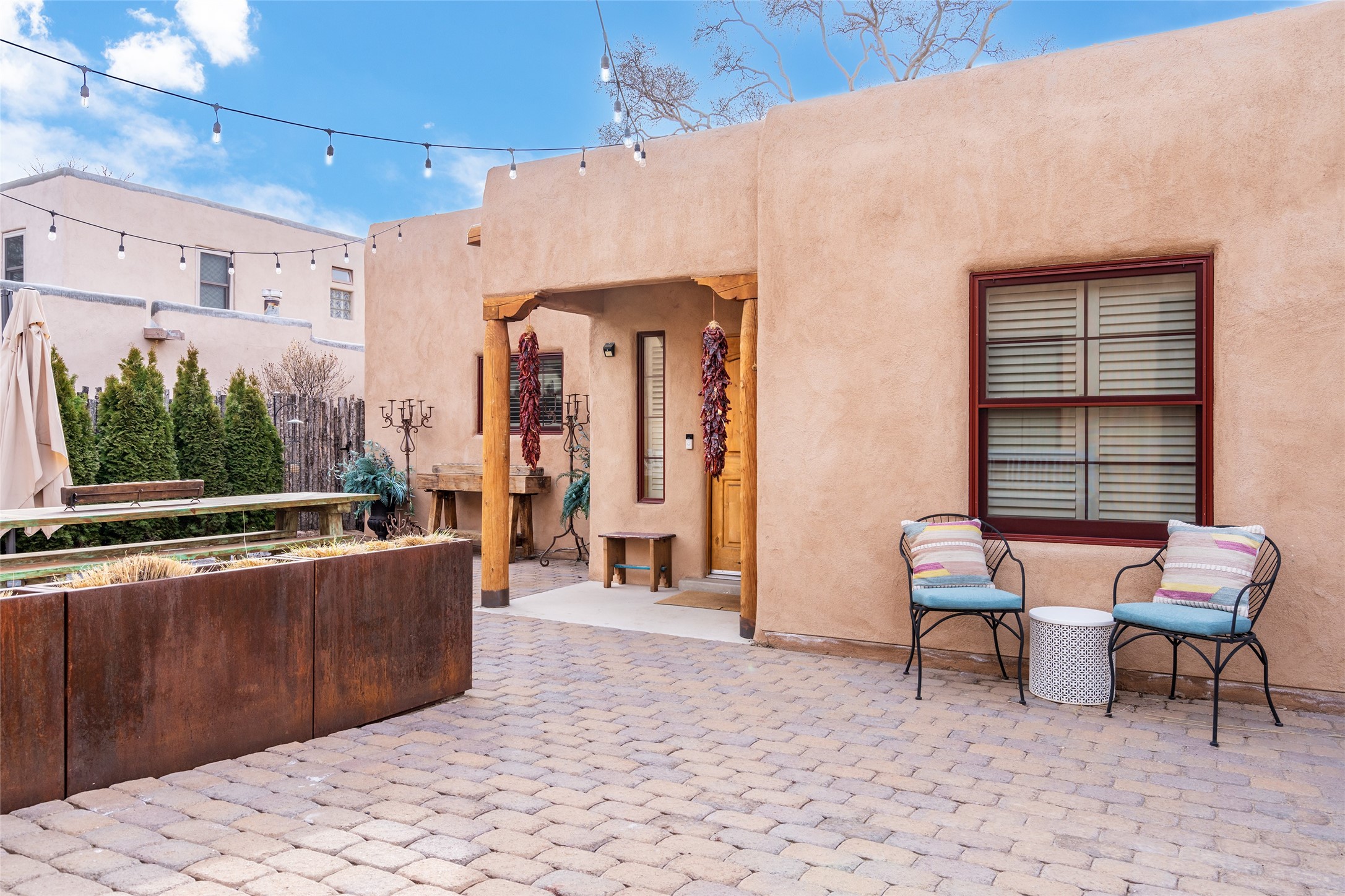 Welcome to your oasis in the heart of SantaFe. Convenient downtown location that is steps from Canyon Road and Plaza. Gated compound with main house and casita, beautifully designed landscaping and grounds. Diamond plaster walls, high ceiling and skylights help to fill the home with bright lofty light. Custom windows and door shutters throughout both homes, radiant in floor heating, mini splits for AC, and a 1 car garage. Grand entertaining courtyard and portals for enjoying the beautiful Santa Fe weather. Both units currently are permitted as short term rentals with long term proven rental income. Plenty of off street parking and the city has also designated 2 additional spaces for this property. Raised garden bed and multiple lock off gates for dogs runs and privacy! Owners have meticulously maintained the space with a team of housekeepers and gardeners for year round maintenance. Proven rental income with 5 star reviews. Extensive landscaping and upgrades over the years. Sold fully furnished (exception of some art and select decor). TURN KEY INVESTMENT OPPORTUNITY!
