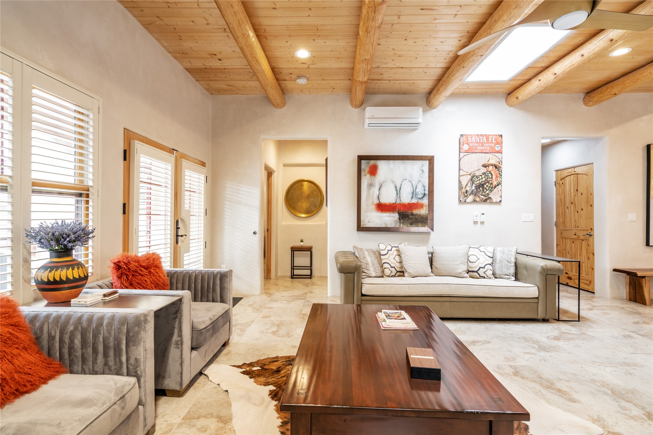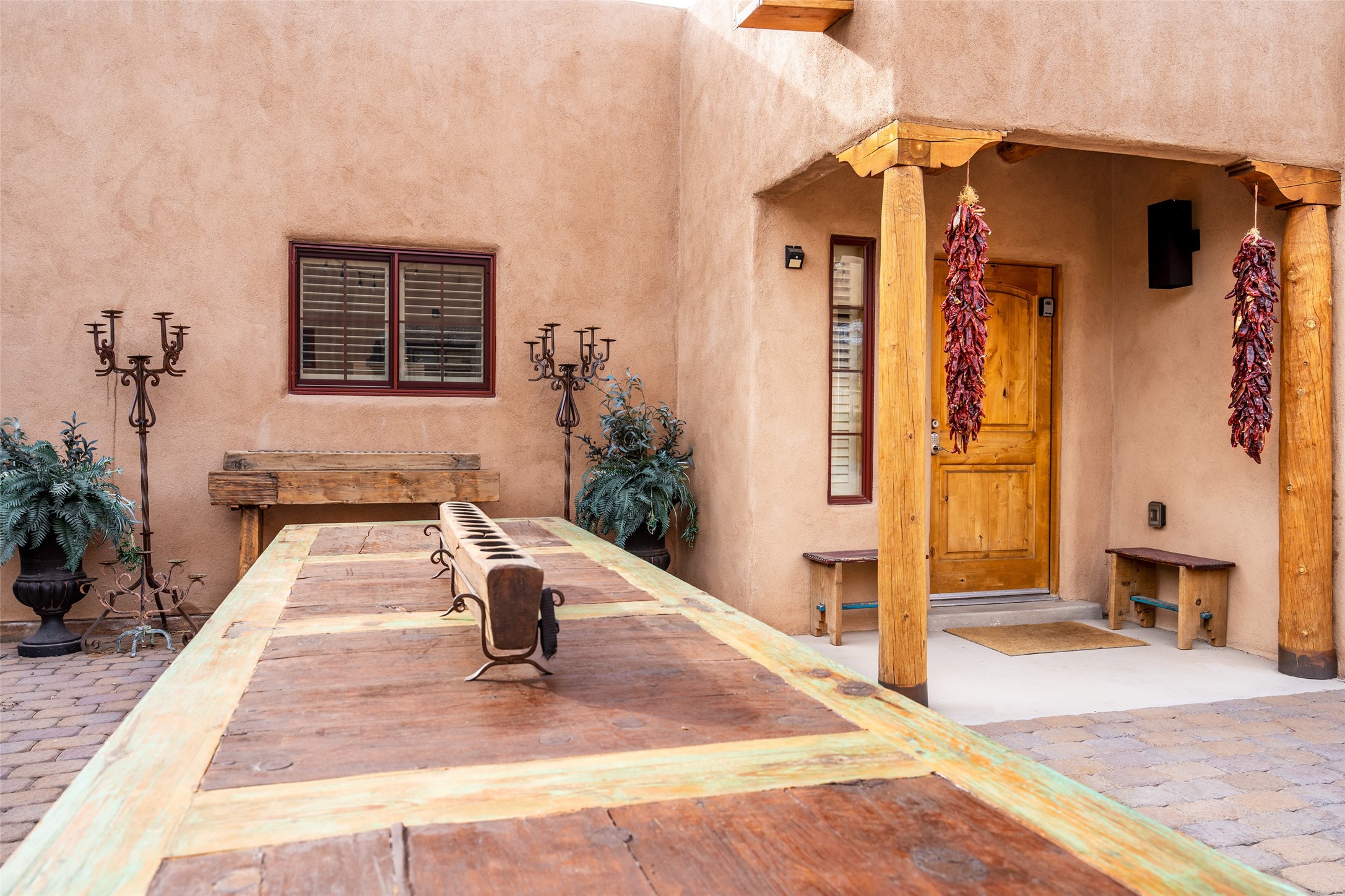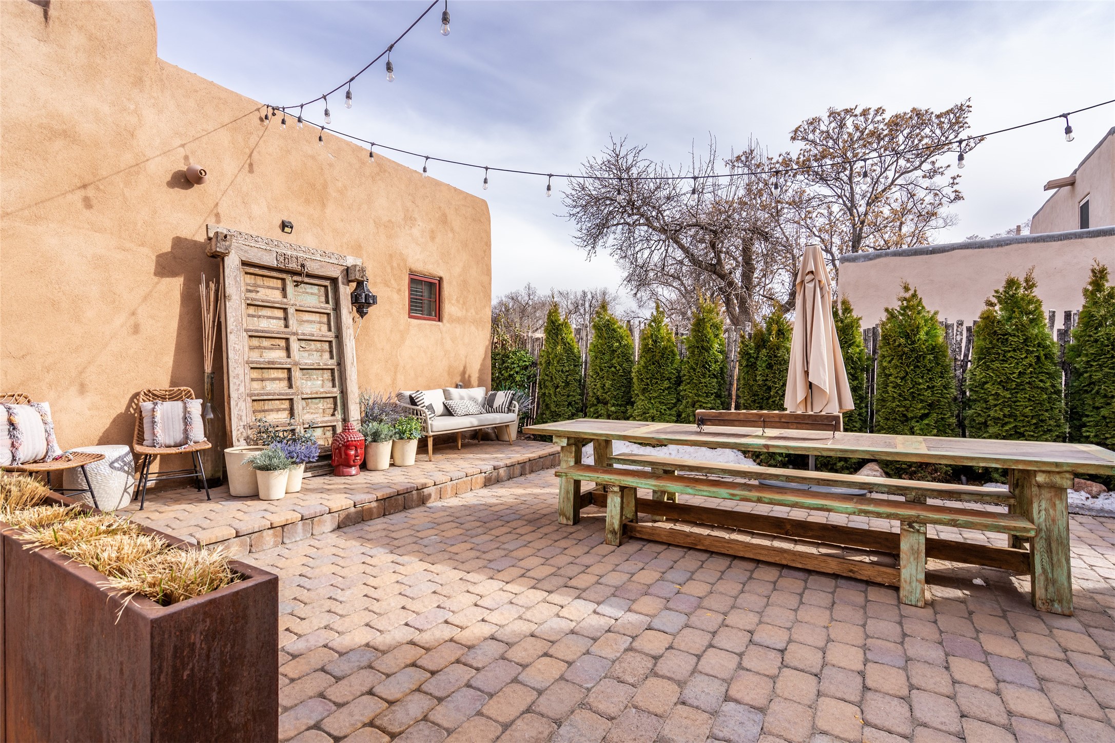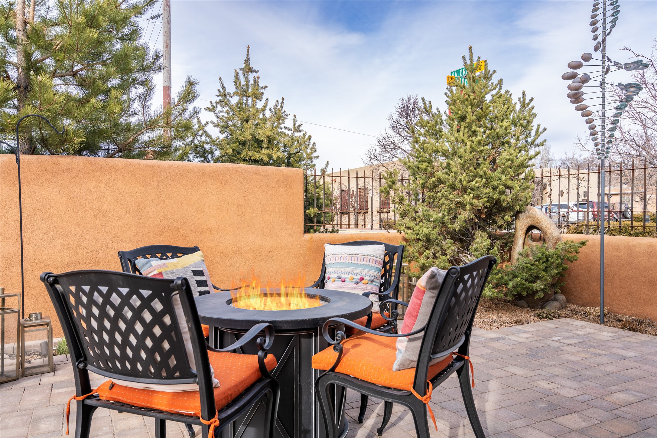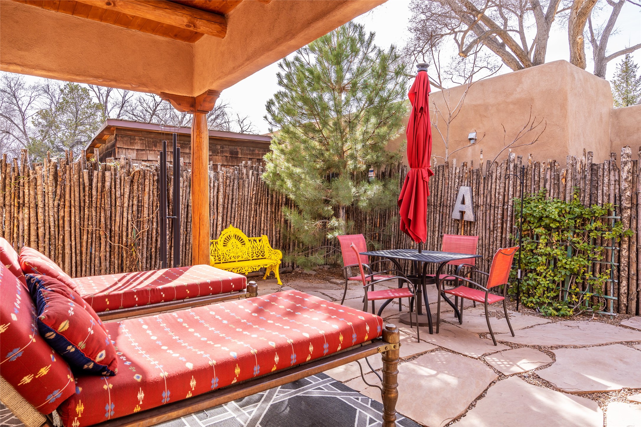 Welcome to your oasis in the heart of SantaFe. Convenient downtown location that is steps from Canyon Road and Plaza. Gated compound with main house and casita, beautifully designed landscaping and grounds. Diamond plaster walls, high ceiling and skylights help to fill the home with bright lofty light. Custom windows and door shutters throughout both homes, radiant in floor heating, mini splits for AC, and a 1 car garage. Grand entertaining courtyard and portals for enjoying the beautiful Santa Fe weather. Both units currently are permitted as short term rentals with long term proven rental income. Plenty of off street parking and the city has also designated 2 additional spaces for this property. Raised garden bed and multiple lock off gates for dogs runs and privacy! Owners have meticulously maintained the space with a team of housekeepers and gardeners for year round maintenance. Proven rental income with 5 star reviews. Extensive landscaping and upgrades over the years. Sold fully furnished (exception of some art and select decor). TURN KEY INVESTMENT OPPORTUNITY!