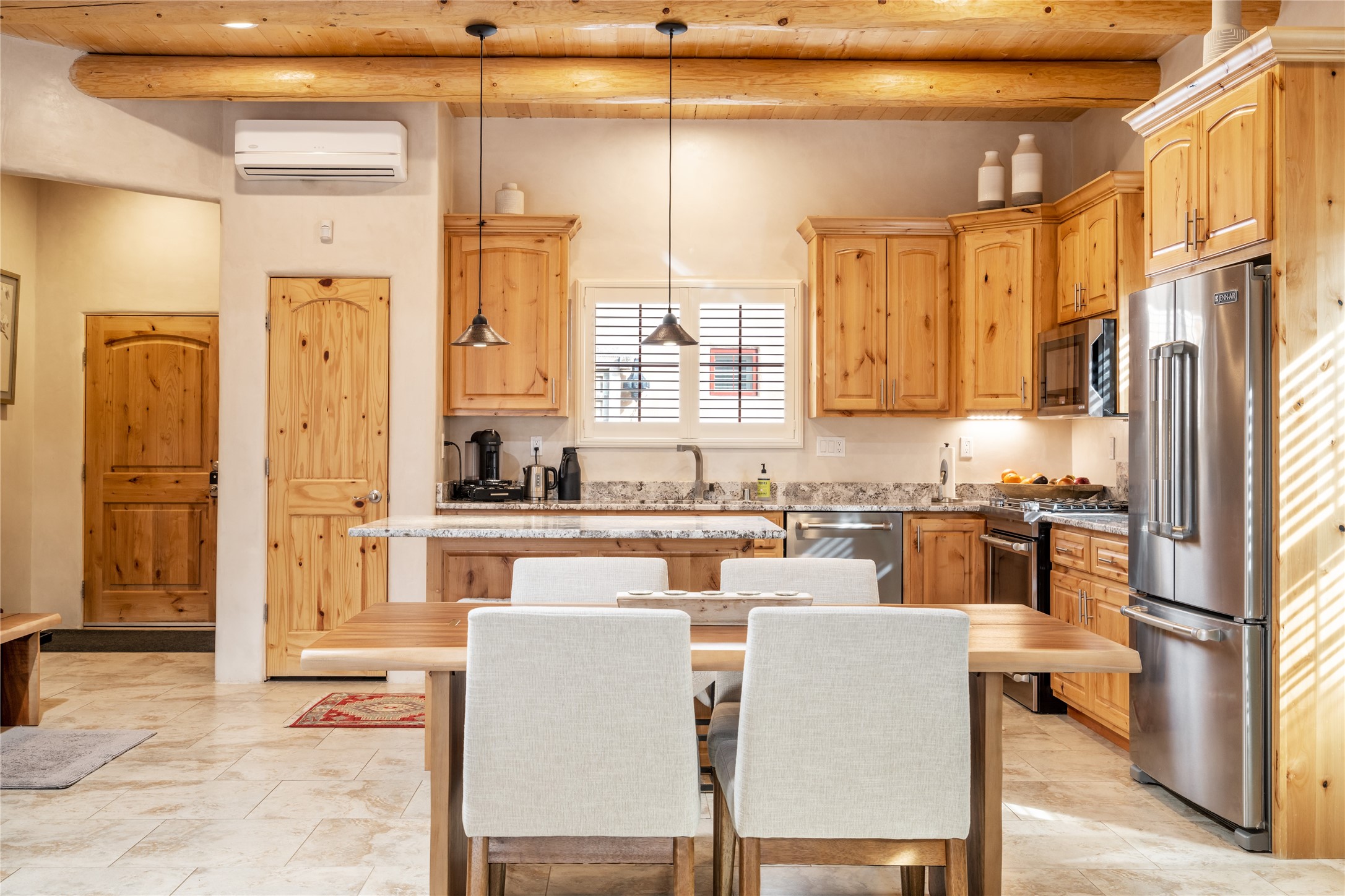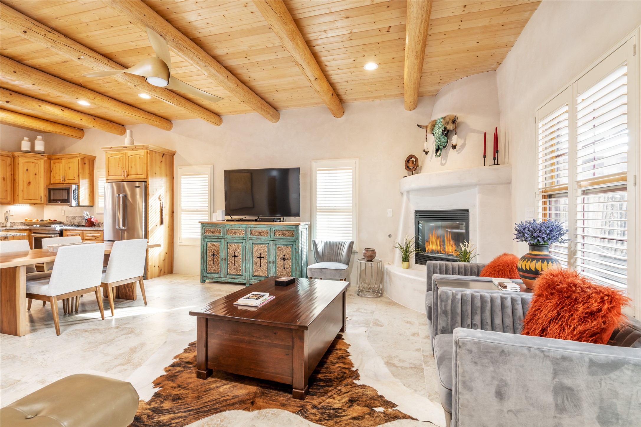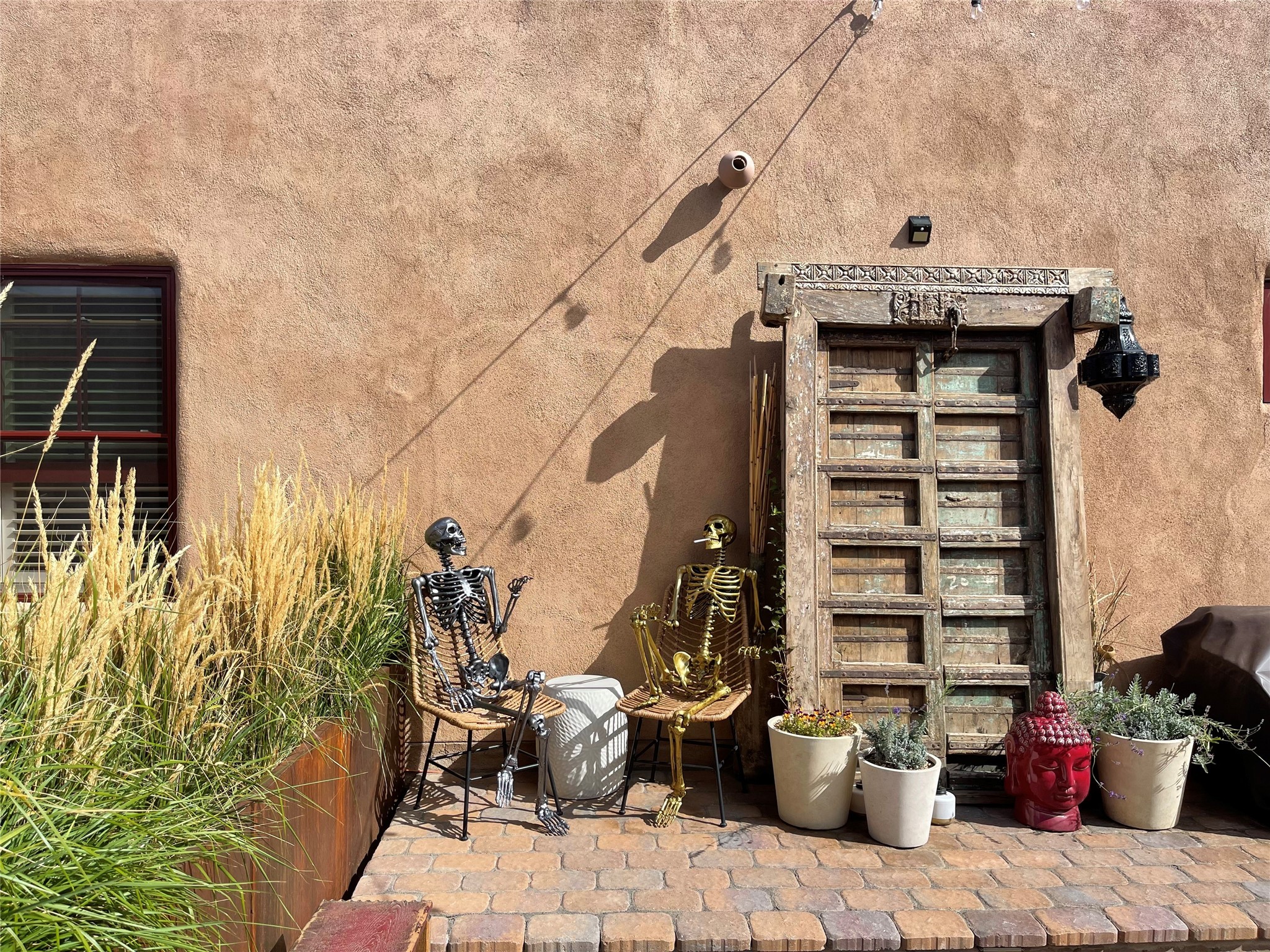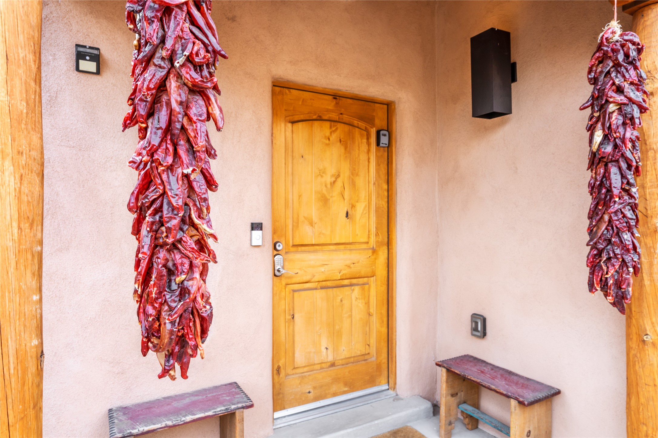 Welcome to your oasis in the heart of SantaFe. Convenient downtown location that is steps from Canyon Road and Plaza. Gated compound with main house and casita, beautifully designed landscaping and grounds. Diamond plaster walls, high ceiling and skylights help to fill the home with bright lofty light. Custom windows and door shutters throughout both homes, radiant in floor heating, mini splits for AC, and a 1 car garage. Grand entertaining courtyard and portals for enjoying the beautiful Santa Fe weather. Both units currently are permitted as short term rentals with long term proven rental income. Plenty of off street parking and the city has also designated 2 additional spaces for this property. Raised garden bed and multiple lock off gates for dogs runs and privacy! Owners have meticulously maintained the space with a team of housekeepers and gardeners for year round maintenance. Proven rental income with 5 star reviews. Extensive landscaping and upgrades over the years. Sold fully furnished (exception of some art and select decor). TURN KEY INVESTMENT OPPORTUNITY!
