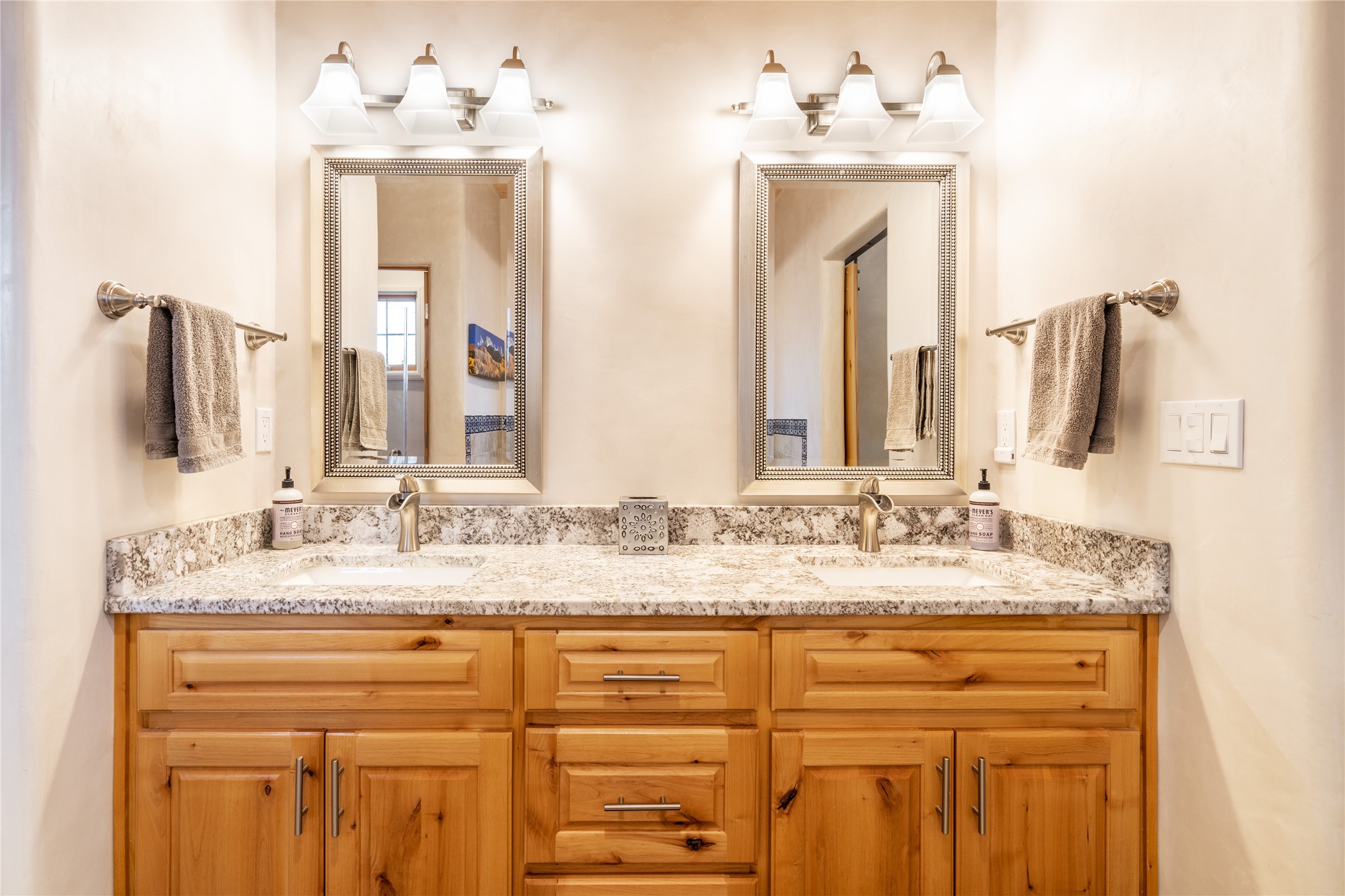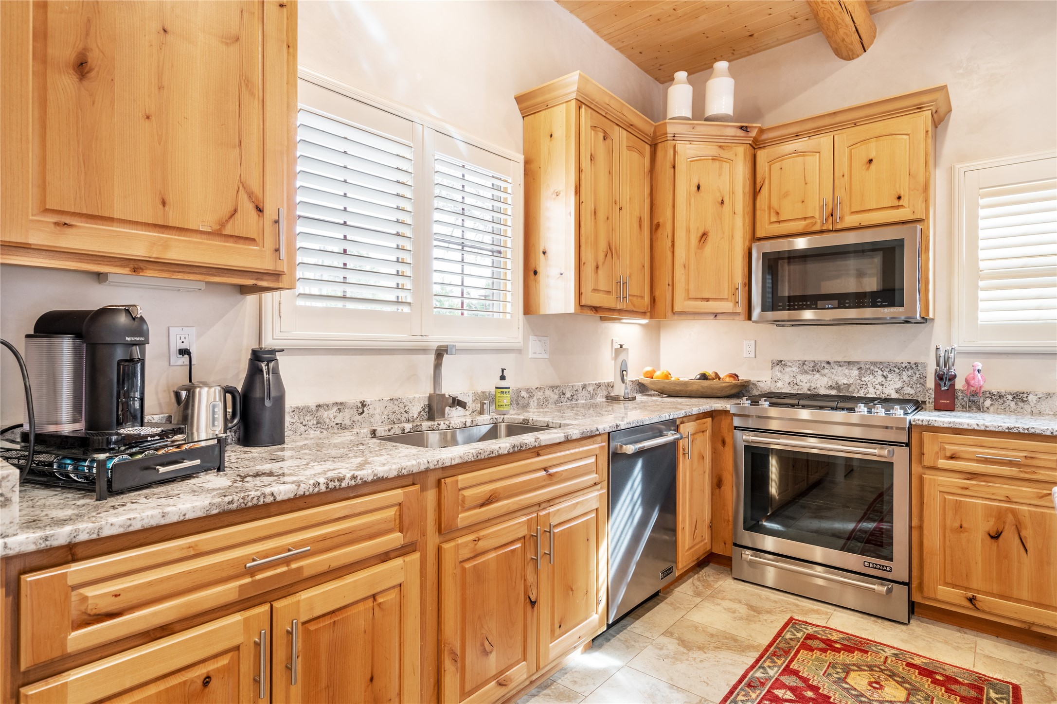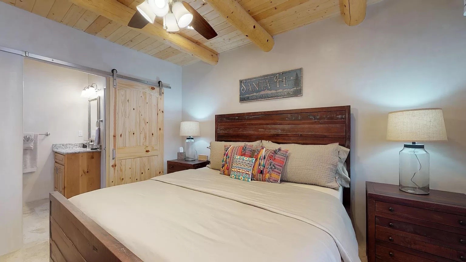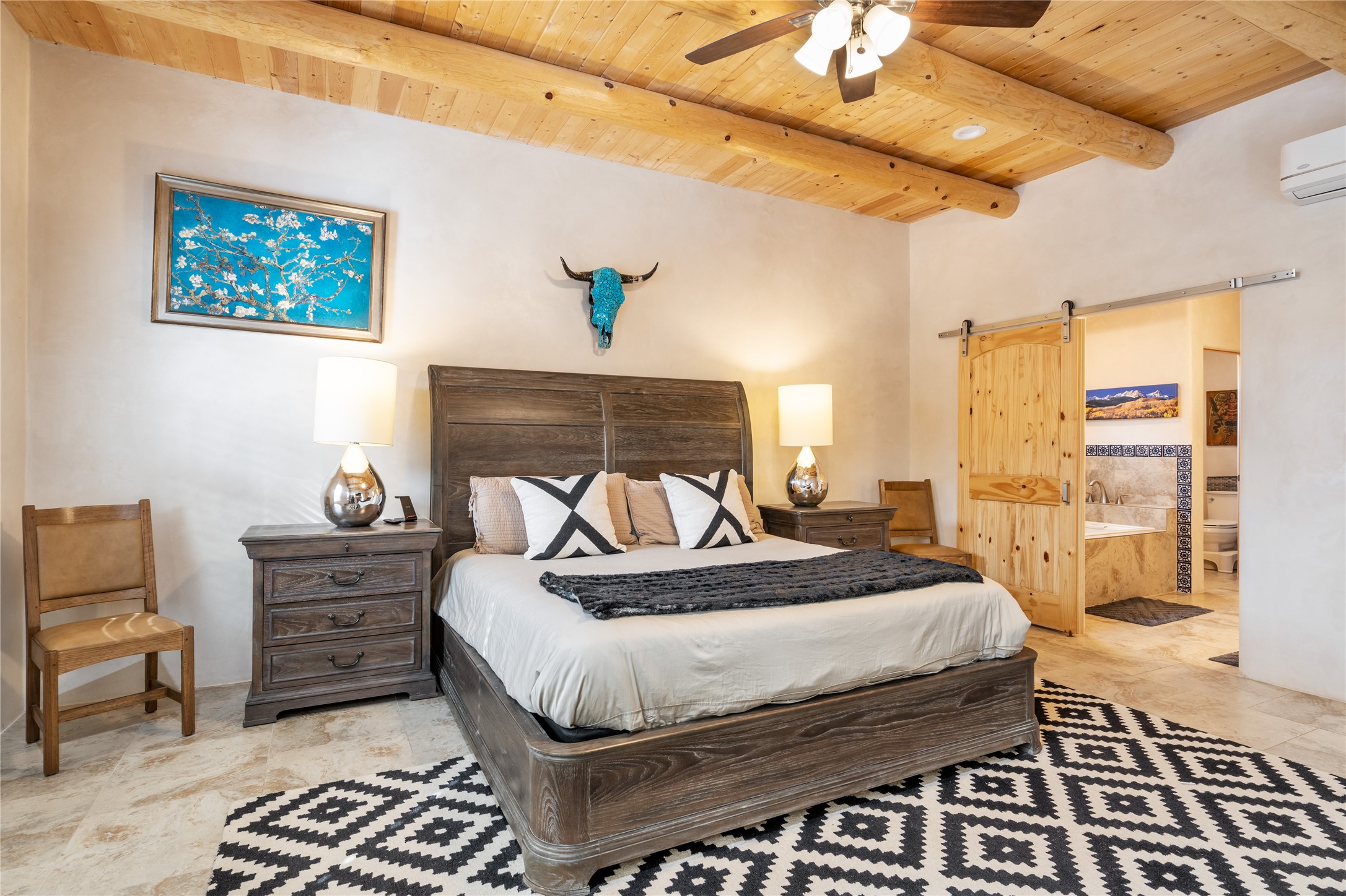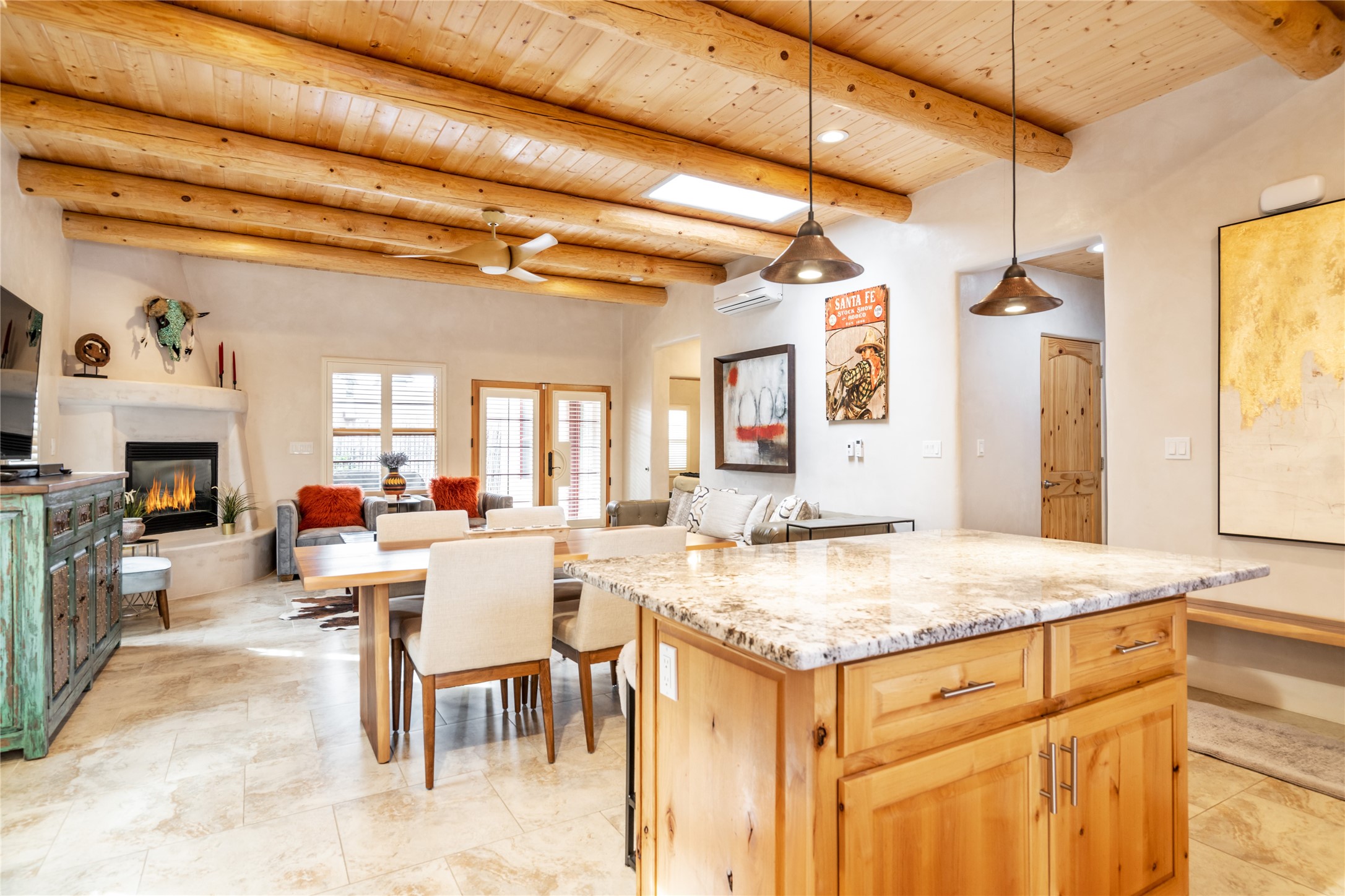 Welcome to your oasis in the heart of SantaFe. Convenient downtown location that is steps from Canyon Road and Plaza. Gated compound with main house and casita, beautifully designed landscaping and grounds. Diamond plaster walls, high ceiling and skylights help to fill the home with bright lofty light. Custom windows and door shutters throughout both homes, radiant in floor heating, mini splits for AC, and a 1 car garage. Grand entertaining courtyard and portals for enjoying the beautiful Santa Fe weather. Both units currently are permitted as short term rentals with long term proven rental income. Plenty of off street parking and the city has also designated 2 additional spaces for this property. Raised garden bed and multiple lock off gates for dogs runs and privacy! Owners have meticulously maintained the space with a team of housekeepers and gardeners for year round maintenance. Proven rental income with 5 star reviews. Extensive landscaping and upgrades over the years. Sold fully furnished (exception of some art and select decor). TURN KEY INVESTMENT OPPORTUNITY!