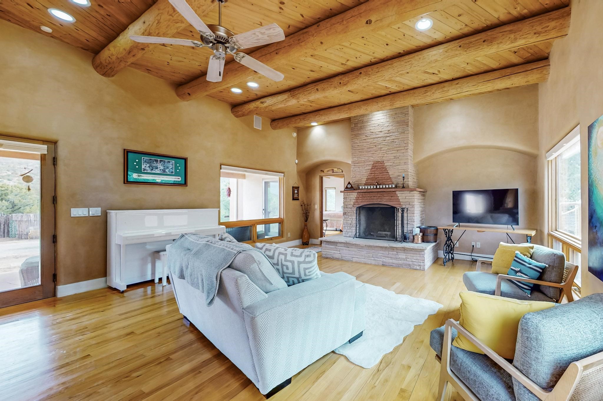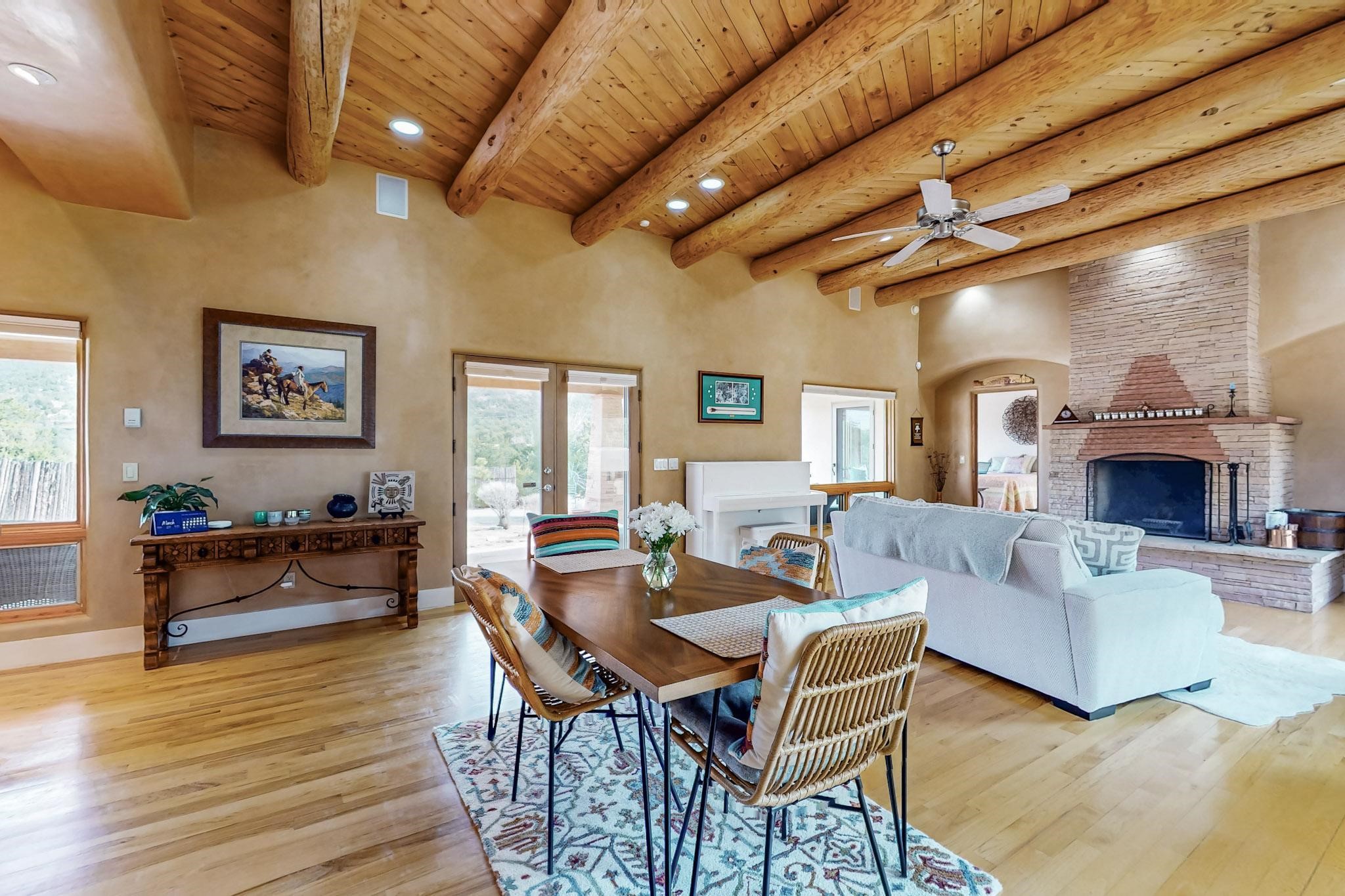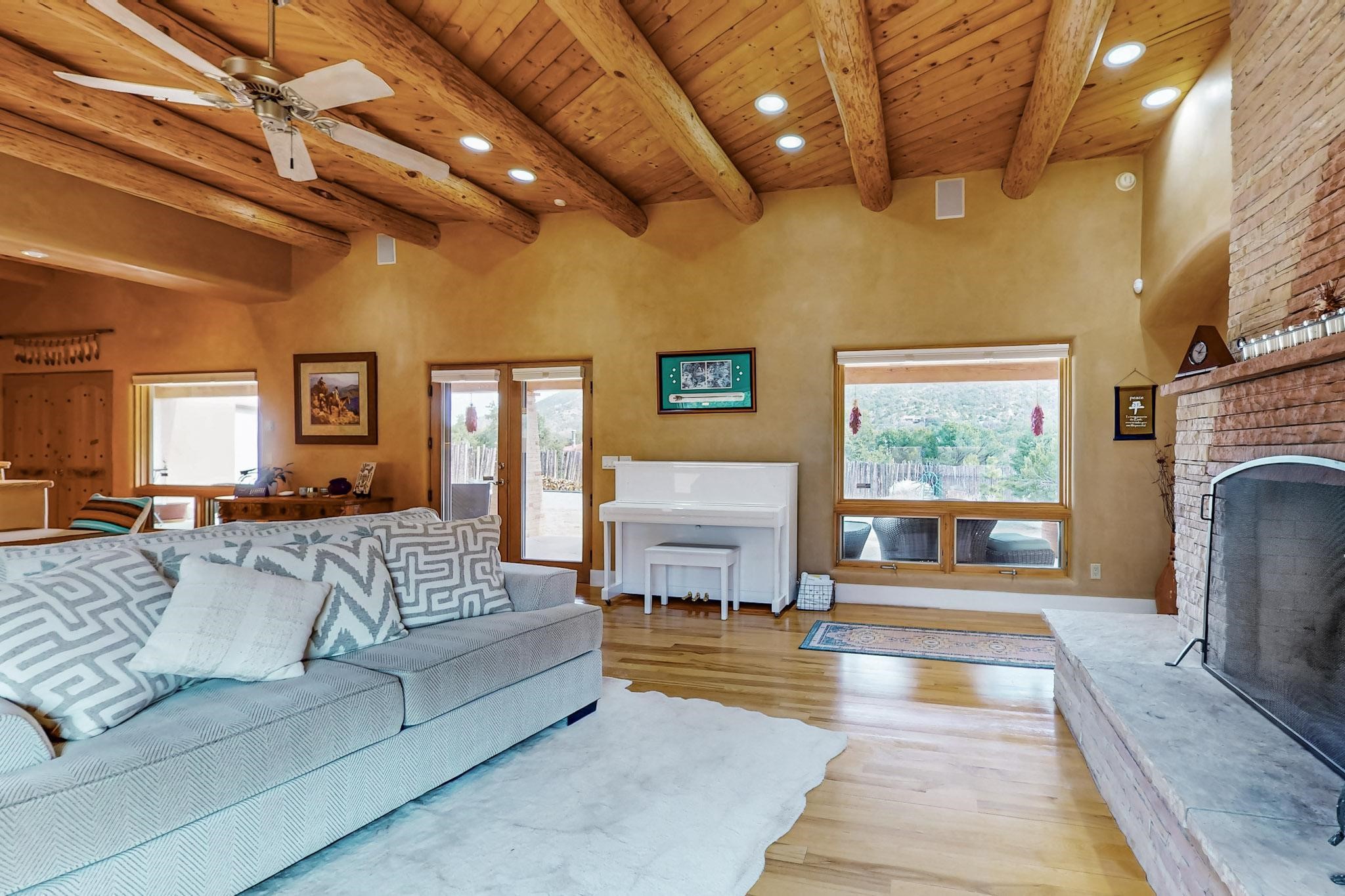 HUGE PRICE IMPROVEMENT! Welcome to 25 Old Santa Fe Way! This immaculately maintained home is nestled in the foothills of the Sangre de Cristo mountains but is less than 20 minutes away from the Santa Fe Plaza. This beautiful 3 bed, 3 bath home is found in the most serene setting. The spacious and cozy open concept living area is filled with light due to the generous windows! Prepare to be absolutely stunned by the view of the foothills from both inside and outside the home, and at nighttime, you will be delighted as the mountains are nothing short of magical! This lovely home has had many updates, such as NEW garage doors (2025), NEW stucco (2024), NEW roof (2024), NEW blinds (2024), and the primary bath was completely remodeled (2024). This home is move in ready and waiting for it's next family to call it home!