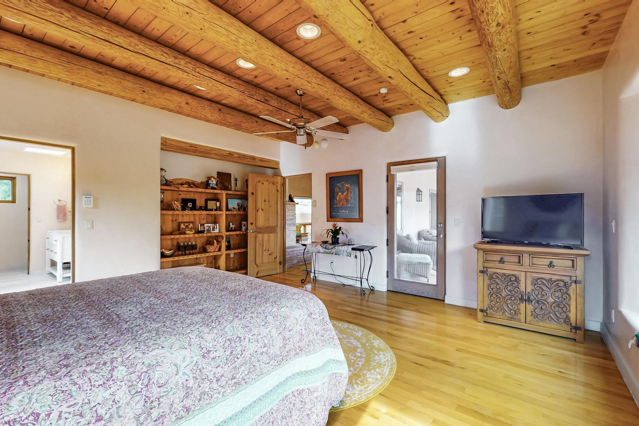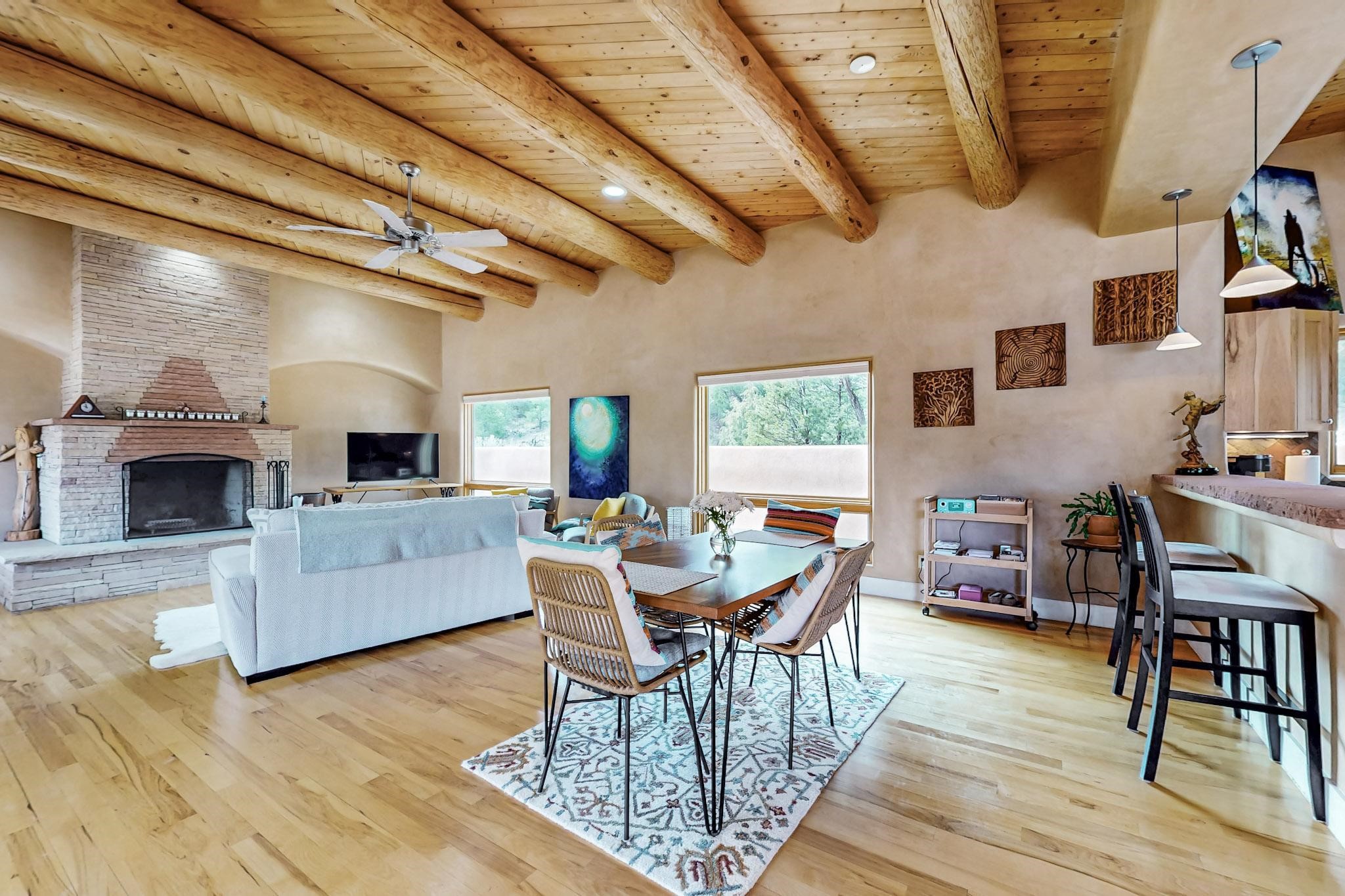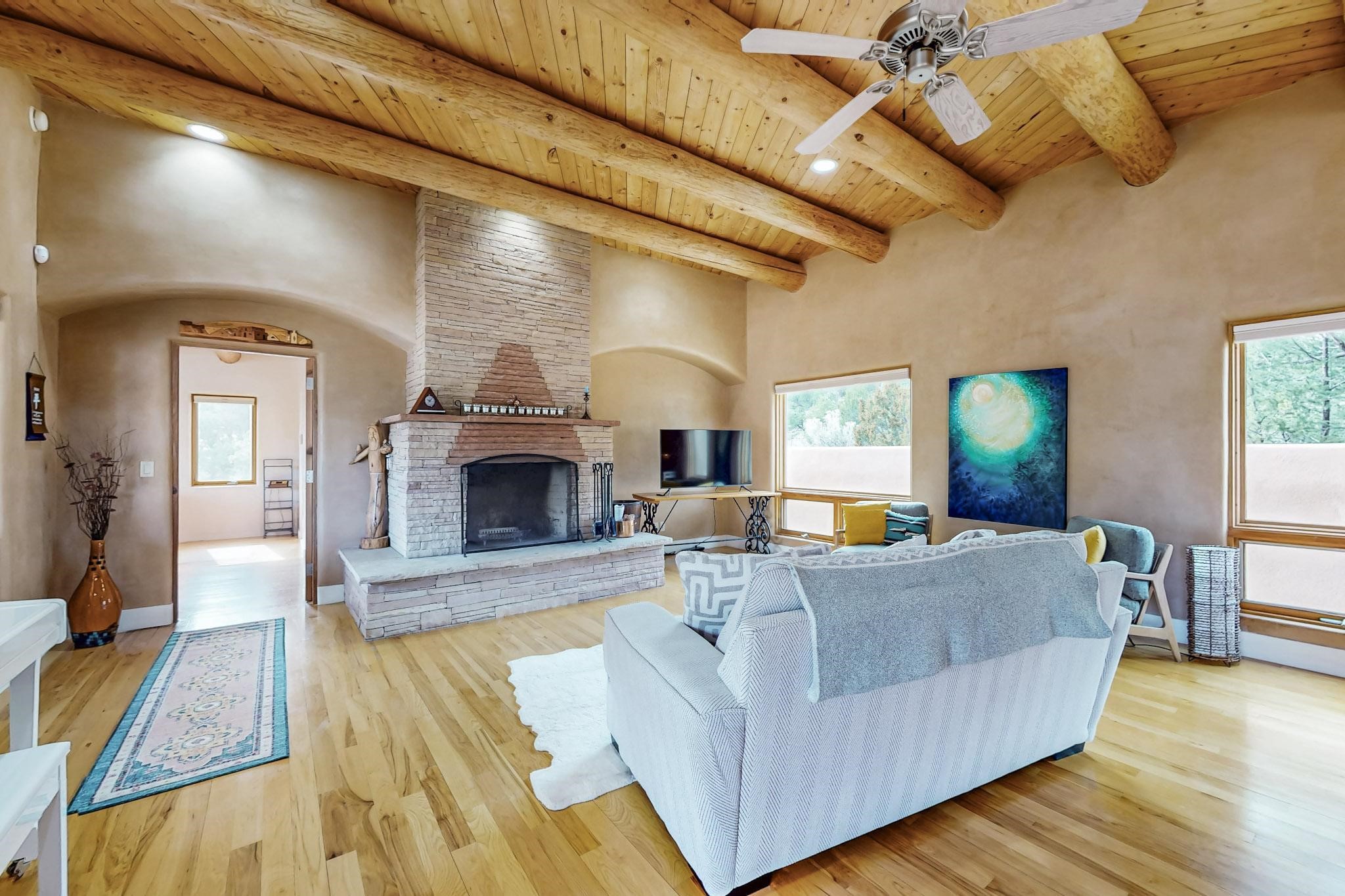 HUGE PRICE IMPROVEMENT! Welcome to 25 Old Santa Fe Way! This immaculately maintained home is nestled in the foothills of the Sangre de Cristo mountains but is less than 20 minutes away from the Santa Fe Plaza. This beautiful 3 bed, 3 bath home is found in the most serene setting. The spacious and cozy open concept living area is filled with light due to the generous windows! Prepare to be absolutely stunned by the view of the foothills from both inside and outside the home, and at nighttime, you will be delighted as the mountains are nothing short of magical! This lovely home has had many updates, such as NEW garage doors (2025), NEW stucco (2024), NEW roof (2024), NEW blinds (2024), and the primary bath was completely remodeled (2024). This home is move in ready and waiting for it's next family to call it home!