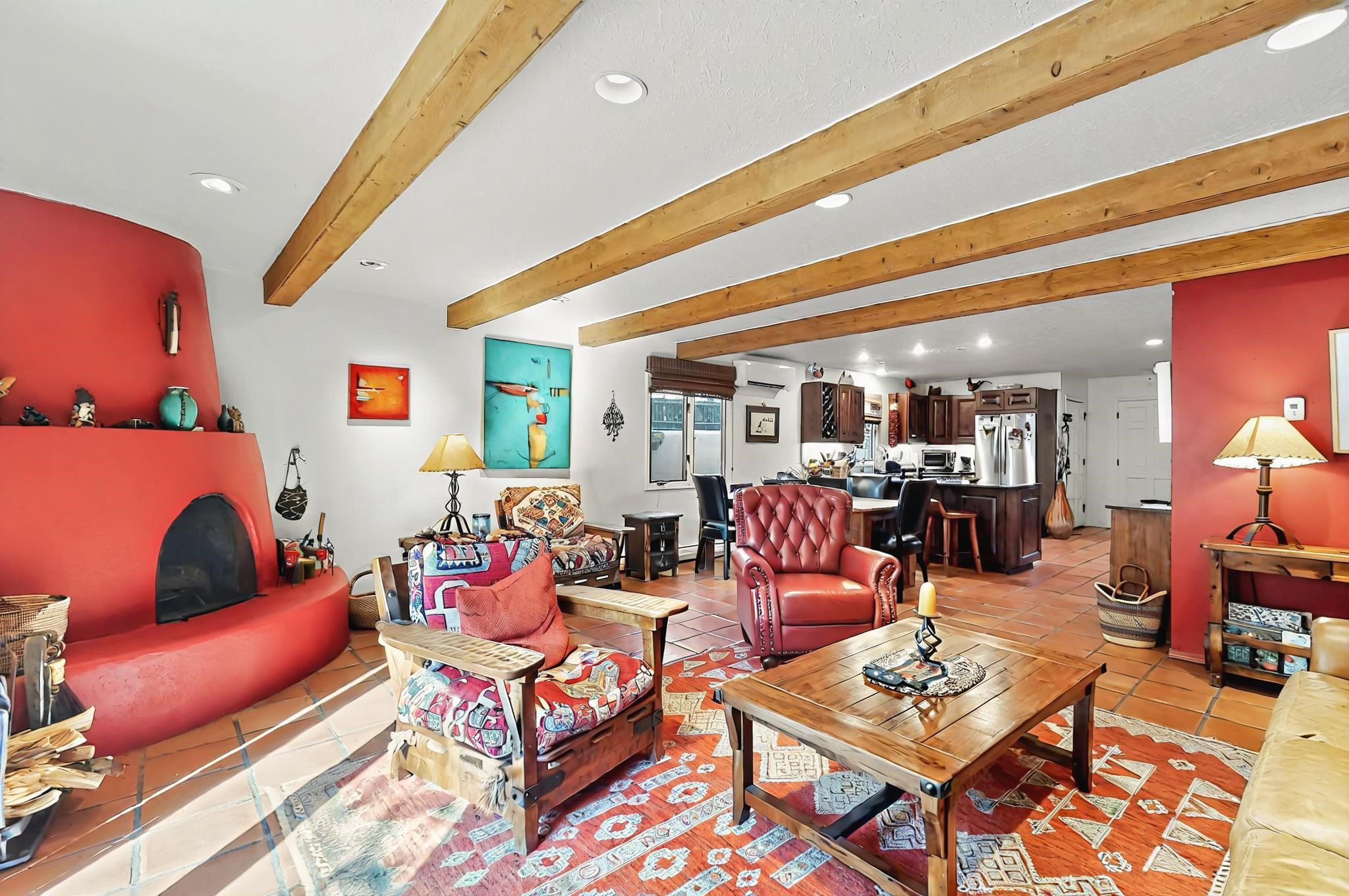 Stroll to the Plaza from this beautifully remodeled condo in a fabulous downtown location! This end unit is light and bright with plenty of windows. Close to the historic downtown area and right across from Fort Marcy Park, this lovely home has two generously sized bedrooms, both with walk-in closets. Downstairs has an open concept plan with a large kitchen, spacious living area with a corner Kiva, laundry room, and powder bath. Engineered wood floors throughout the home. No carpet. Mini-splits in the bedrooms and living area. Enjoy summer outdoor dining in the fabulous private courtyard, accessed through a new Andersen sliding glass door. Take a short walk to shopping and fine dining. A quick drive leads to some of the greatest hiking trails around. Whether looking for a vacation property or a place to call home, this could be the perfect spot.