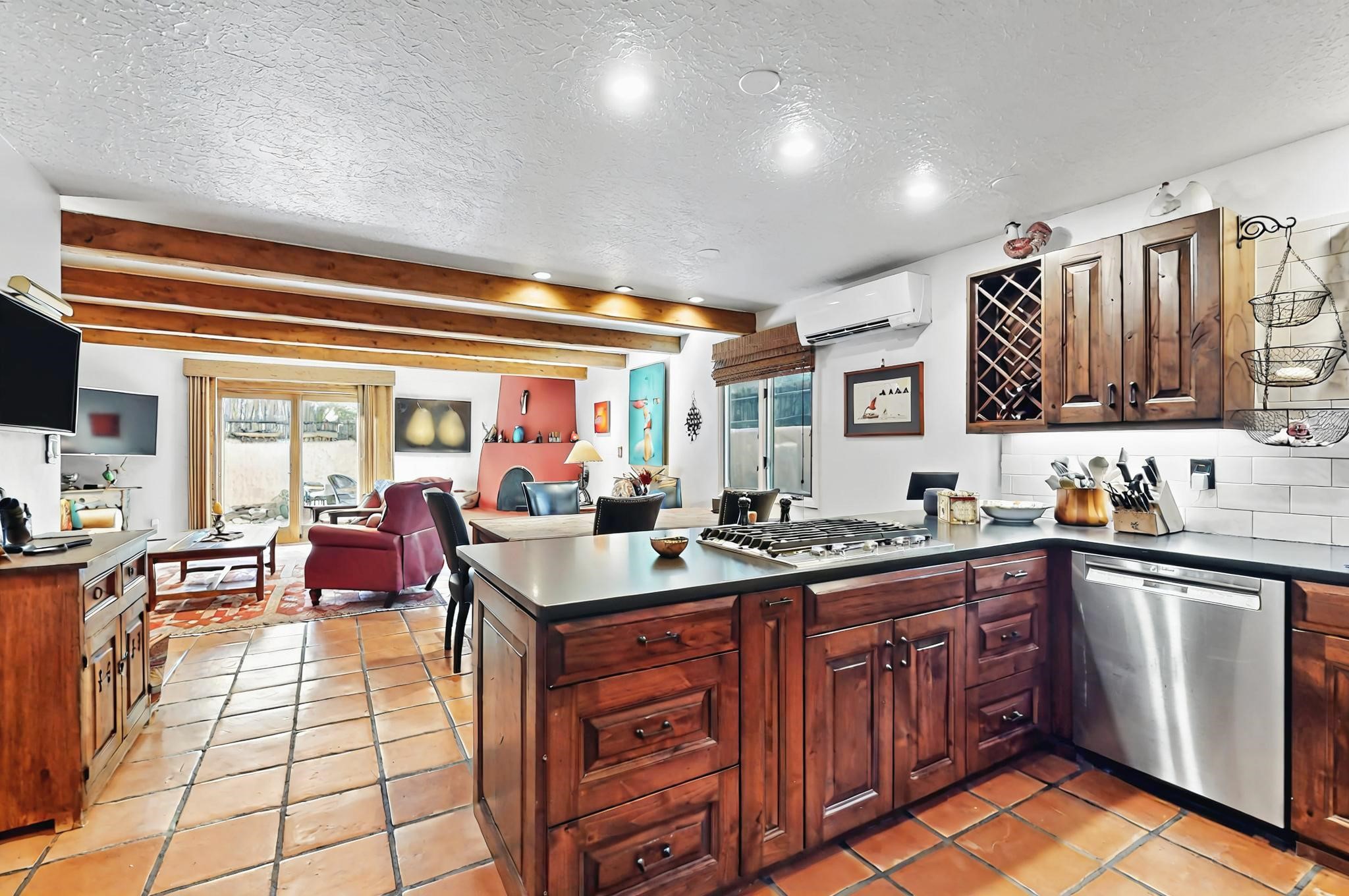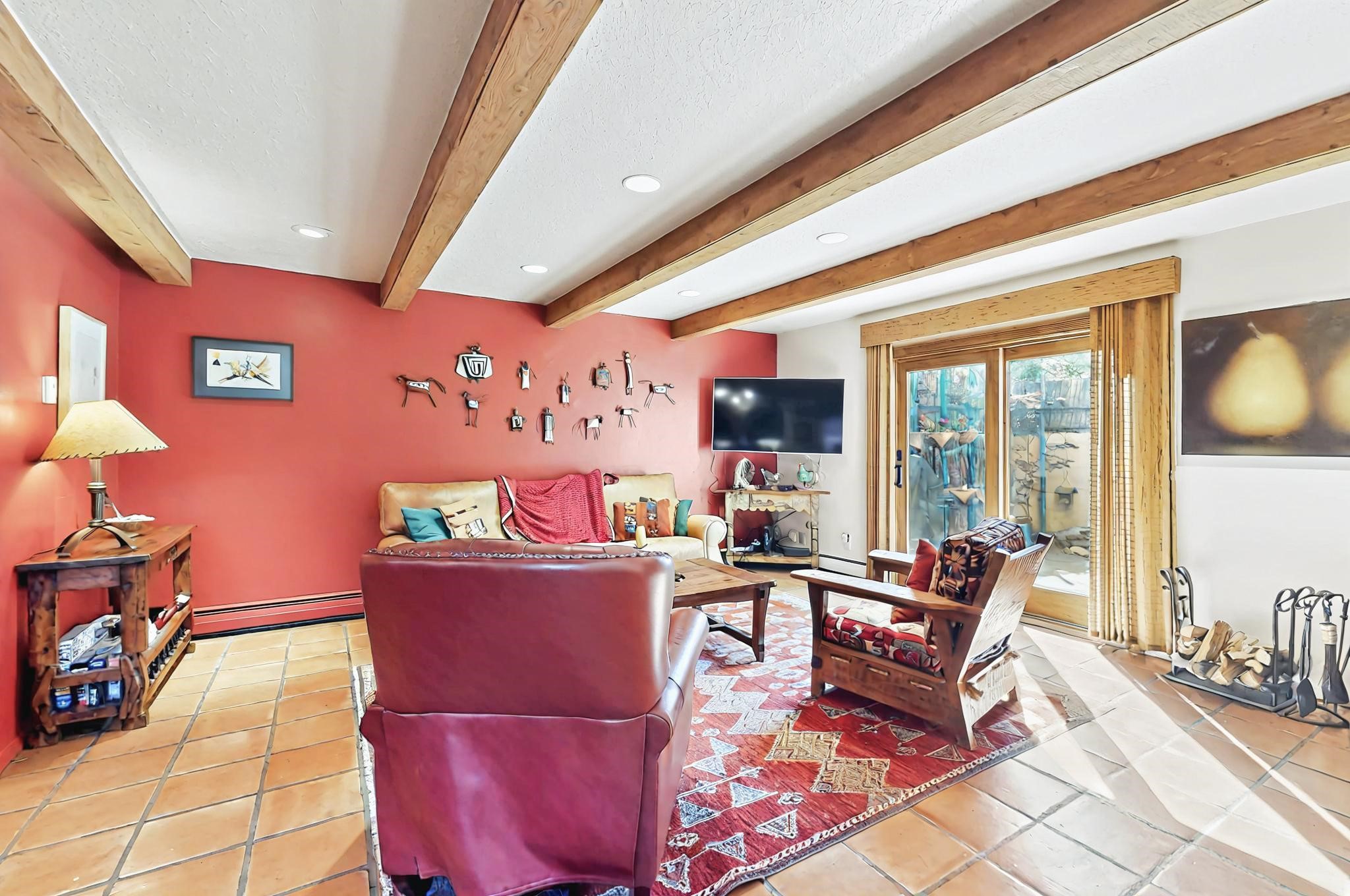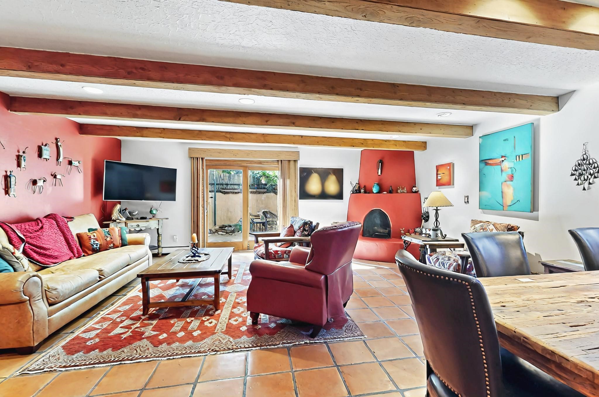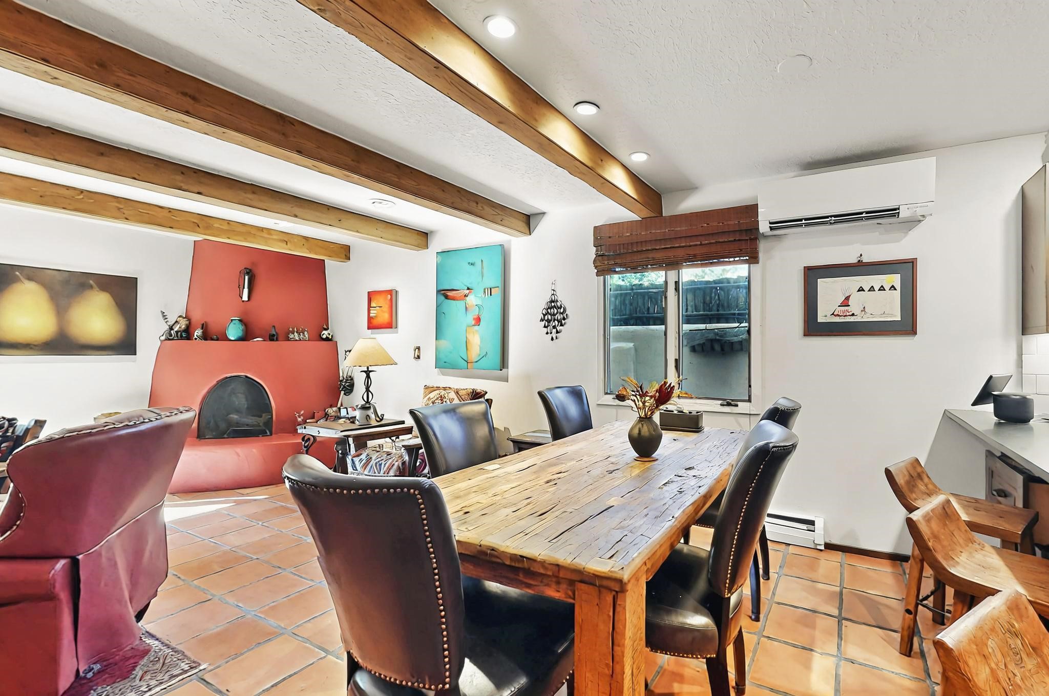 Stroll to the Plaza from this beautifully remodeled condo in a fabulous downtown location! This end unit is light and bright with plenty of windows. Close to the historic downtown area and right across from Fort Marcy Park, this lovely home has two generously sized bedrooms, both with walk-in closets. Downstairs has an open concept plan with a large kitchen, spacious living area with a corner Kiva, laundry room, and powder bath. Engineered wood floors throughout the home. No carpet. Mini-splits in the bedrooms and living area. Enjoy summer outdoor dining in the fabulous private courtyard, accessed through a new Andersen sliding glass door. Take a short walk to shopping and fine dining. A quick drive leads to some of the greatest hiking trails around. Whether looking for a vacation property or a place to call home, this could be the perfect spot.