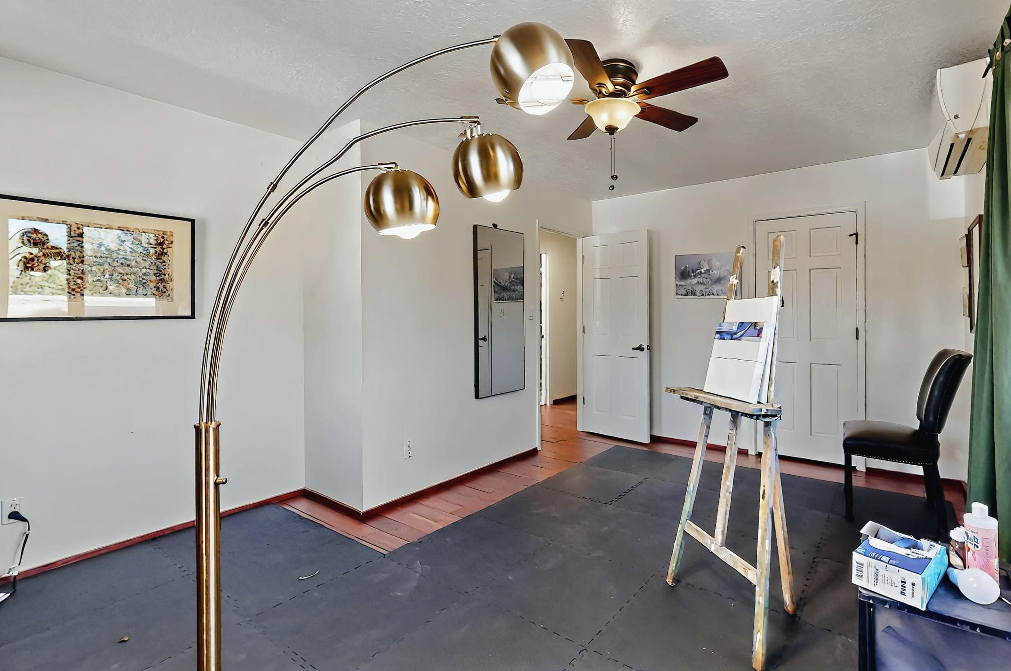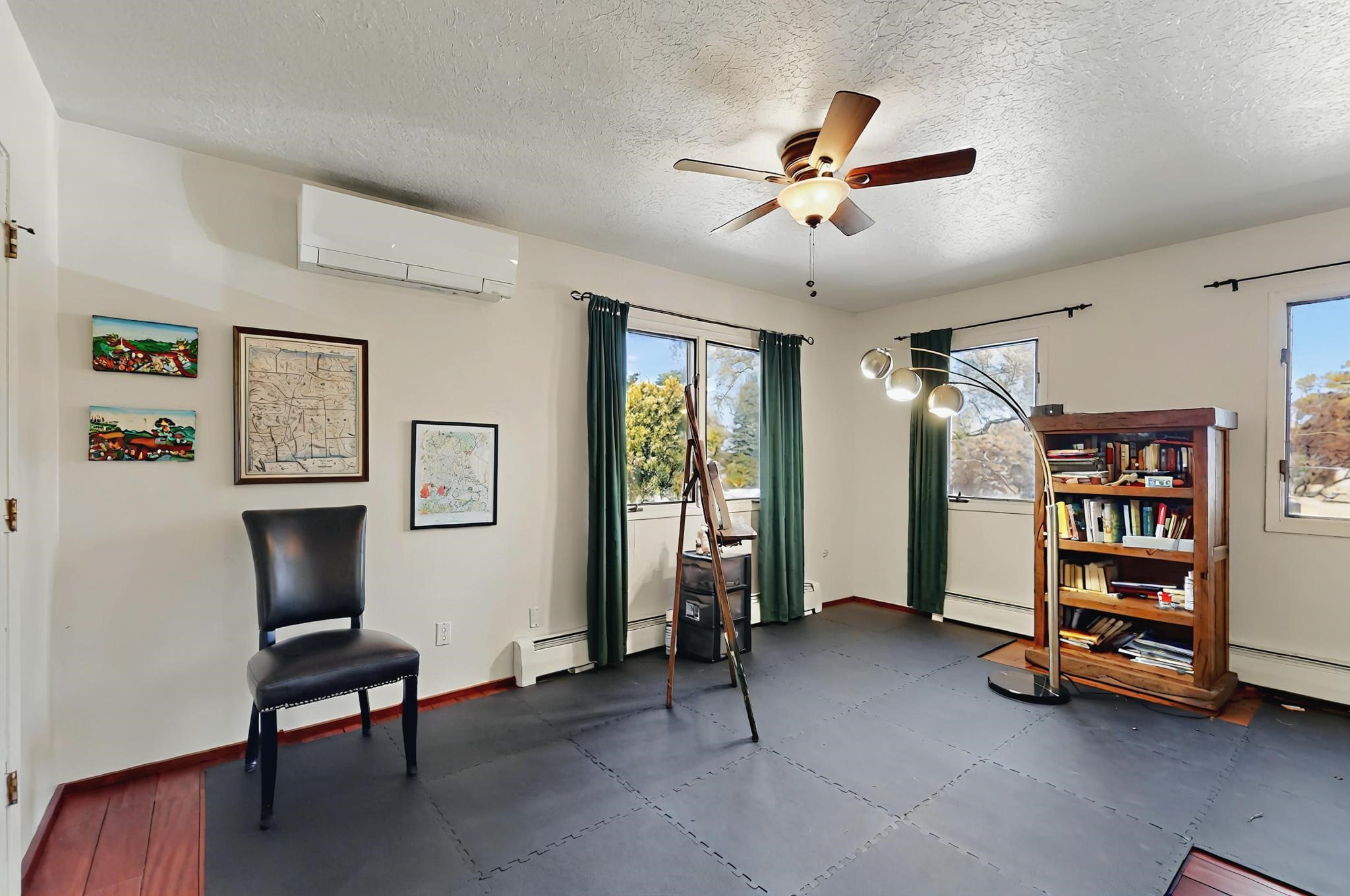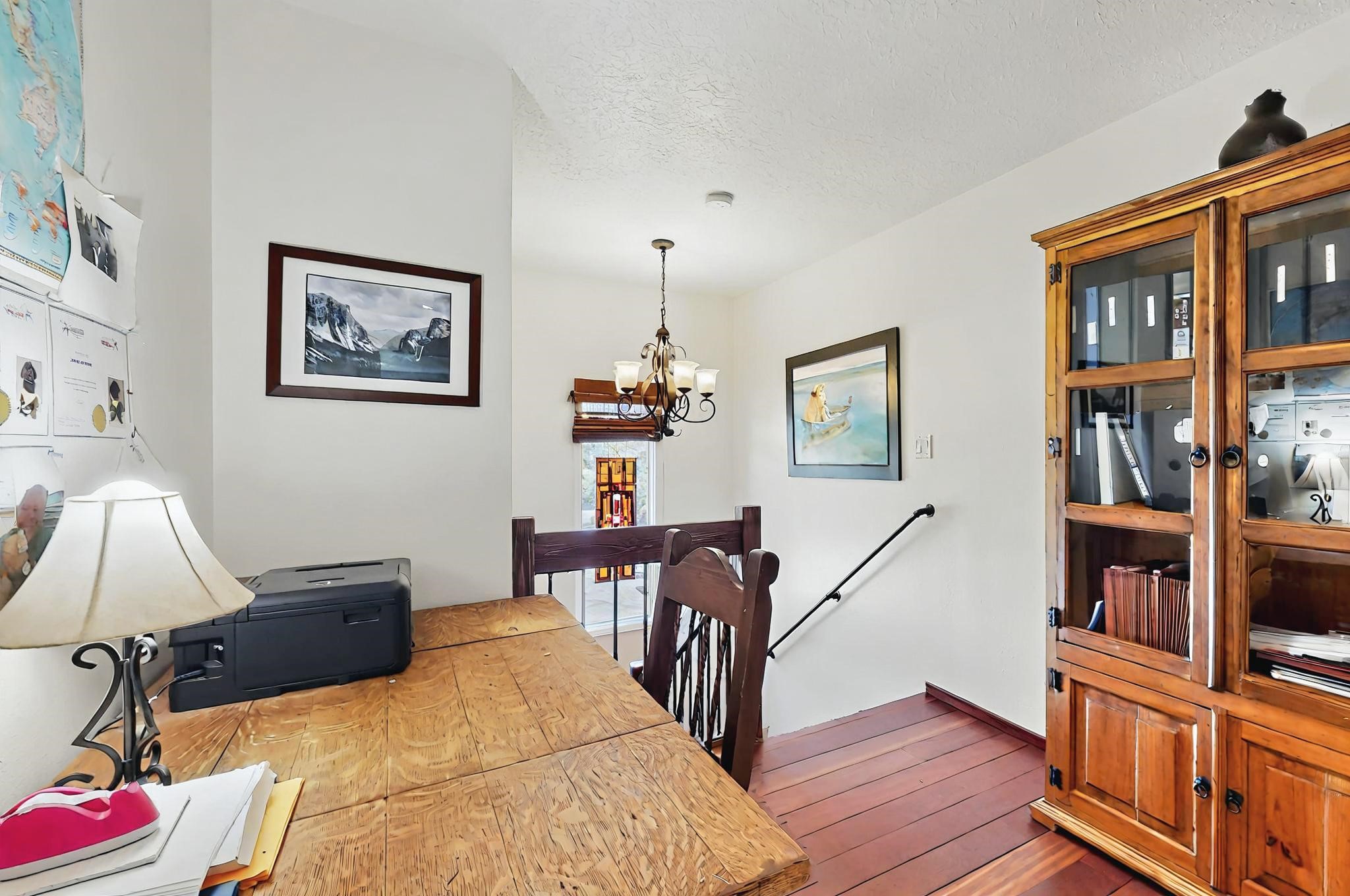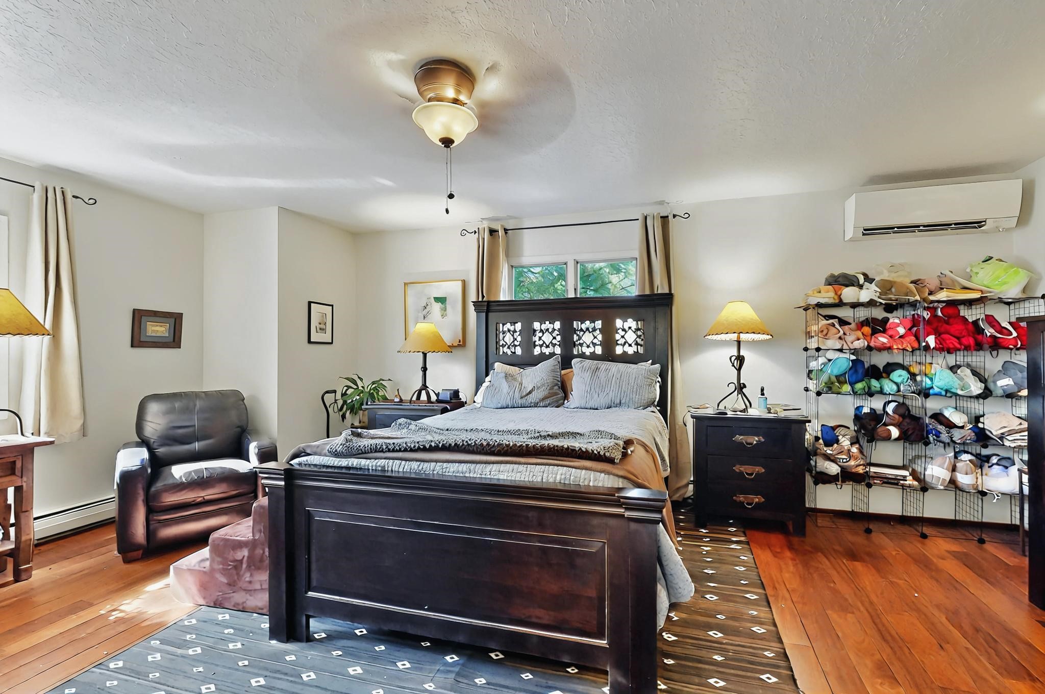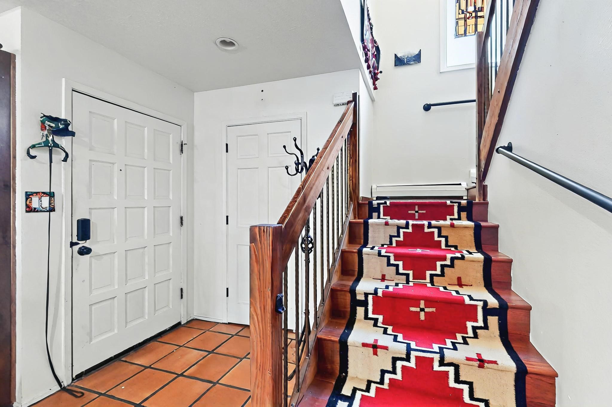 Stroll to the Plaza from this beautifully remodeled condo in a fabulous downtown location! This end unit is light and bright with plenty of windows. Close to the historic downtown area and right across from Fort Marcy Park, this lovely home has two generously sized bedrooms, both with walk-in closets. Downstairs has an open concept plan with a large kitchen, spacious living area with a corner Kiva, laundry room, and powder bath. Engineered wood floors throughout the home. No carpet. Mini-splits in the bedrooms and living area. Enjoy summer outdoor dining in the fabulous private courtyard, accessed through a new Andersen sliding glass door. Take a short walk to shopping and fine dining. A quick drive leads to some of the greatest hiking trails around. Whether looking for a vacation property or a place to call home, this could be the perfect spot.