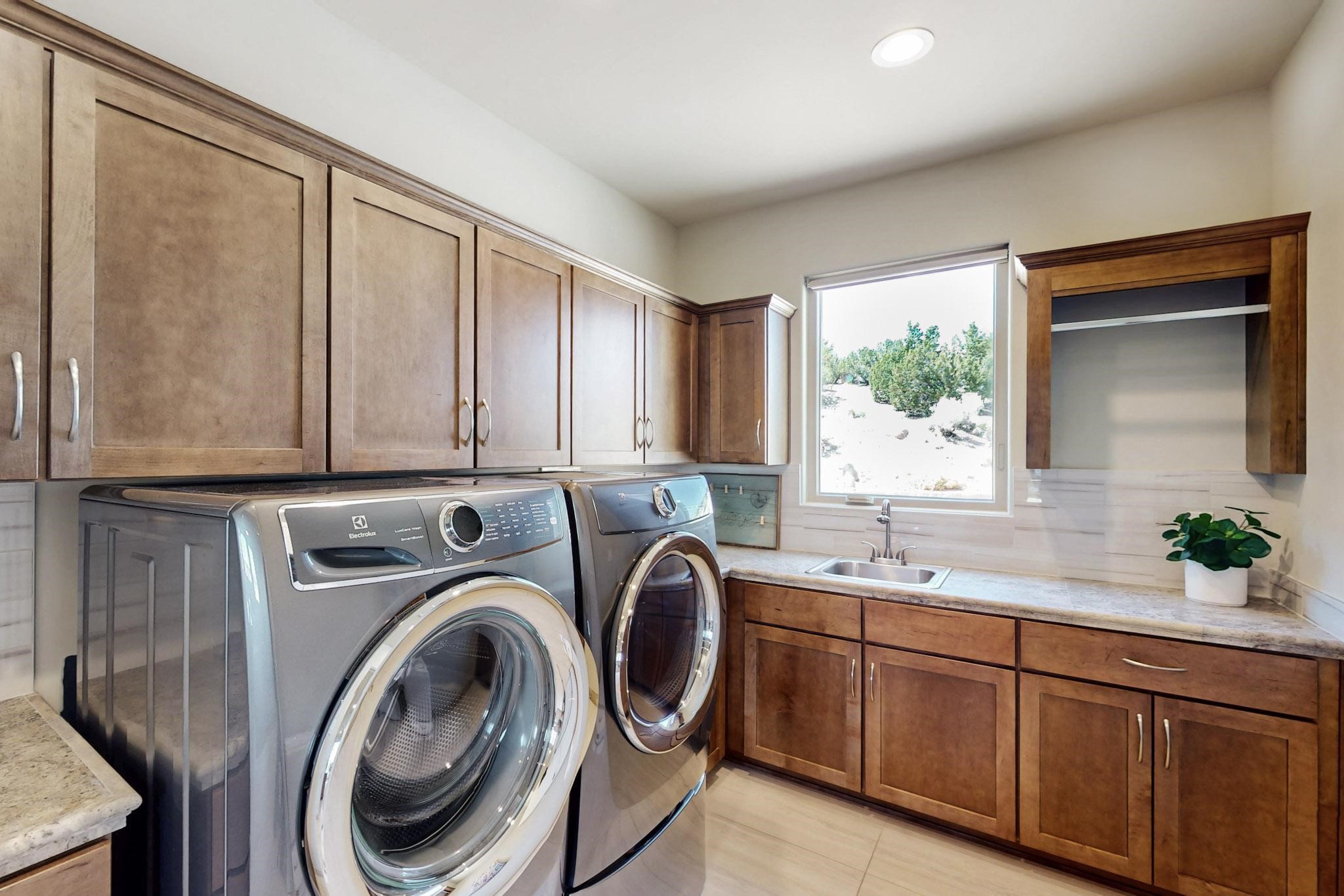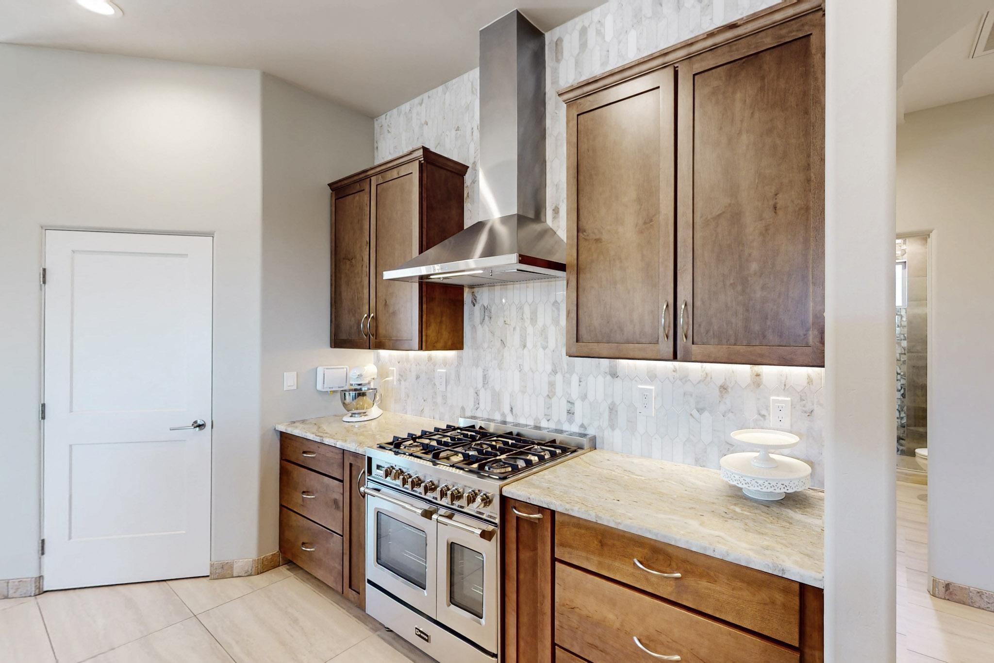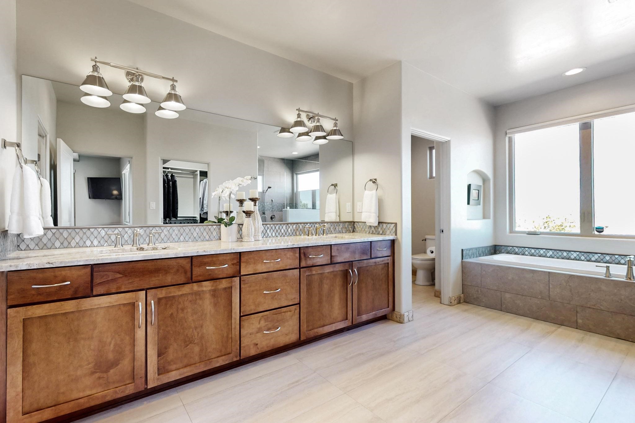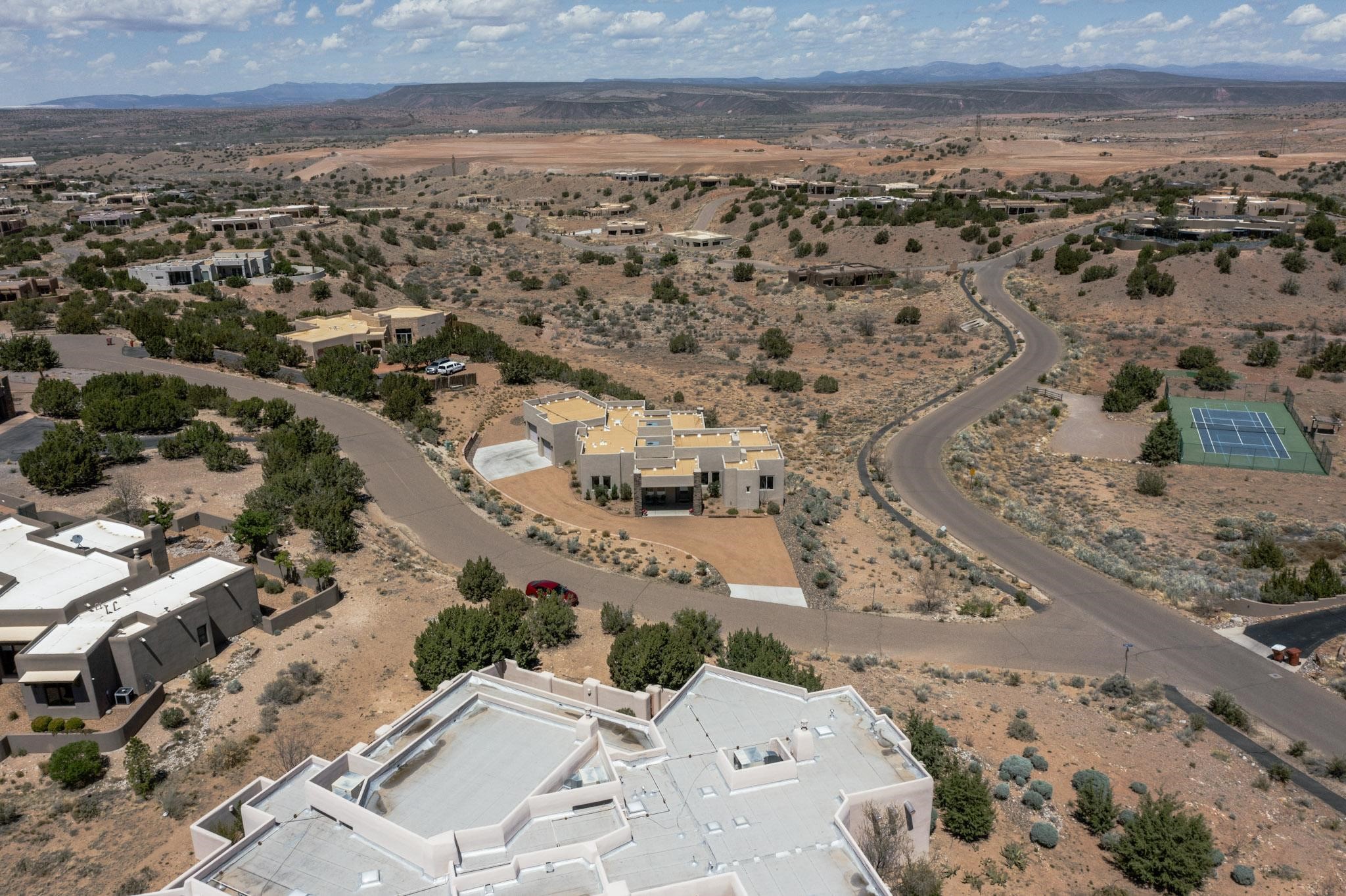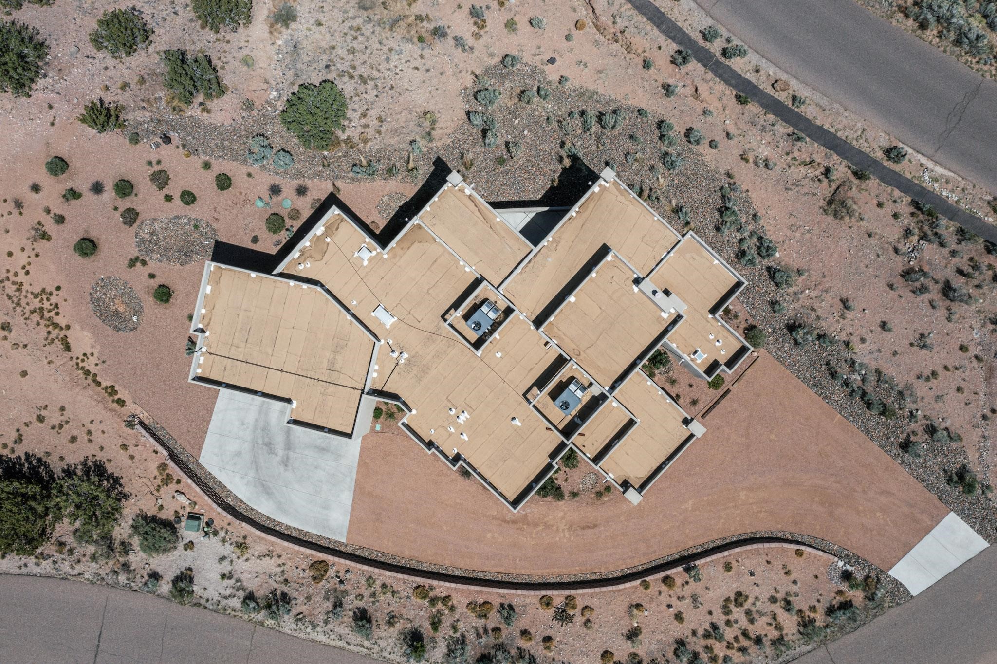 Experience the perfect balance of elegance, comfort, and functionality in this custom built 2022 Parade of Homes award winning home. Ideally situated on a 1.71-acre cul-de-sac lot in the prestigious Anasazi Trails subdivision, this thoughtfully designed single-level 2,850 sq ft residence is a rare find. Featuring 3 bedrooms, 3 bathrooms, and 2 spacious living areas, the home's open, split-bedroom floorplan offers both privacy and versatility. The luxurious primary suite and ensuite guest room are thoughtfully placed and perfect for multigenerational living or hosting out-of-town guests. Soak in the beauty of New Mexico's natural landscape from every angle. Strategically placed large windows provide lots of natural light and frame breathtaking views of the Sandia Mountains, Jemez Mesas, and the Rio Grande Valley. The family room highlights include beam ceilings and a sleek linear direct-vent fireplace, while the formal dining and living areas offer the perfect backdrop for gathering and entertaining. At the heart of the home, the gourmet kitchen is a chef's dream with granite countertops and stylish tile backsplash, stainless steel appliances including a 5-burner gas stove with double ovens and a beverage cooler, walk-in pantry, breakfast bar, and ample cabinetry for storage and organization. The primary suite is a private retreat, complete with backyard patio access, beam ceilings and a spa-like bathroom including dual vanities, soaking tub, large shower room with rainfall shower heads, and 2 walk-in closets with built-in shelving. Additional features include an 880 sq ft covered patio with multiple sliders and built-in speakers perfect for outdoor entertaining while enjoying panoramic views, a massive 3-car garage, an oversized laundry room with utility sink, cabinets and countertop space, a tankless hot water heater system, 36" tile and laminate flooring throughout, and a built-in Yamaha MusicCast sound system. Anasazi Trails offers a peaceful lifestyle with community tennis and pickleball courts and walking trails to explore the natural beauty of Placitas. With clean, contemporary lines, high-end finishes, and unparalleled craftsmanship, this home is truly one of a kind. Don't miss the opportunity to make this your Dream Home!