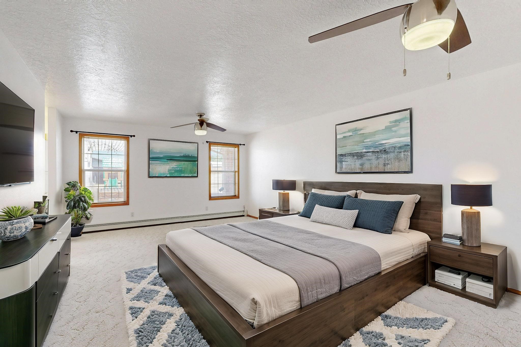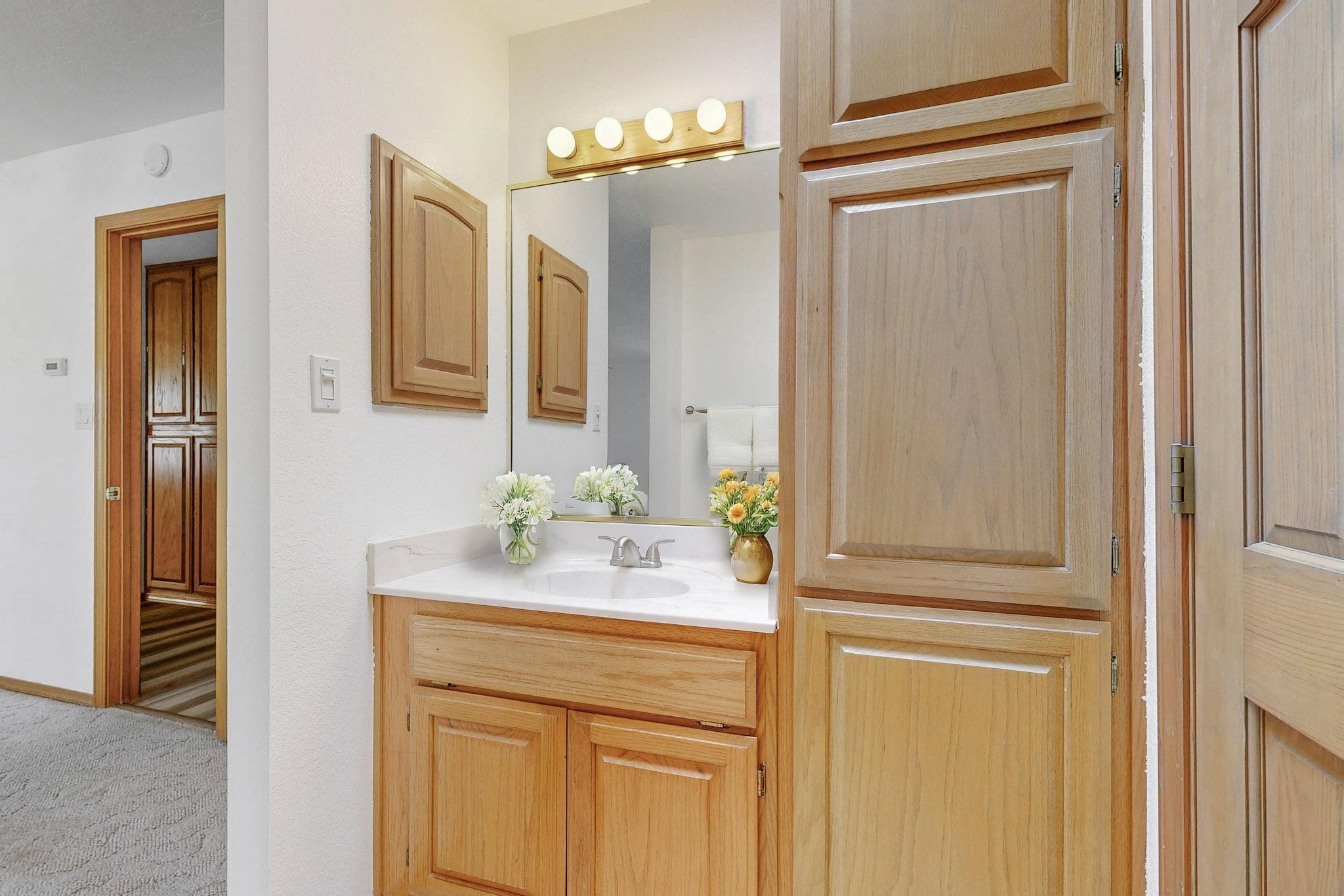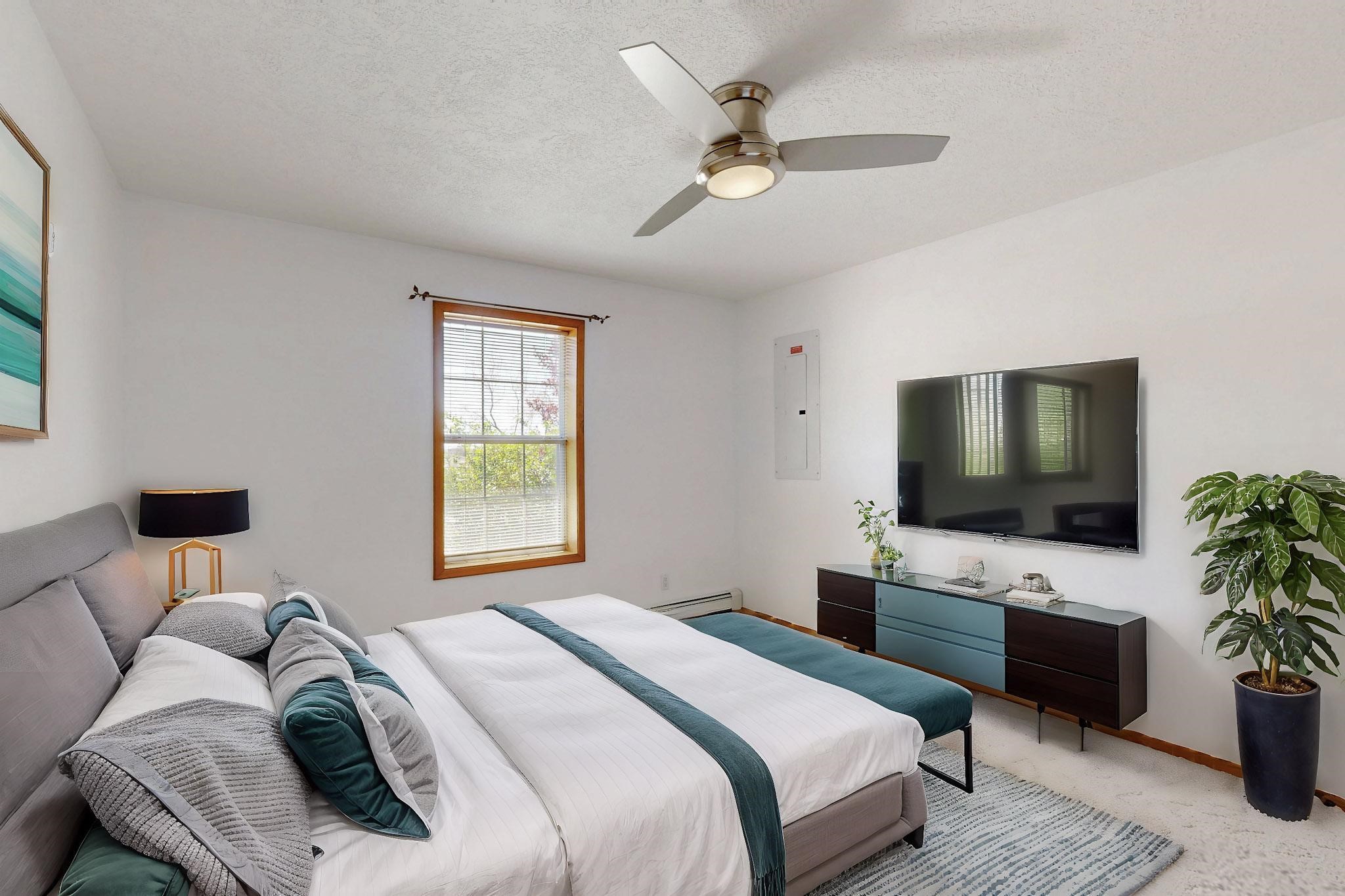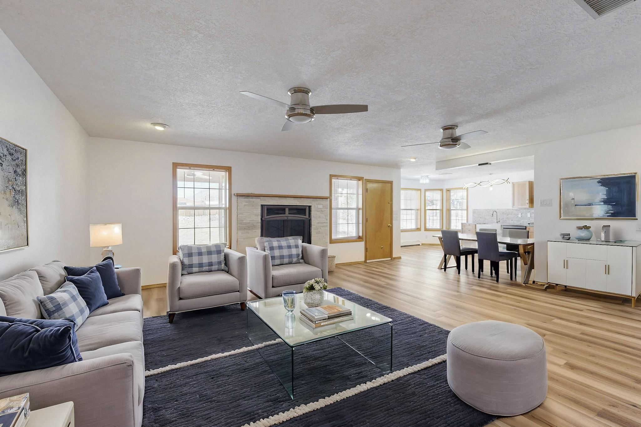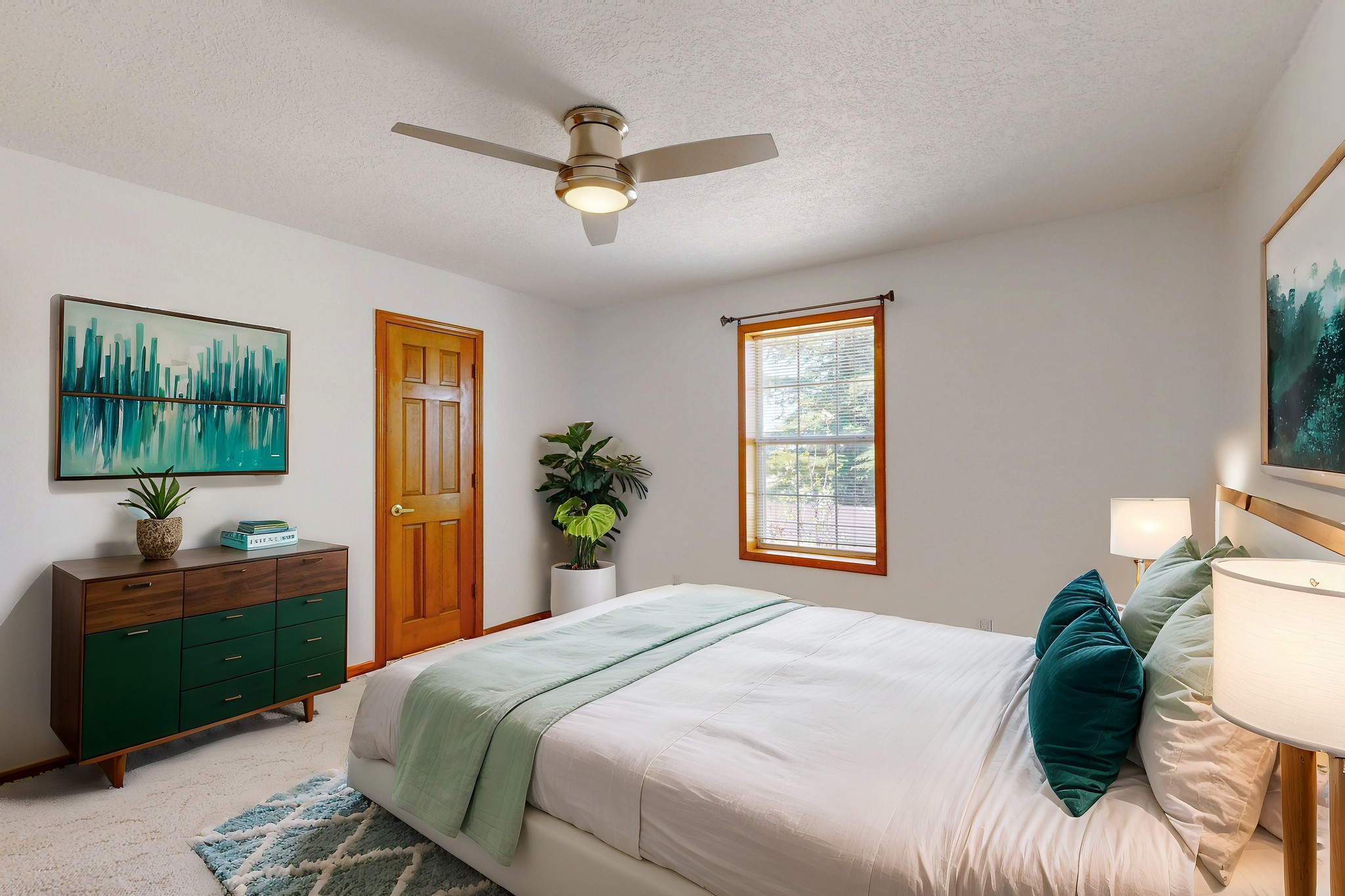 Set on a spacious 0.89-acre lot in the highly desirable North Albuquerque Acres, this nicely maintained single-story brick home offers breathtaking Sandia Mountain views and a thoughtfully designed layout perfect for comfortable living. Spanning 3,376 square feet, this home features 4 bedrooms, 3 bathrooms, two living areas plus a versatile flex room, perfect for work or play. The formal living and dining rooms provide an inviting space for entertaining, while the cozy family room with a wood-burning fireplace seamlessly flows into the eat-in kitchen with a charming bay window. The newly renovated kitchen boasts engineered hardwood flooring, marble countertops with a stone backsplash, a farmhouse sink, ample cabinet space, a 5-burner gas cooktop with range hood, and stainless-steel appliances, including double ovens, a dishwasher, and a refrigerator. A matching marble dining table with four chairs completes this stylish space. The primary suite offers a peaceful retreat with his-and-hers walk-in closets, dual vanities, a jetted tub, and a large shower. Three additional spacious bedrooms, all with walk-in closets, share a full bath with double sinks. Step outside to enjoy covered front and back porches, a pergola-covered hot tub, a children's play area, a tool/well room, and a barn with stalls--all within a fully fenced property. The 5-car tandem garage offers ample storage, while owned solar panels and propane provide energy efficiency. Conveniently located near top-rated schools, hiking and biking trails, and Tramway Blvd, this inviting home is perfect for both living and entertaining, combining comfort and style in one exceptional package. Don't miss the opportunity to make this your ABQ Dream Home!