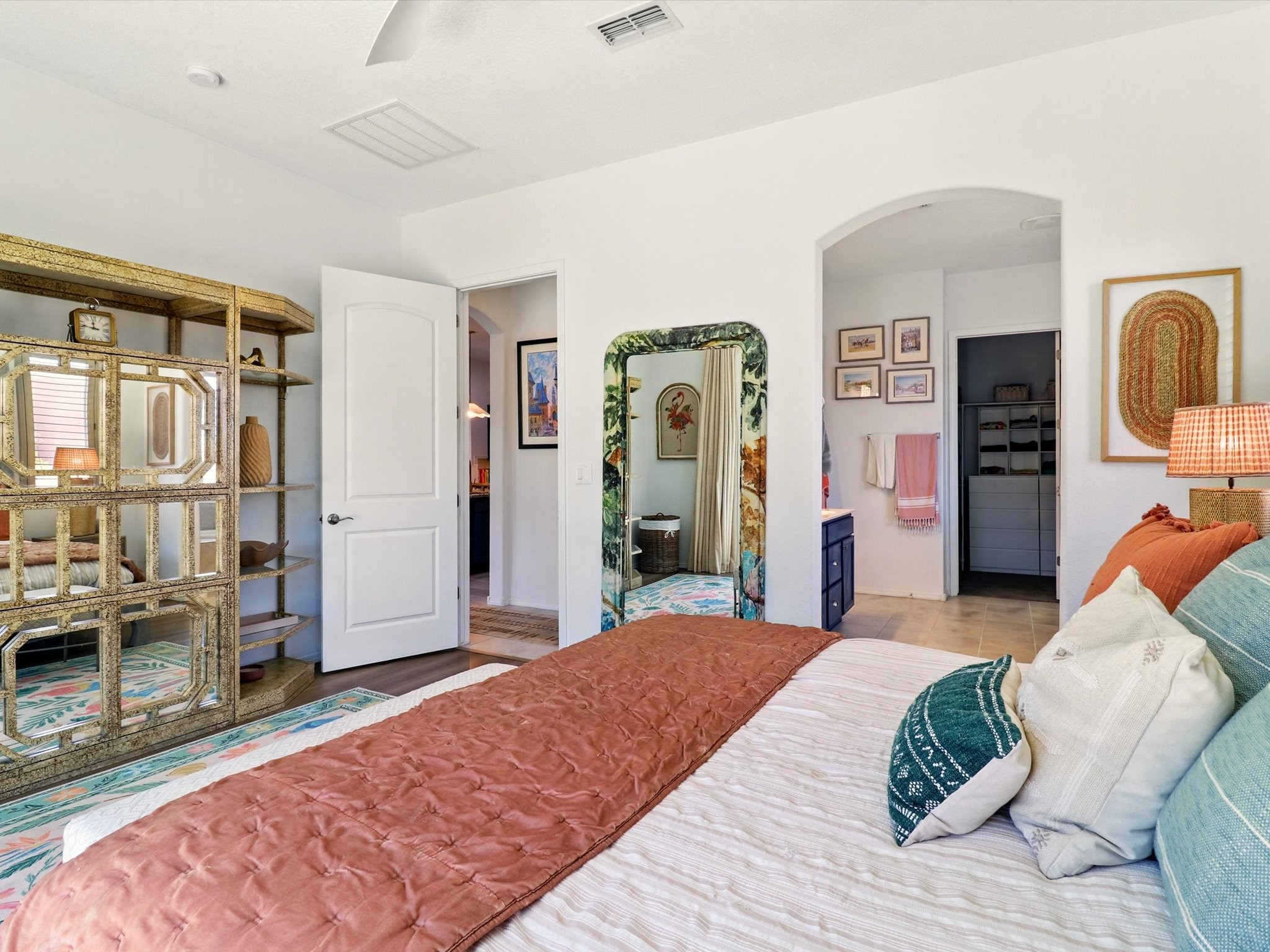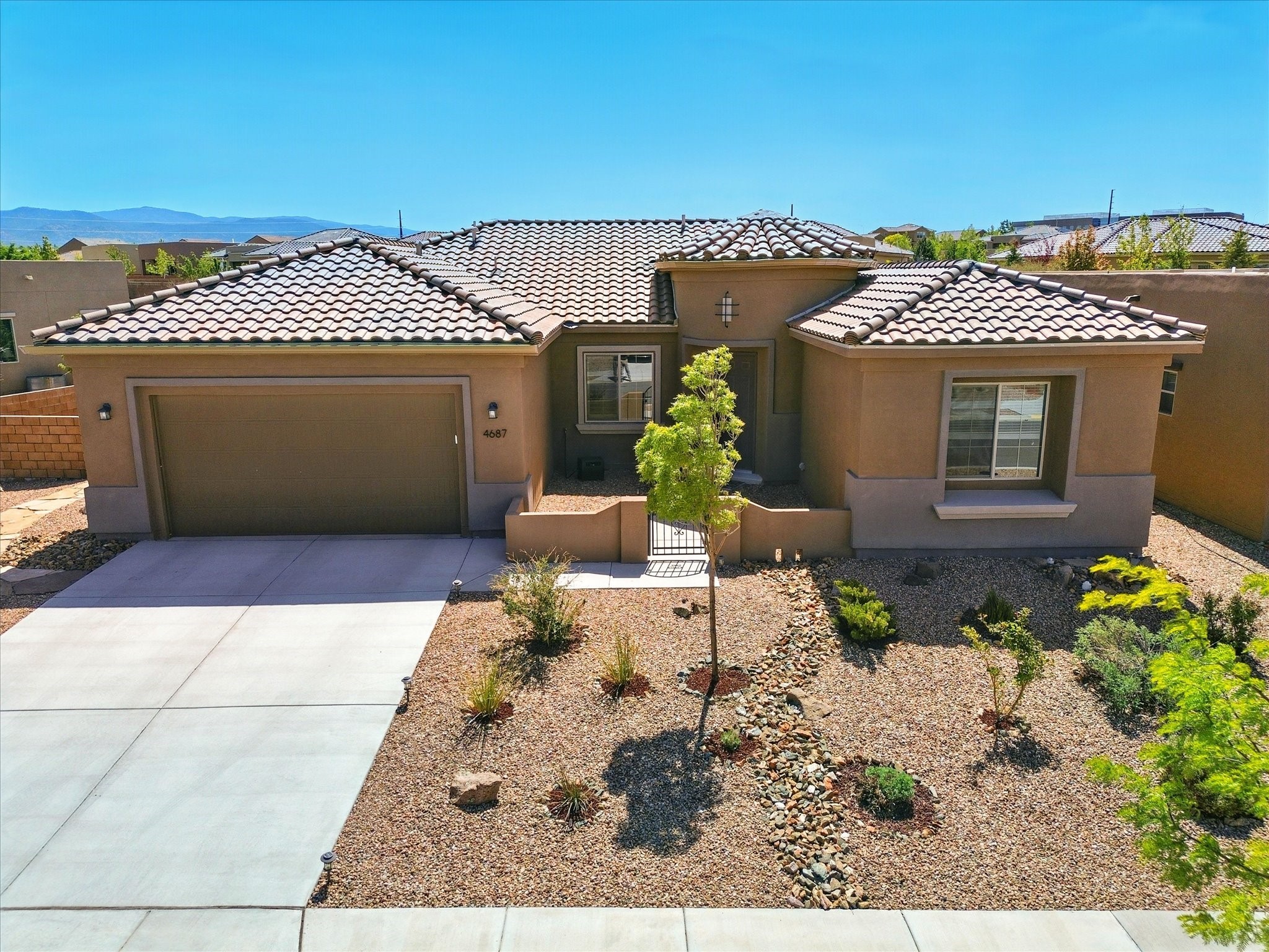 Welcome to a perfect blend of style and functionality in this beautifully appointed 3-bedroom, 2-bath home located in the highly desirable Las Soleras community. From the moment you enter, you're welcomed by a bright, versatile flex room--ideal for a home office, studio, or den--setting the tone for the open-concept living space that follows.Soaked in natural light, the spacious living and dining areas flow seamlessly into a chef-inspired kitchen featuring an in-wall Whirlpool oven and microwave combo, a sleek Samsung refrigerator, gas stovetop, and ample cabinetry for all your storage needs. A large pantry adds even more convenience for the home cook or entertainer.The generously sized primary suite offers a peaceful retreat with added Custom sliding doors that lead directly to the backyard. Step outside into your own private haven--beautifully landscaped with gravel and greenery, and extended for true outdoor living with a built-in fireplace, perfect for Santa Fe evenings under the stars.Situated on a .23-acre lot with a two-car garage, this home offers space, comfort, and thoughtful upgrades throughout.