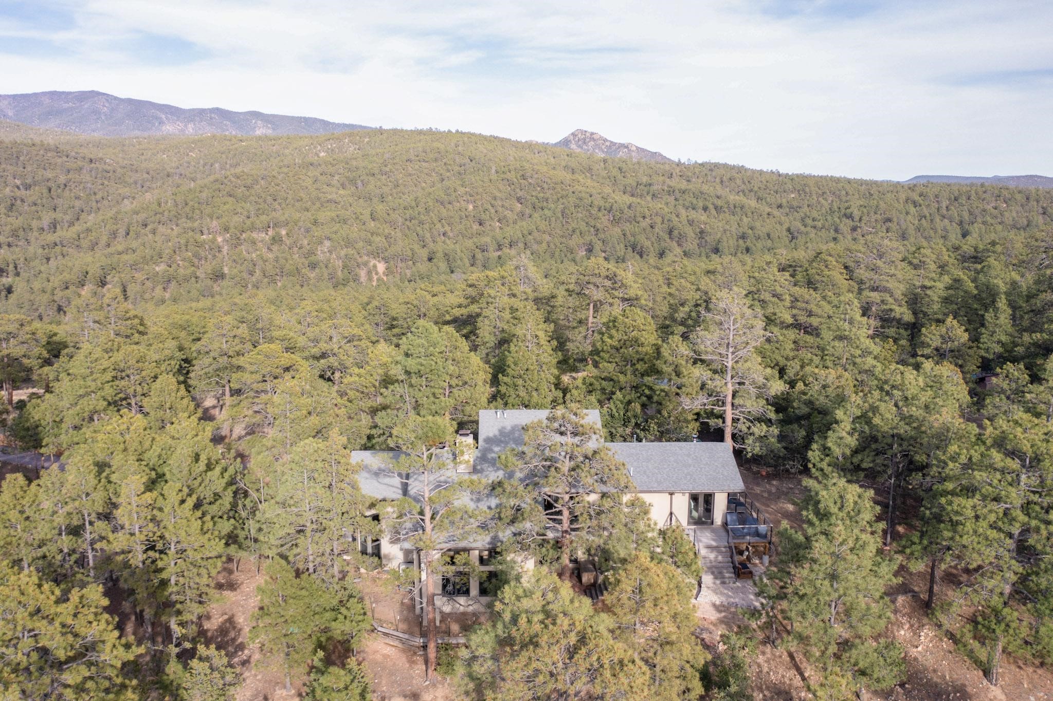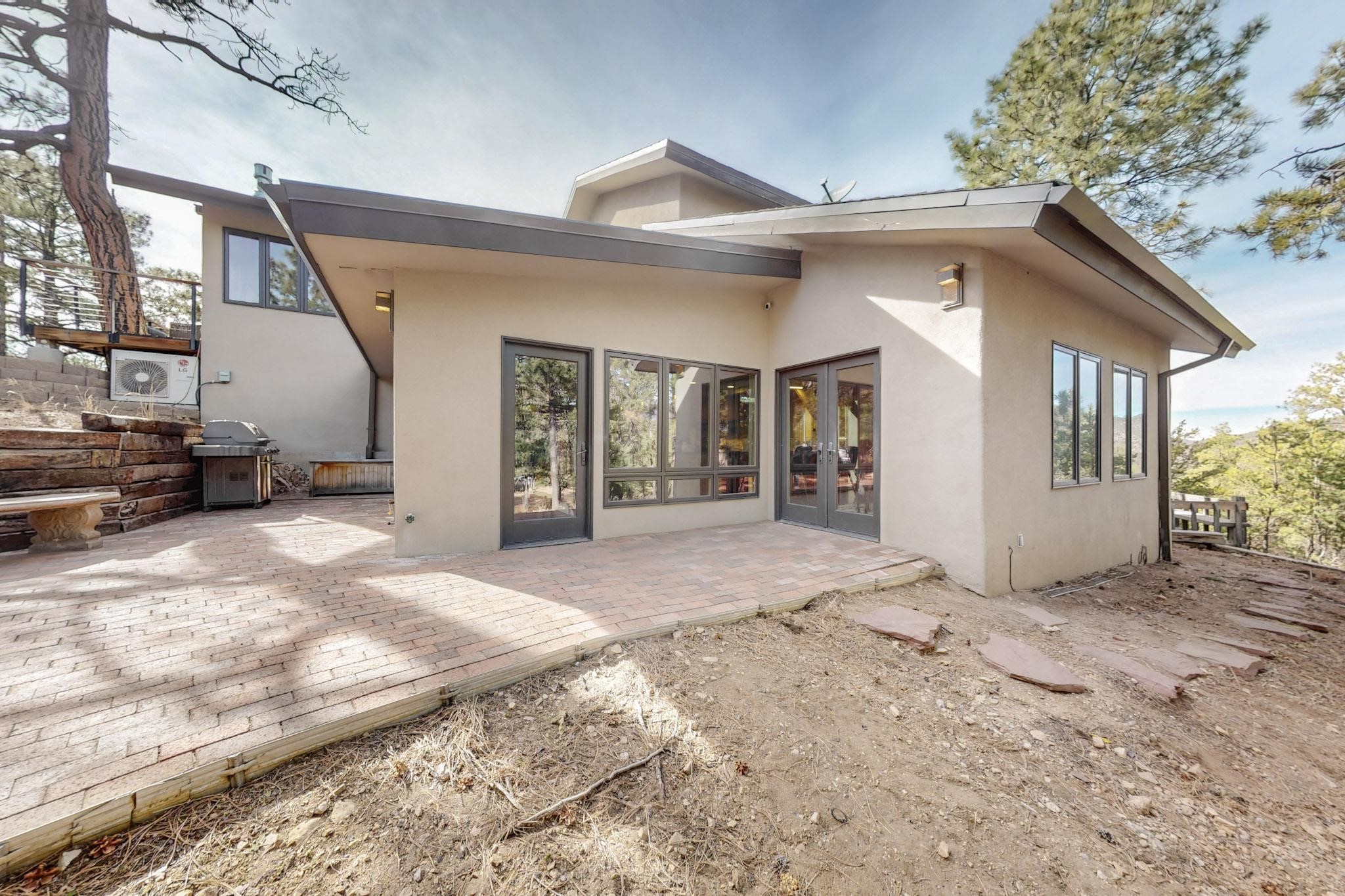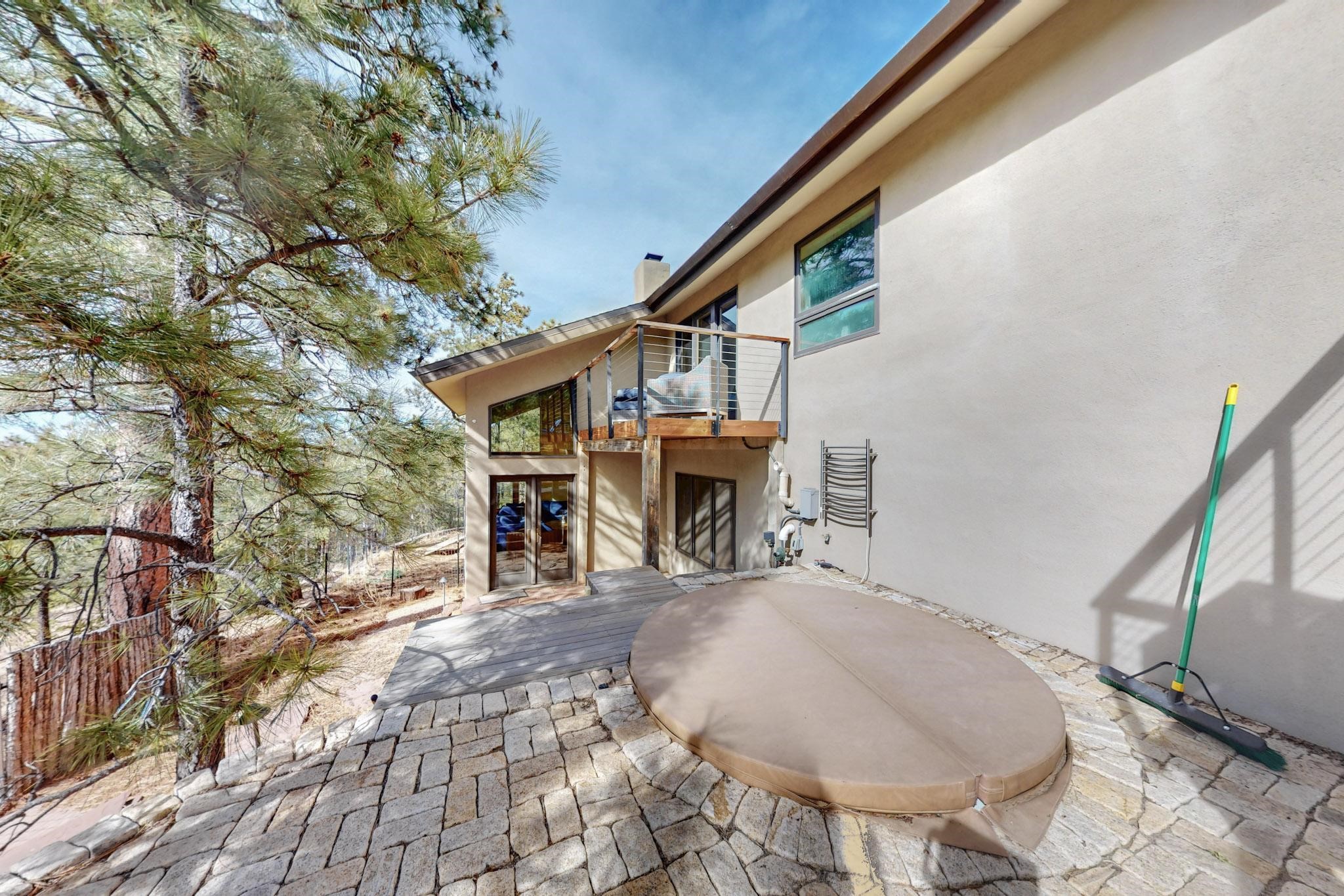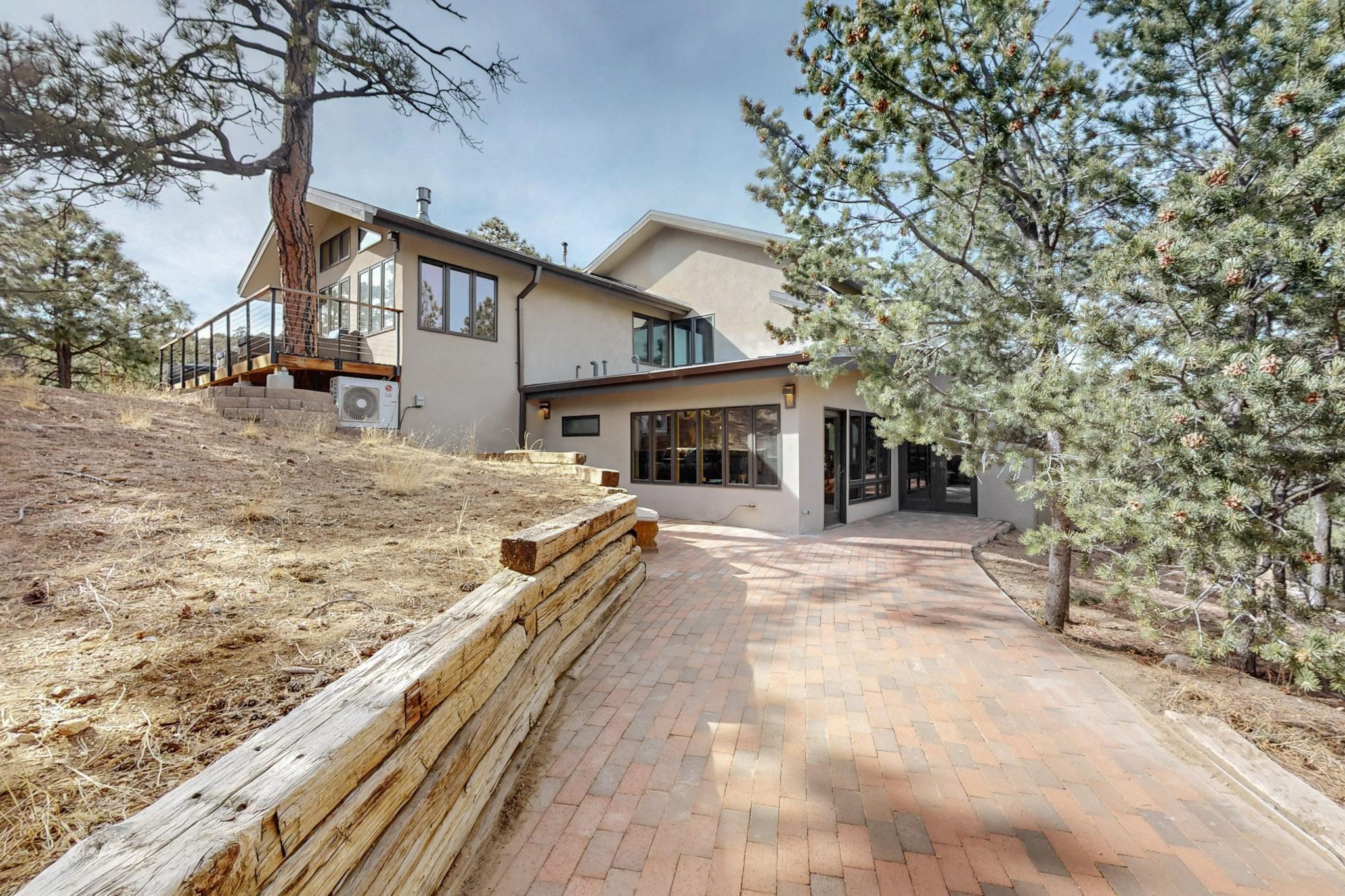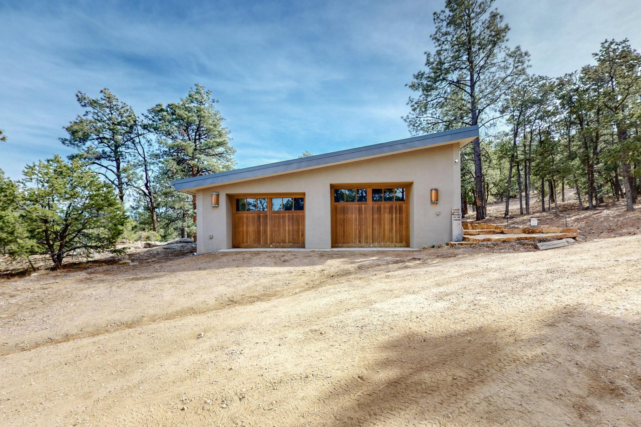 Nestled in the serene mountains of Santa Fe, this stunning 4-bedroom, 3.5-bathroom home offers the perfect blend of modern luxury and natural beauty. Located off the historic Old Santa Fe Trail, the property boasts top-of-the-line Viking appliances, sleek, contemporary finishes, and spacious living areas designed for comfort and style. An extensive renovation in 2020 enhanced the home with a thoughtfully extended primary suite and the addition of a laundry room, mud room, and half bath--bringing both convenience and elevated functionality. The septic system is just 3 years old, adding peace of mind to this well-maintained home. Elegant TOTO toilets throughout further elevate the home's premium features. A fully finished, oversized and painted detached two-car garage provides additional space and versatility, perfect for storage, hobbies, or a workshop. The property is also horse-friendly, offering the opportunity to bring your horses and enjoy the tranquil surroundings. Unwind in the inground hot tub after a day of exploring or take in the stunning night skies while stargazing from one of the home's peaceful decks. Enjoy direct access to scenic hiking trails right from your backyard, allowing for endless outdoor adventures. With its tranquil setting, equestrian potential, and premium features, this home is an exceptional retreat in the heart of the Santa Fe mountains. Open House canceled for Sunday 09/28
