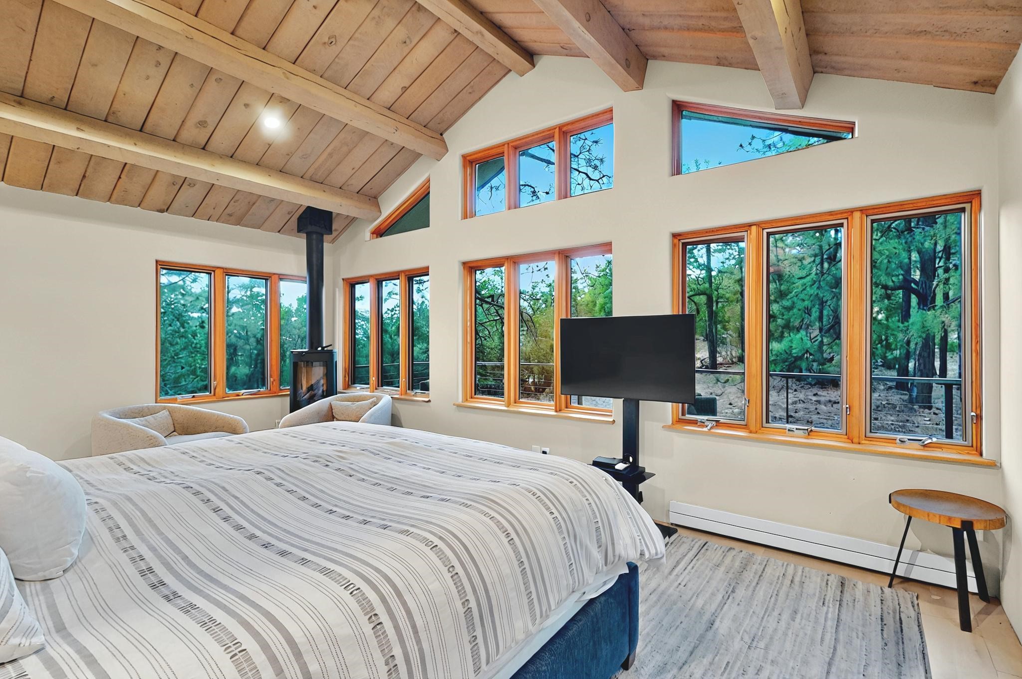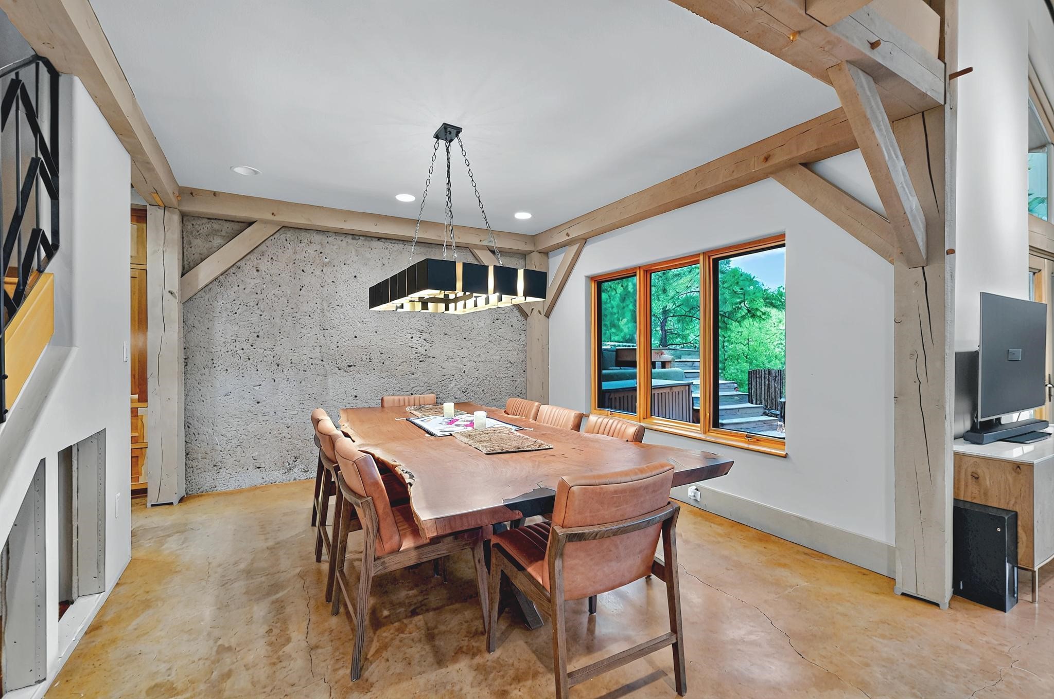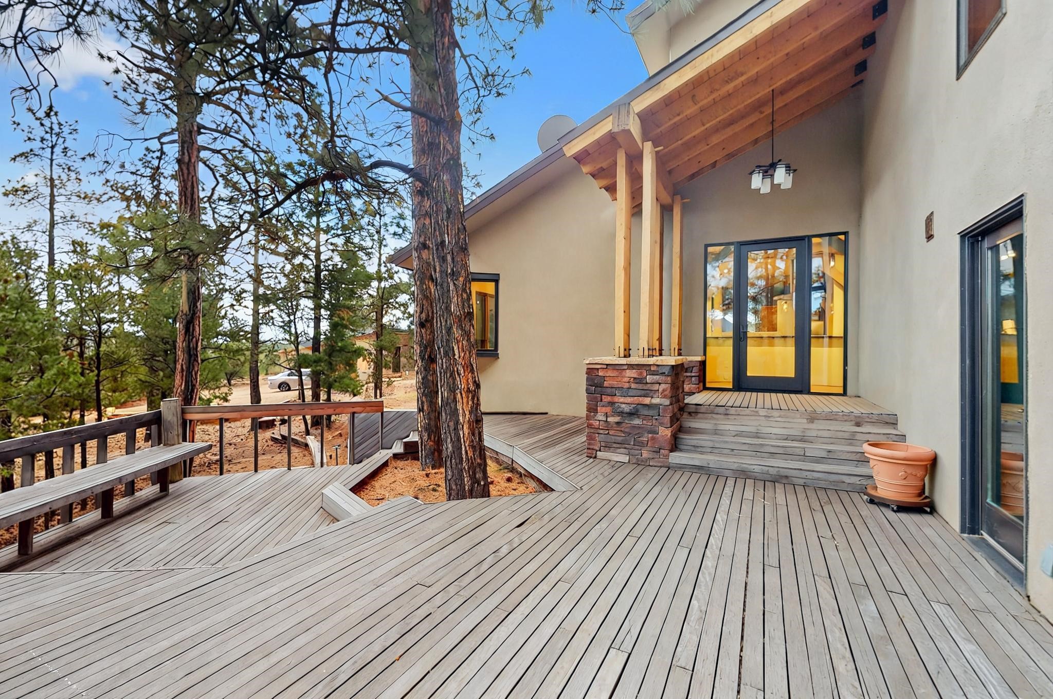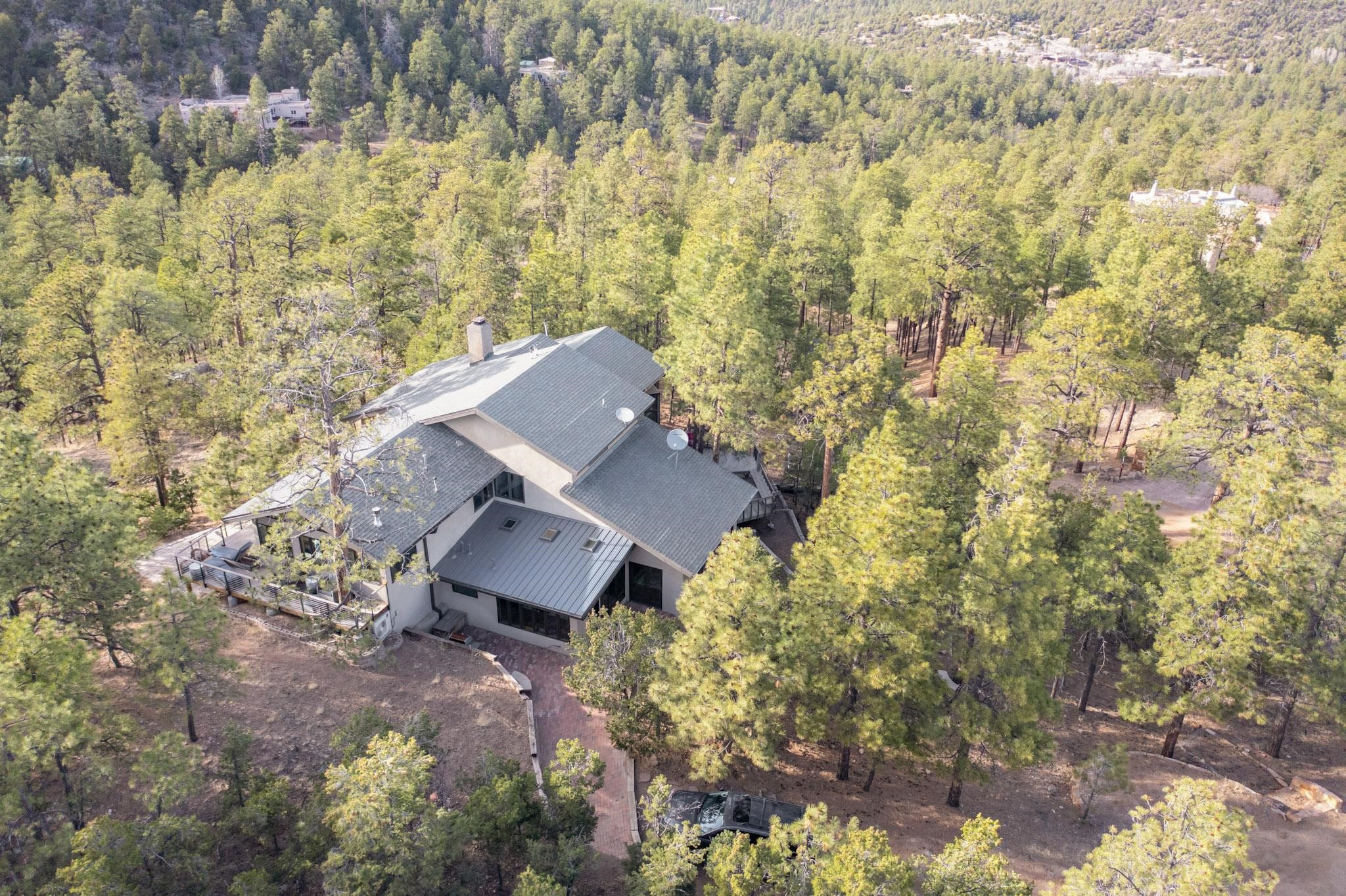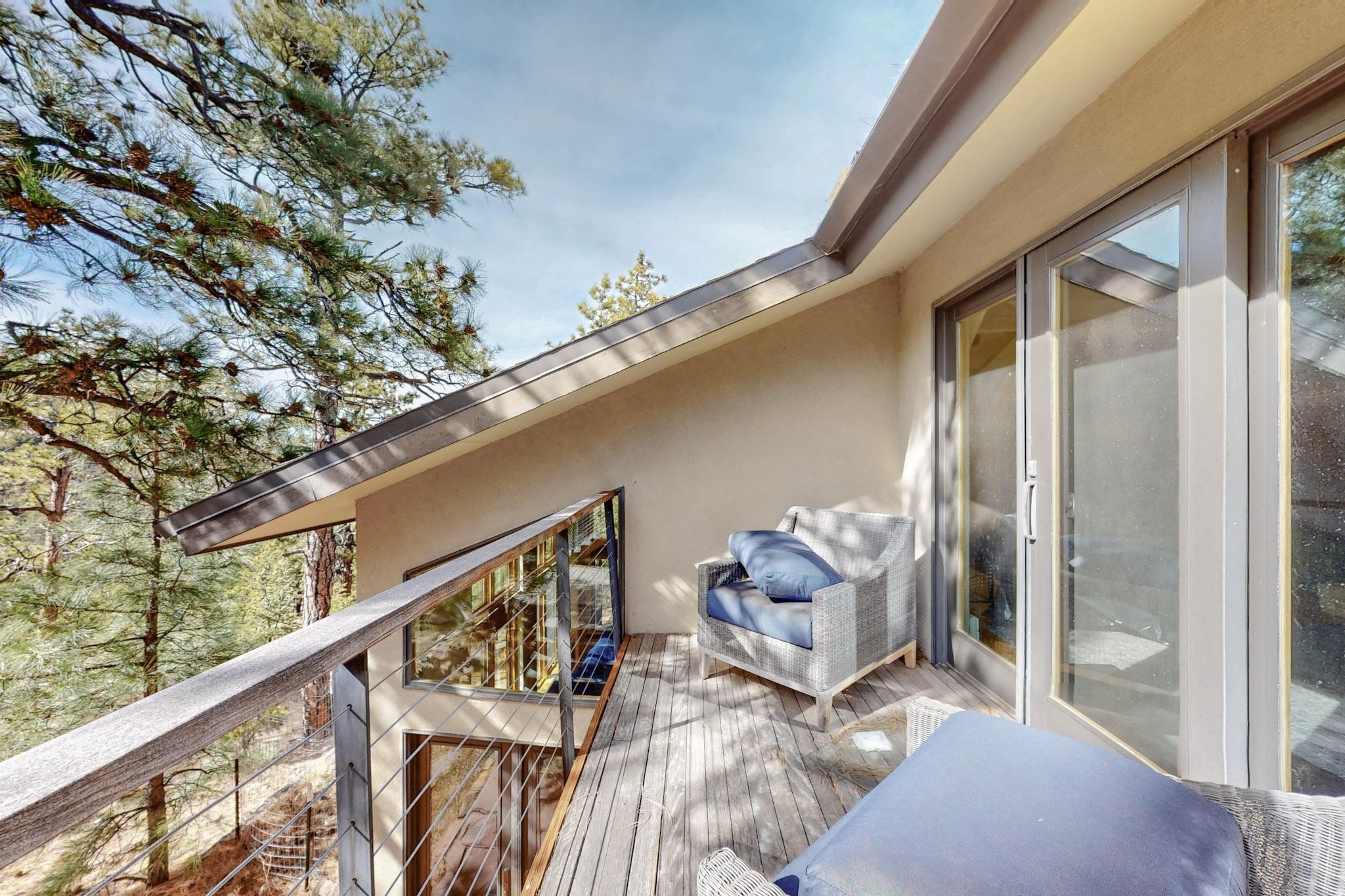 Nestled in the serene mountains of Santa Fe, this stunning 4-bedroom, 3.5-bathroom home offers the perfect blend of modern luxury and natural beauty. Located off the historic Old Santa Fe Trail, the property boasts top-of-the-line Viking appliances, sleek, contemporary finishes, and spacious living areas designed for comfort and style. An extensive renovation in 2020 enhanced the home with a thoughtfully extended primary suite and the addition of a laundry room, mud room, and half bath--bringing both convenience and elevated functionality. The septic system is just 3 years old, adding peace of mind to this well-maintained home. Elegant TOTO toilets throughout further elevate the home's premium features. A fully finished, oversized and painted detached two-car garage provides additional space and versatility, perfect for storage, hobbies, or a workshop. The property is also horse-friendly, offering the opportunity to bring your horses and enjoy the tranquil surroundings. Unwind in the inground hot tub after a day of exploring or take in the stunning night skies while stargazing from one of the home's peaceful decks. Enjoy direct access to scenic hiking trails right from your backyard, allowing for endless outdoor adventures. With its tranquil setting, equestrian potential, and premium features, this home is an exceptional retreat in the heart of the Santa Fe mountains. Open House canceled for Sunday 09/28